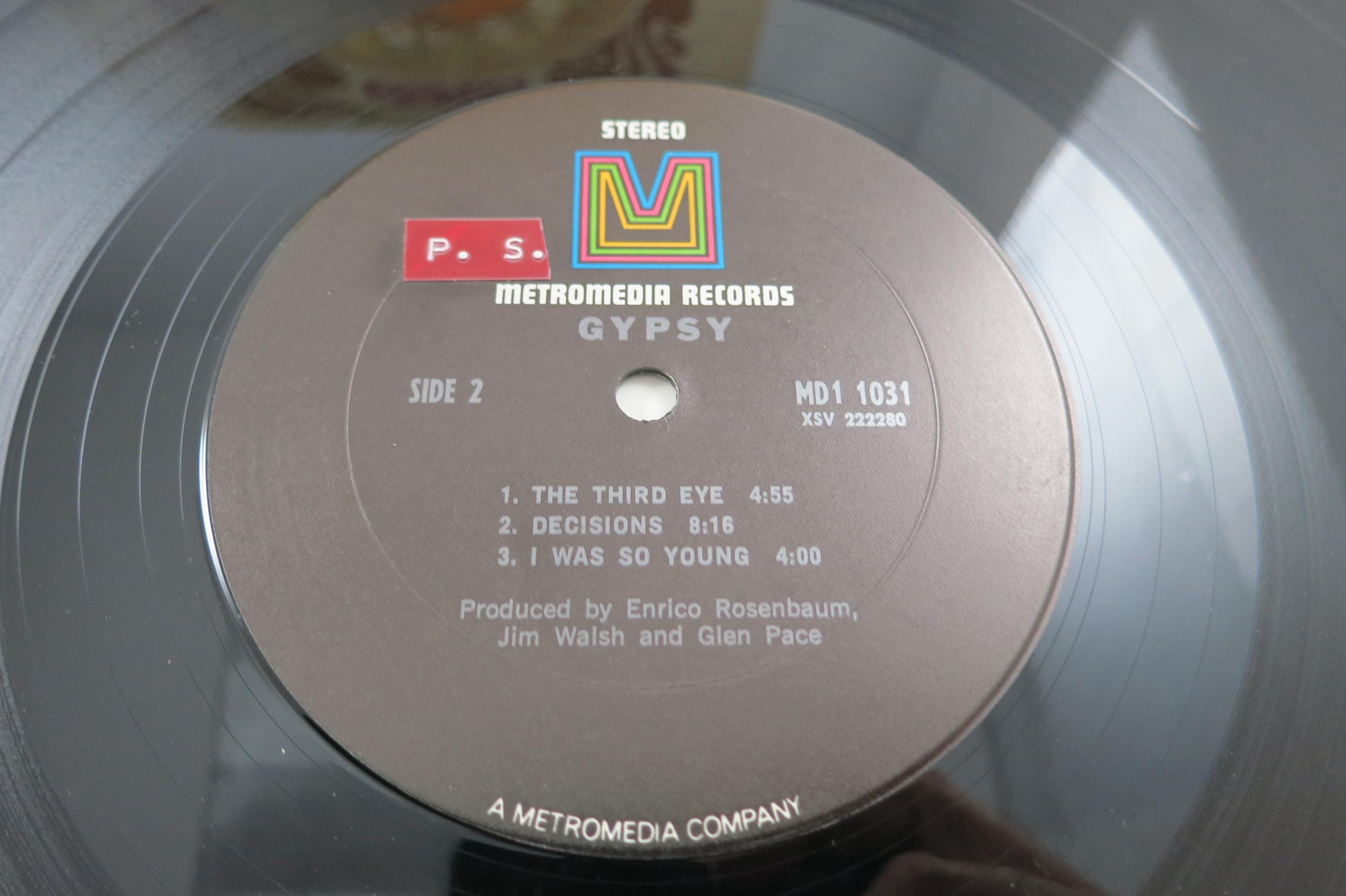 1970 Vinyl LP Record Gypsy Self Titled Excellent Condition 2 Record Set Original Pressing. Original cover is in very good condition and includes the inner paper sleeves. Has a small taped spot on the bottom seam and a previous owners initials on the labels and back cover. Records are excellent. Tracks are as follows