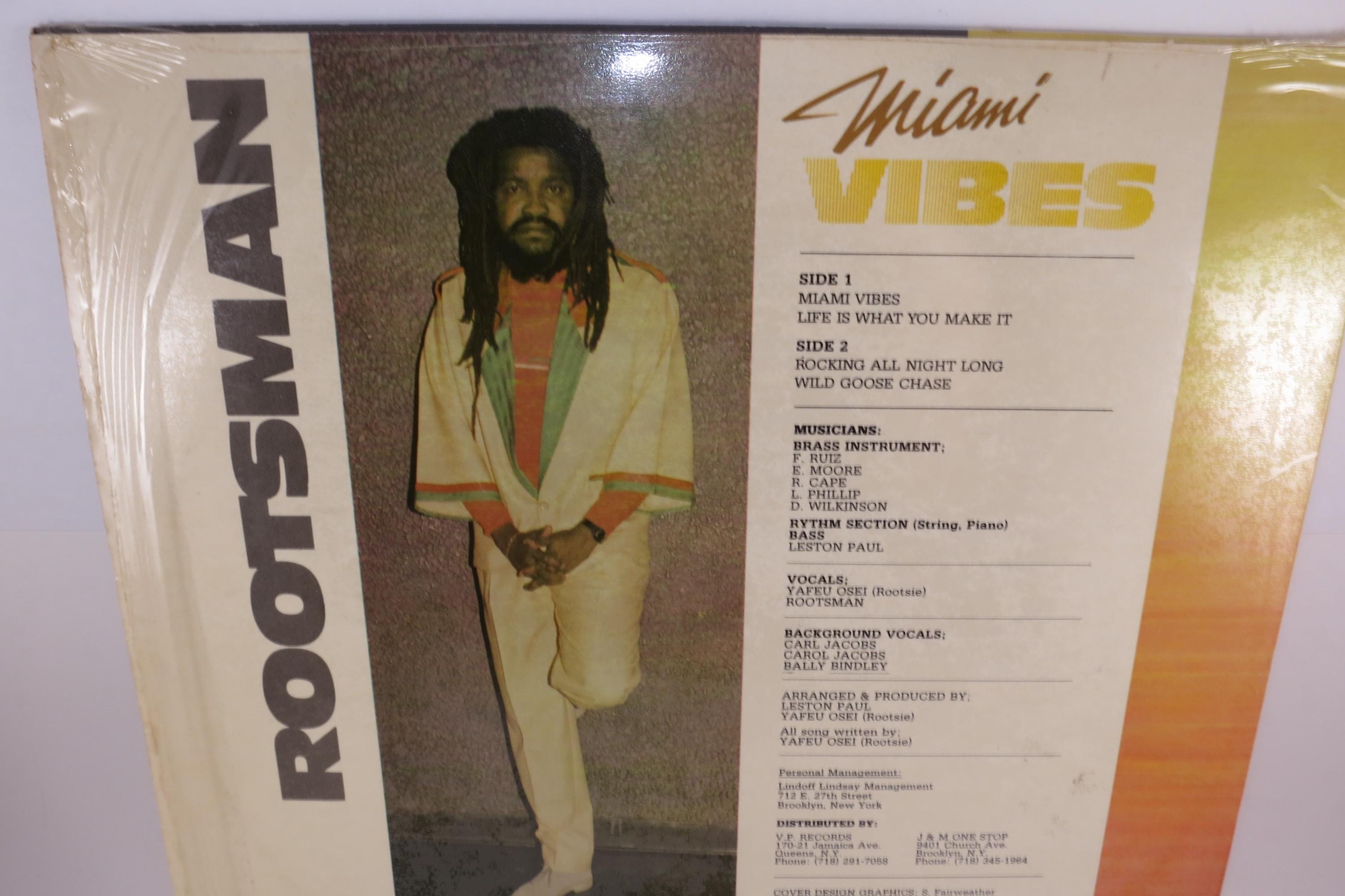 Vintage 1987 Miami Vibes Rootsman - Reggae Album Excellent Condition. Original cover is in excellent condition and includes the inner paper sleeve and factory shrink wrap. Record is excellent as well. Great Reggae Album! Includes the following tracks