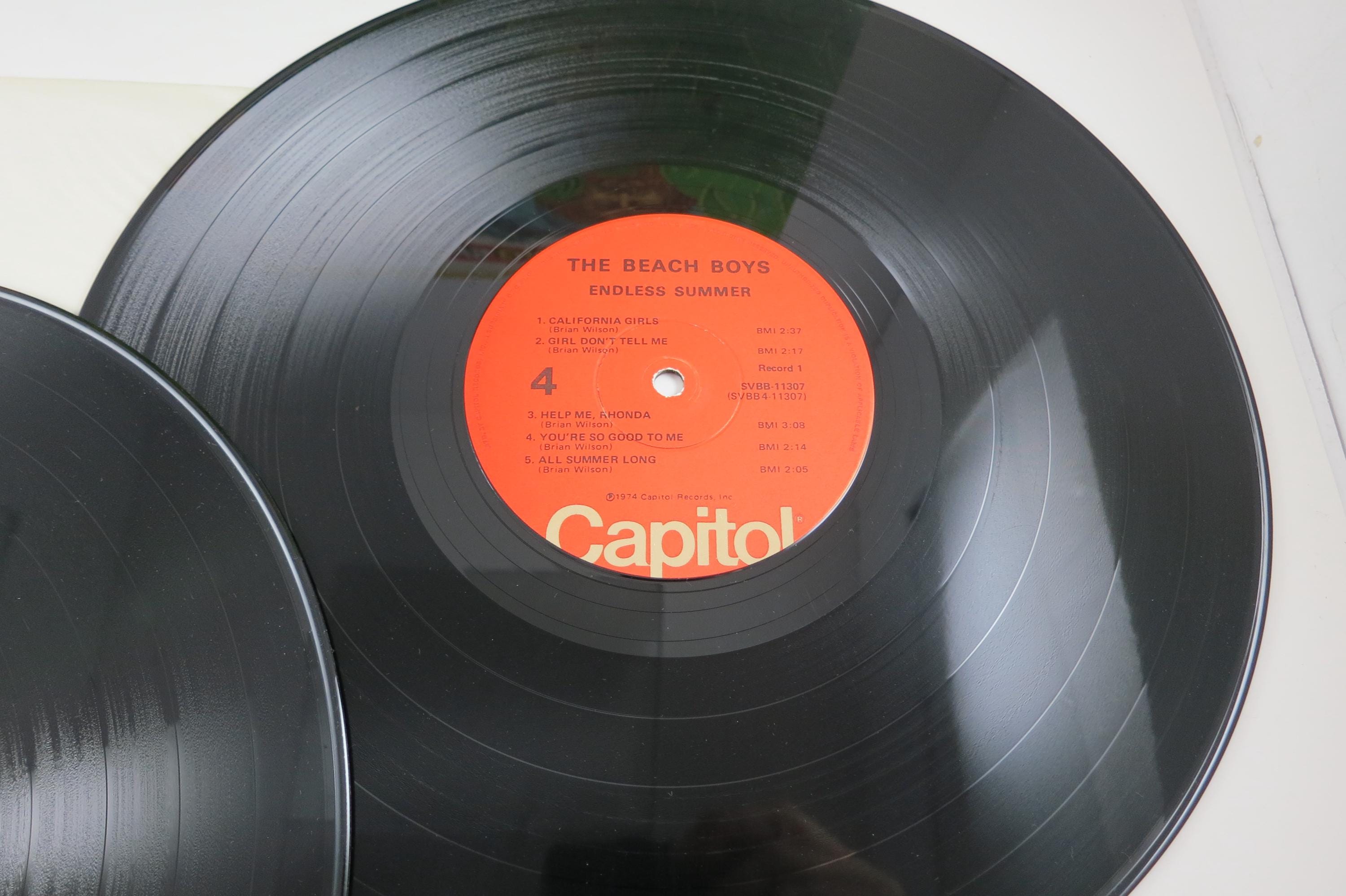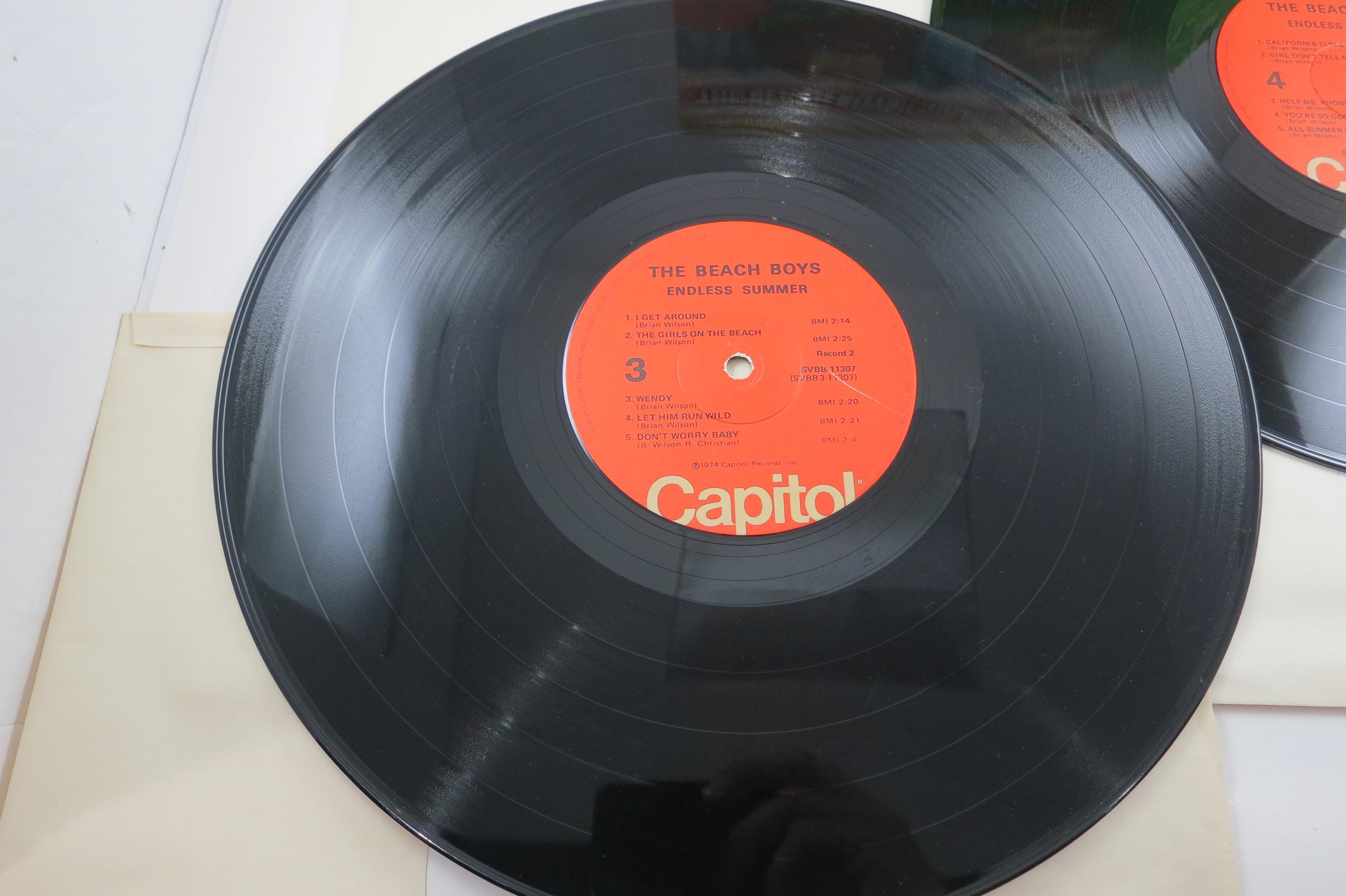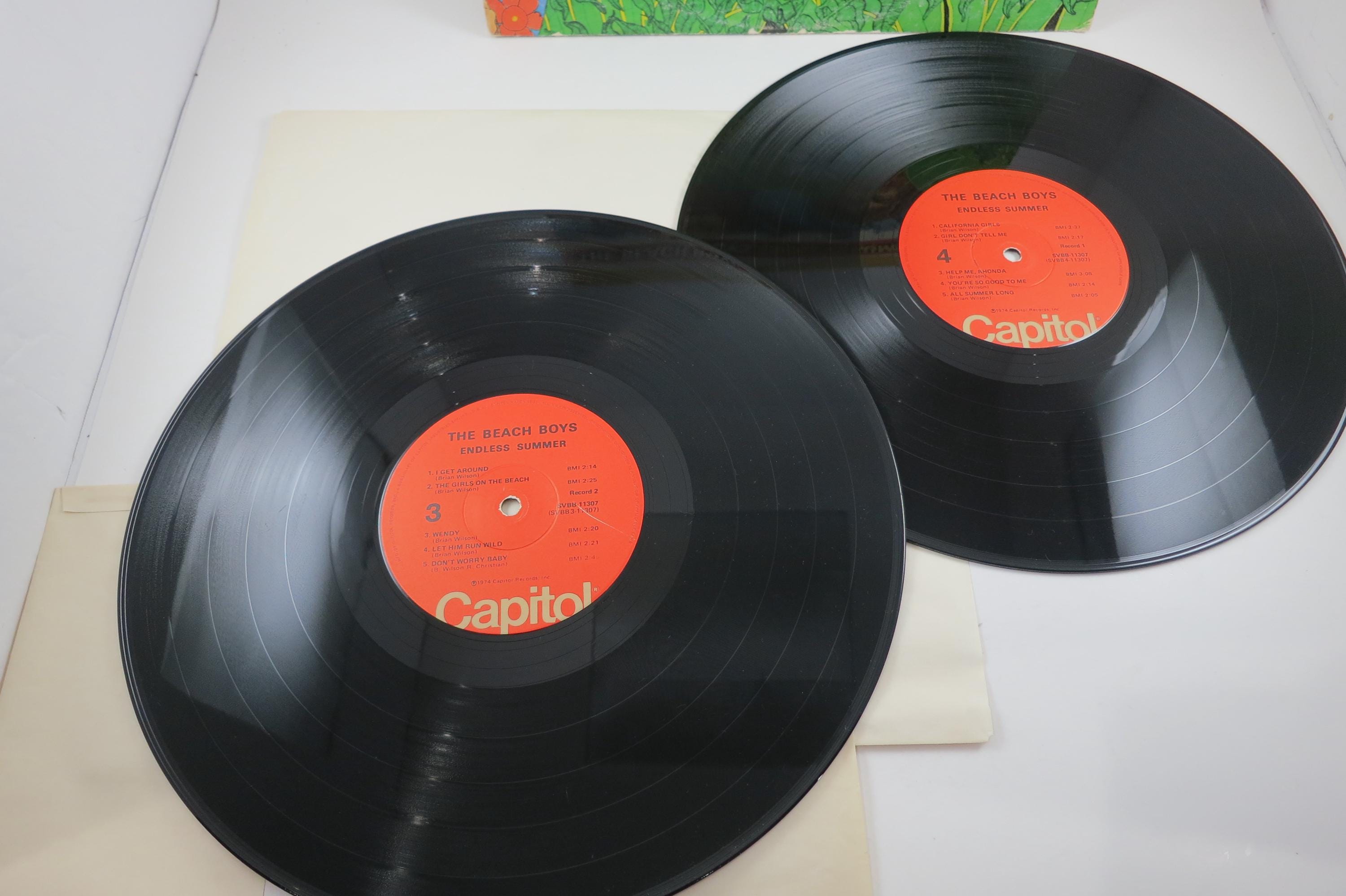 Vintage LP Record The Beach Boys Endless Summer Two LP Set Excellent Condition. Original cover is in very good condition and includes the inner sleeves. Has a previous owners initials. Both records are excellent and play well. Tracks are as follows