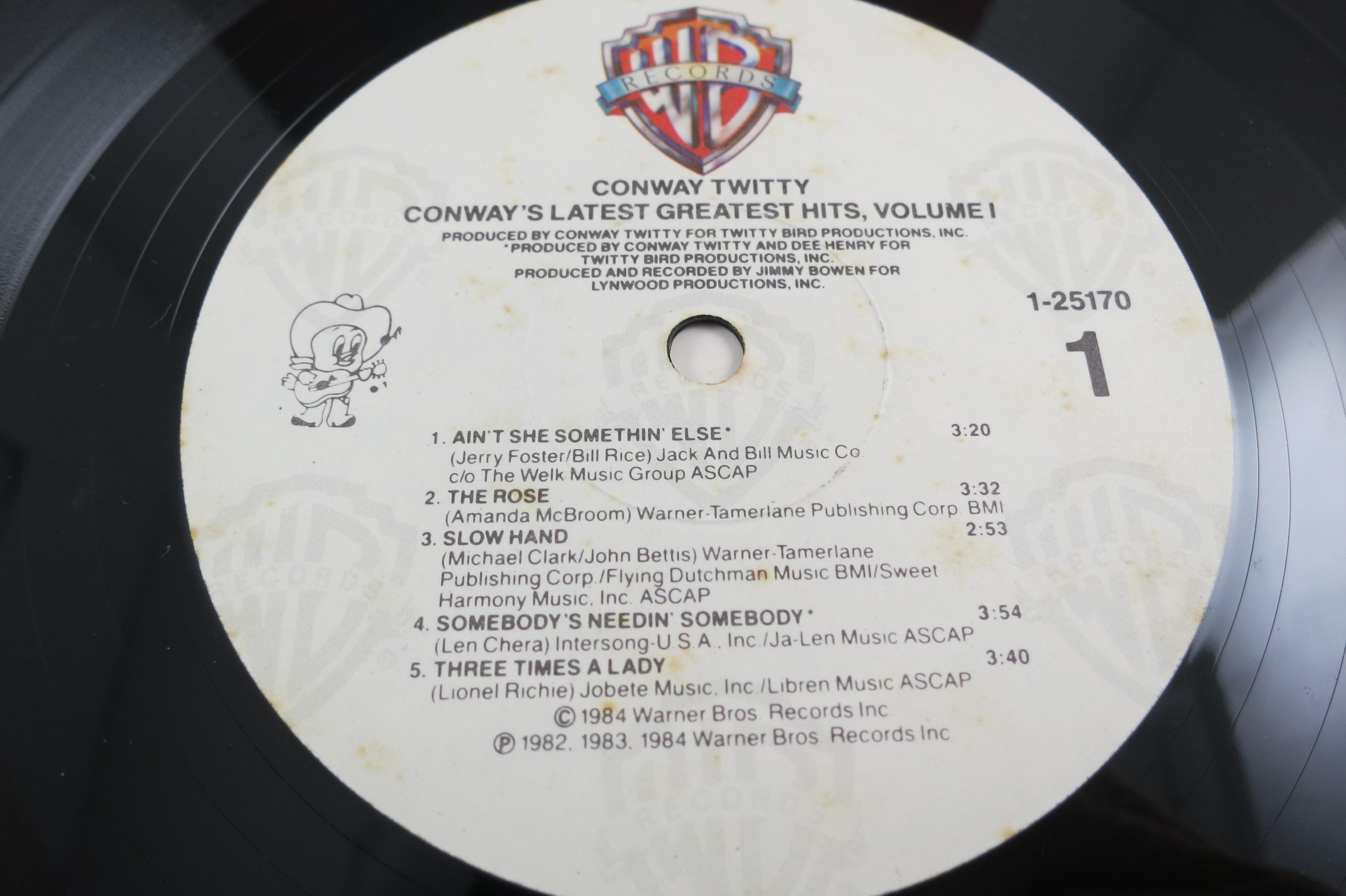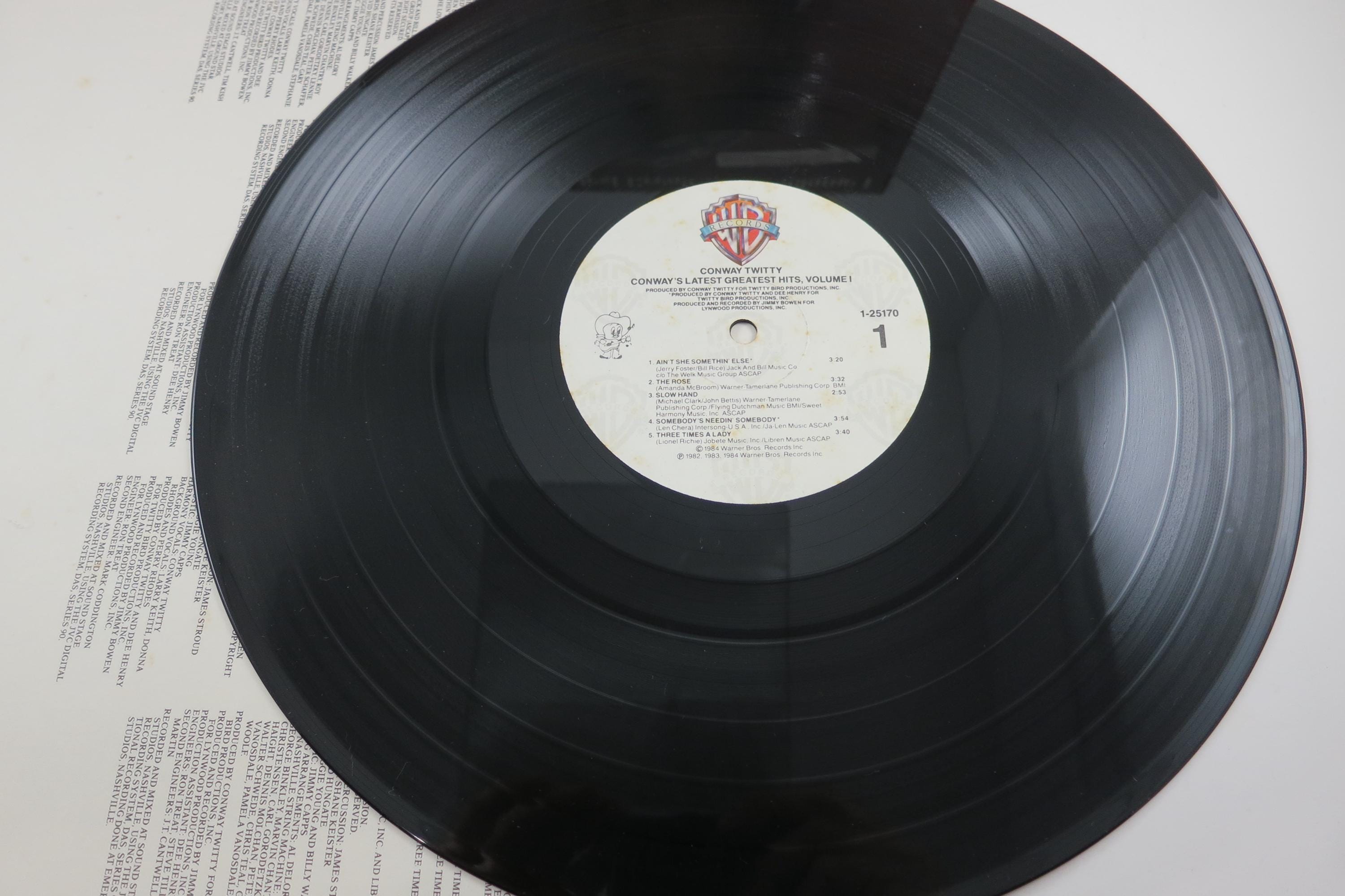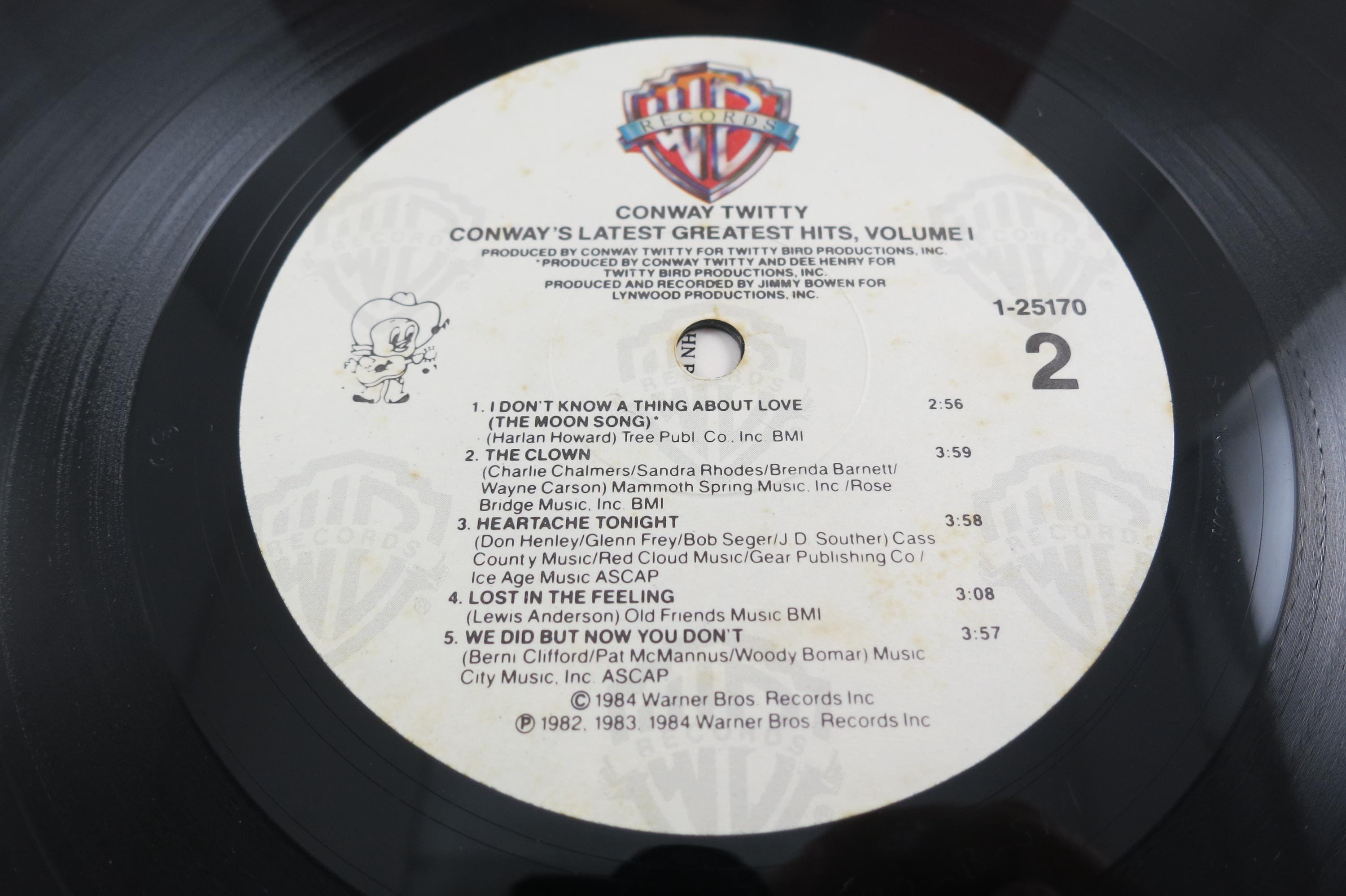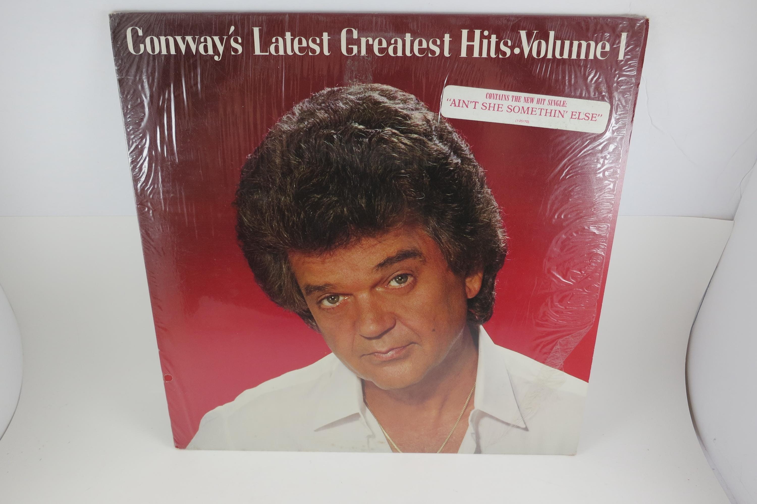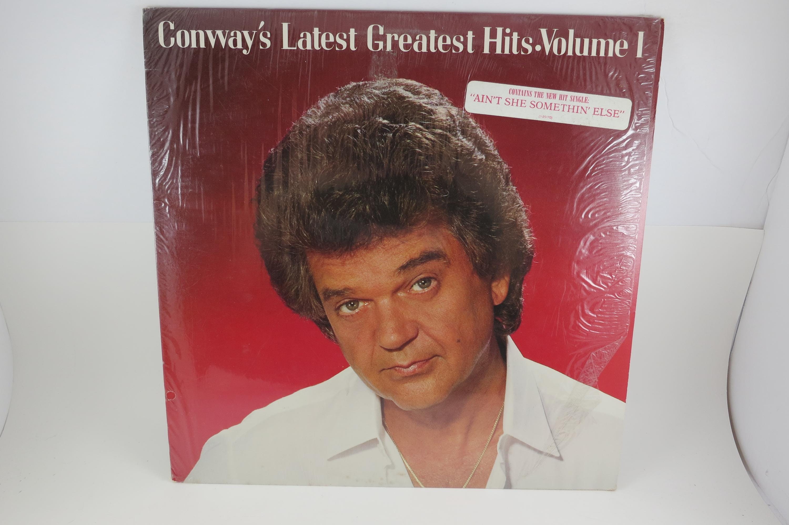 Vintage 1984 Vinyl LP Record Conway's Latest Greatest Hits Vol 1 Excellent Condition In Shrink Conway Twitty. Original cover is in excellent condition and includes the original inner sleeve and factory shrink wrap, as well as the hype sticker. Record is excellent as well. Tracks are as follows