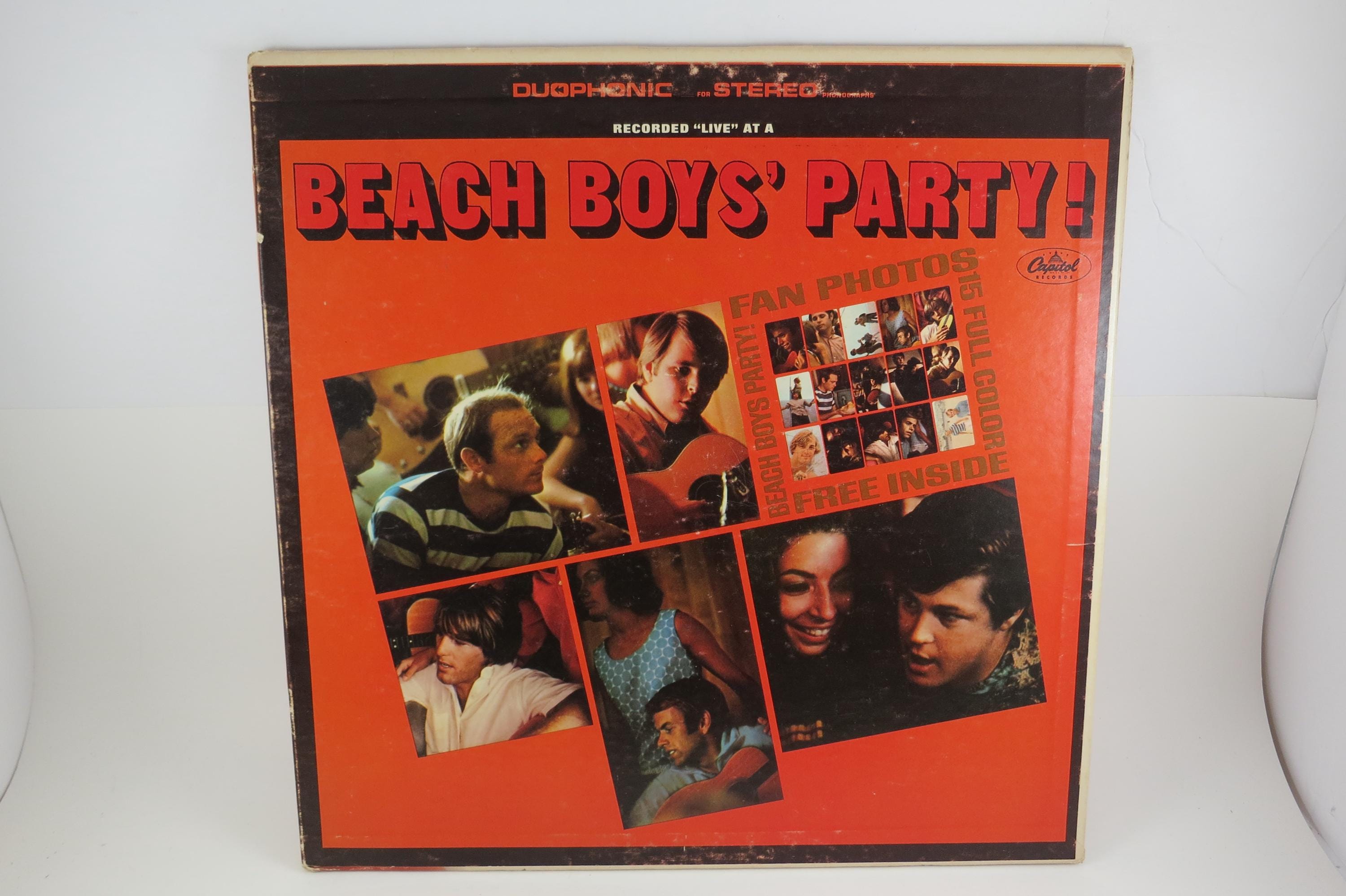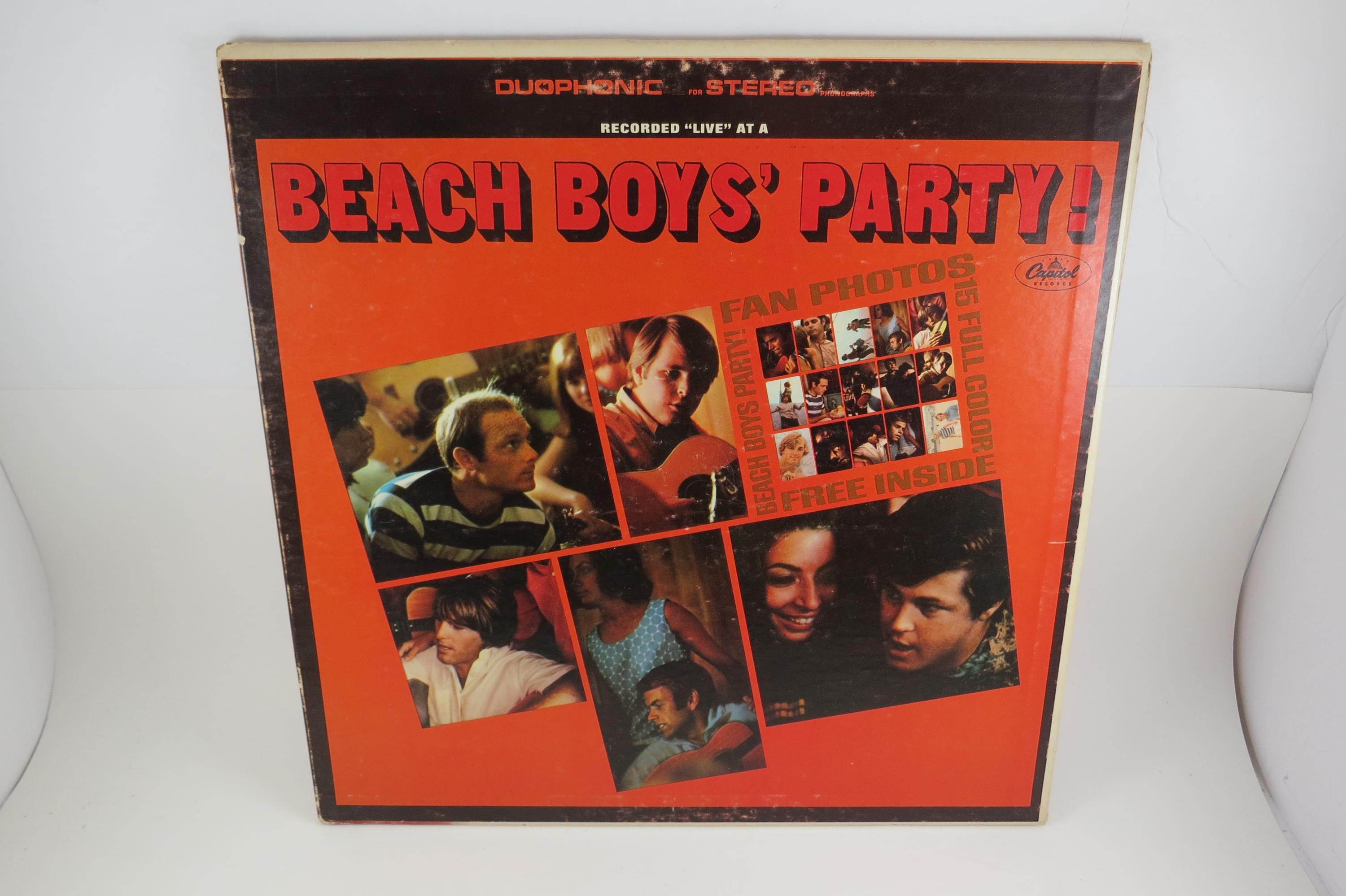 Vintage 1965 The Beach Boys Party! Vinyl LP - Duophonic Stereo Pressing Excellent Plus Condition with Photo Cards. Original cover is in excellent condition and includes the original inner paper sleeve. Includes all the original cards as well. Record is excellent plus. Original Duophonic Stereo Pressing. Tracks are as follows