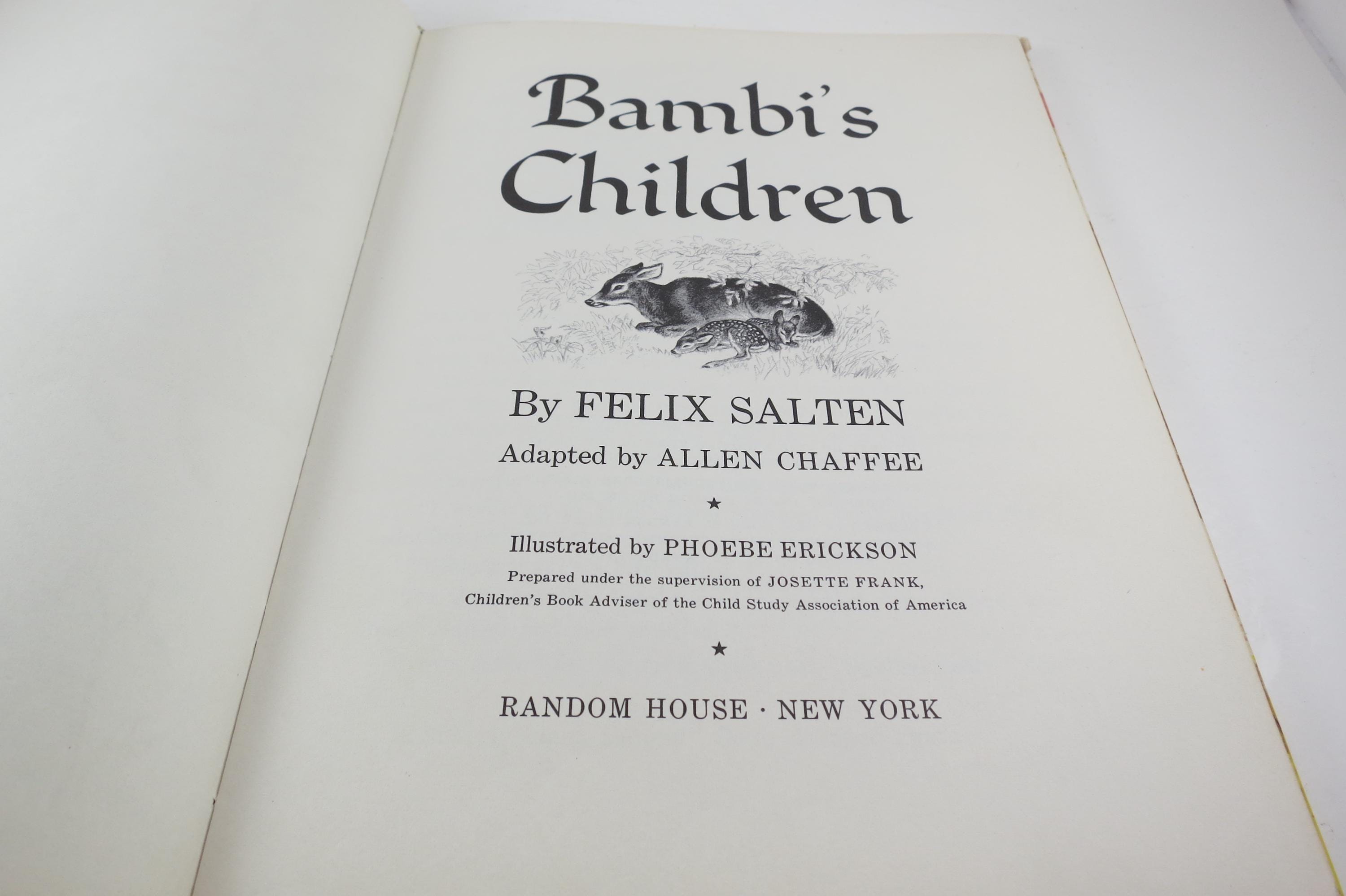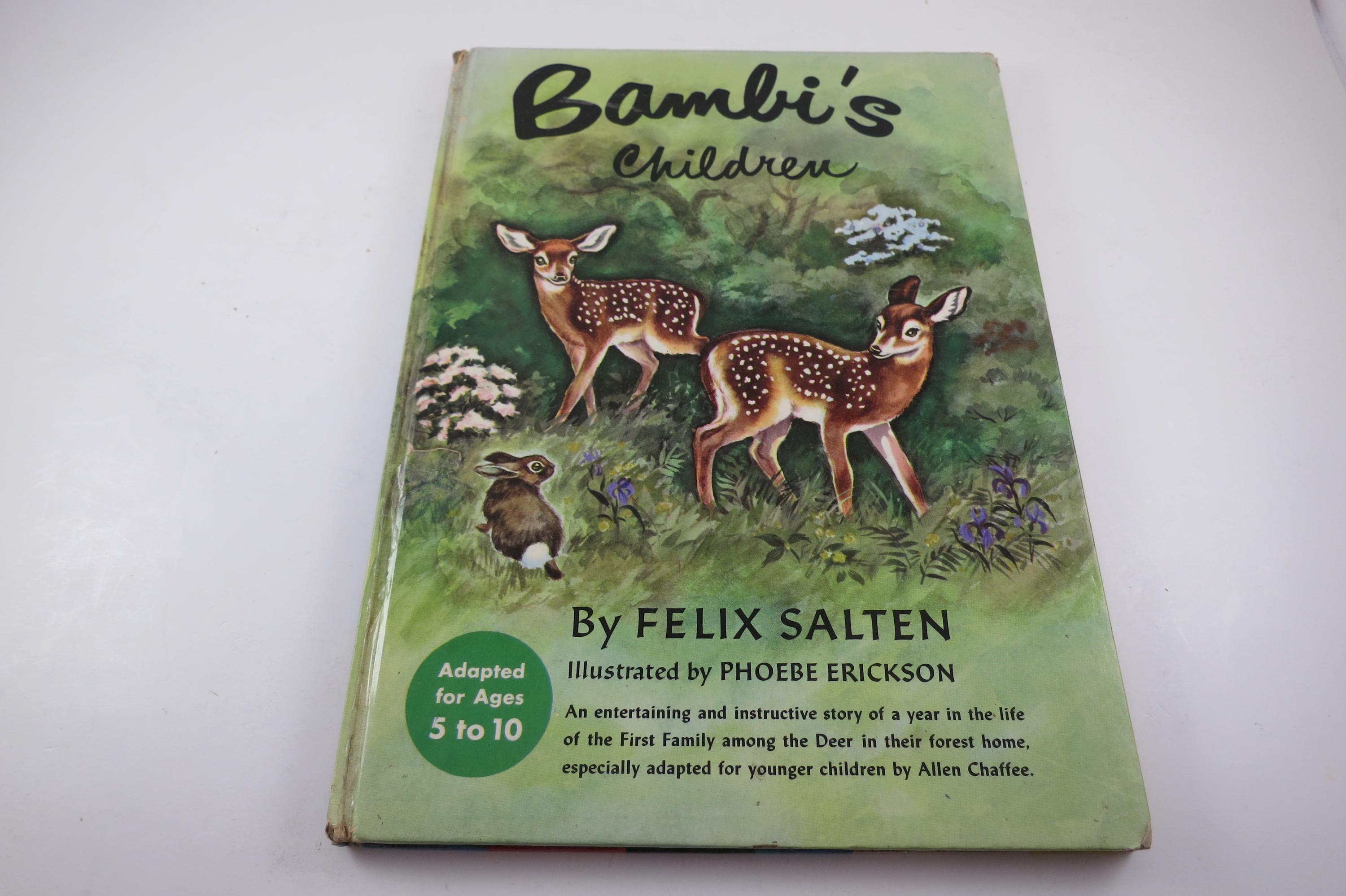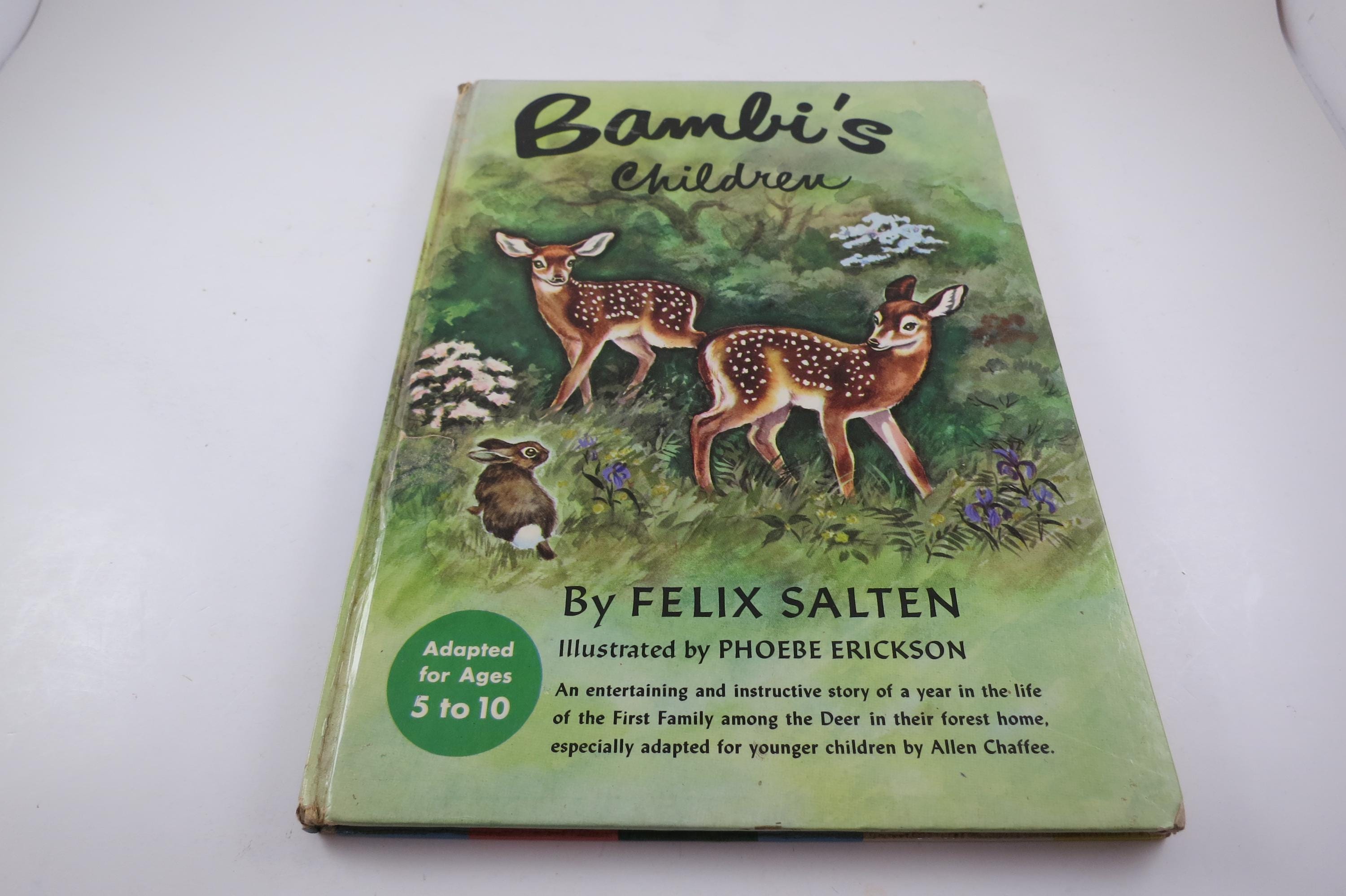 Vintage 1950 Hardcover Children's Book Bambi's Children Felix Salten Illustrated Winner Books Excellent Condition. Has the previous owners name inside the cover.