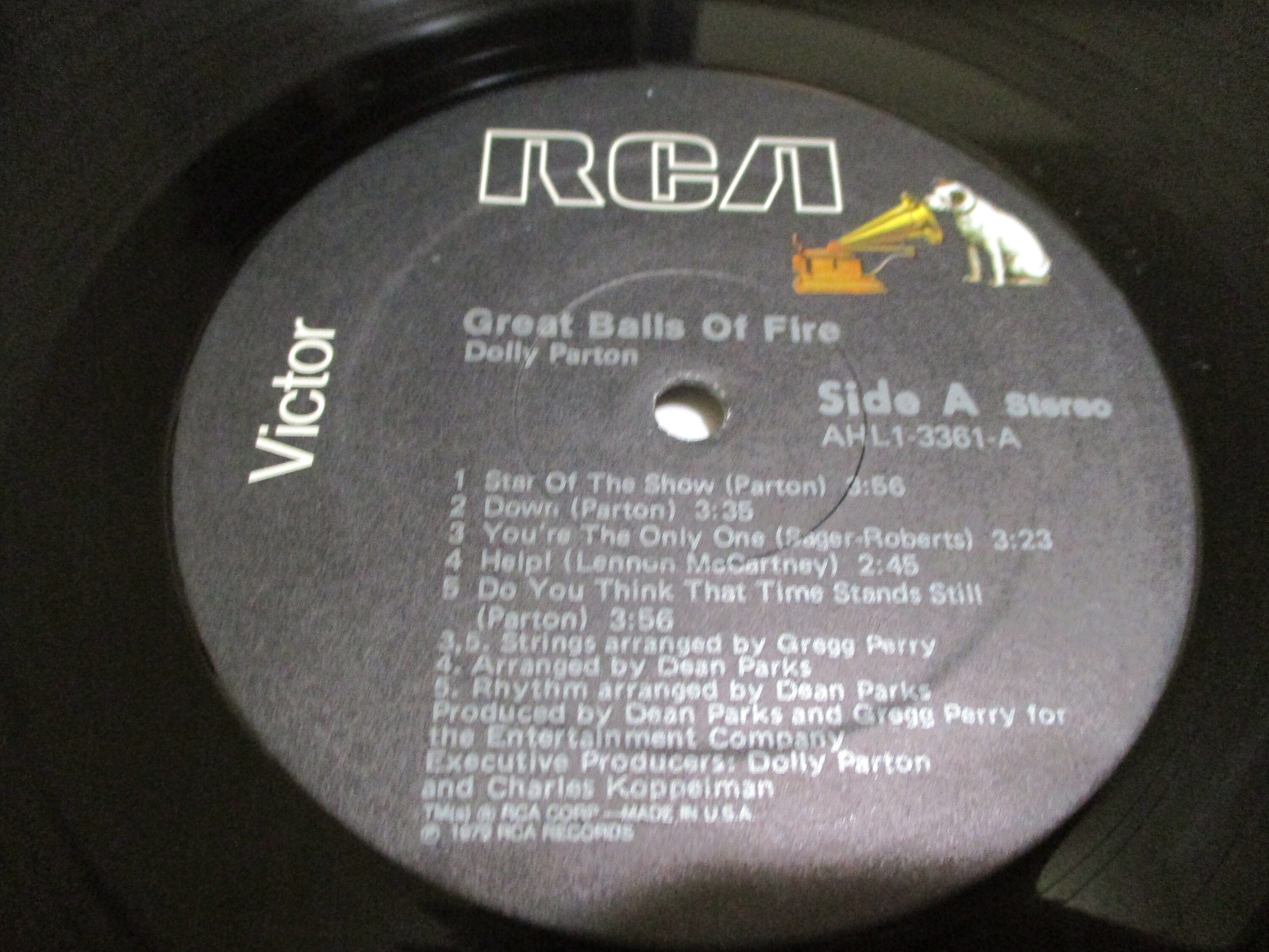 Vintage 1979 Vinyl LP Record Dolly Parton Great Balls of Fire. Original cover is in Excellent condition and includes the original inner paper sleeve. Record is very good with light marks. Tracks are as follows
