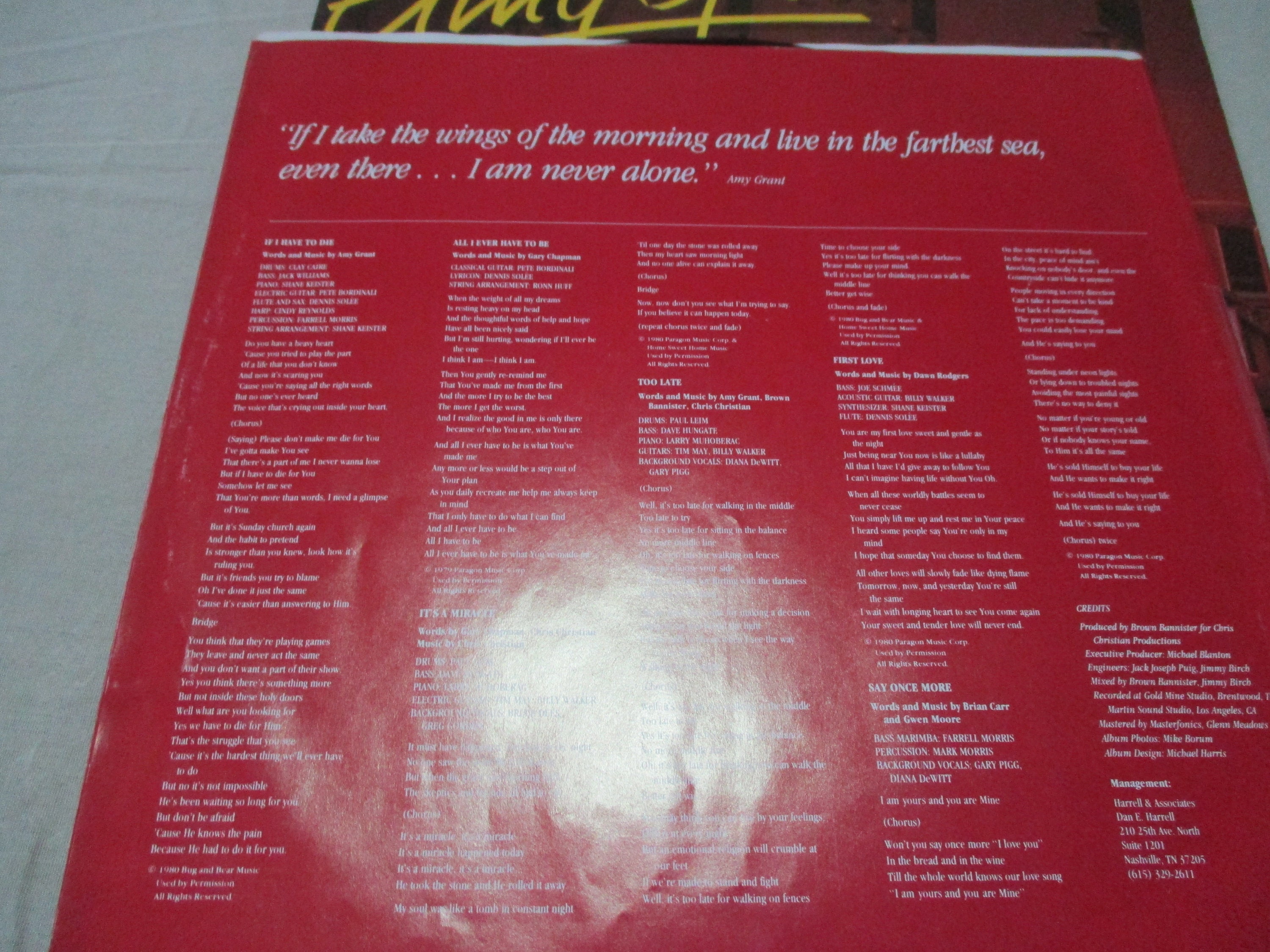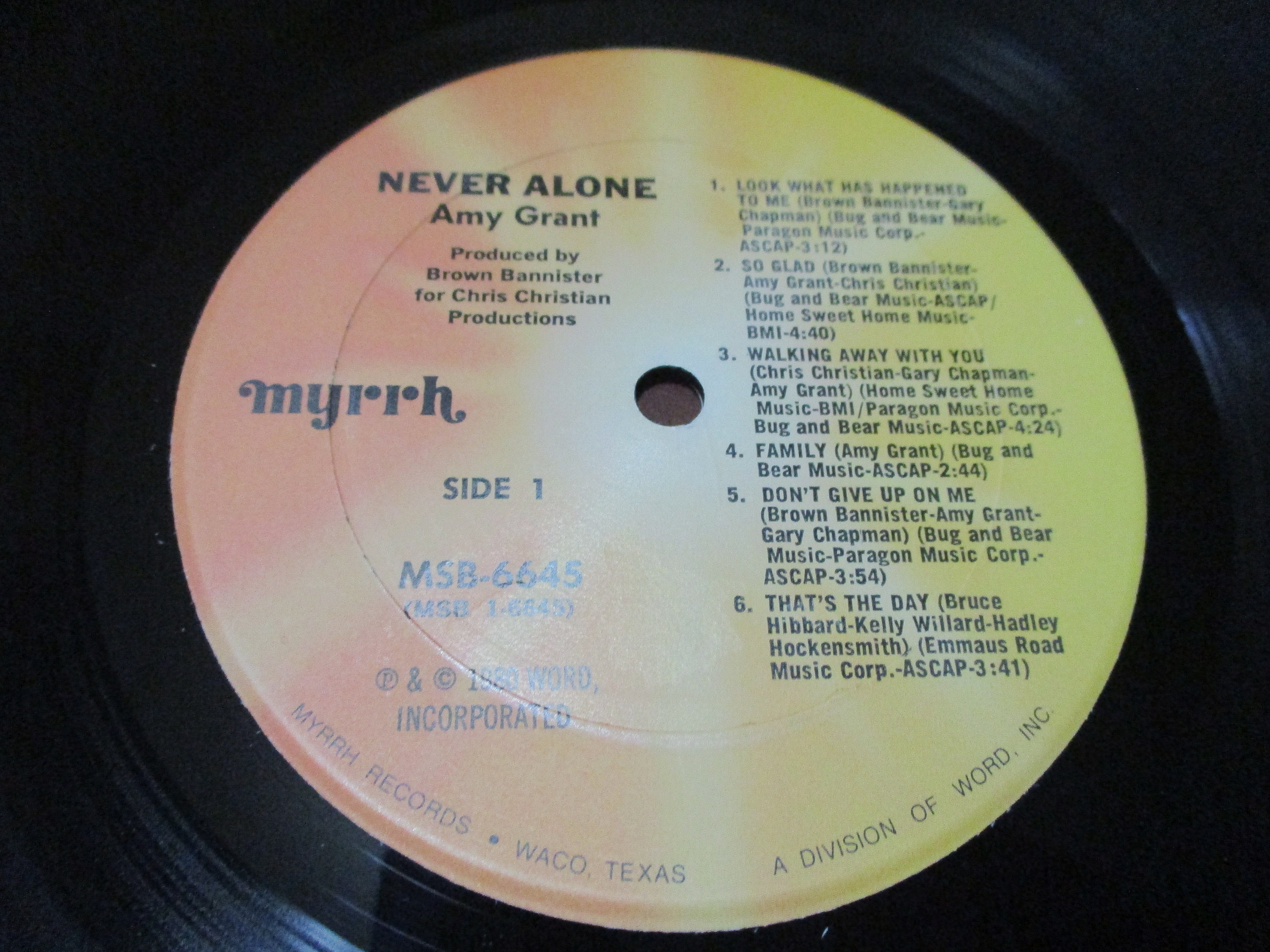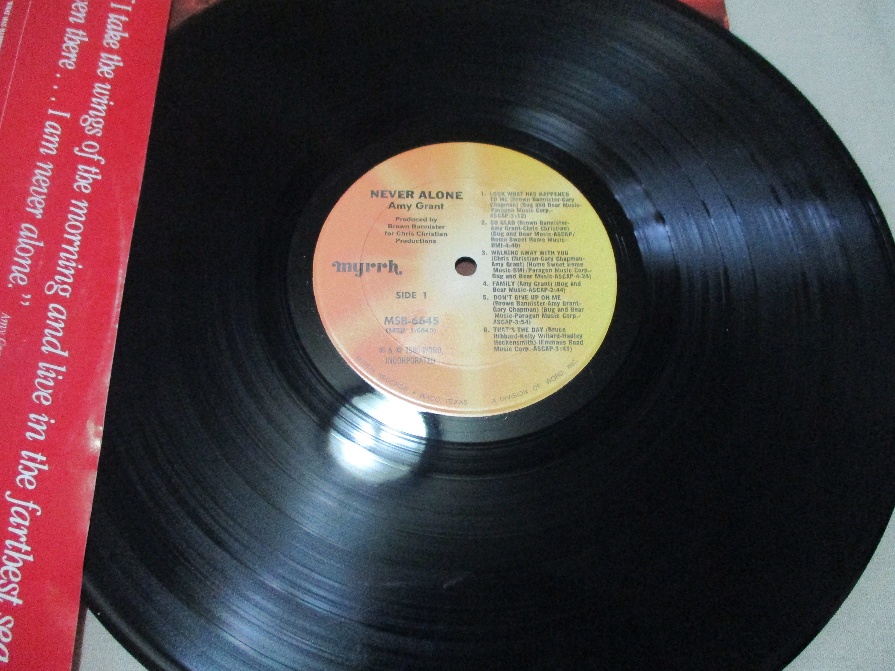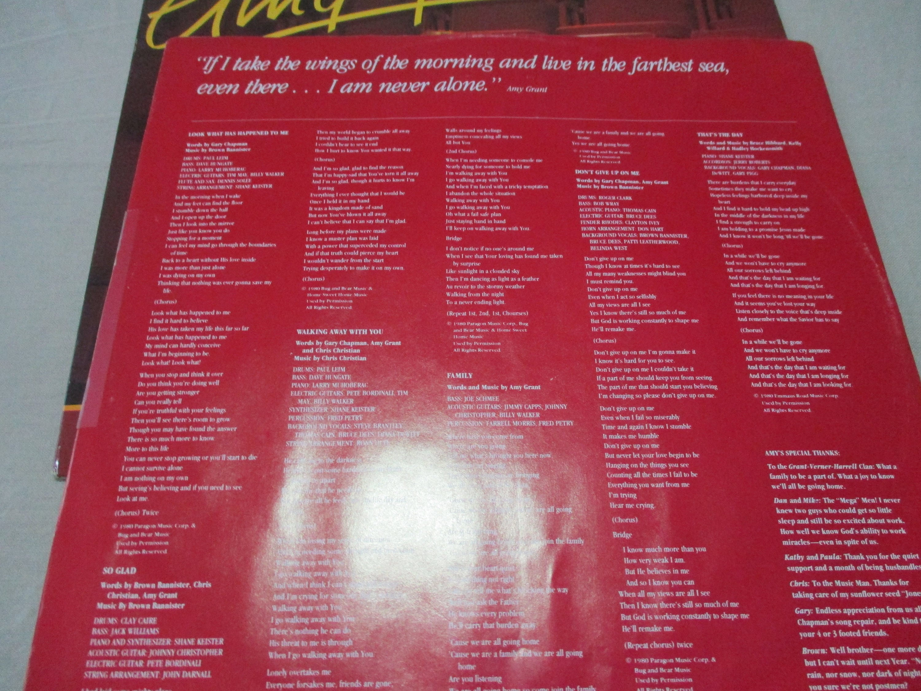 Vintage 1980 Vinyl LP Record Amy Grant Never Alone Excellent Condition. Original cover is in excellent condition and includes the original inner paper sleeve. Record is excellent as well. Tracks are as follows