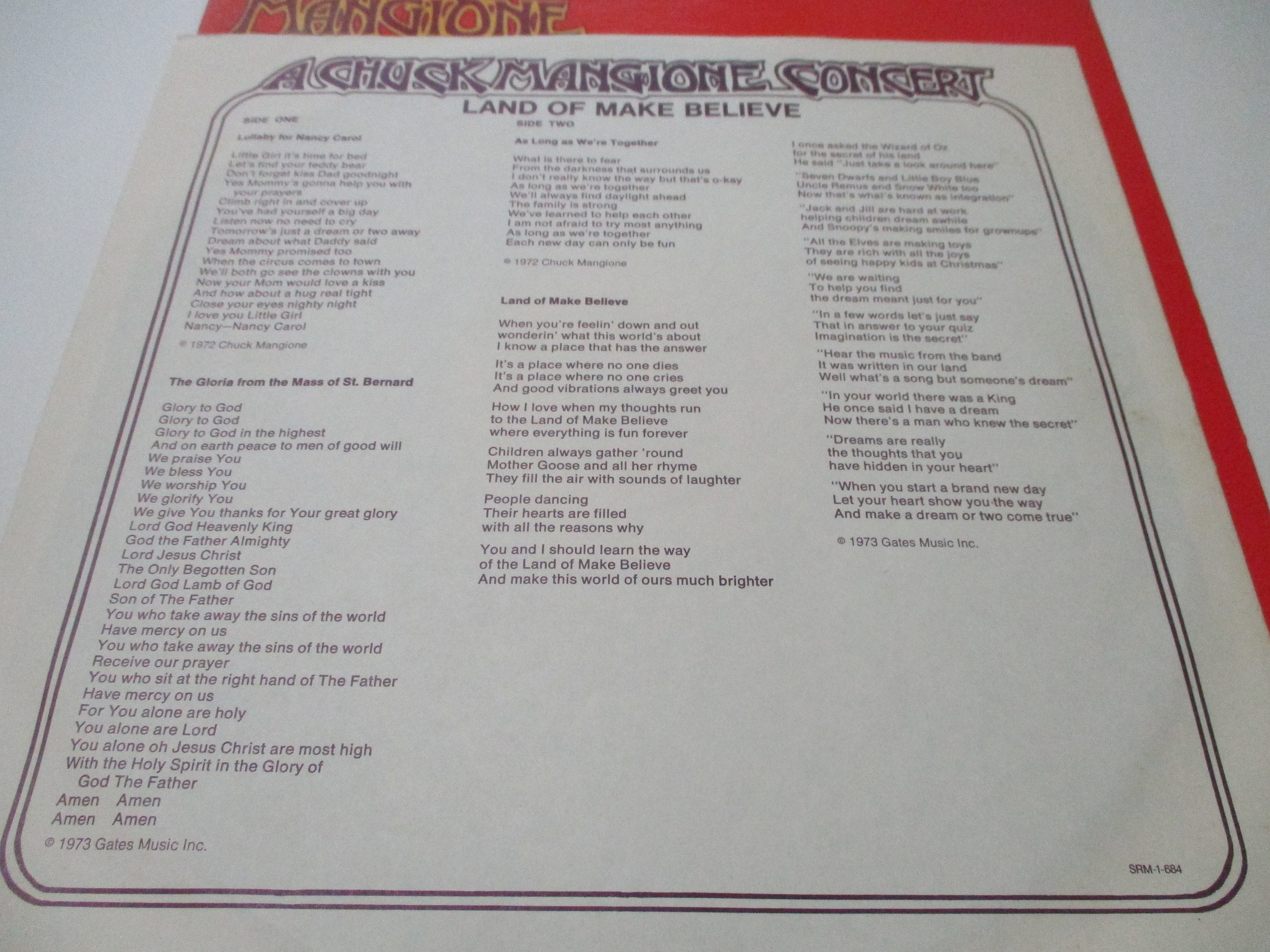 Vintage 1973 Vinyl LP Jazz Record Land of Make Believe A Chuck Mangione Concert Excellent Condition. Original cover is in excellent condition and includes the original inner paper sleeve. Record is excellent as well. Tracks are as follows