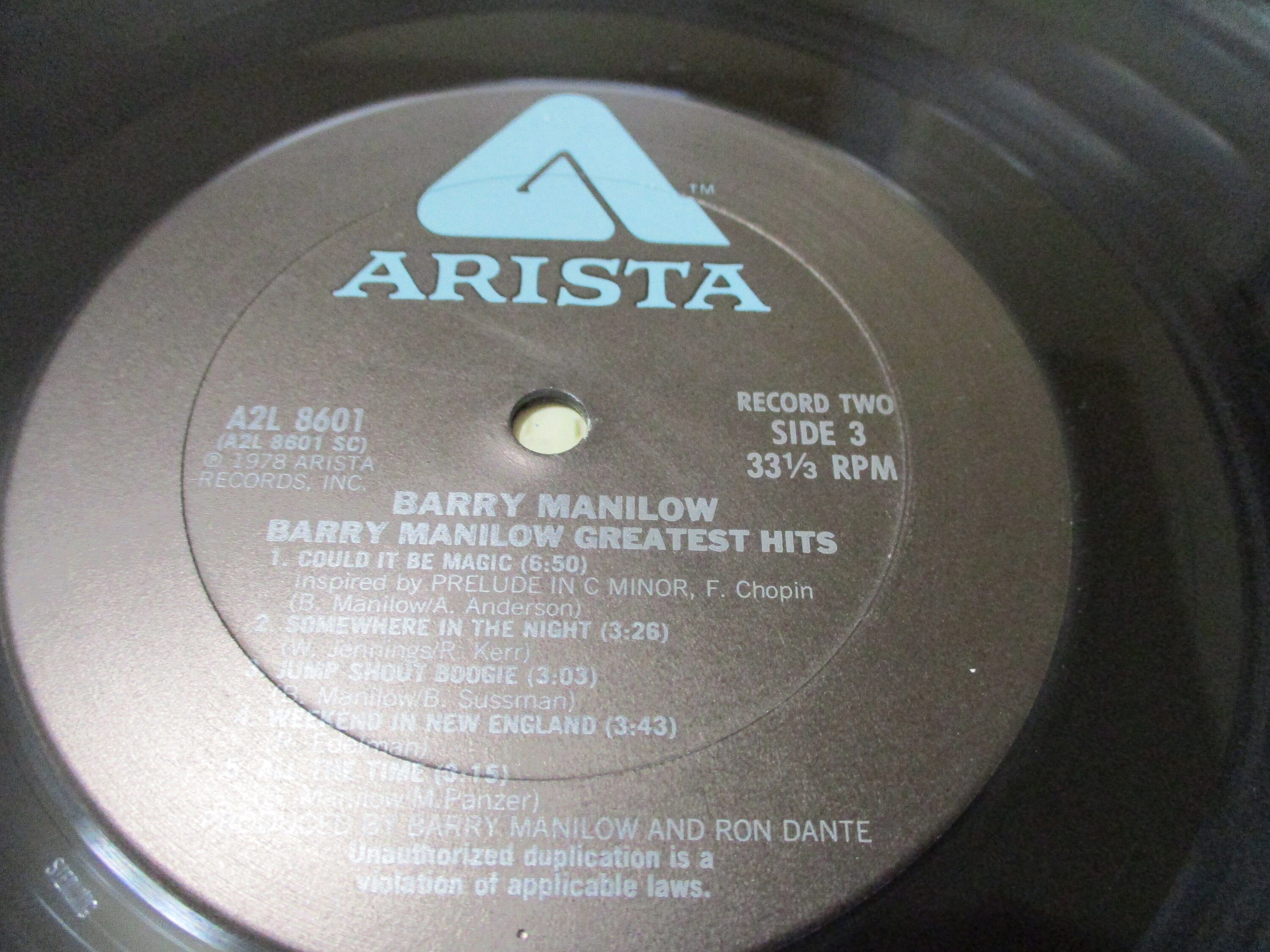 Vintage 1978 Vinyl LP Record Barry Manilow Greatest Hits Excellent Condition. Original cover is in excellent condition and includes both original inner paper sleeves. Both records are excellent plus. Tracks are as follows