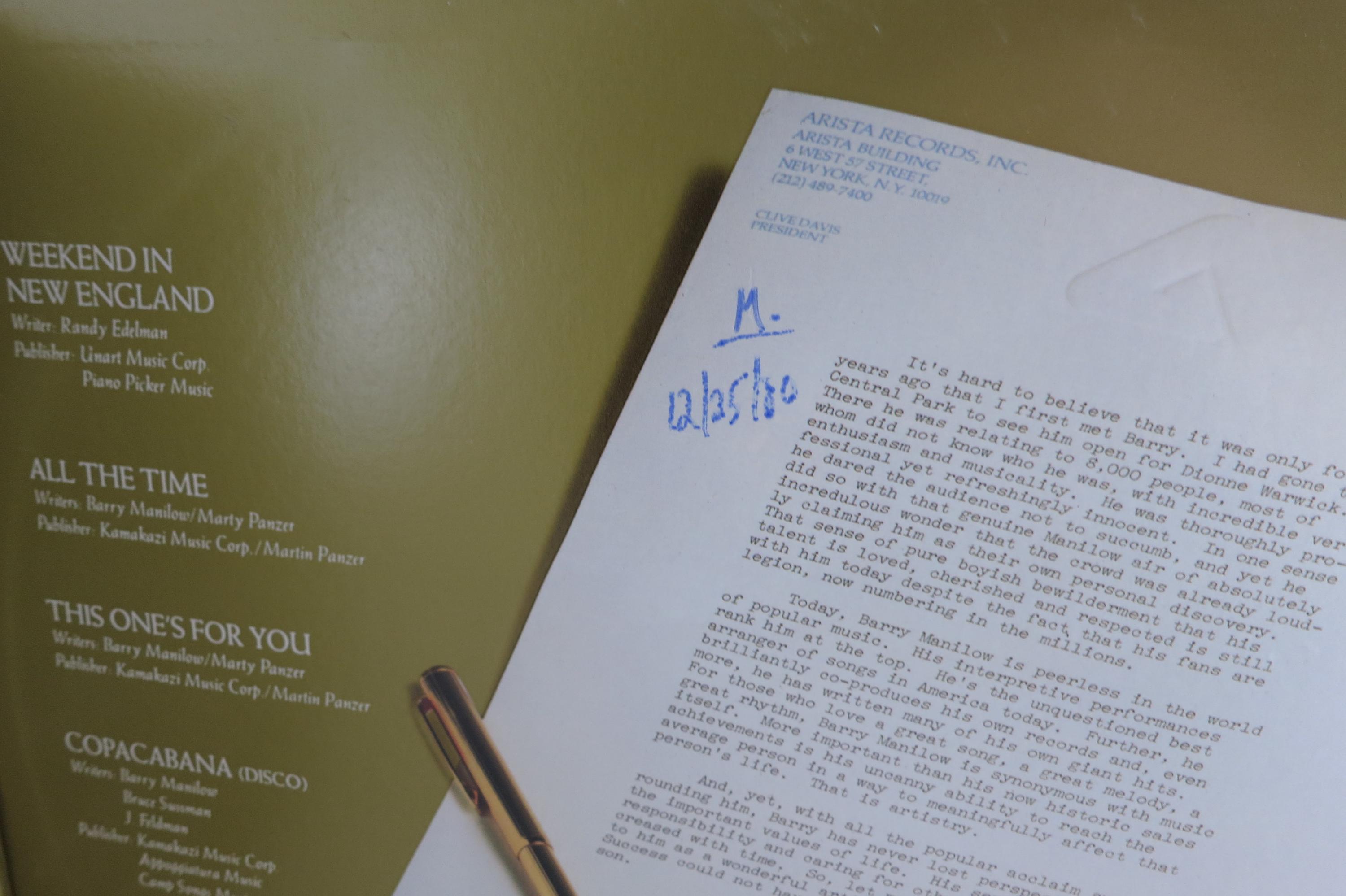 Vintage Barry Manilow Greatest Hits Vinyl Record, 1978 LP