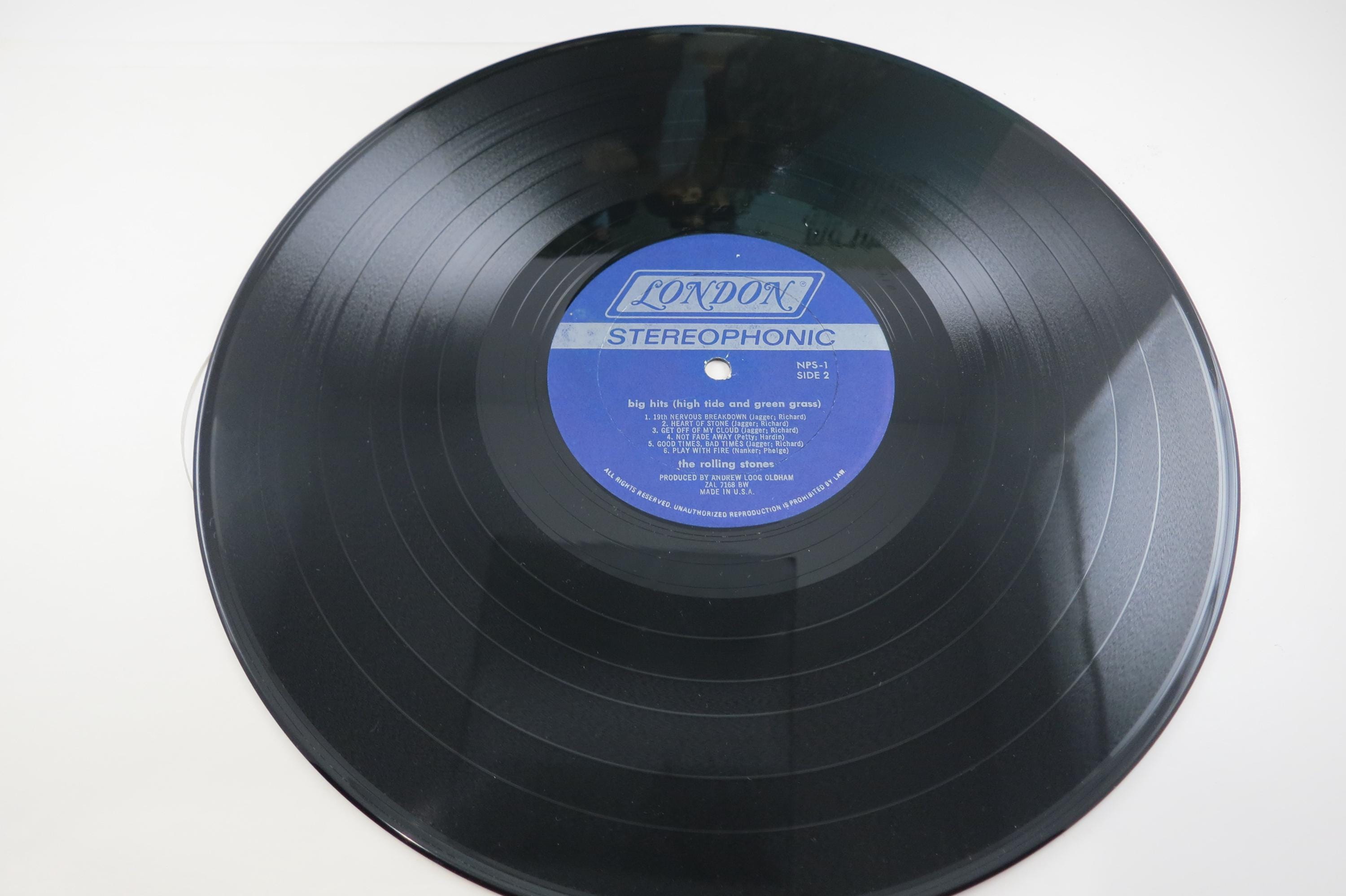 1966 Vinyl LP Record The Rolling Stones Big Hits High Tide and Green Grass Stereo Pressing Excellent Condition. Original cover is very good and includes the inner paper sleeve as well as the original insert booklet. Has a wear spot in the center of the spine. Record is excellent. Tracks are as follows