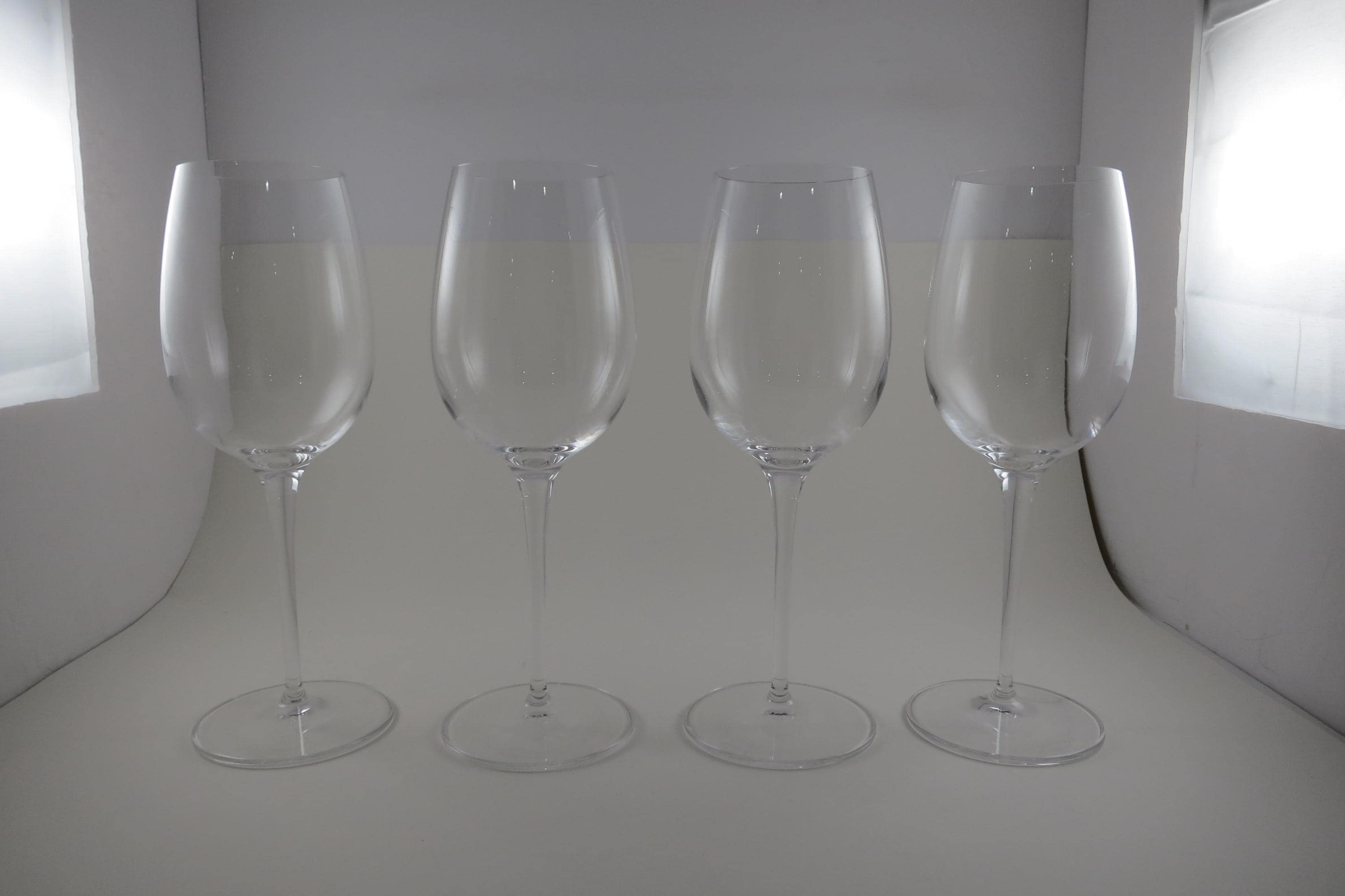 Set of four 9 Inch Beautiful Crystal Wine Glasses, all signed on the base, pristine condition with no damages.