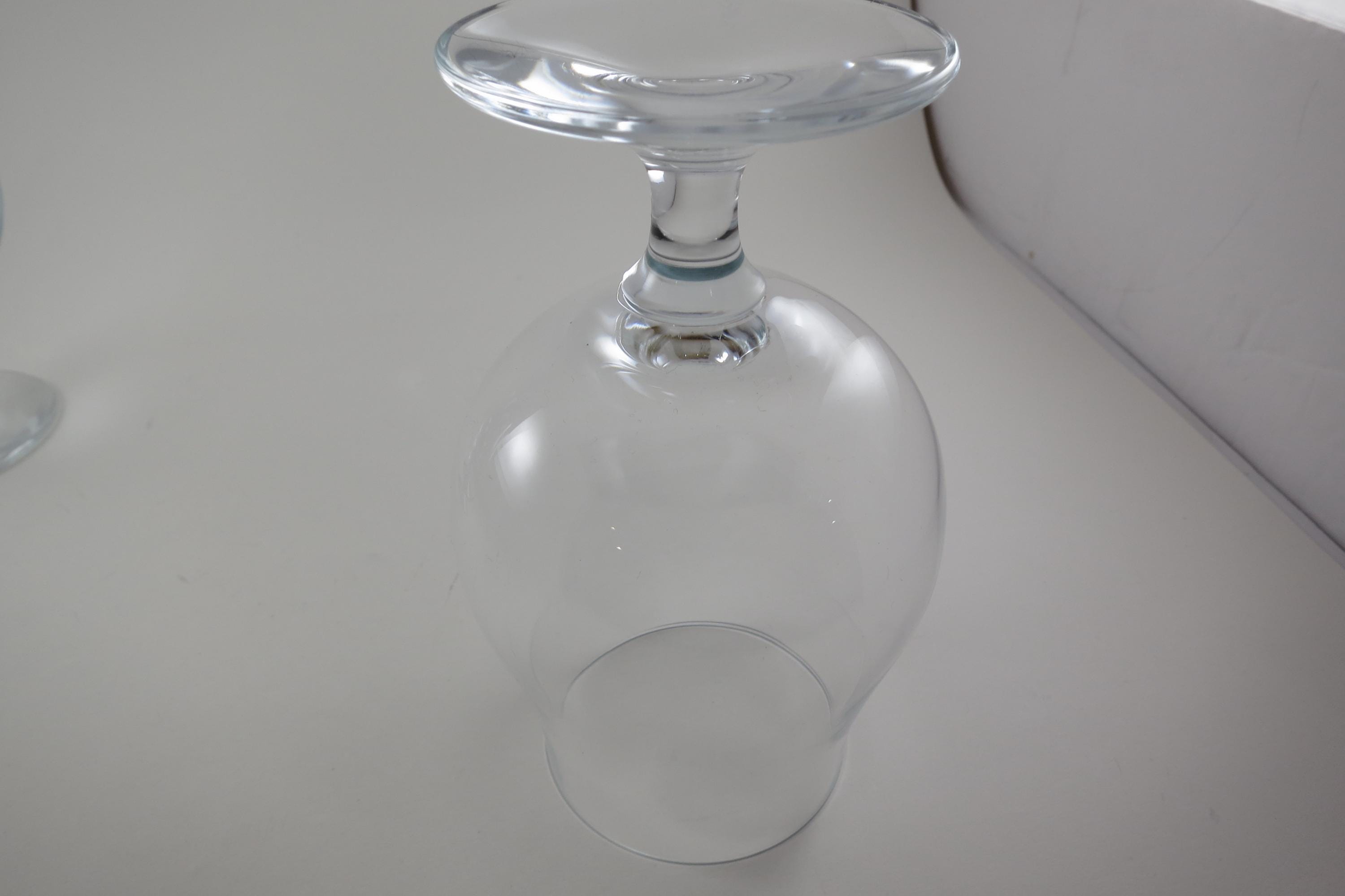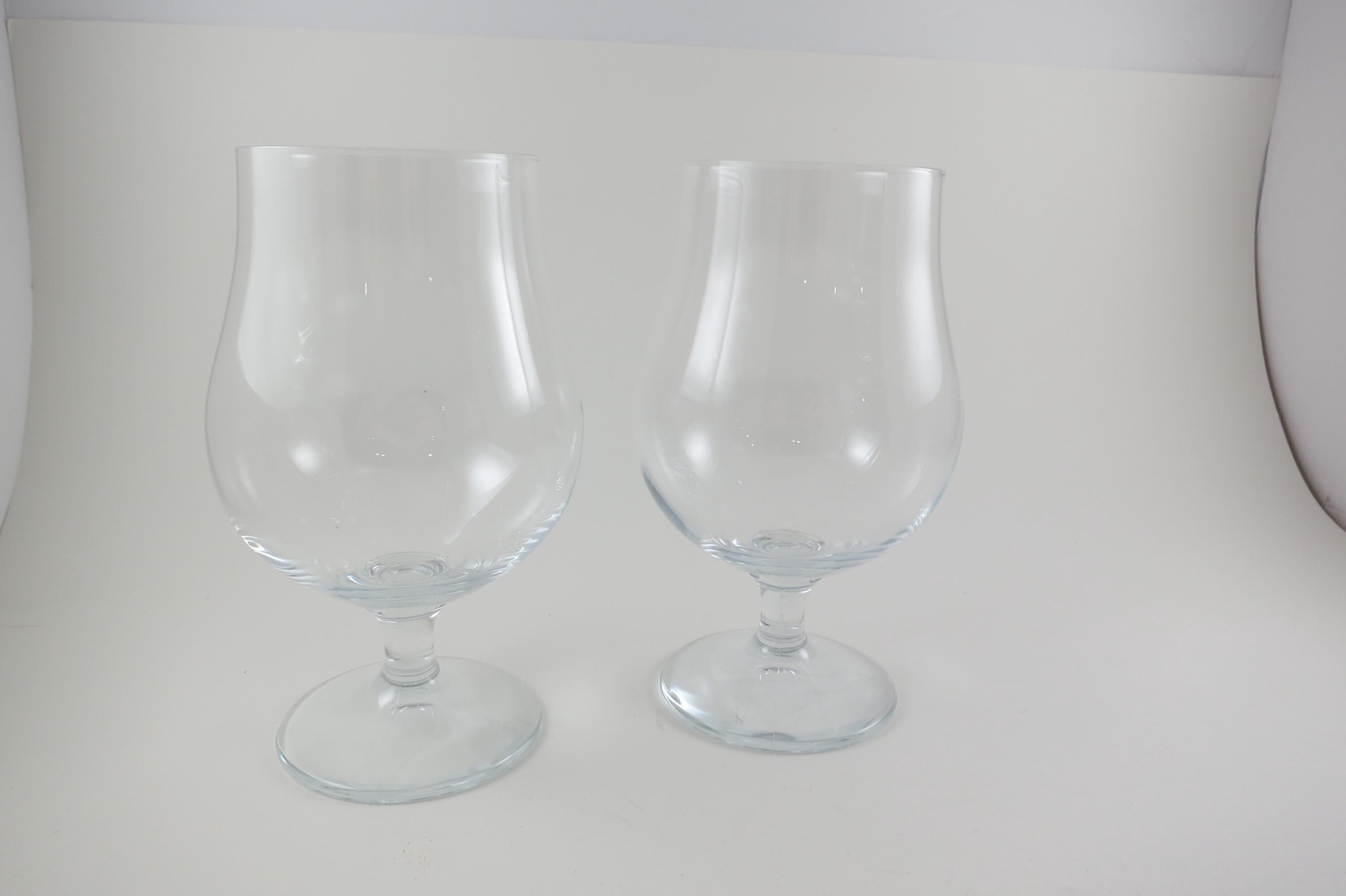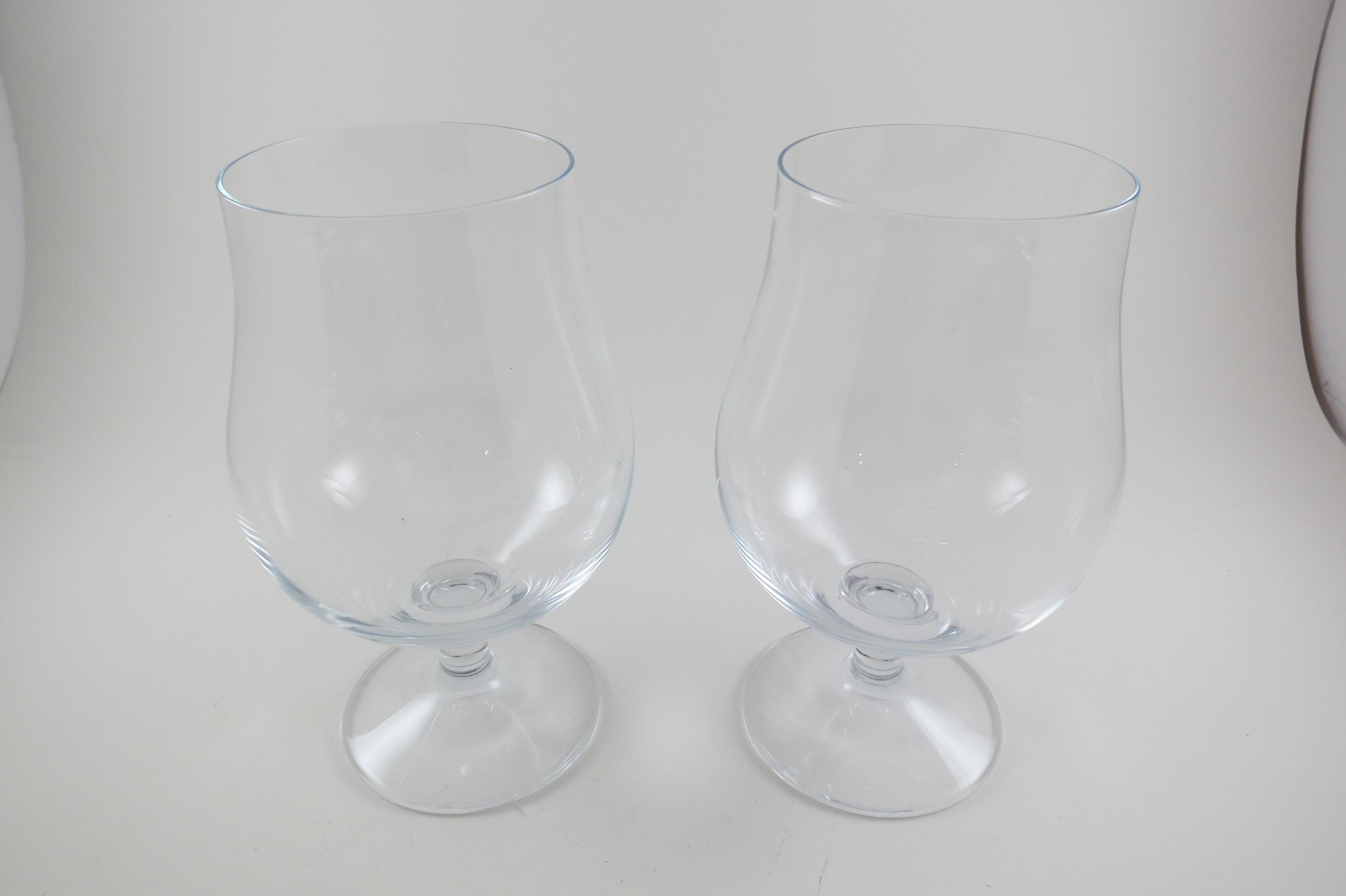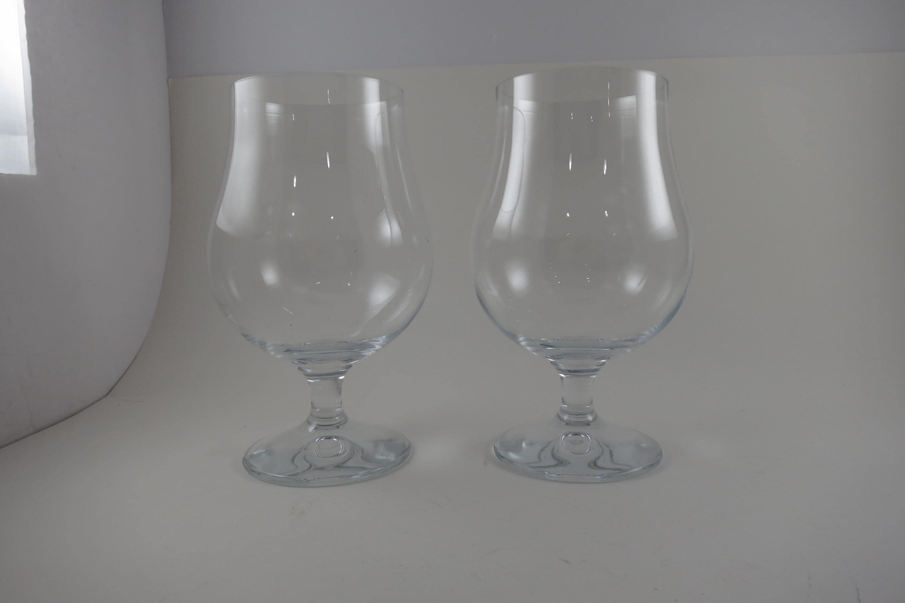These measure 6 inches tall and look great in almost any setting. This listing is for a pair of glasses, Both in pristine condition.