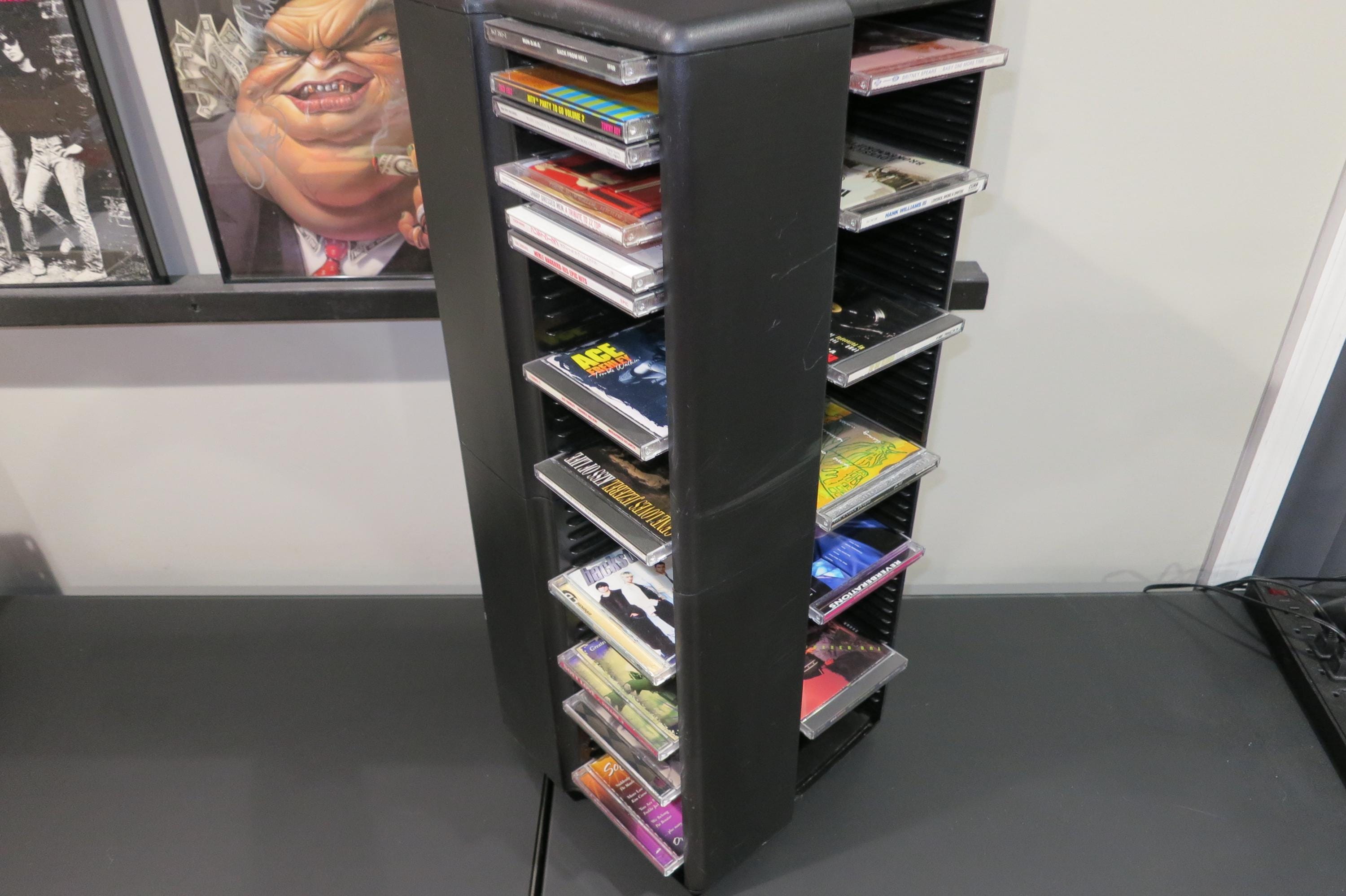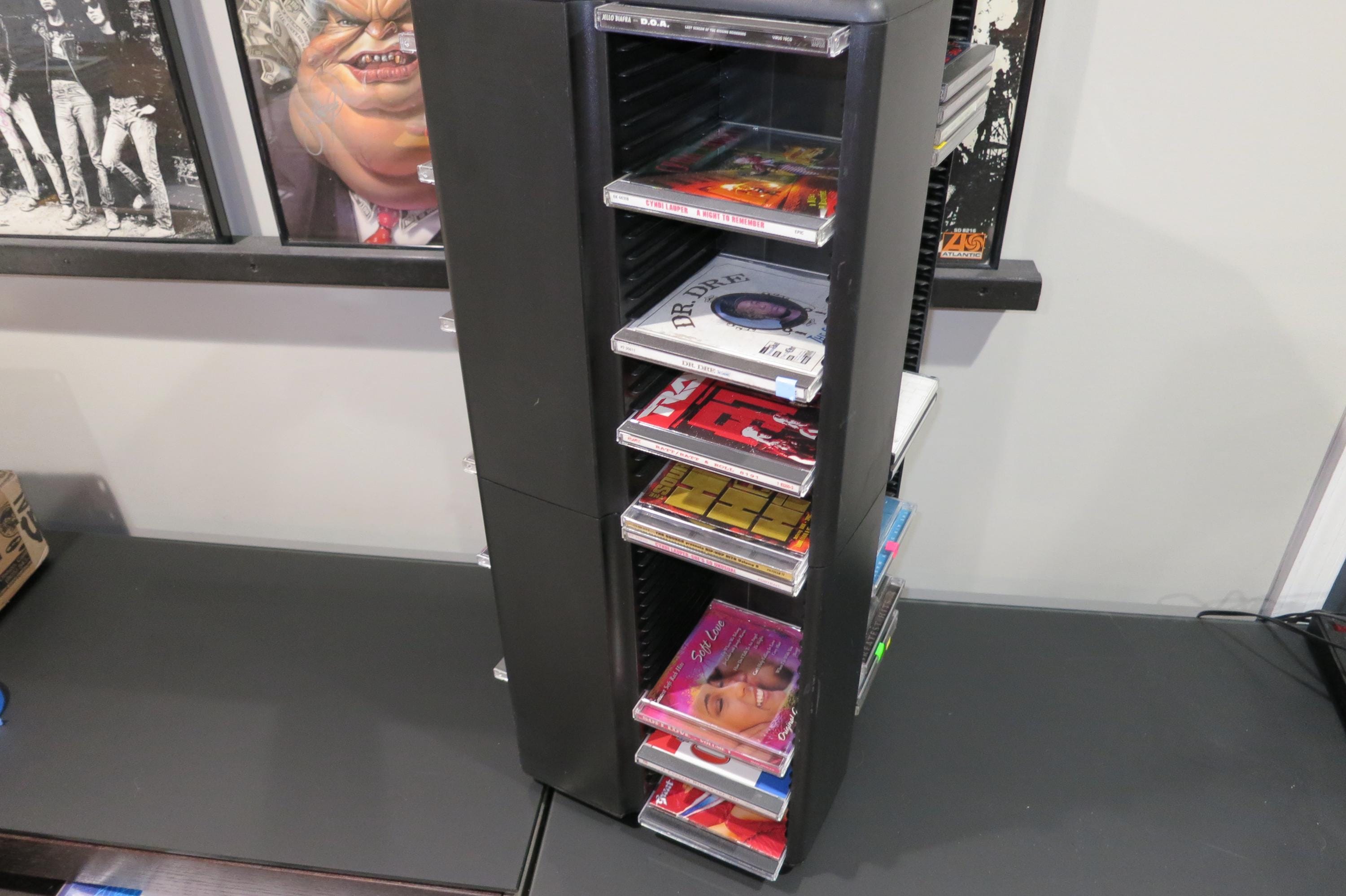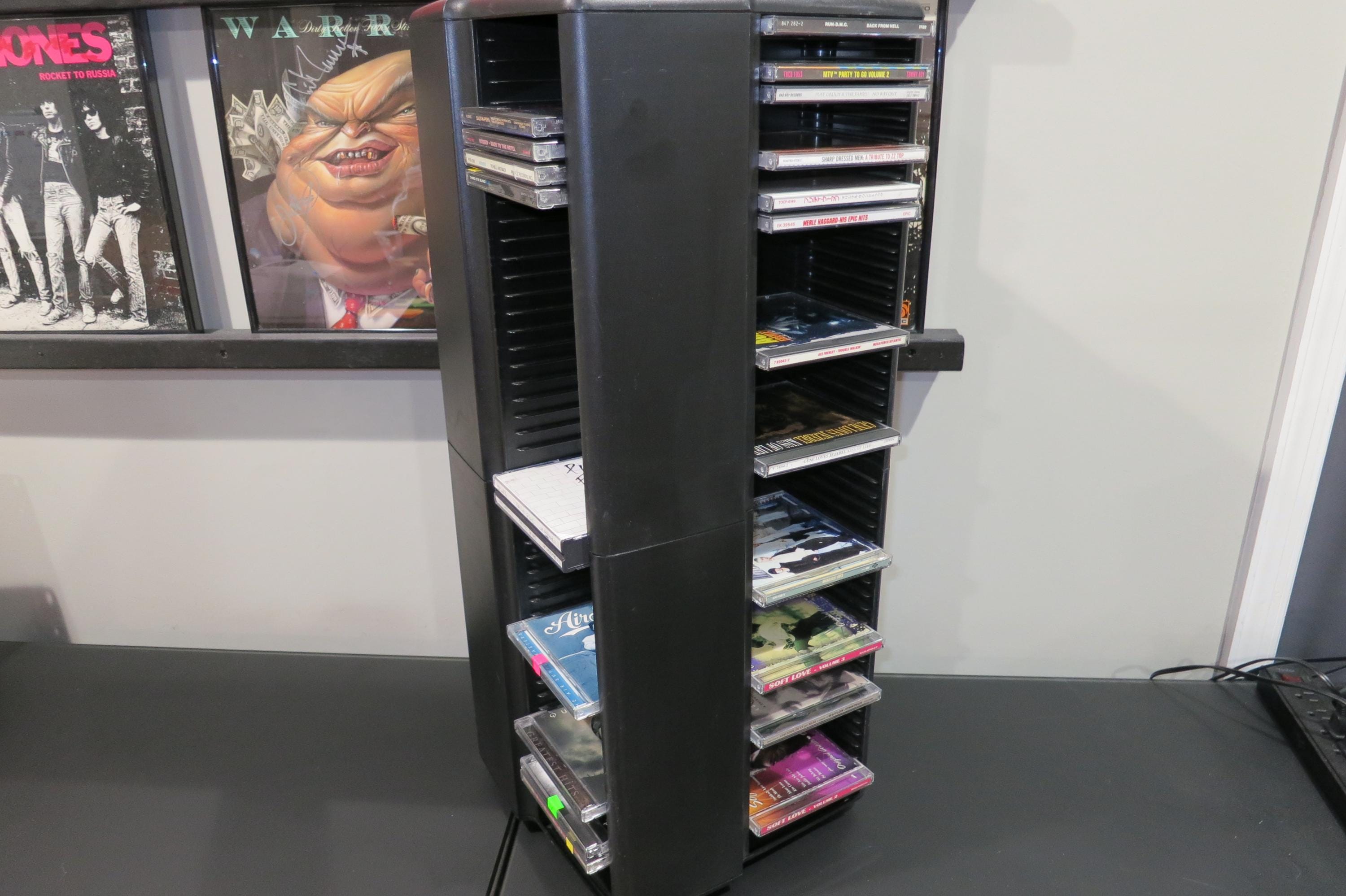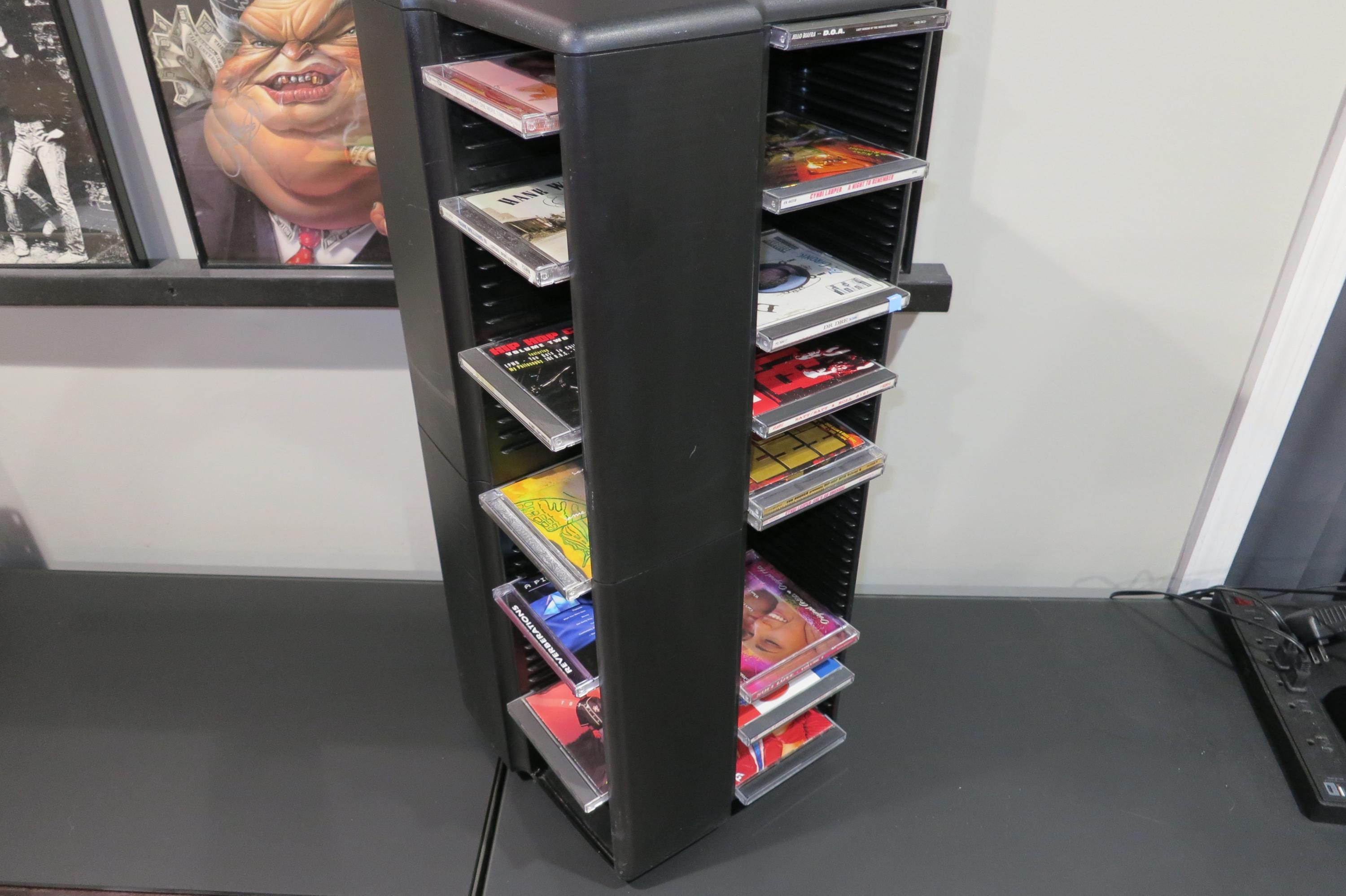 1990's Black Laserline CD Floor Tower Mega Holder Rotating Base Holds 200 Regular Oversized