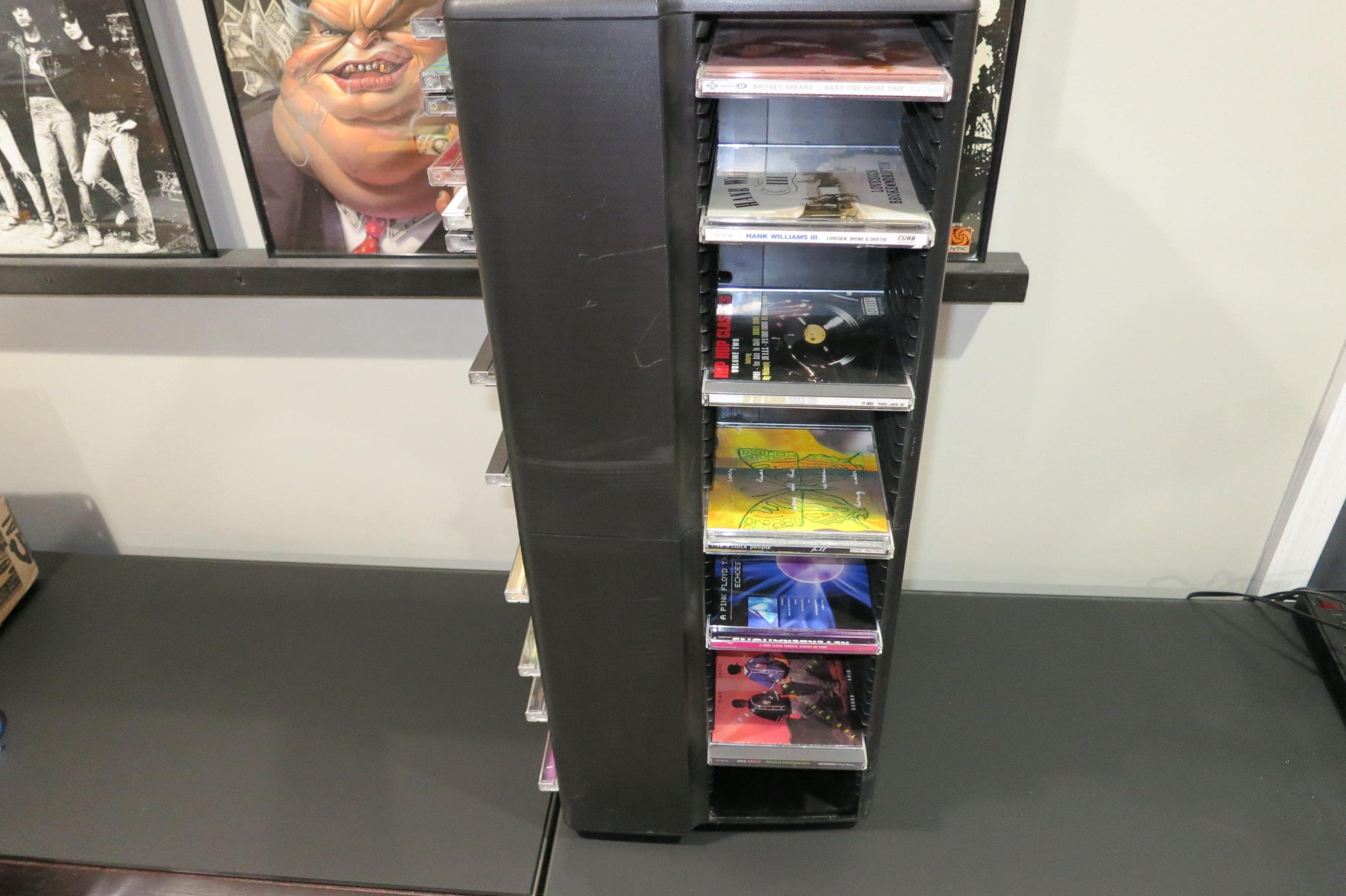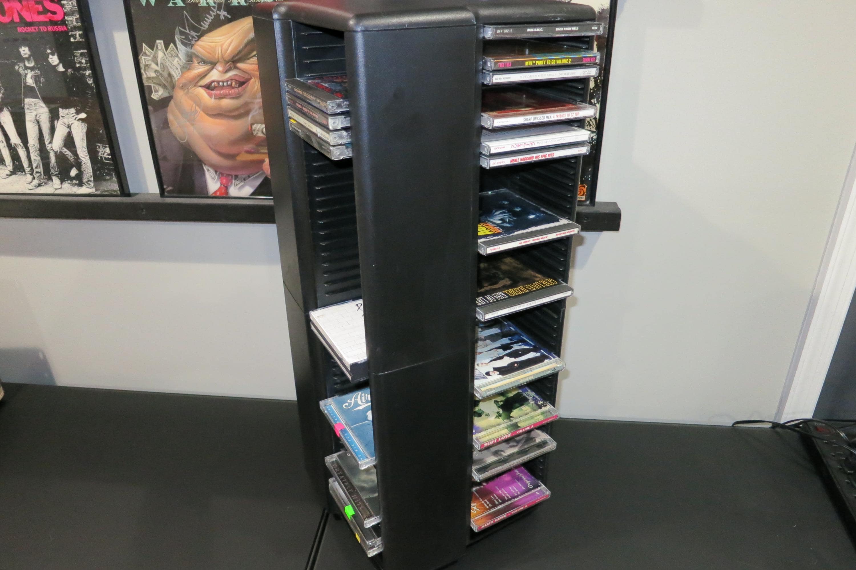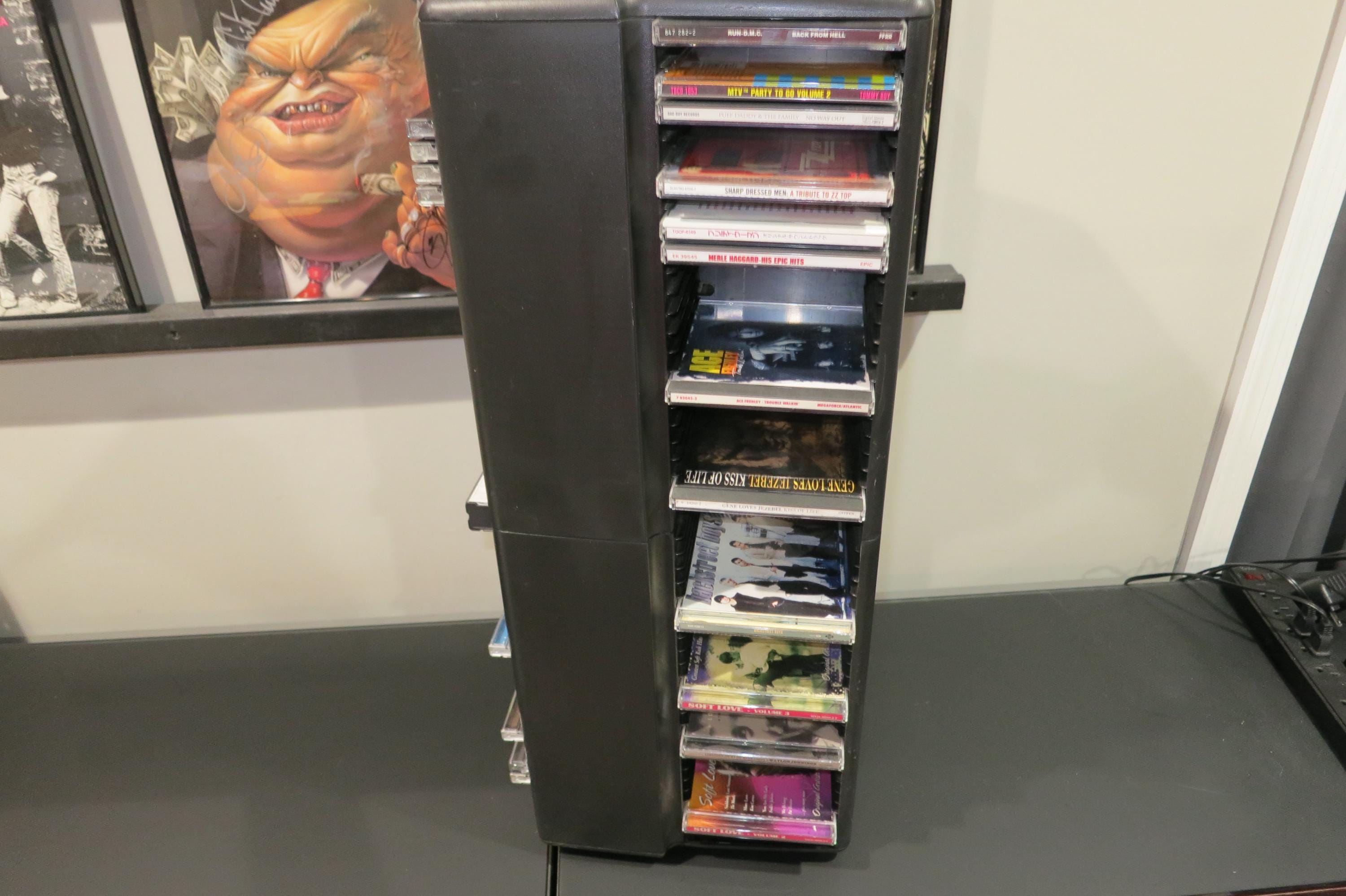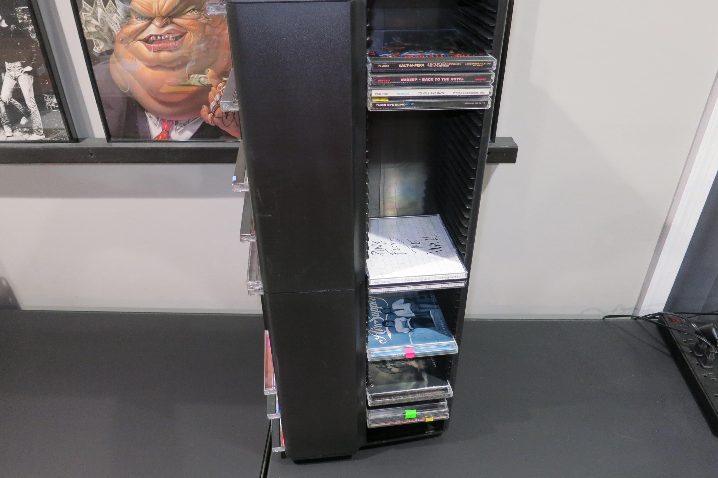 1990's Black Laserline CD Floor Tower Mega Holder Rotating Base Holds 200 Regular Oversized