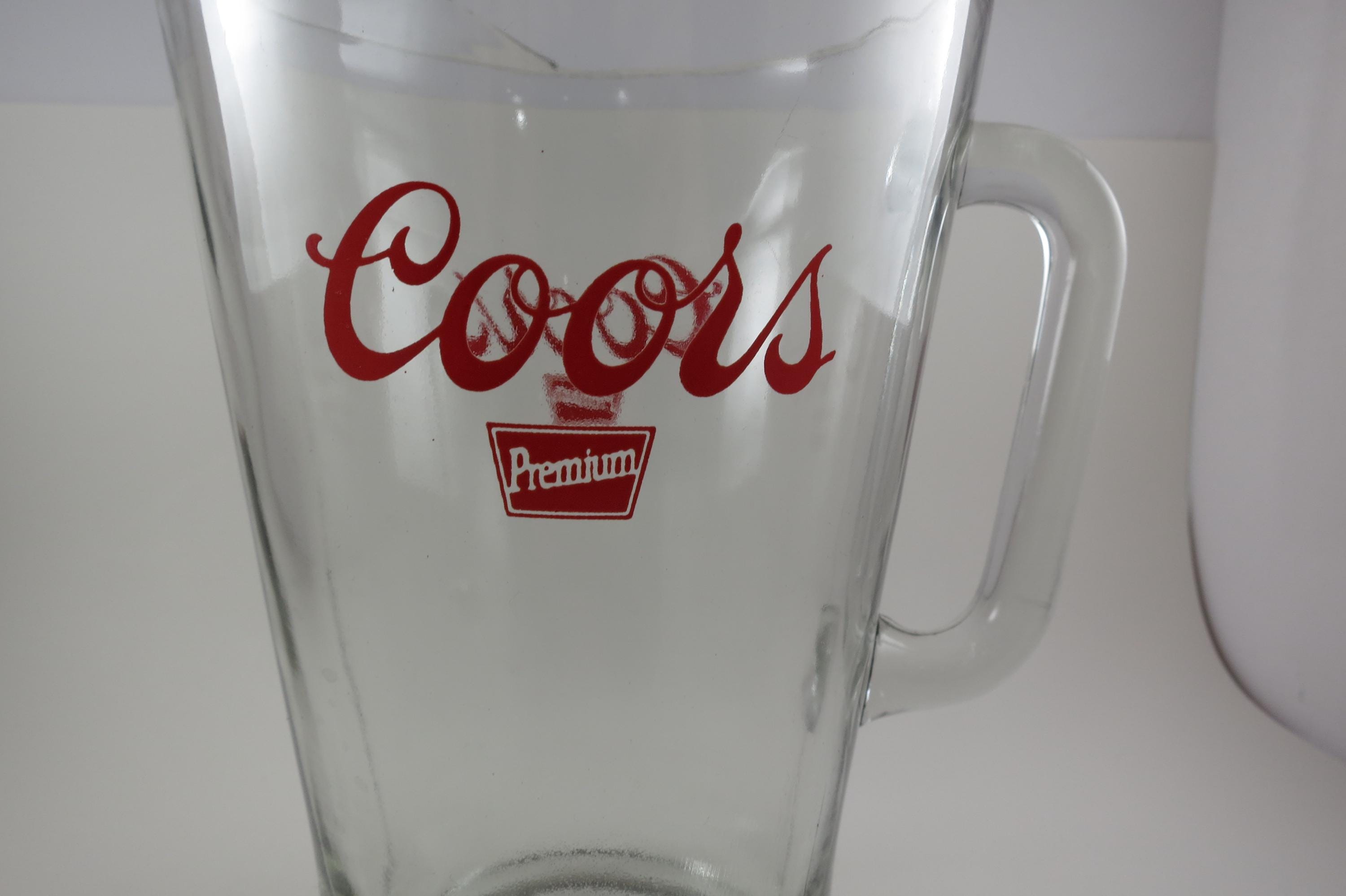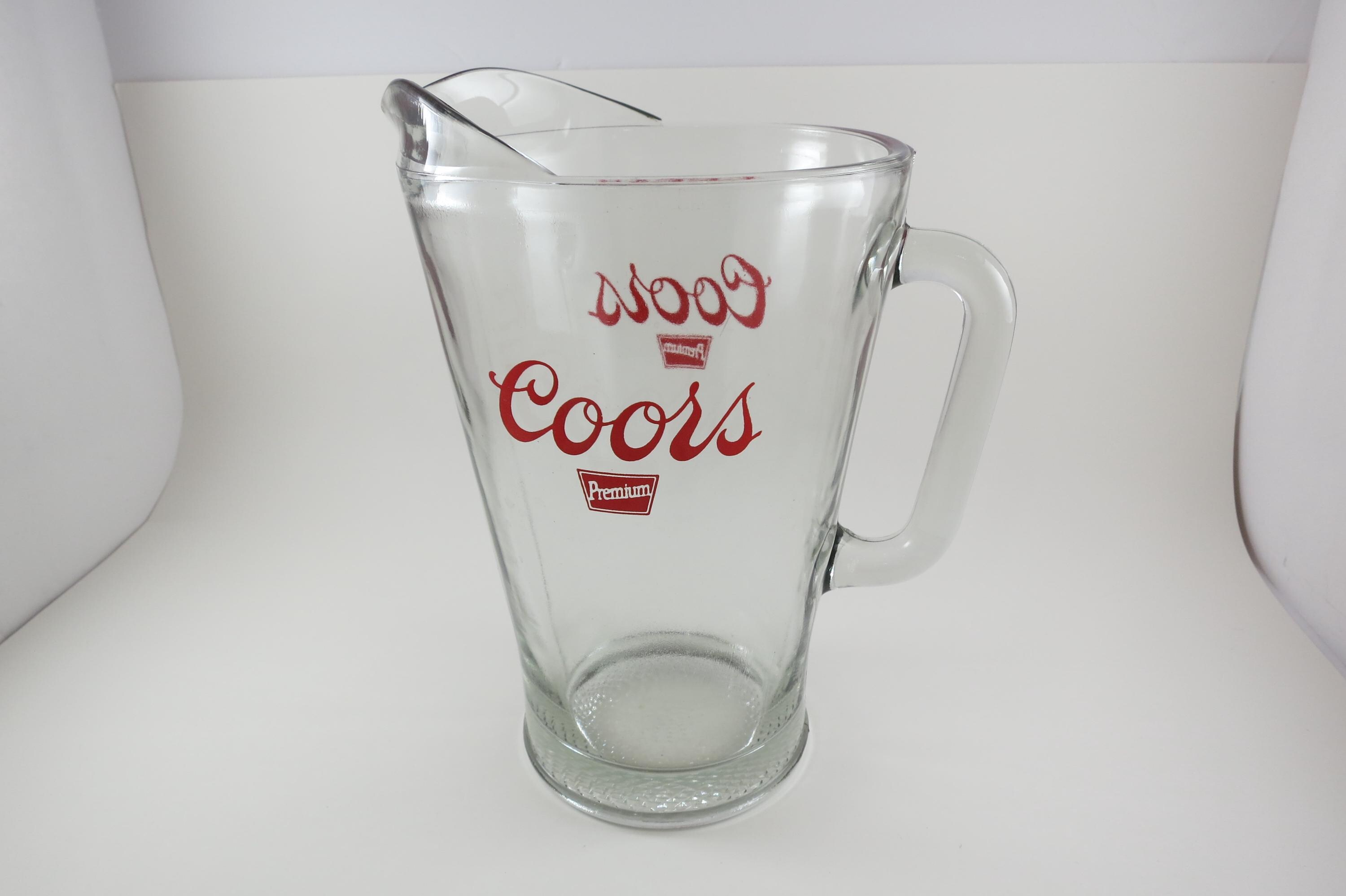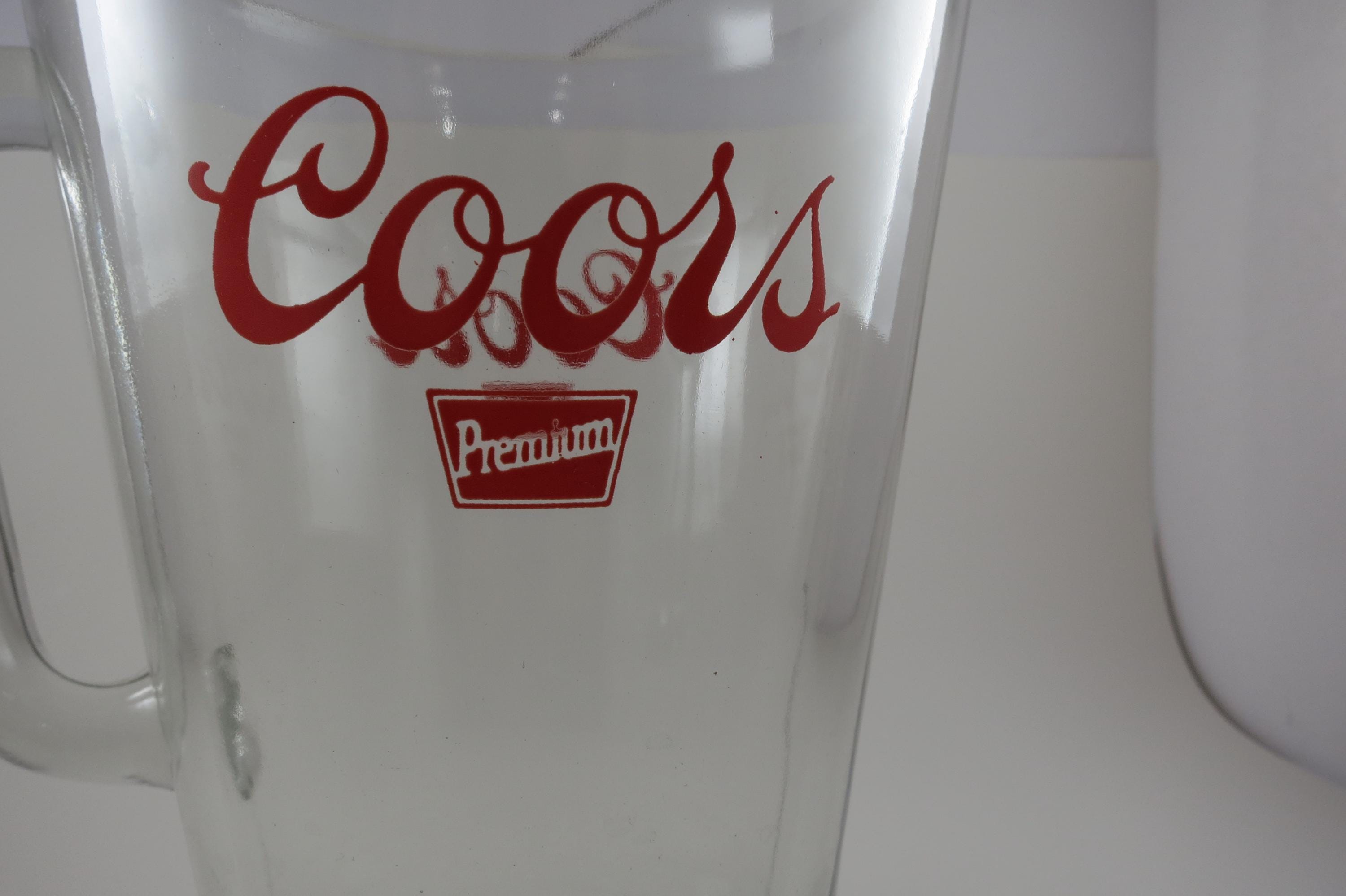 Vintage Coors Beer Pitcher: Large Heavy Glass, 9 Tall.