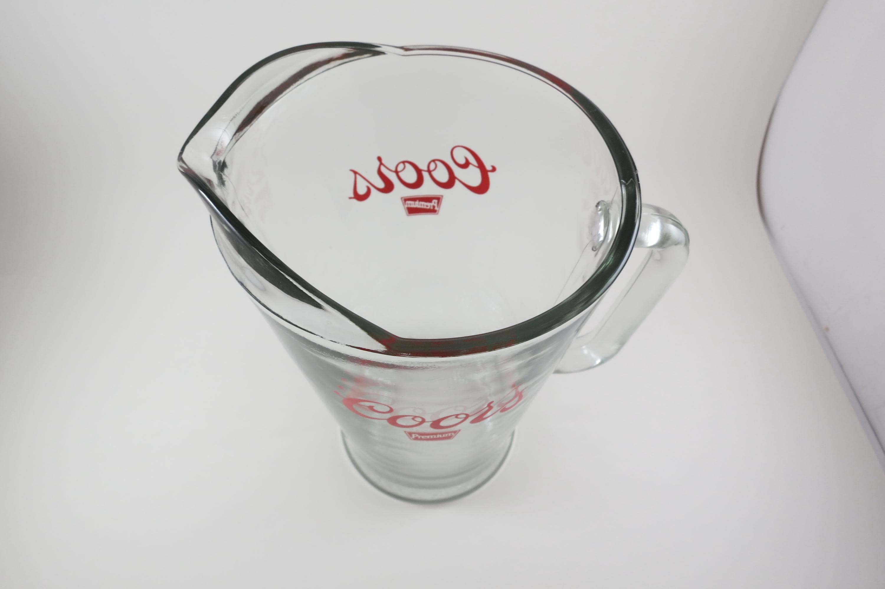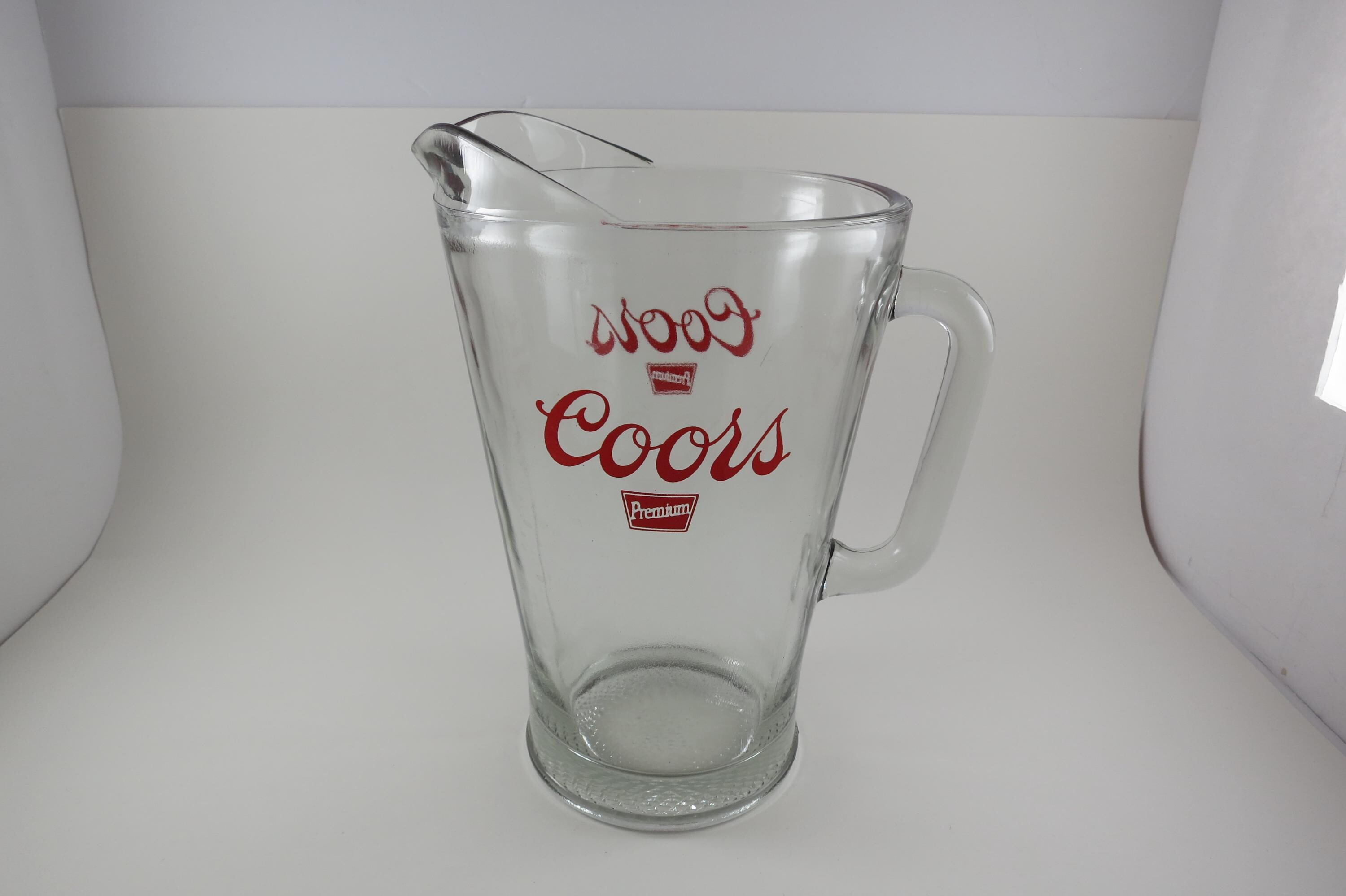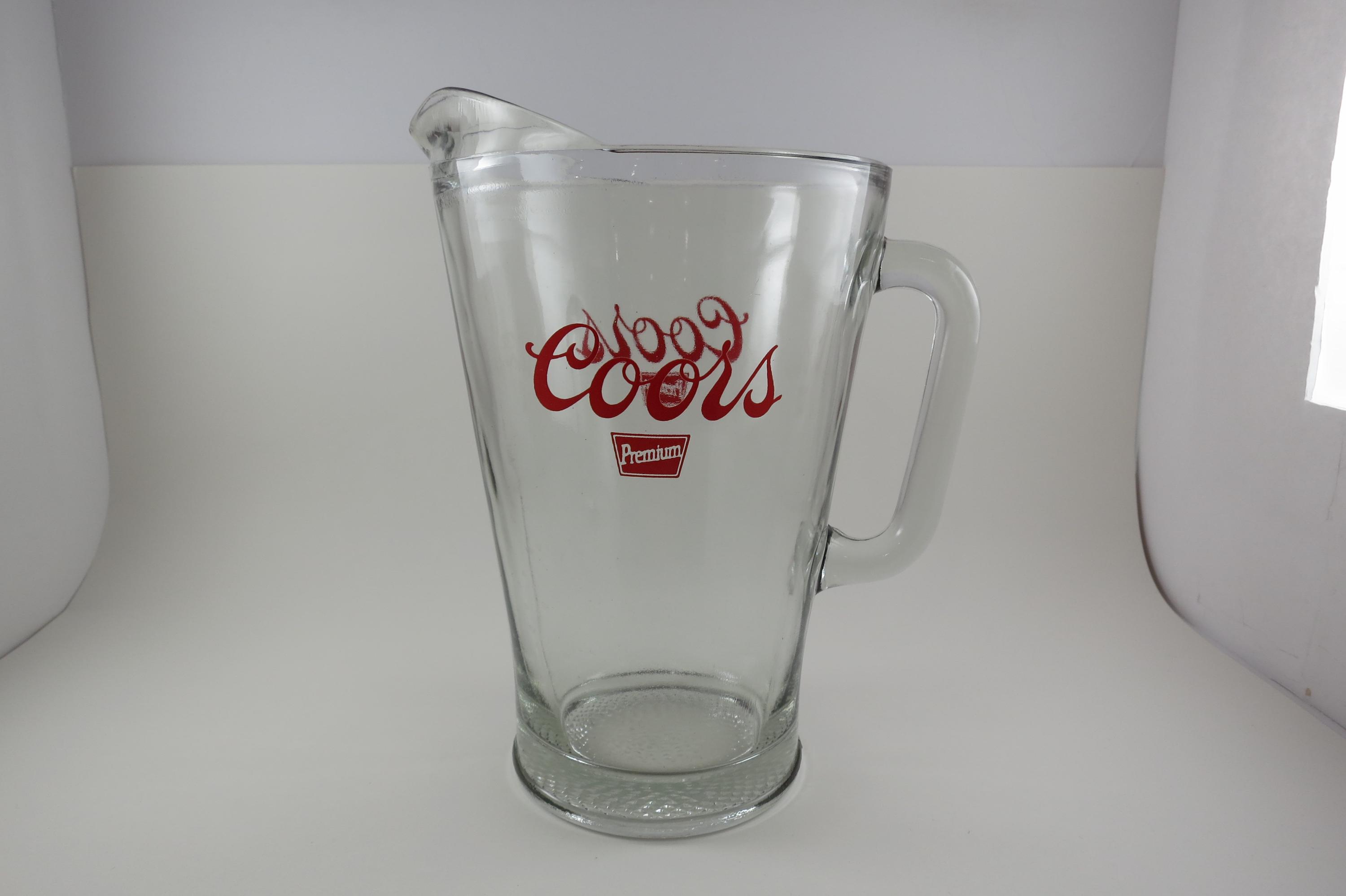 Heavy Pitcher with a D handle, red Coors Premium lettering. Excellent Condition with no damages.