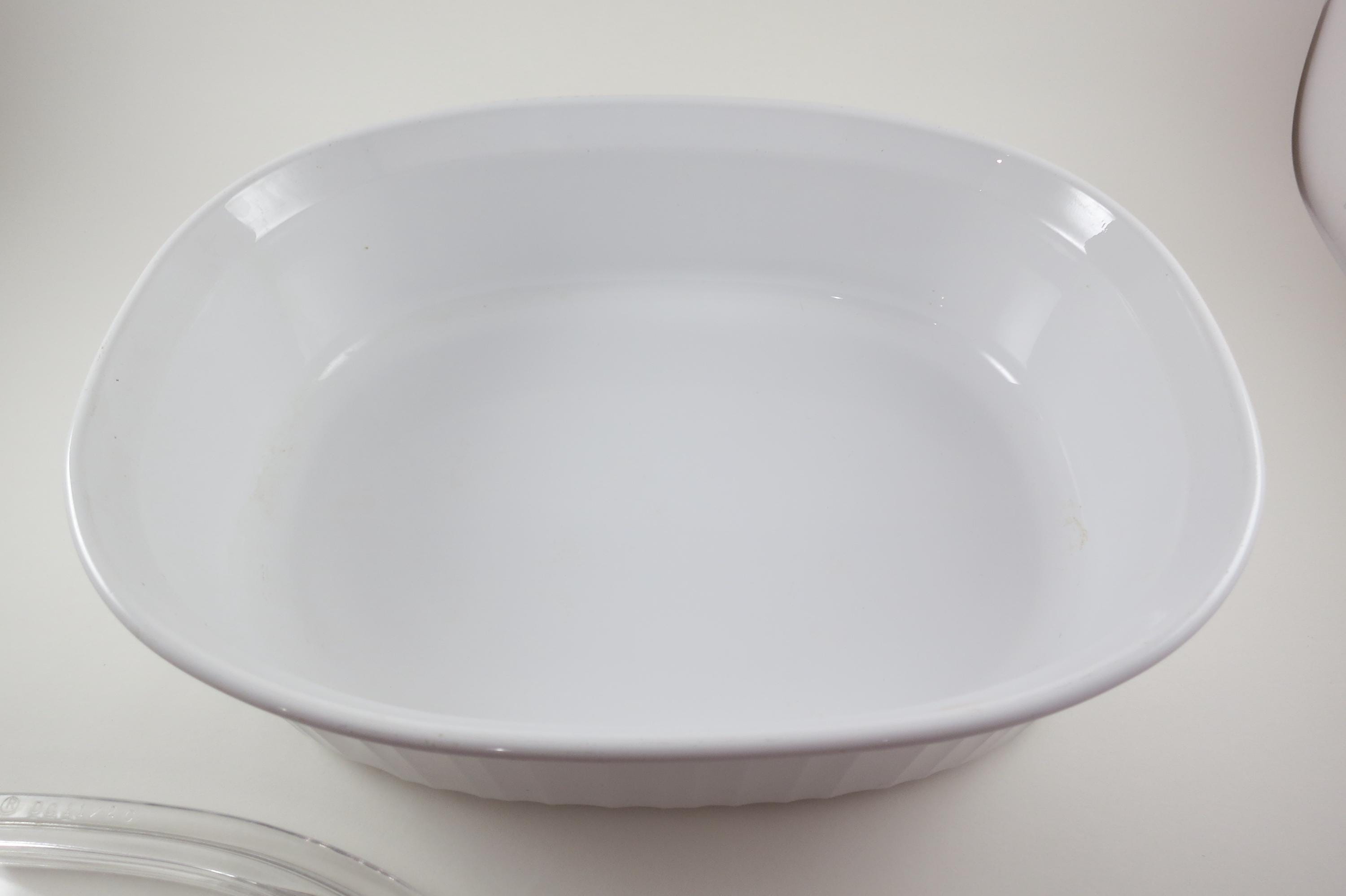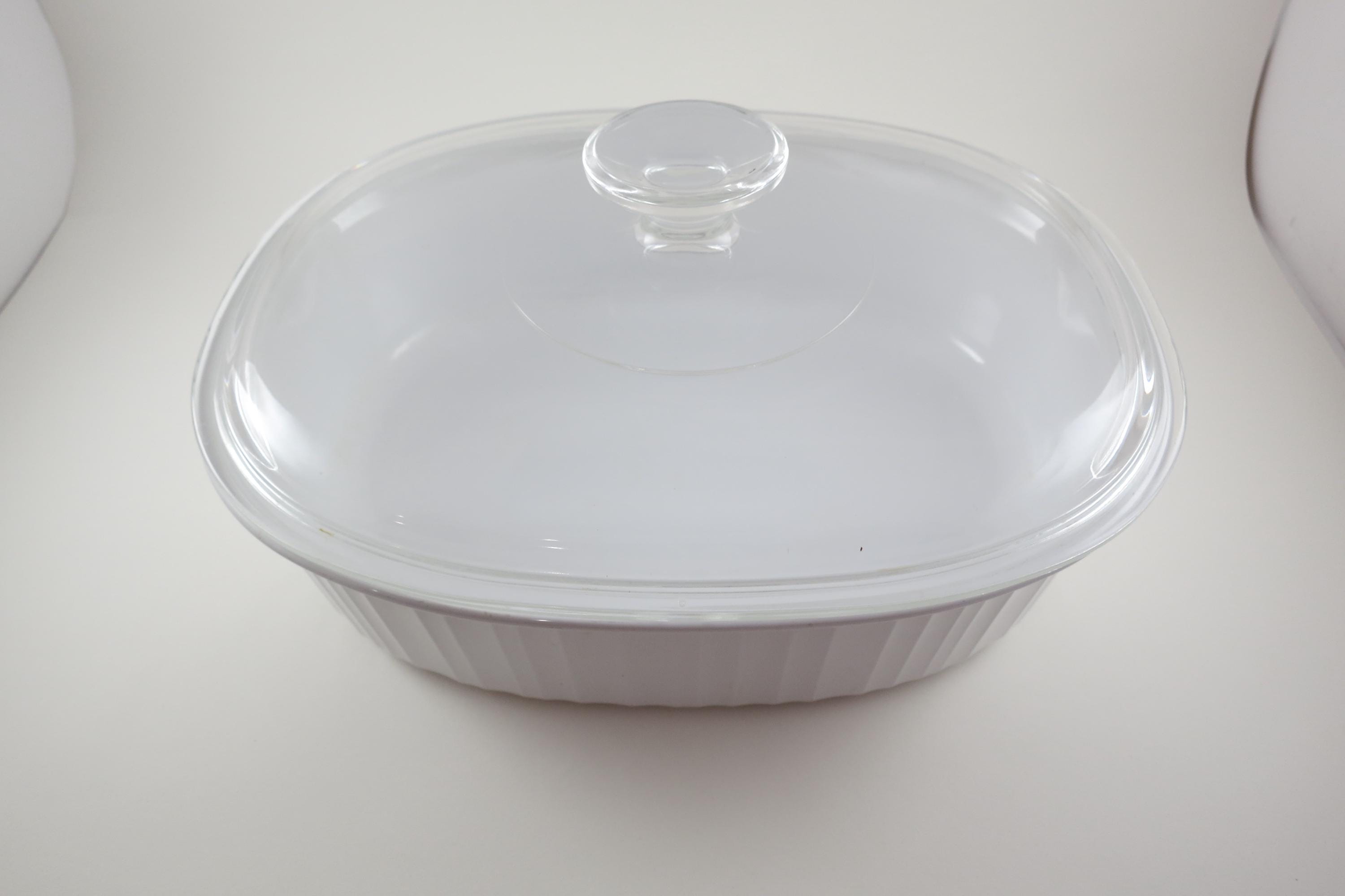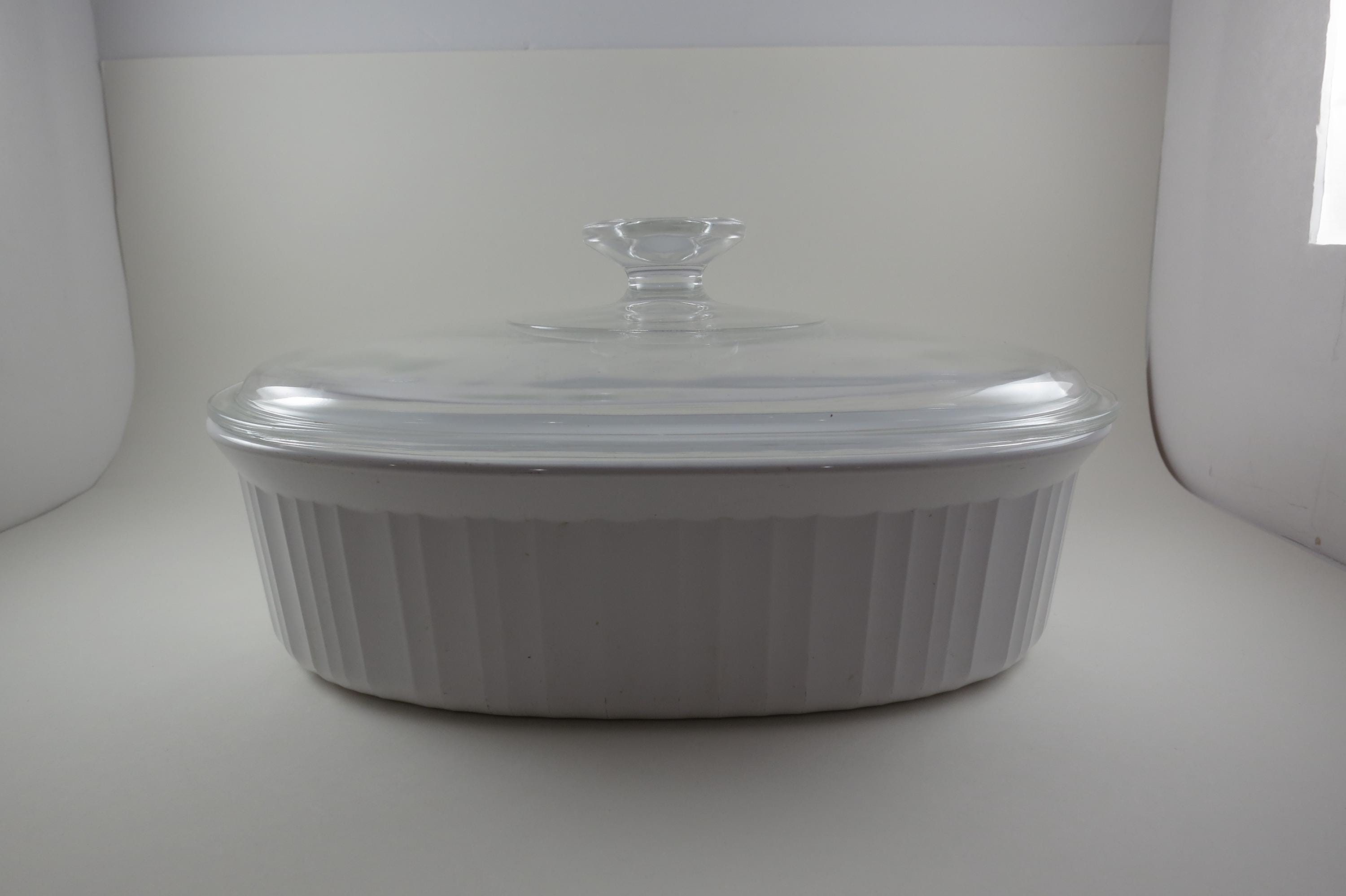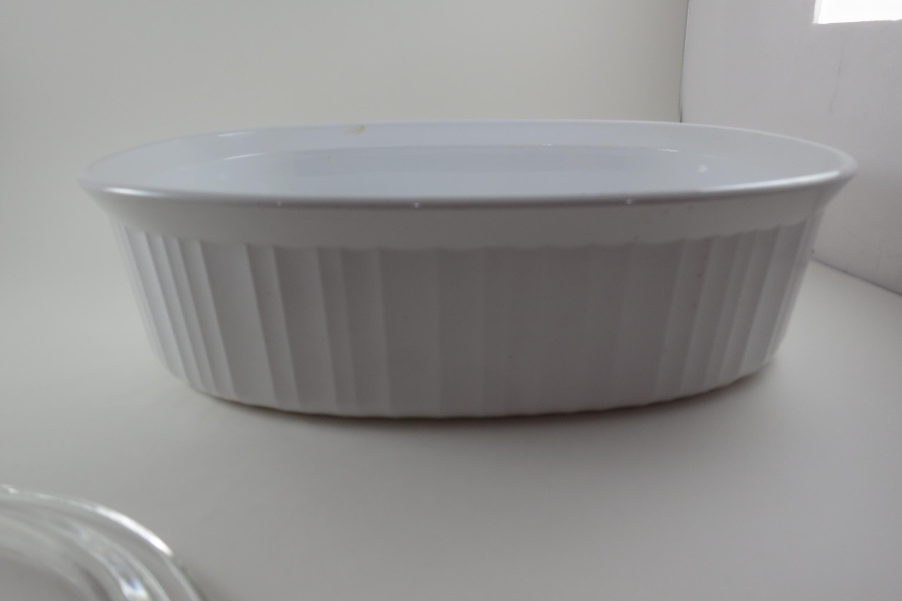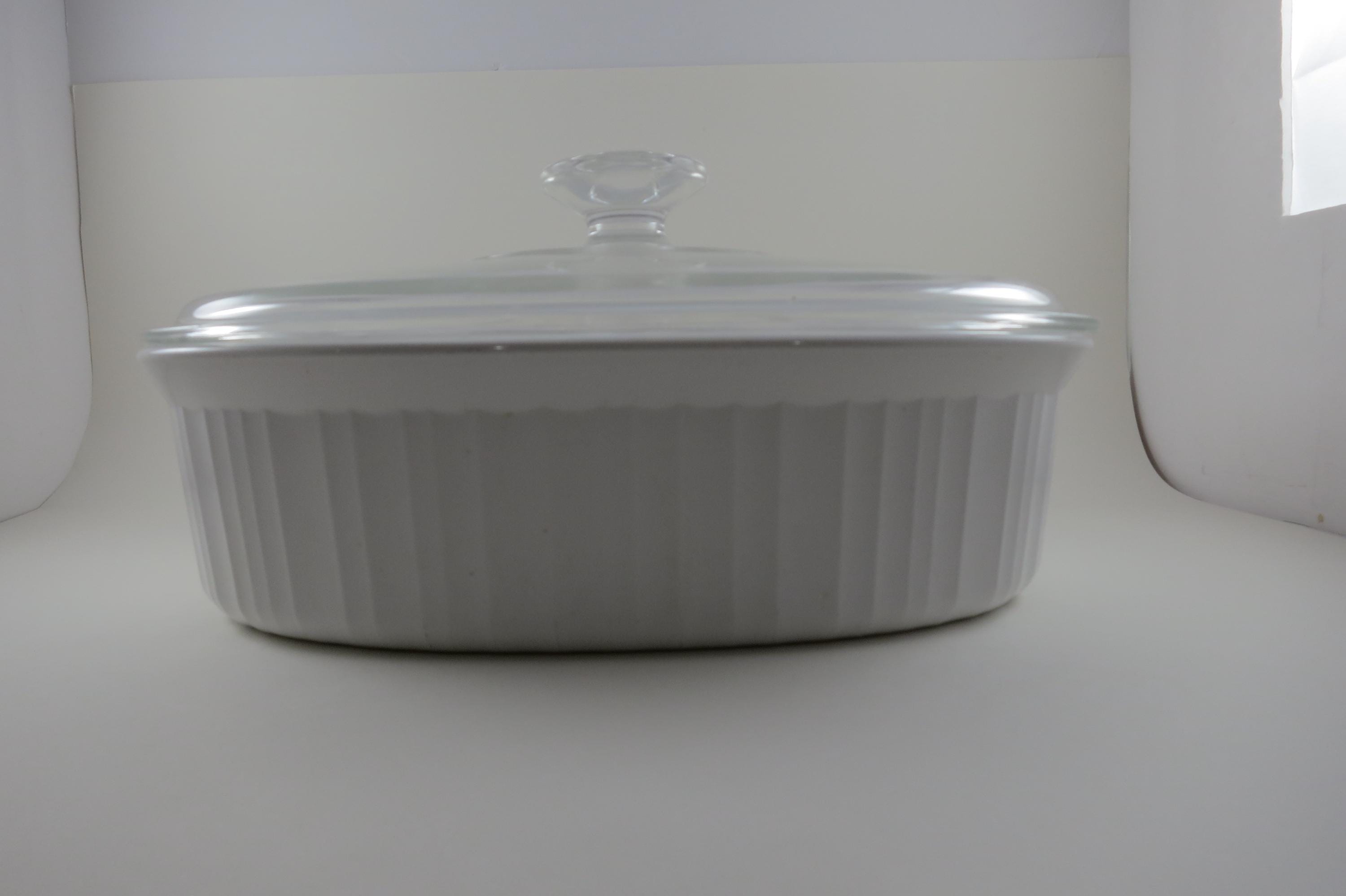Corelle White Oval Casserole Dish: 2.5 Quart F-2-B with Glass Lid. No damages, shows normal use wear, ready to keep using!