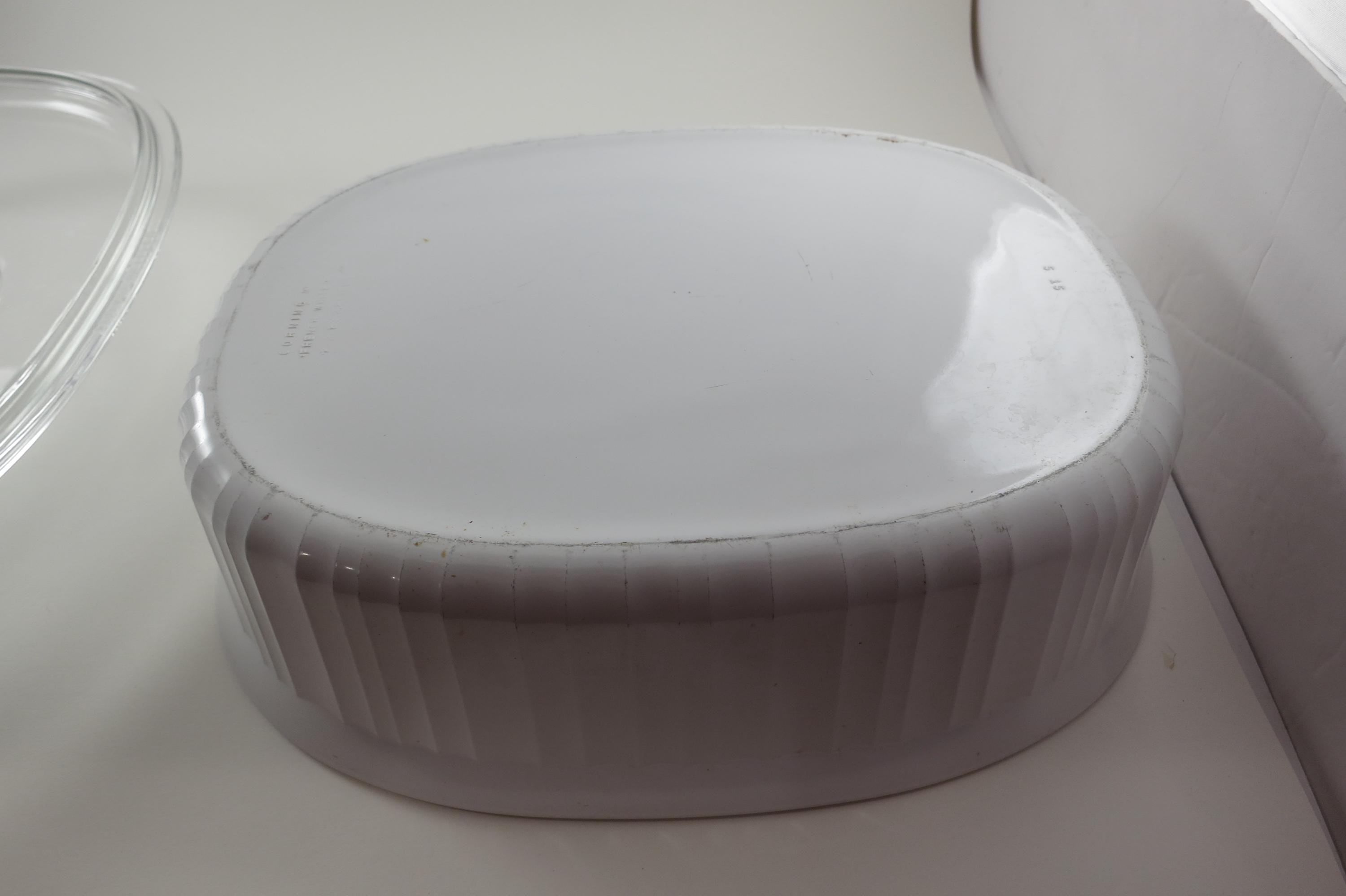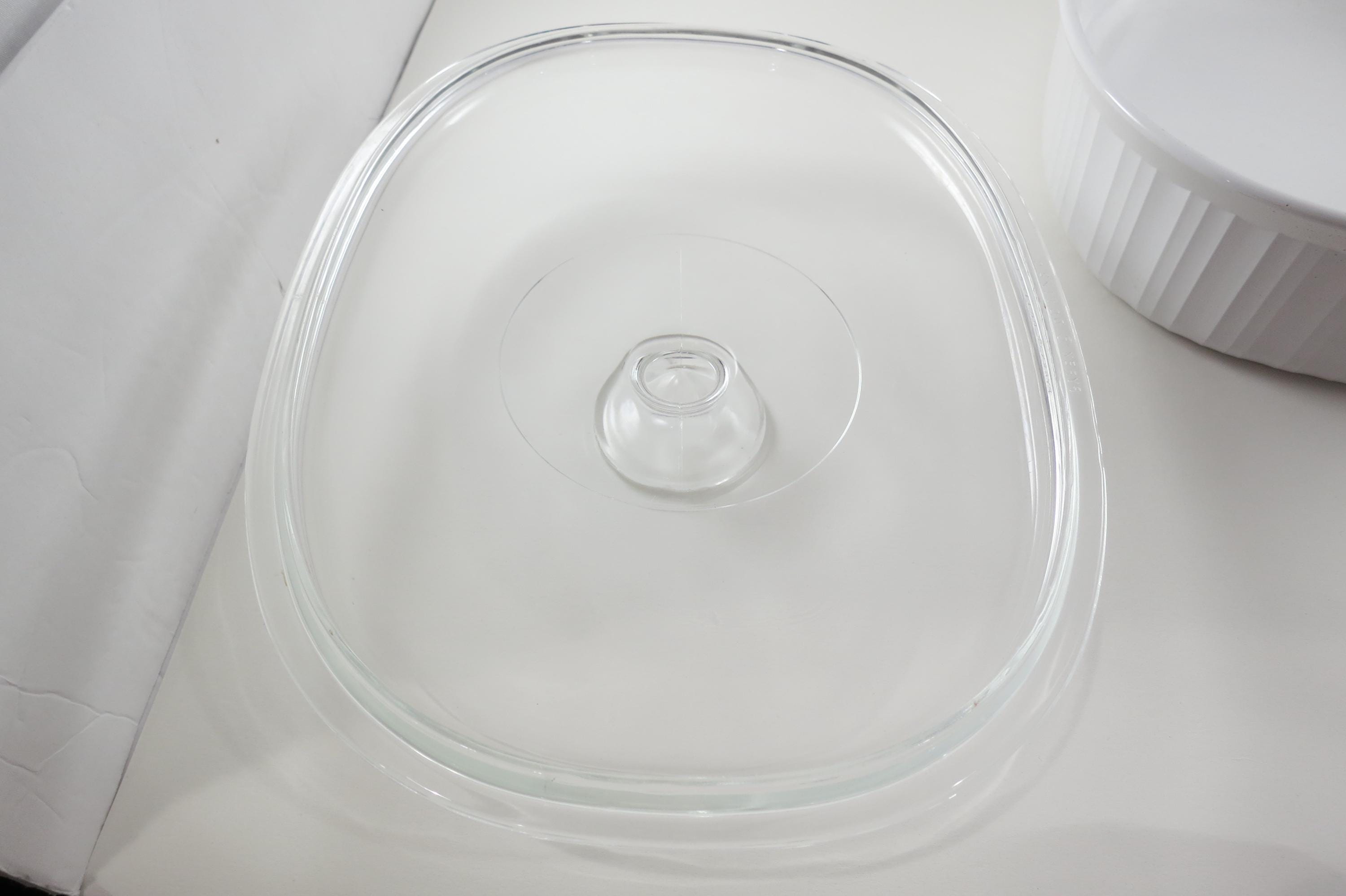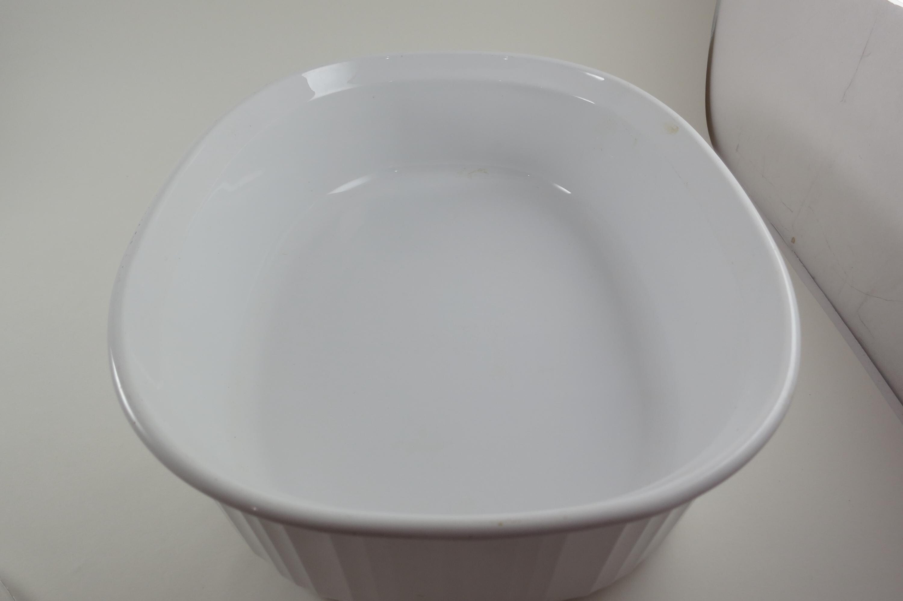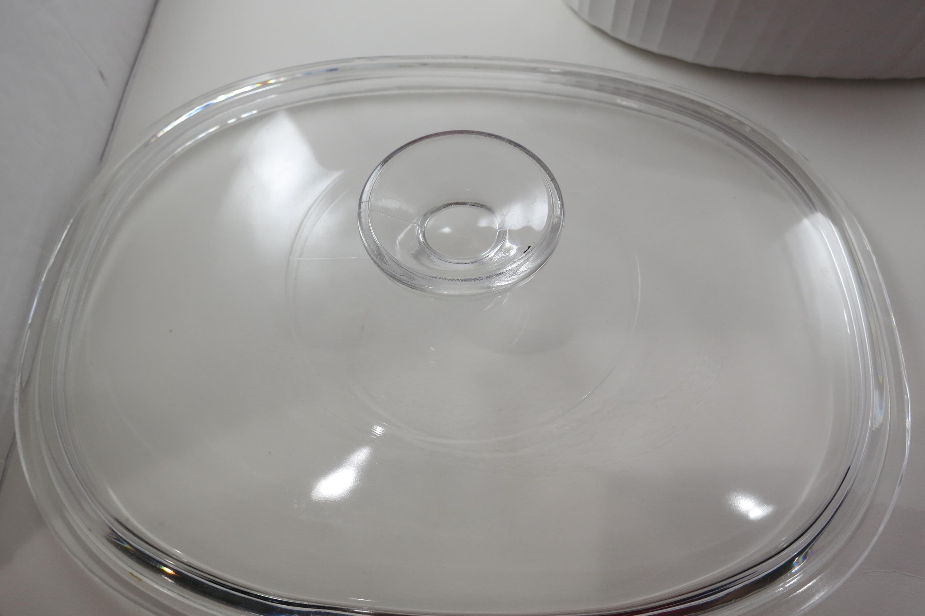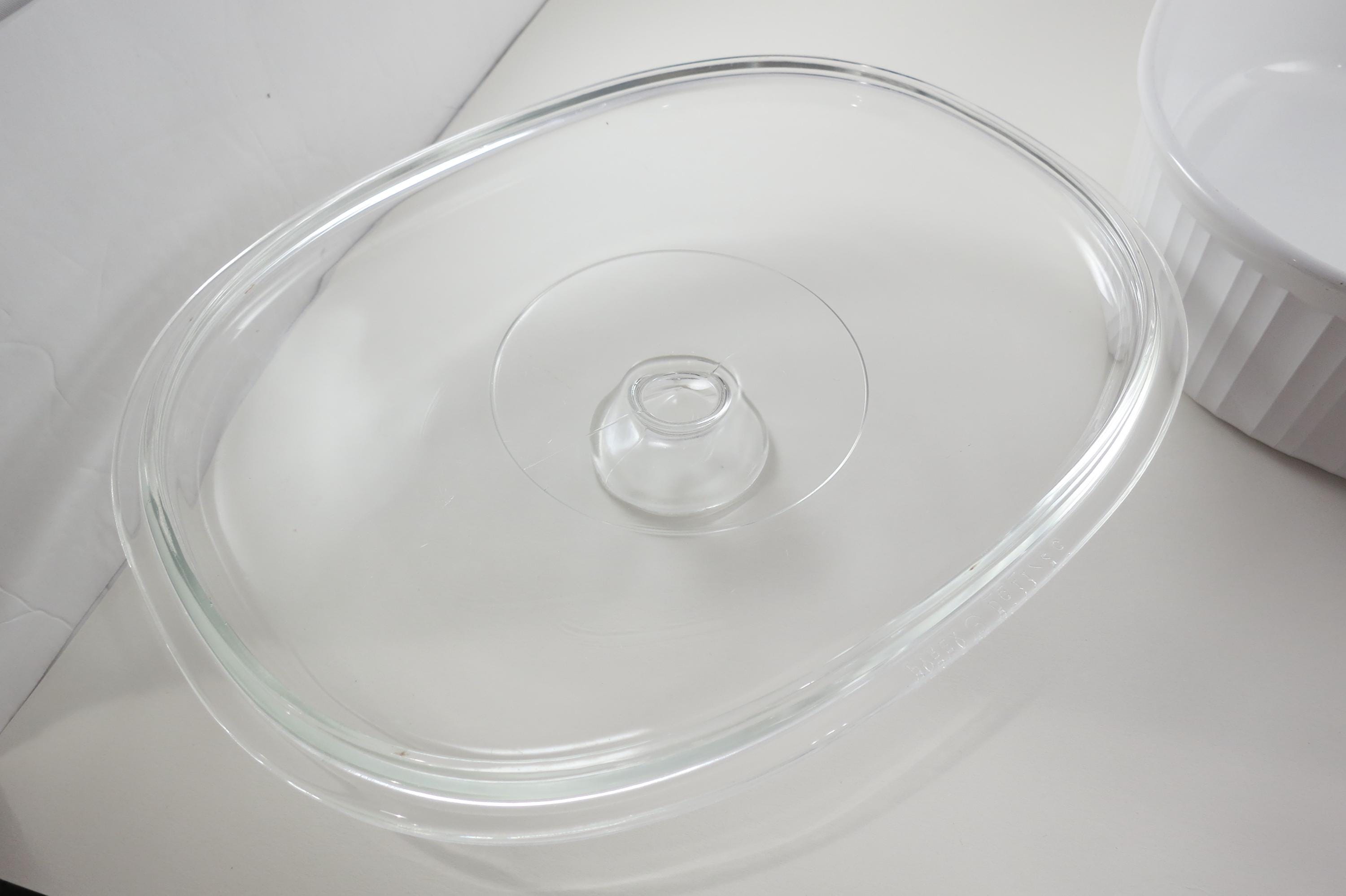 Corelle White Oval Casserole Dish: 2.5 Quart F-2-B with Glass Lid. No damages, shows normal use wear, ready to keep using!