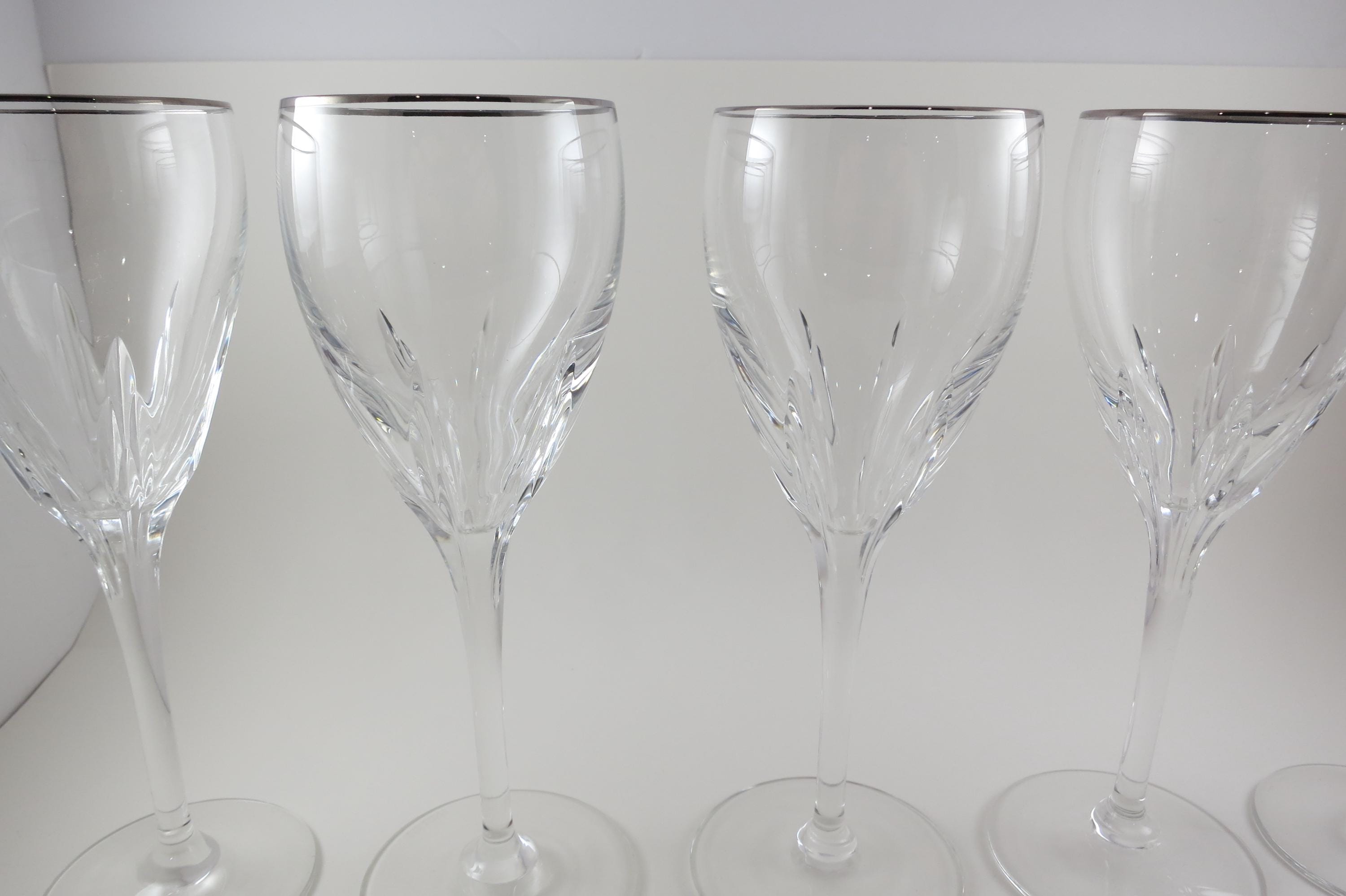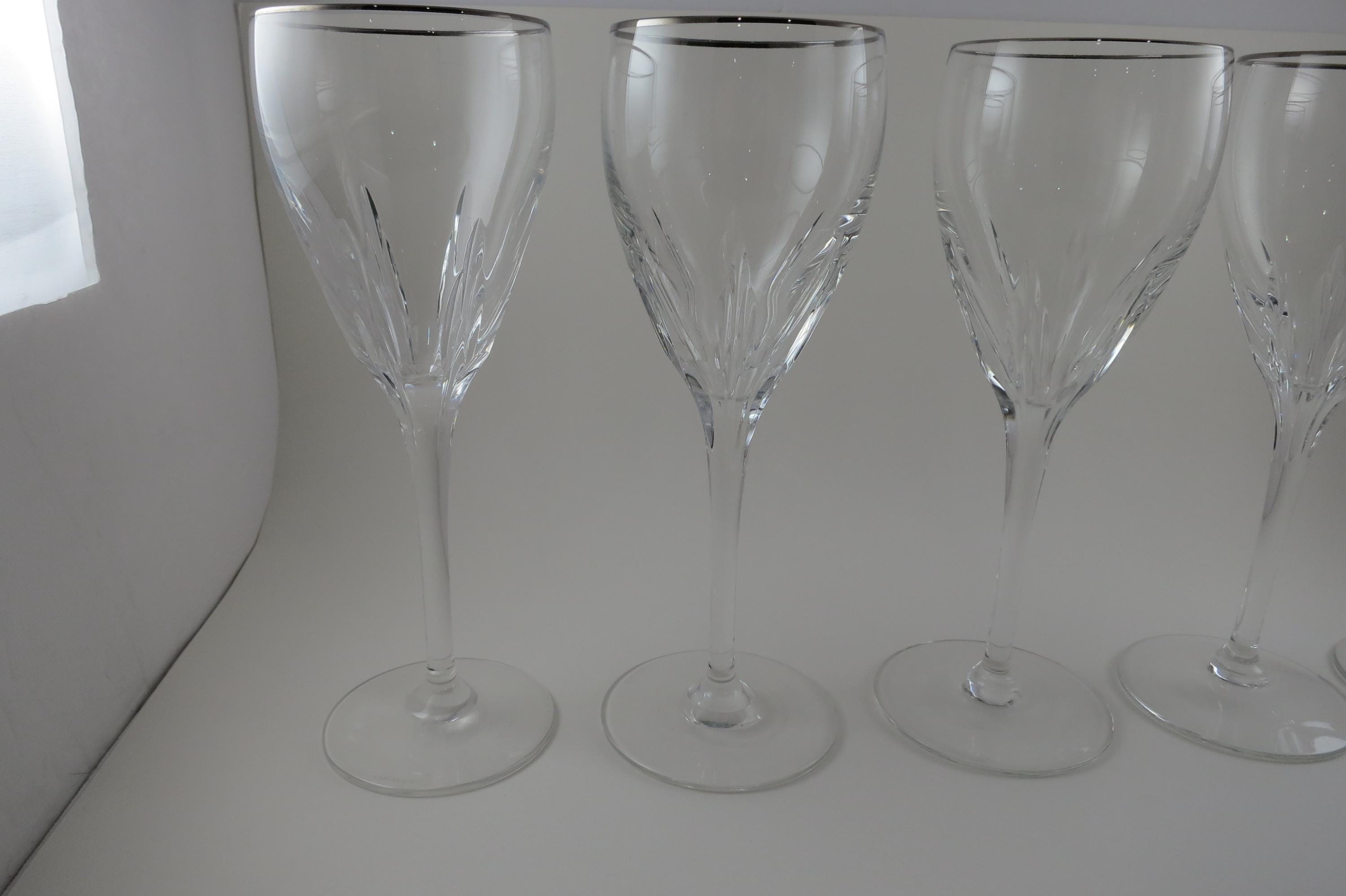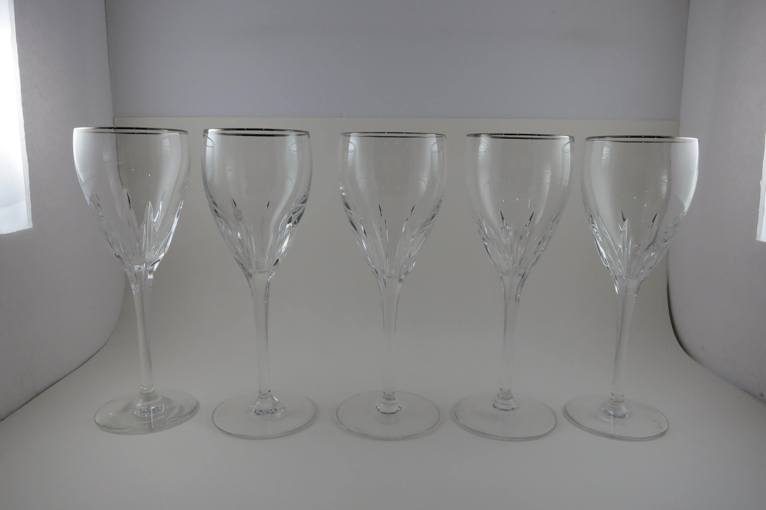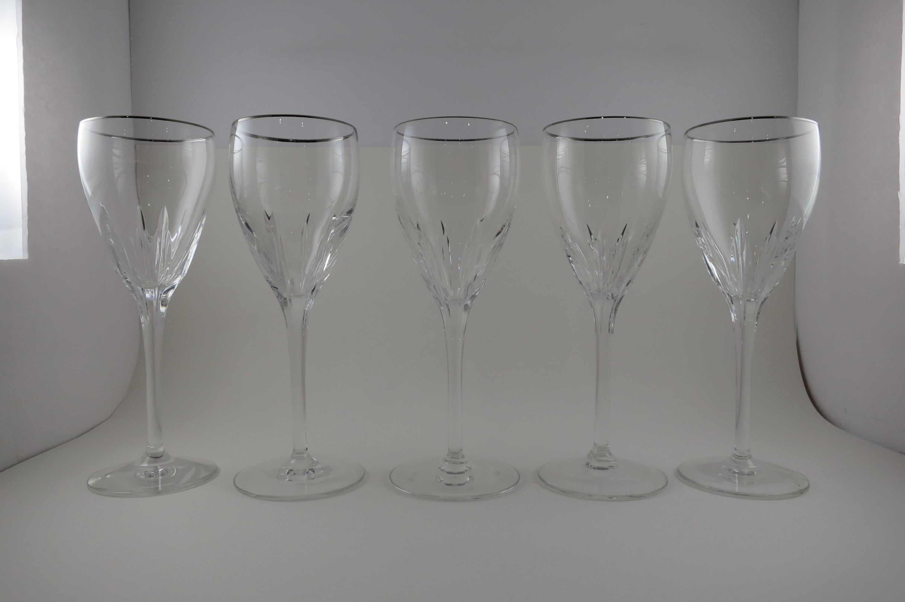 Set of Five Vintage Lenox Encore Platinum Crystal Wine Glasses Signed. Each Measures 7 7/8 Inches Tall. Beautiful Glasses, pristine condition with no damages of any kind. They feature a platinum band.