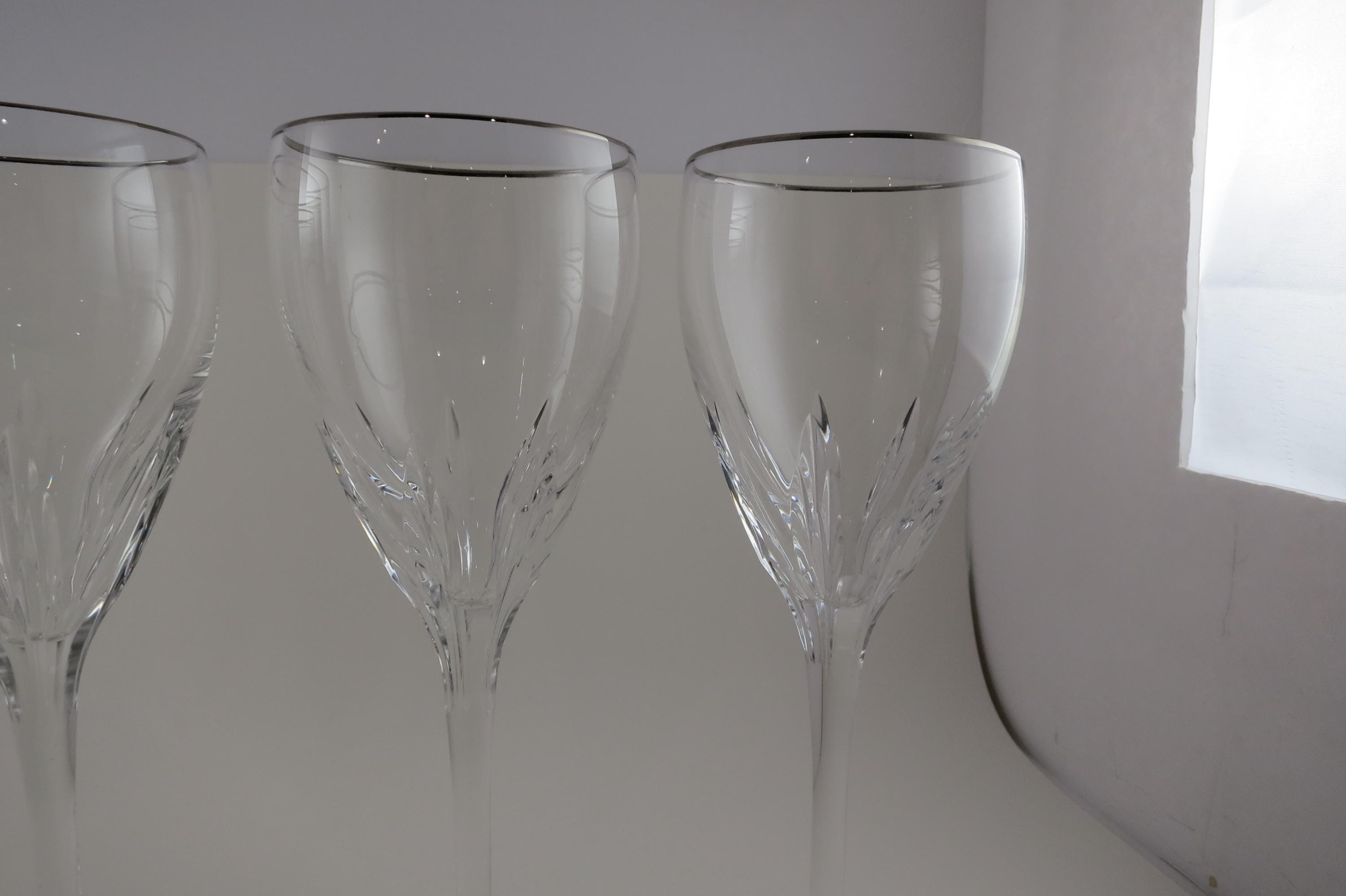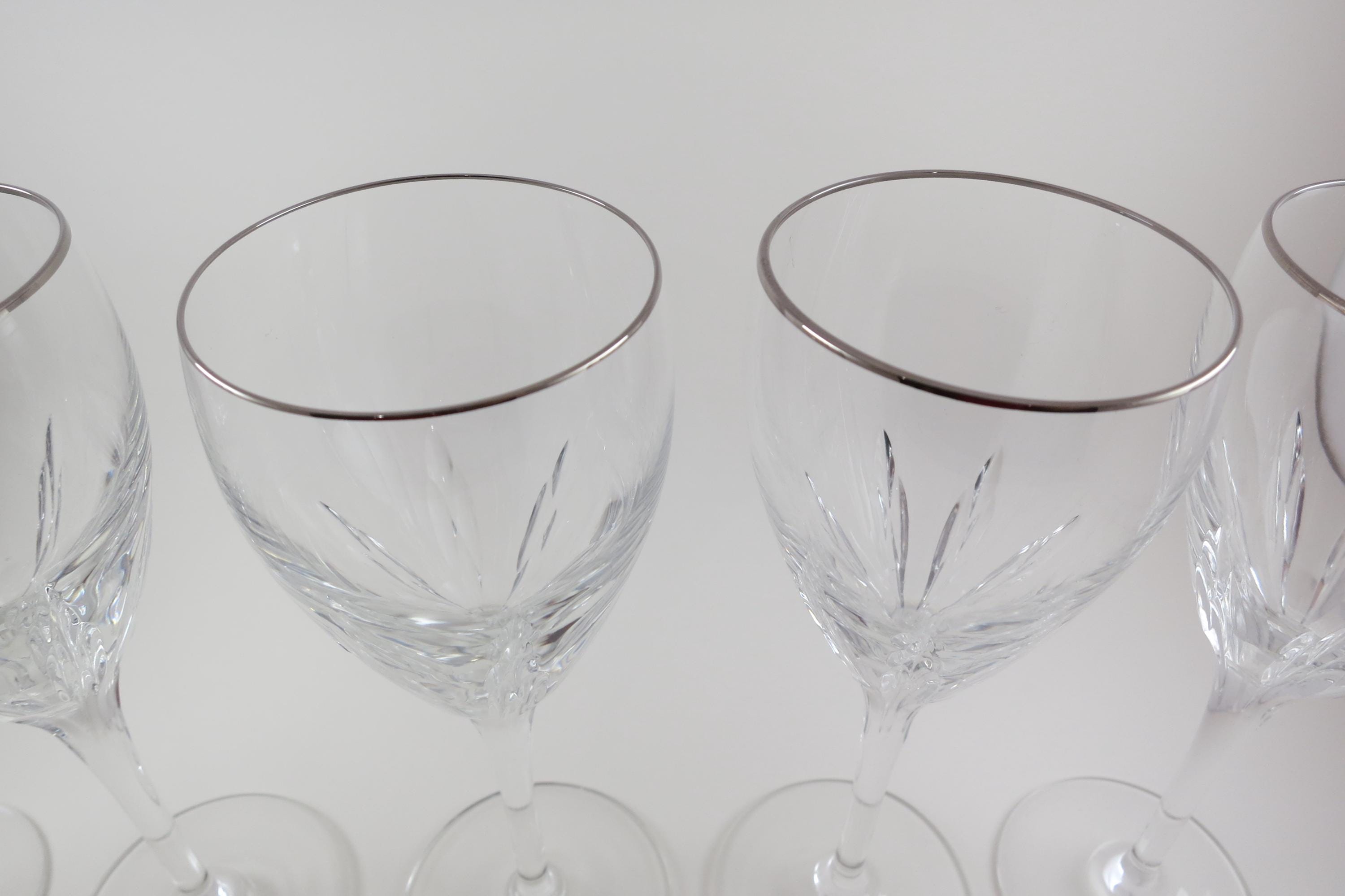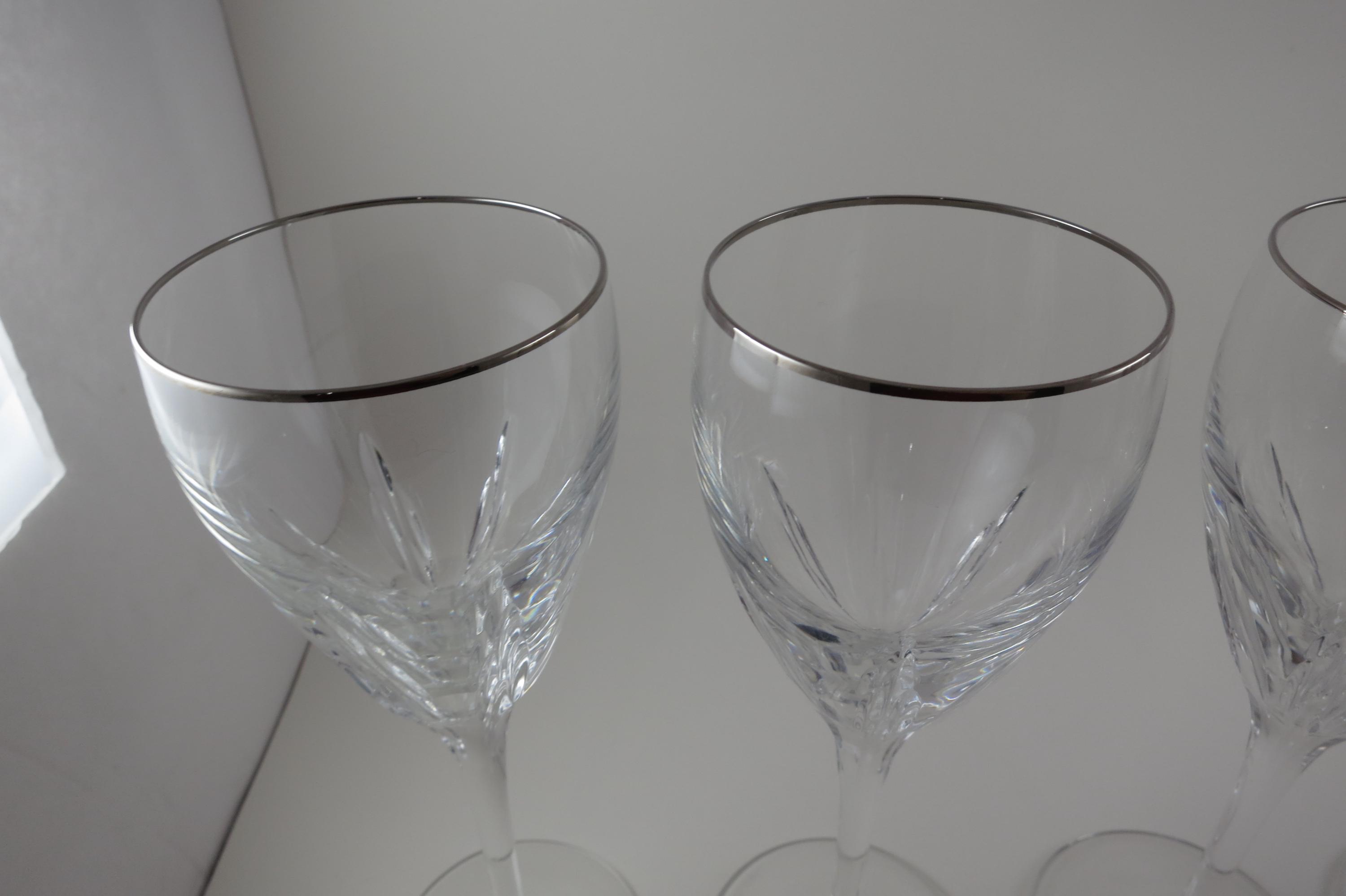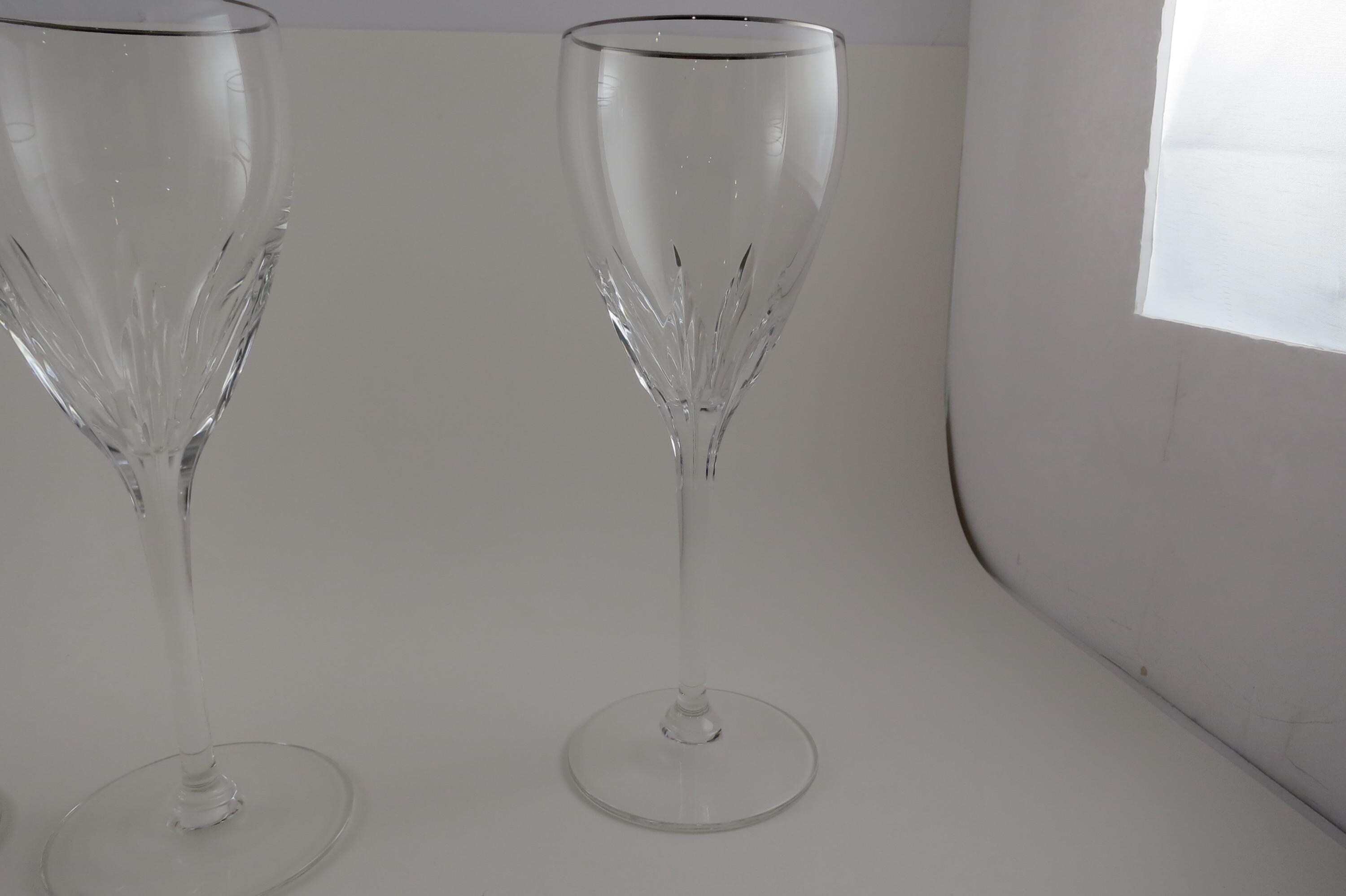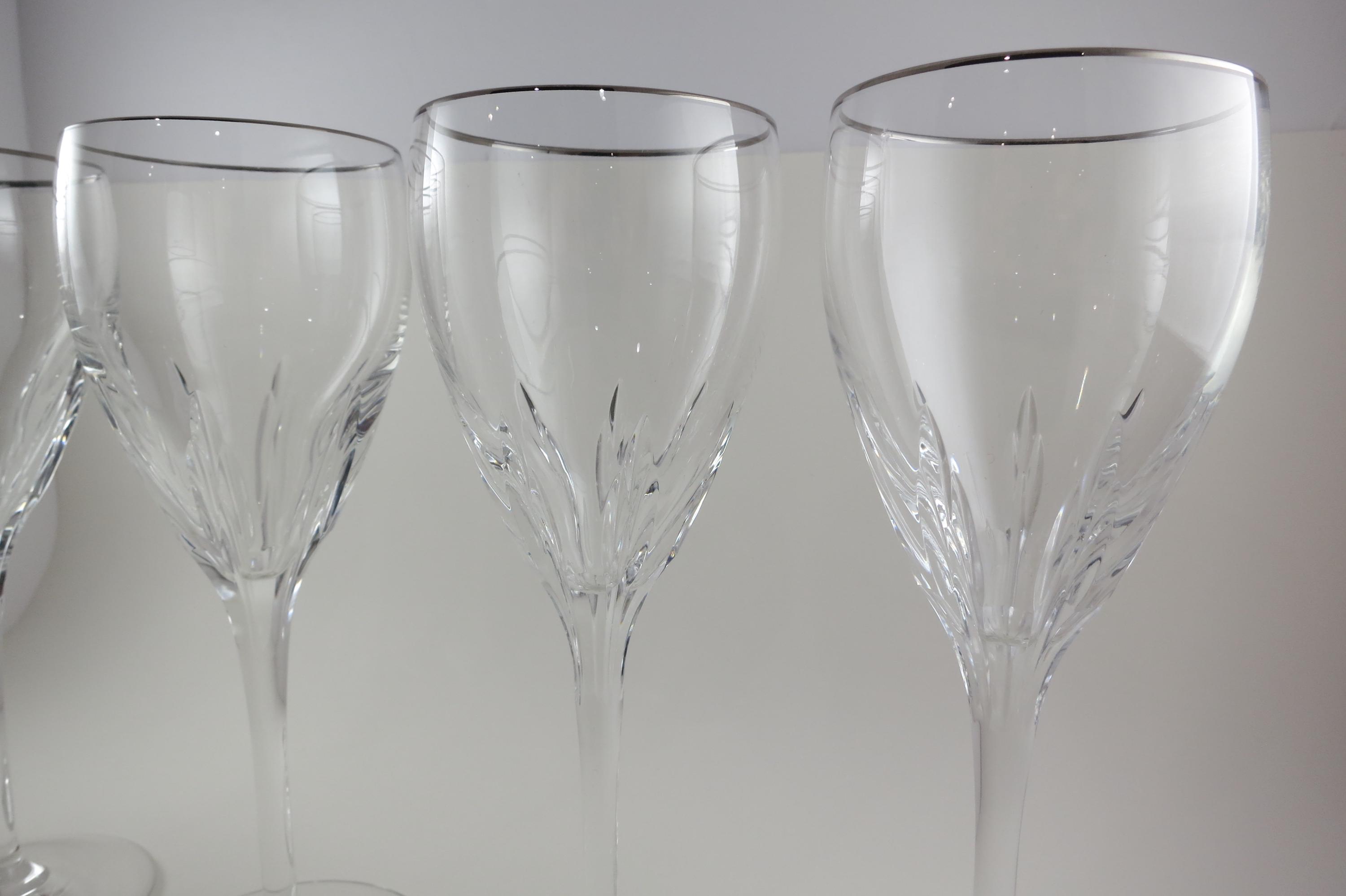 Set of Five Vintage Lenox Encore Platinum Crystal Wine Glasses Signed. Each Measures 7 7/8 Inches Tall. Beautiful Glasses, pristine condition with no damages of any kind. They feature a platinum band.
