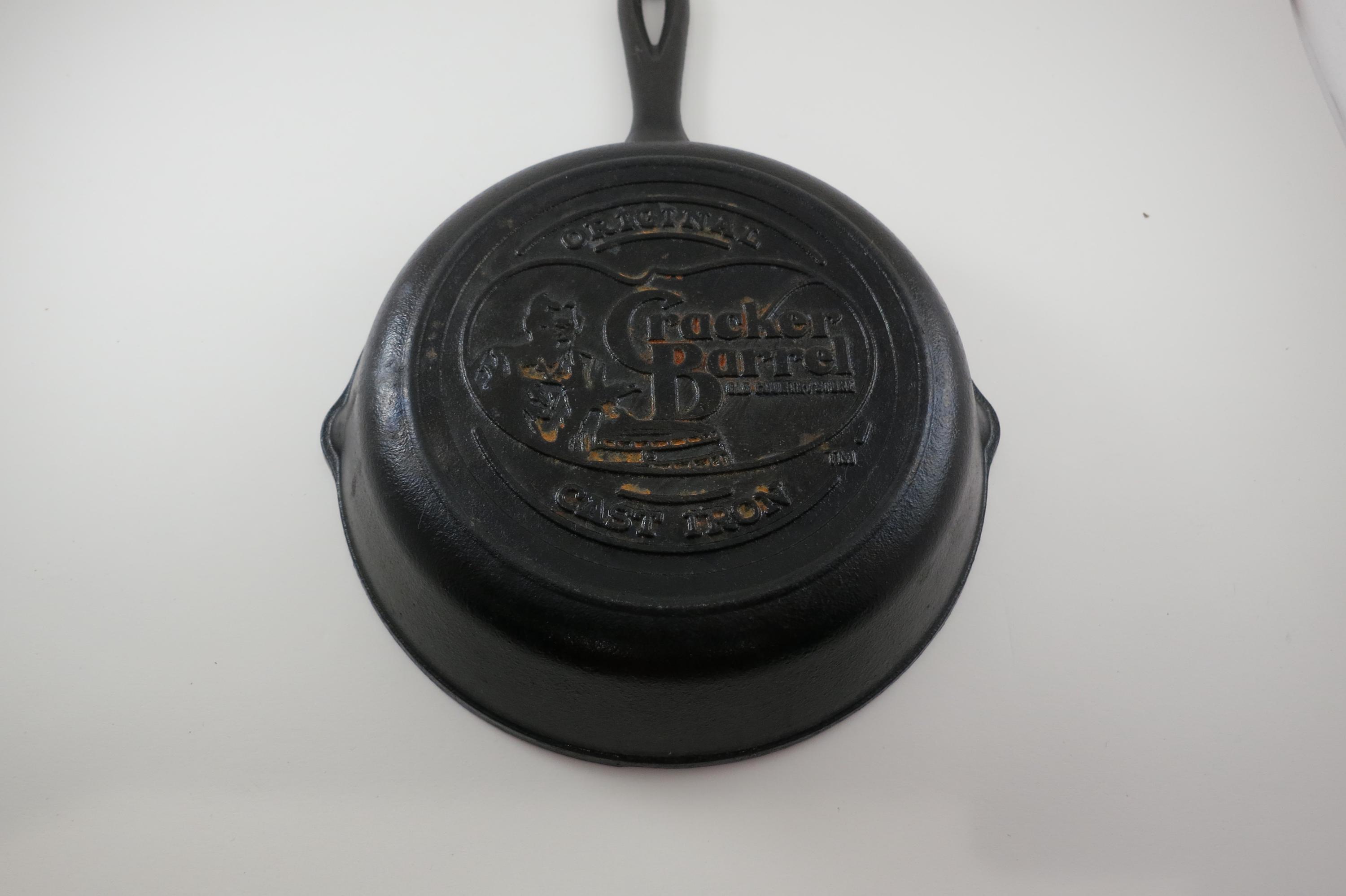 Vintage Cracker Barrel 8 Inch Cast Iron Skillet. 8 Inch Diameter, no damages, has been well cared for. Marked on the bottom, dual pour spouts.
