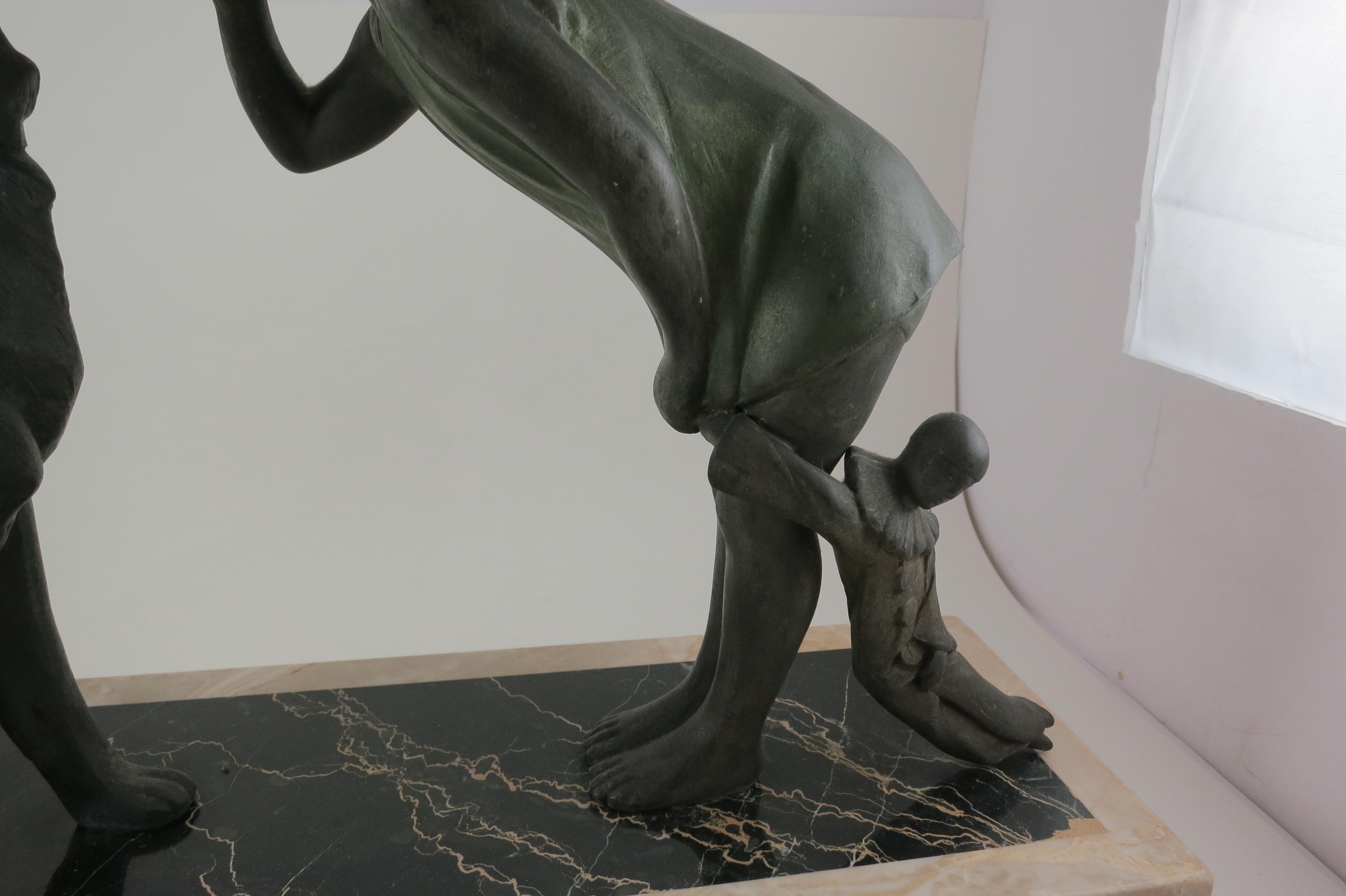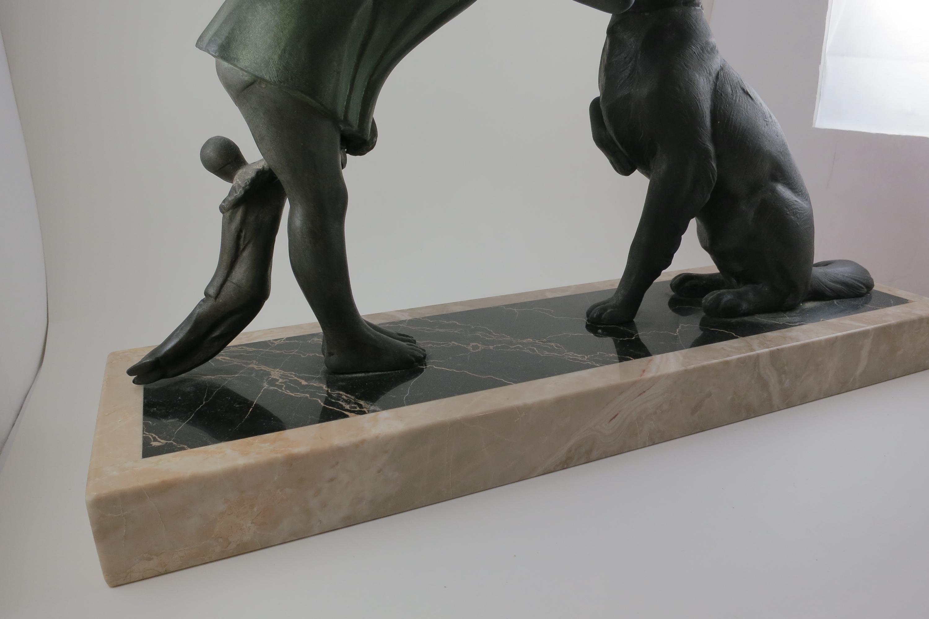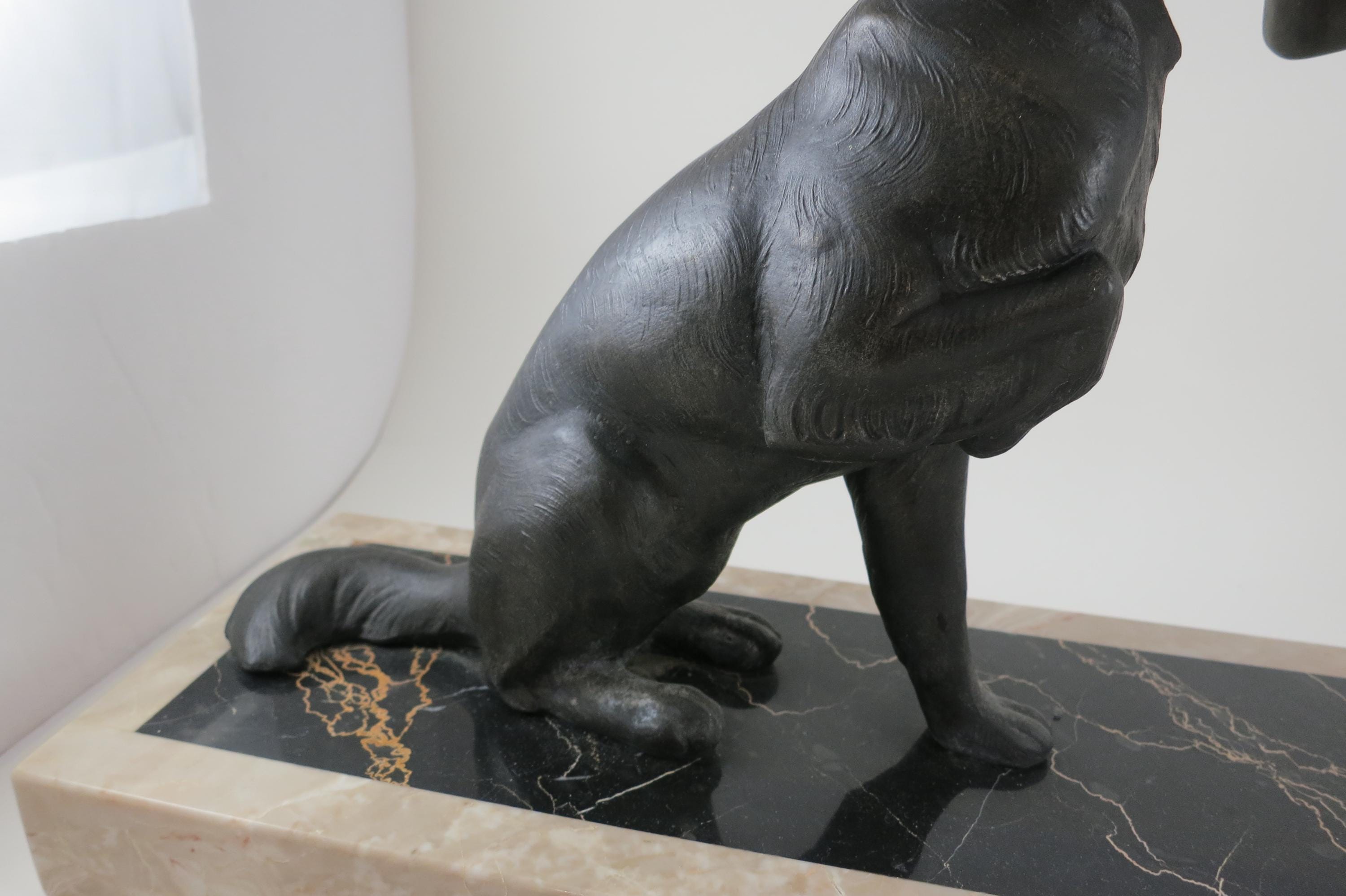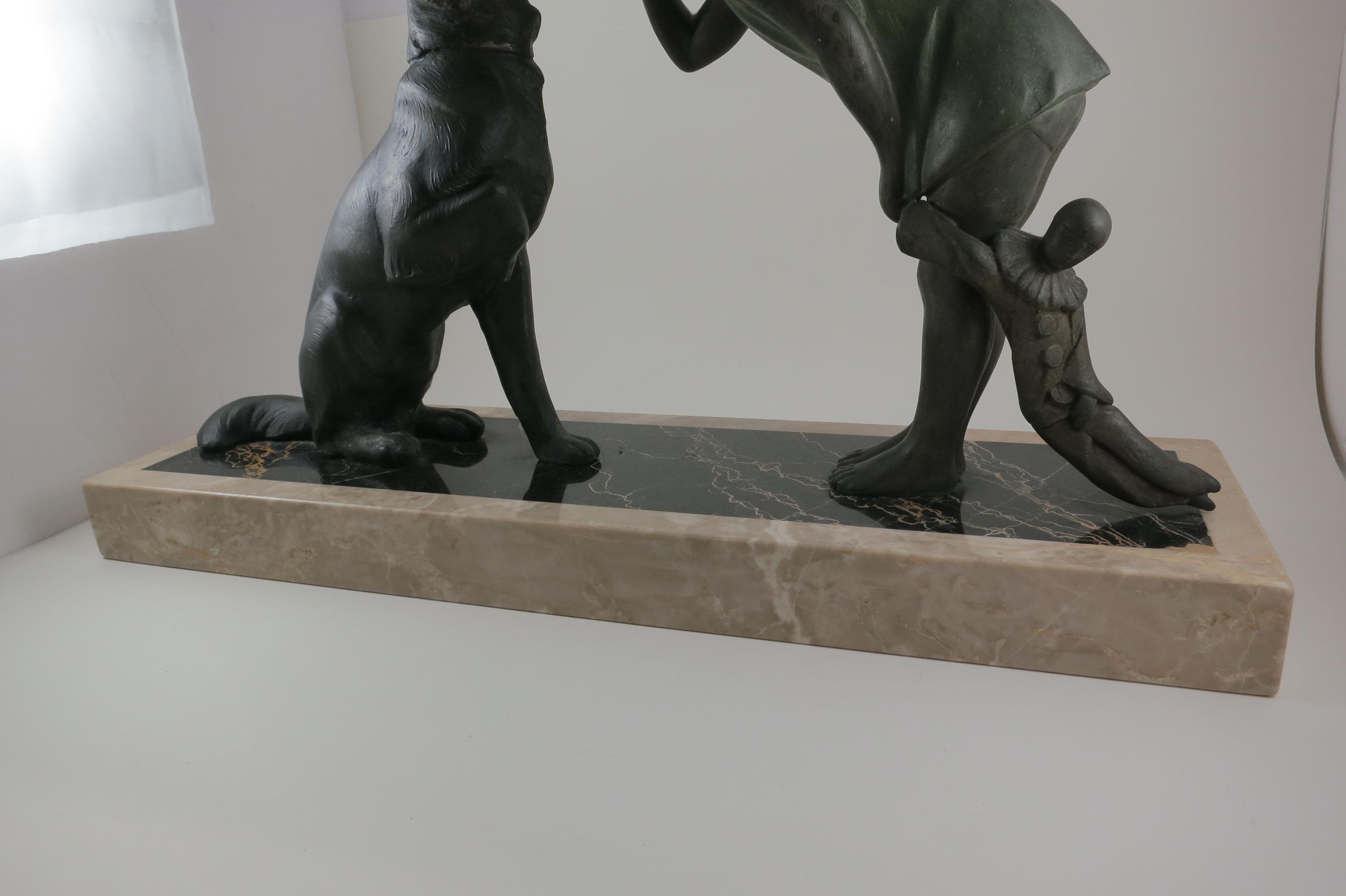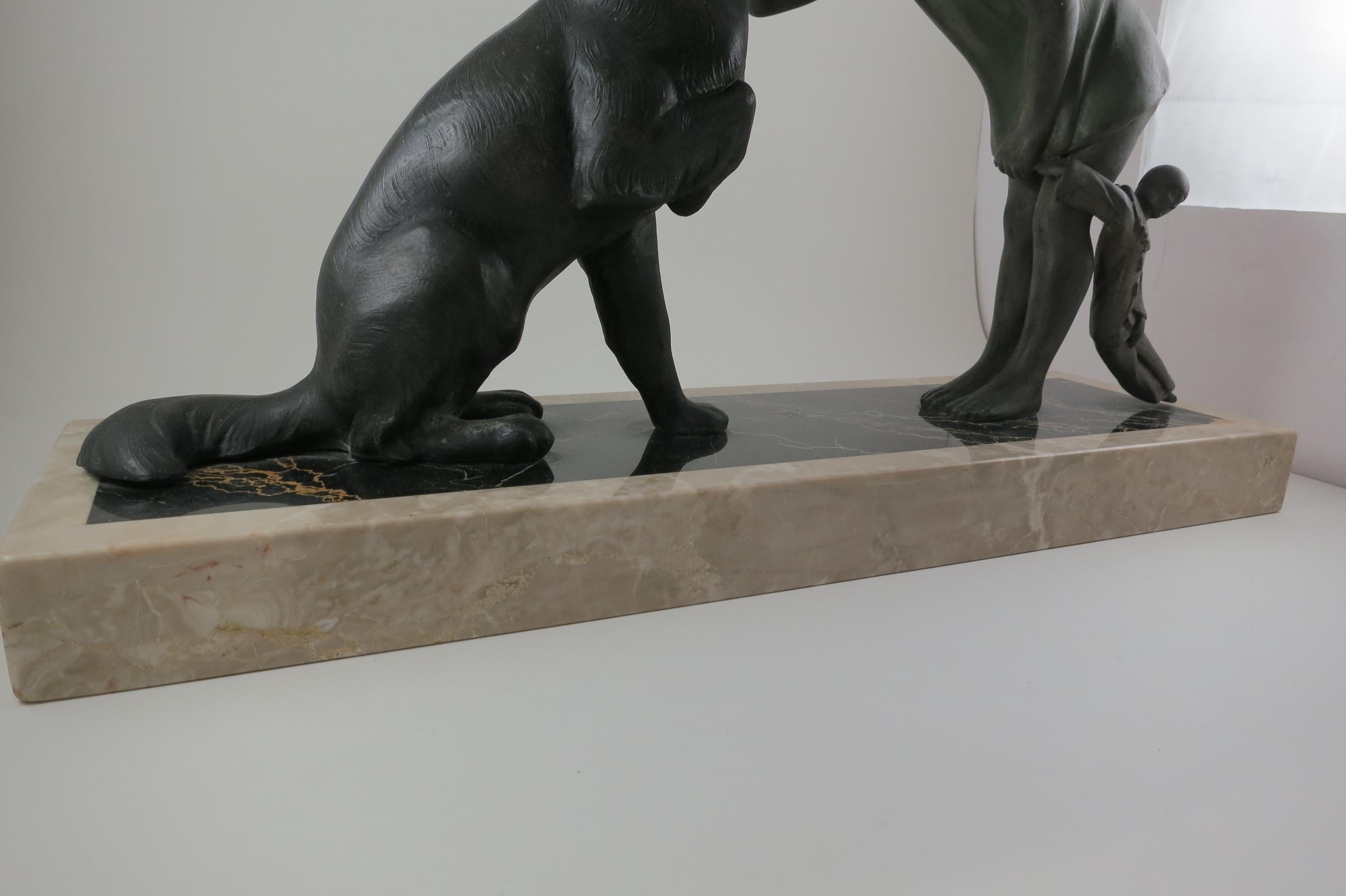 Large Bronze Art Deco Boy and Dog Statue Heavy Marble Base.
