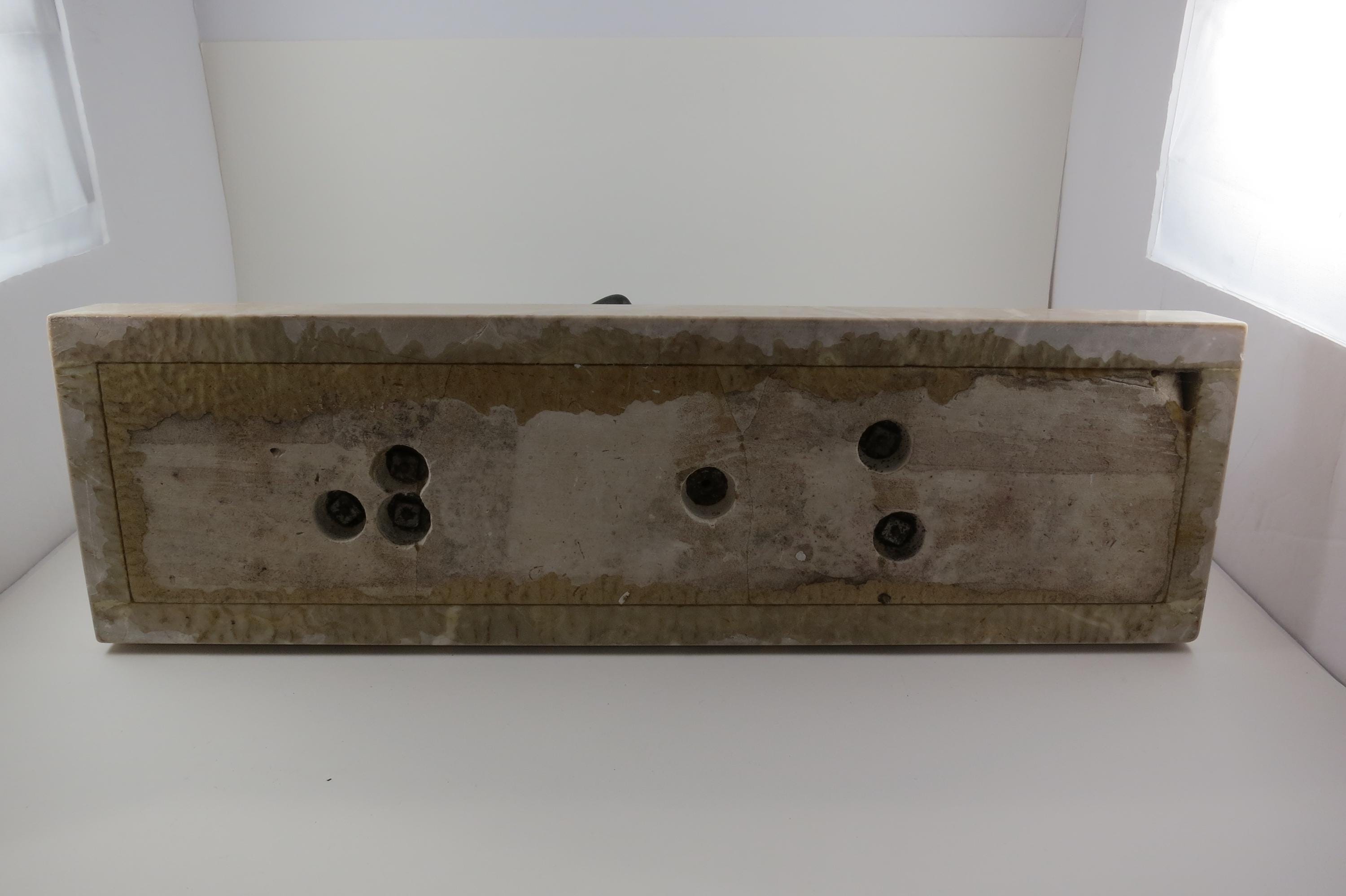 This is a fabulous, large and heavy piece that someone will love in their home. It measures 17 1/4 inches wide, 5 1/4 inches deep and 12 1/8 inches tall. It has a thick white marble base. Amazing detail and an adorable pose!