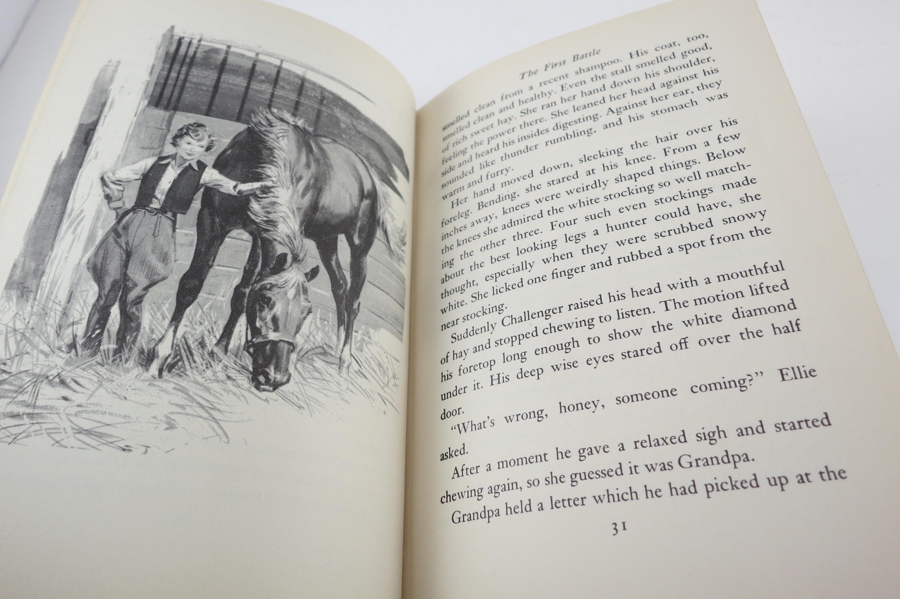 Hardcover book with dust jacket, which has edge and spine wear. Illustrated by Sam Savitt, who at the time was the official artist of the U.S. Equestrian Team. 217 Pages, Complete.