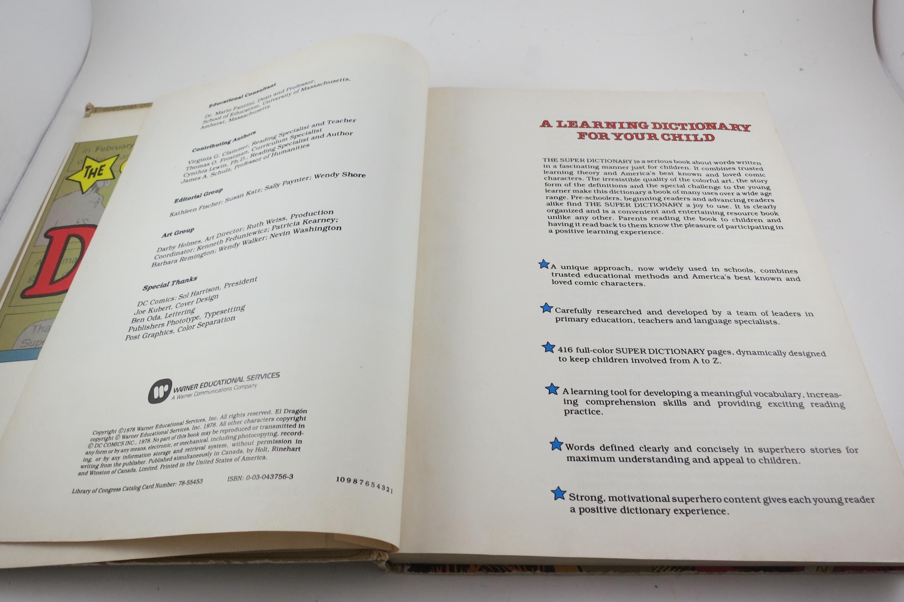 Vintage 1978 Hard Cover Book The Super Dictionary Superman Batman First Edition.