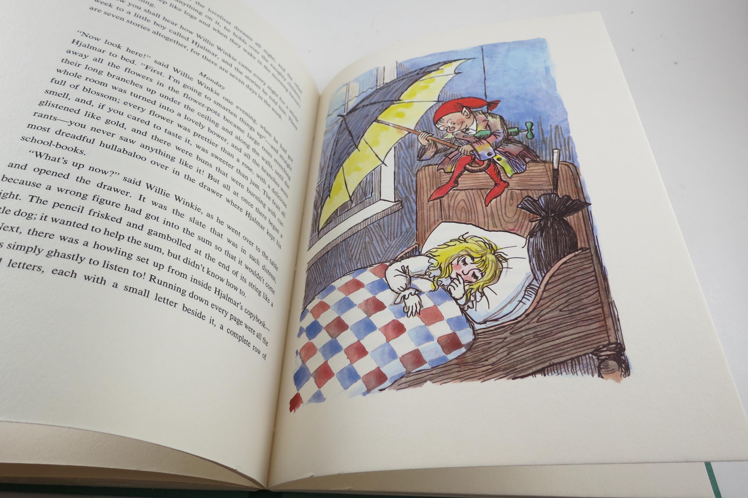 Green hardcover with a duck on the front, 96 Pages, Illustrated. First couple pages have some small brown spots. Very Nice Book!