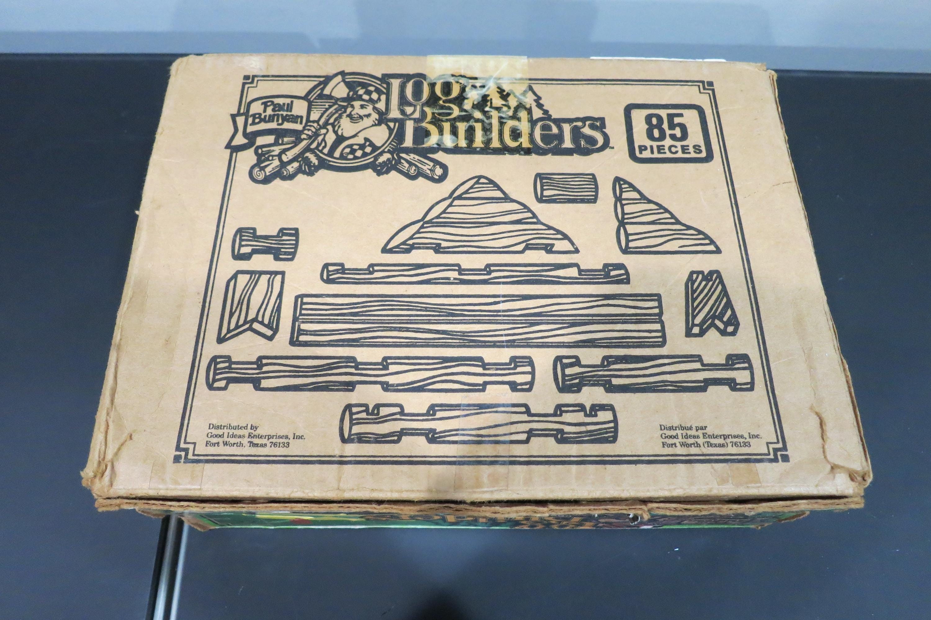 Vintage 1990 Paul Bunyon 85 Piece Log Builders Construction Set IOB