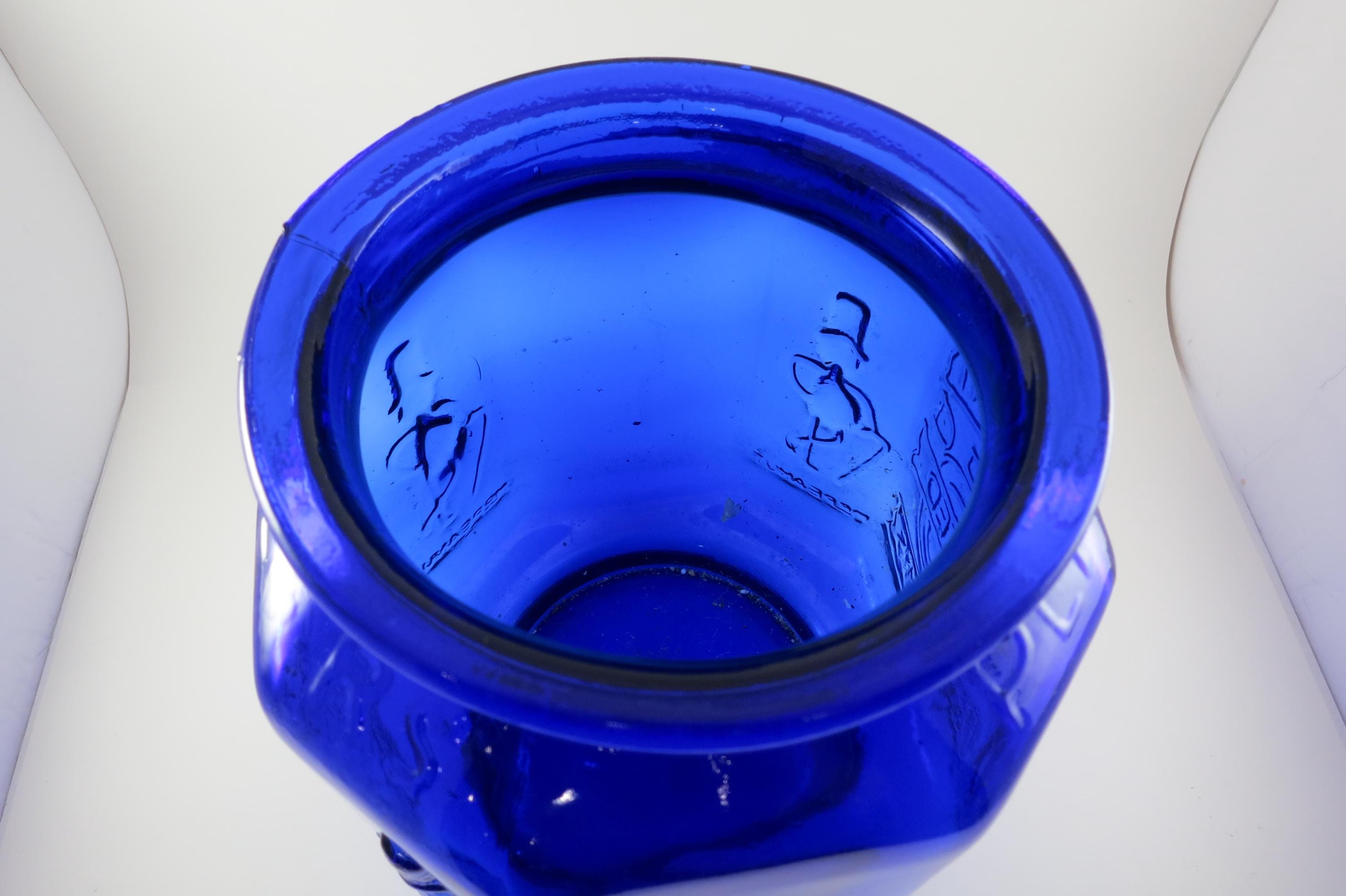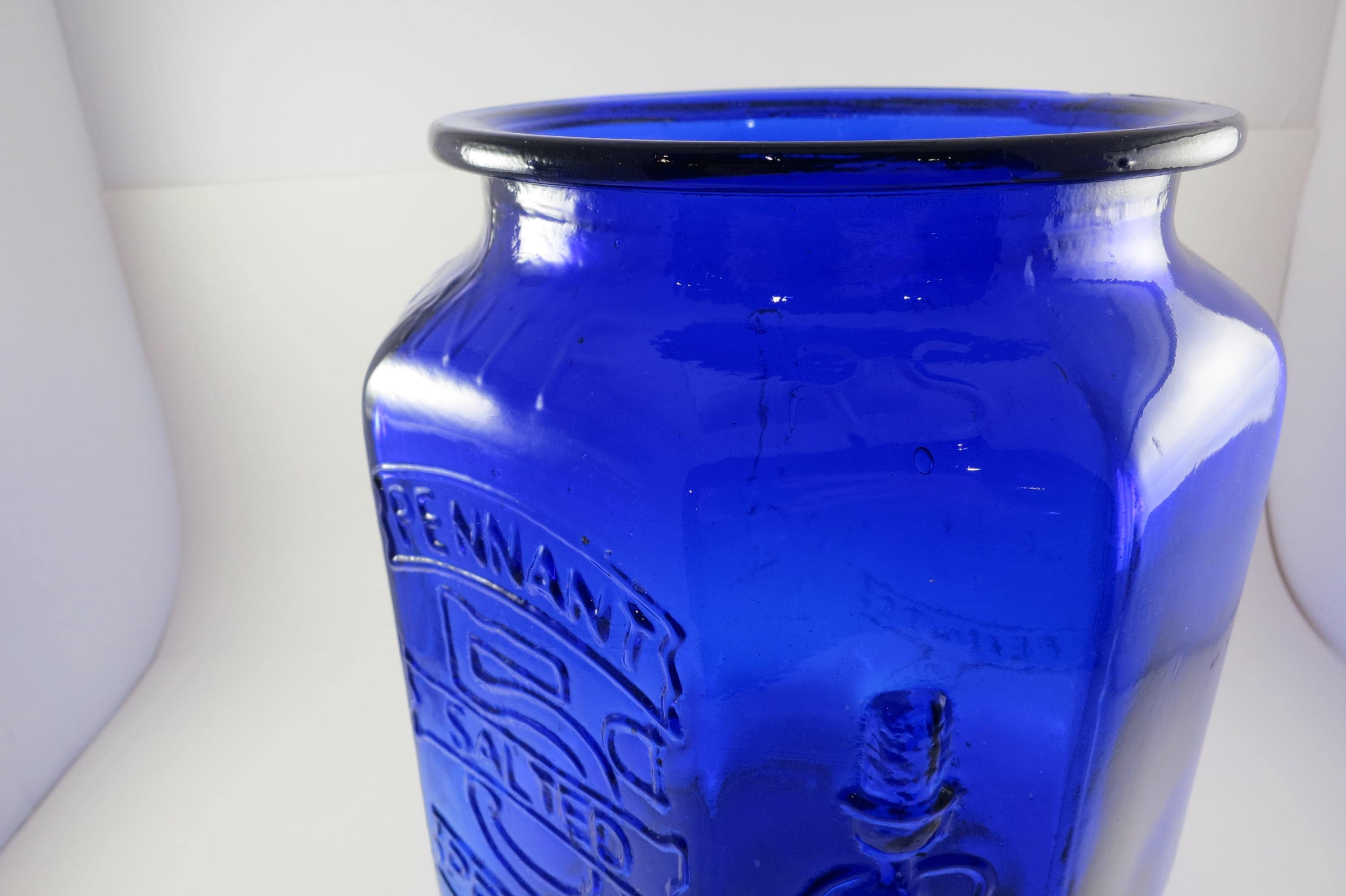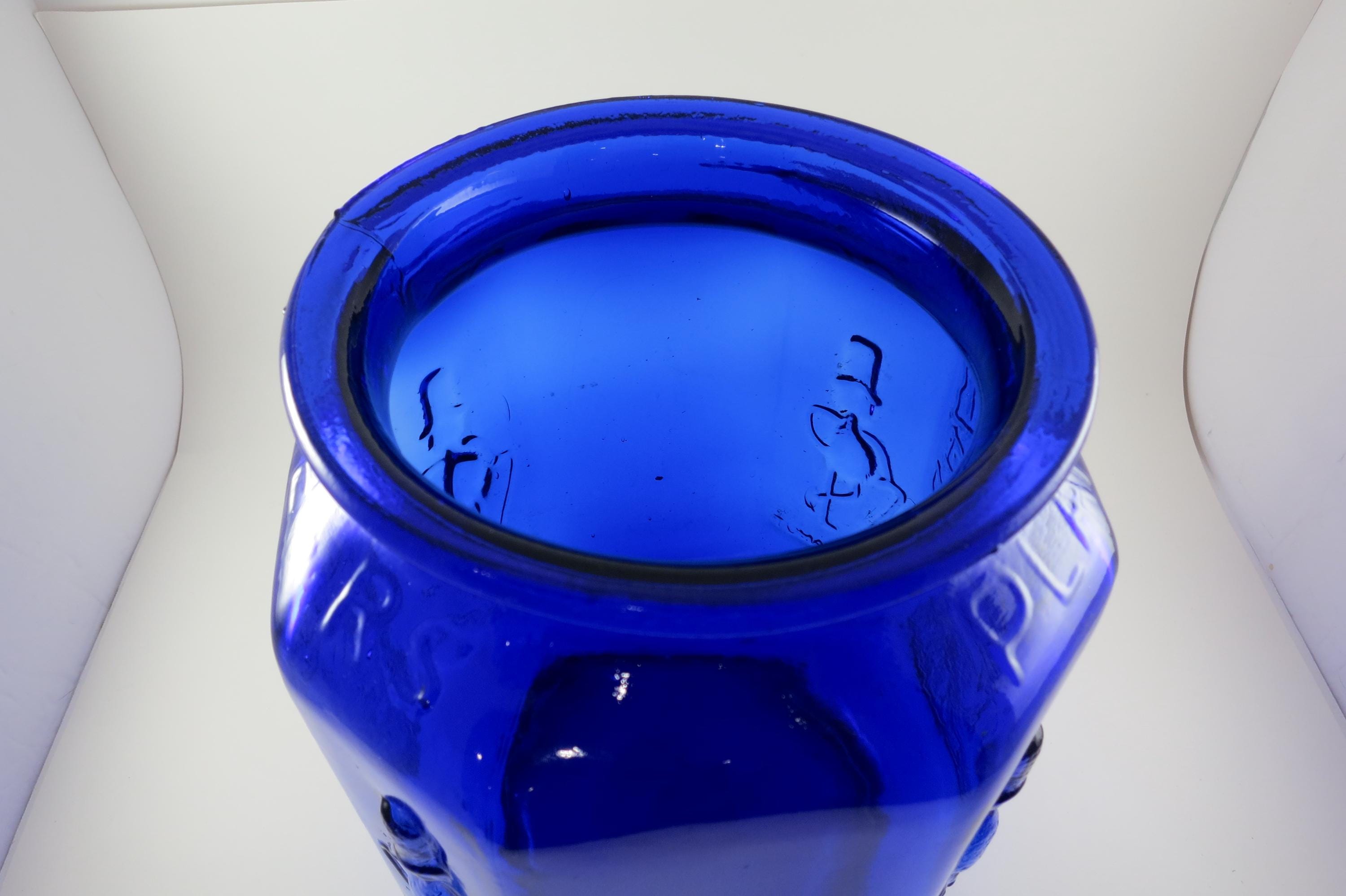 Vintage Cobalt Blue Mr. Peanut Planters Peanuts Jar Large Size Embossed Bubbled Glass