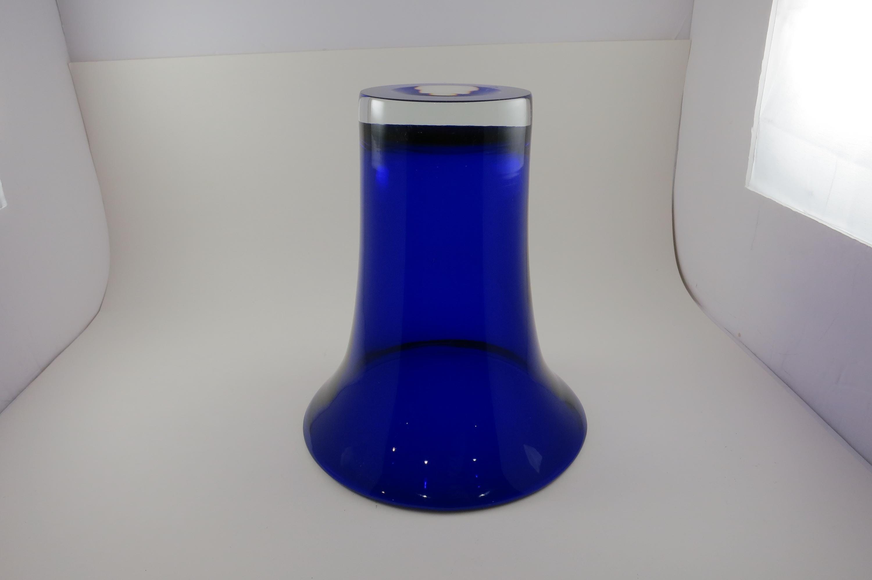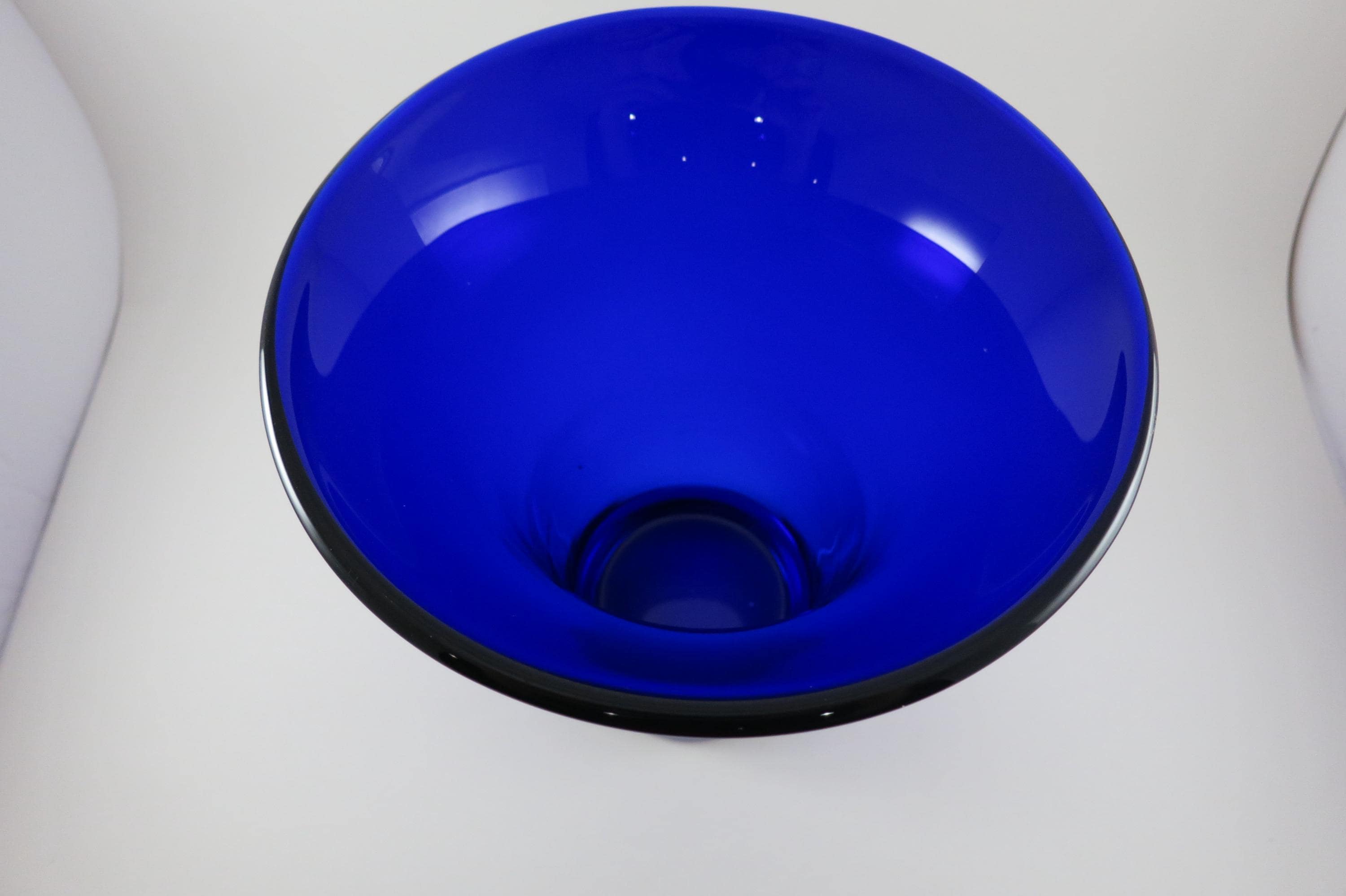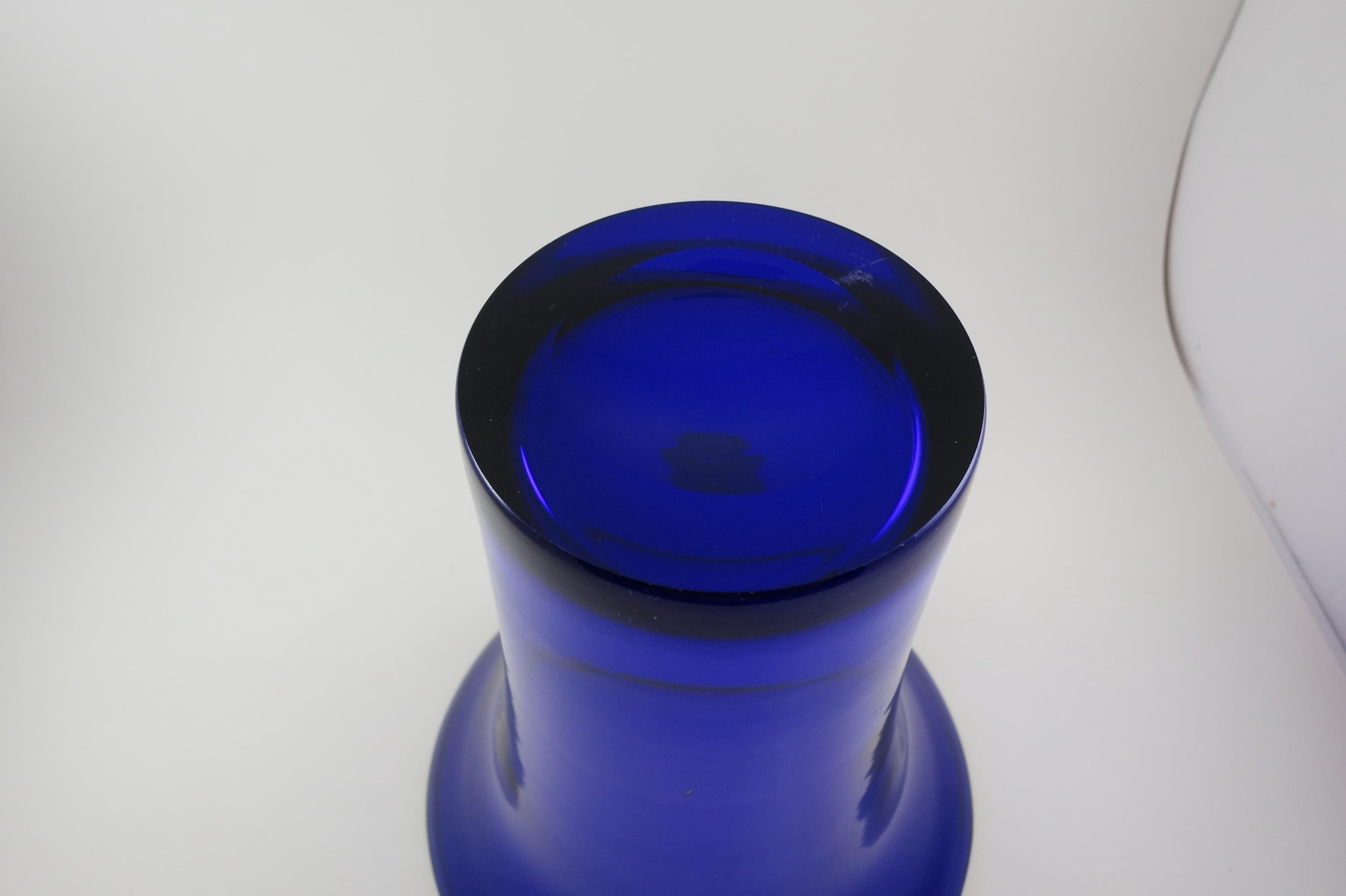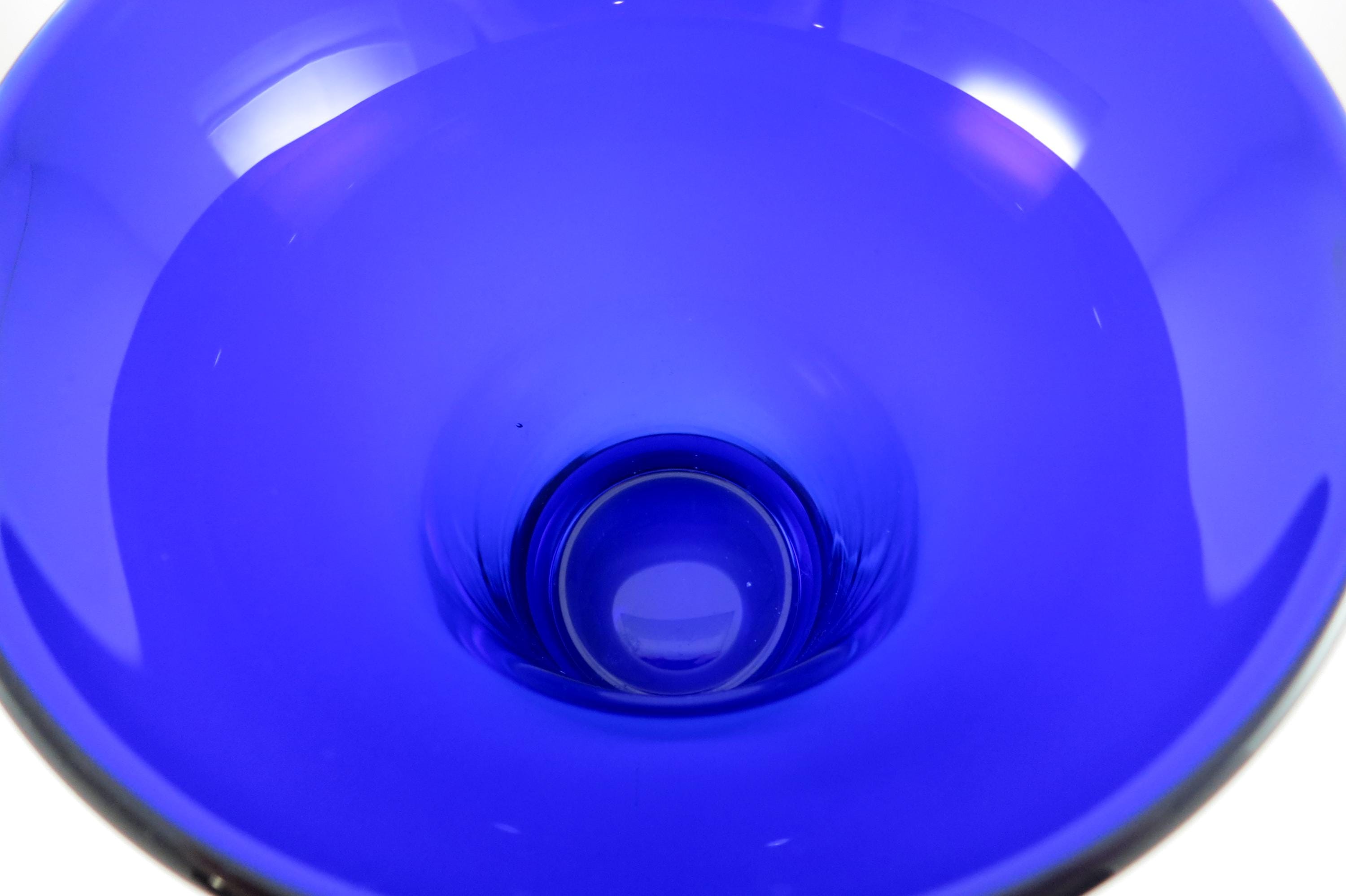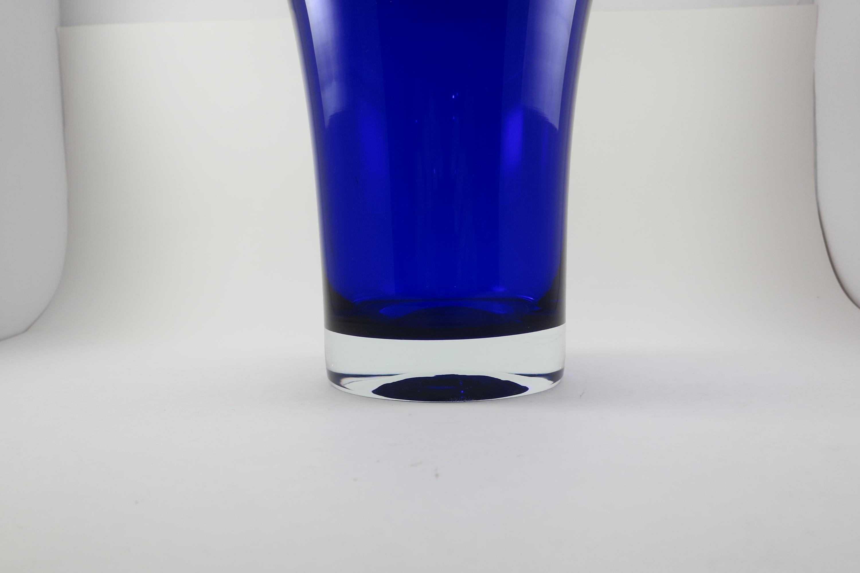 Vintage Cobalt Blue Polish Hand Blown Glass Vase Flared Rim Thick Clear Base. Very nice vase that displays great! Measures 8 1/2 inches tall and 7 1/2 inches wide at the rim. Heavy, great quality and a beautiful vase.