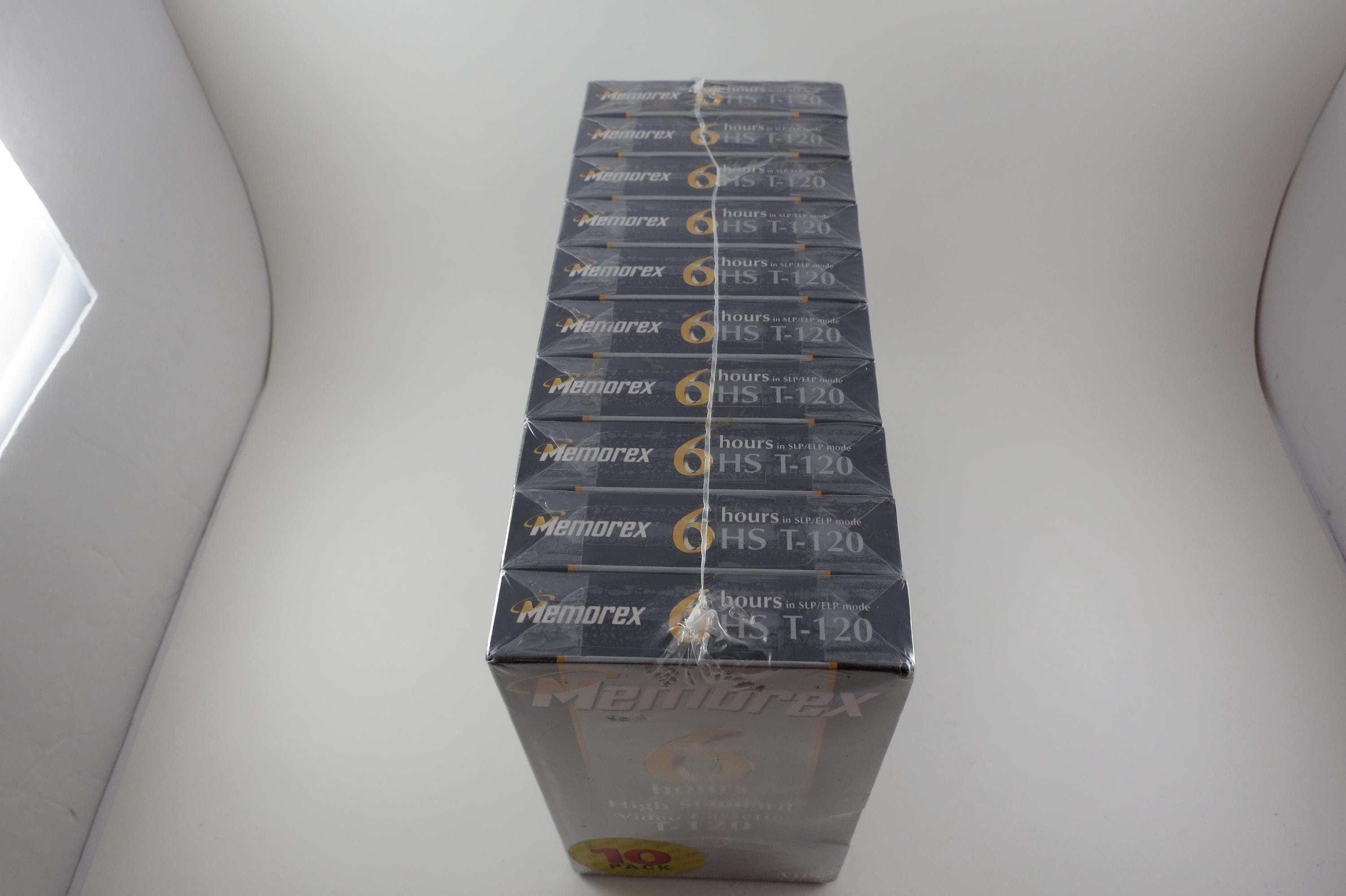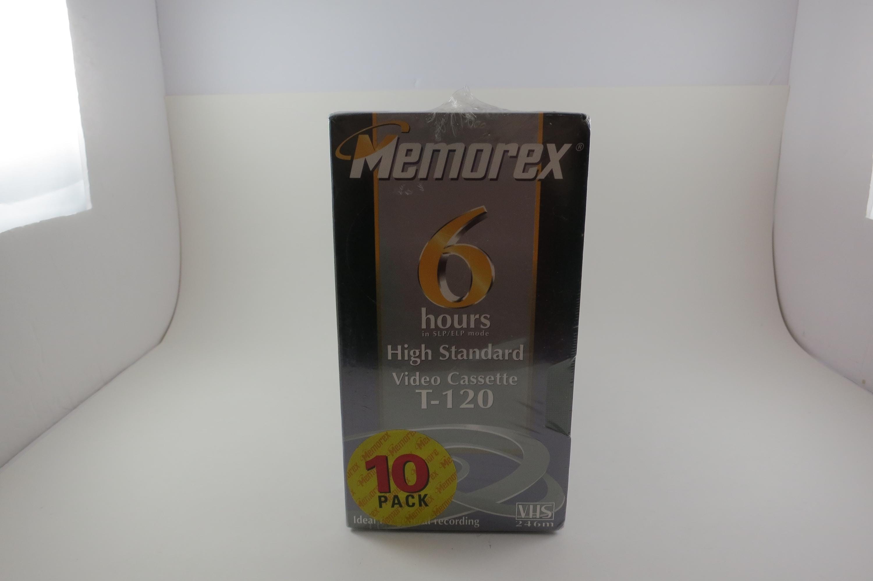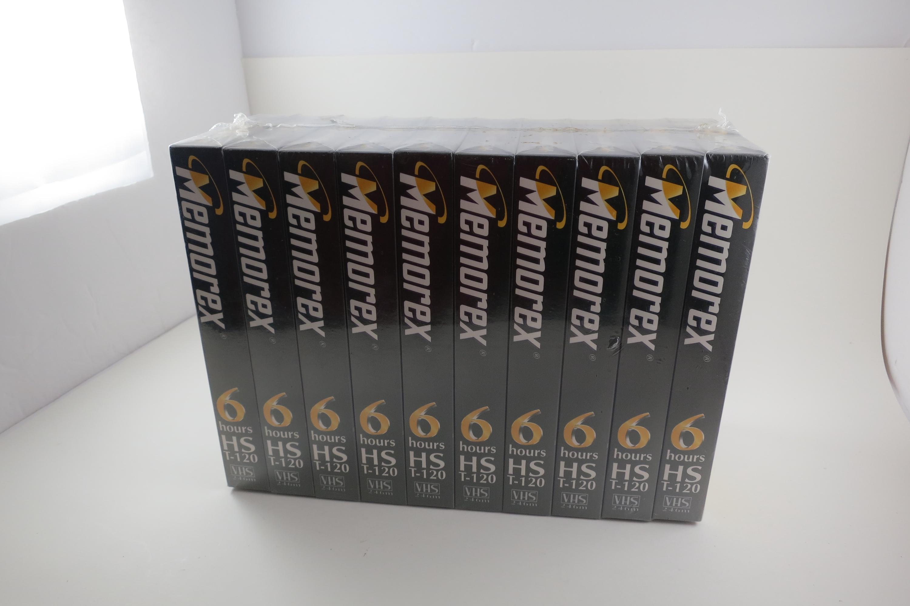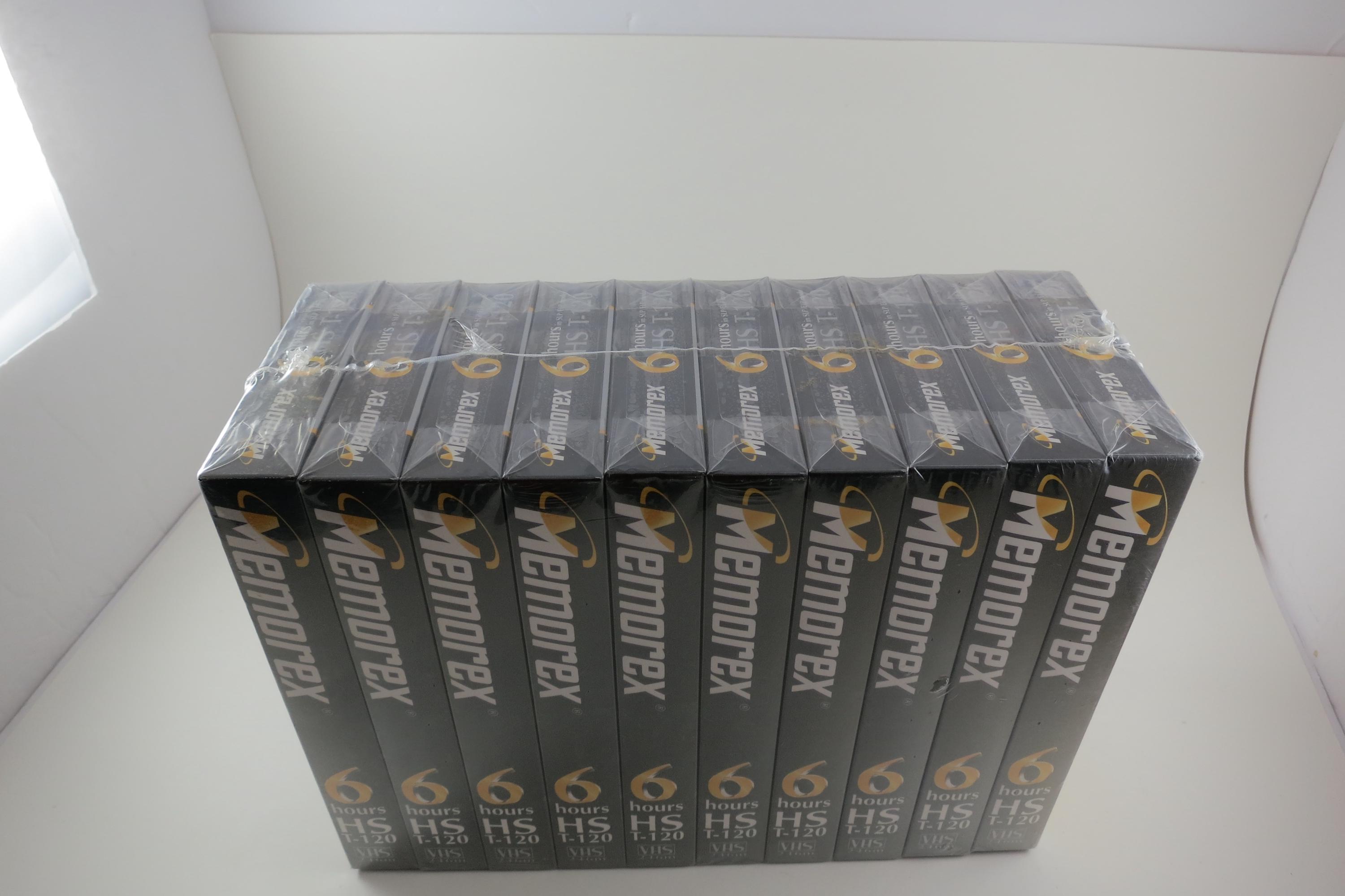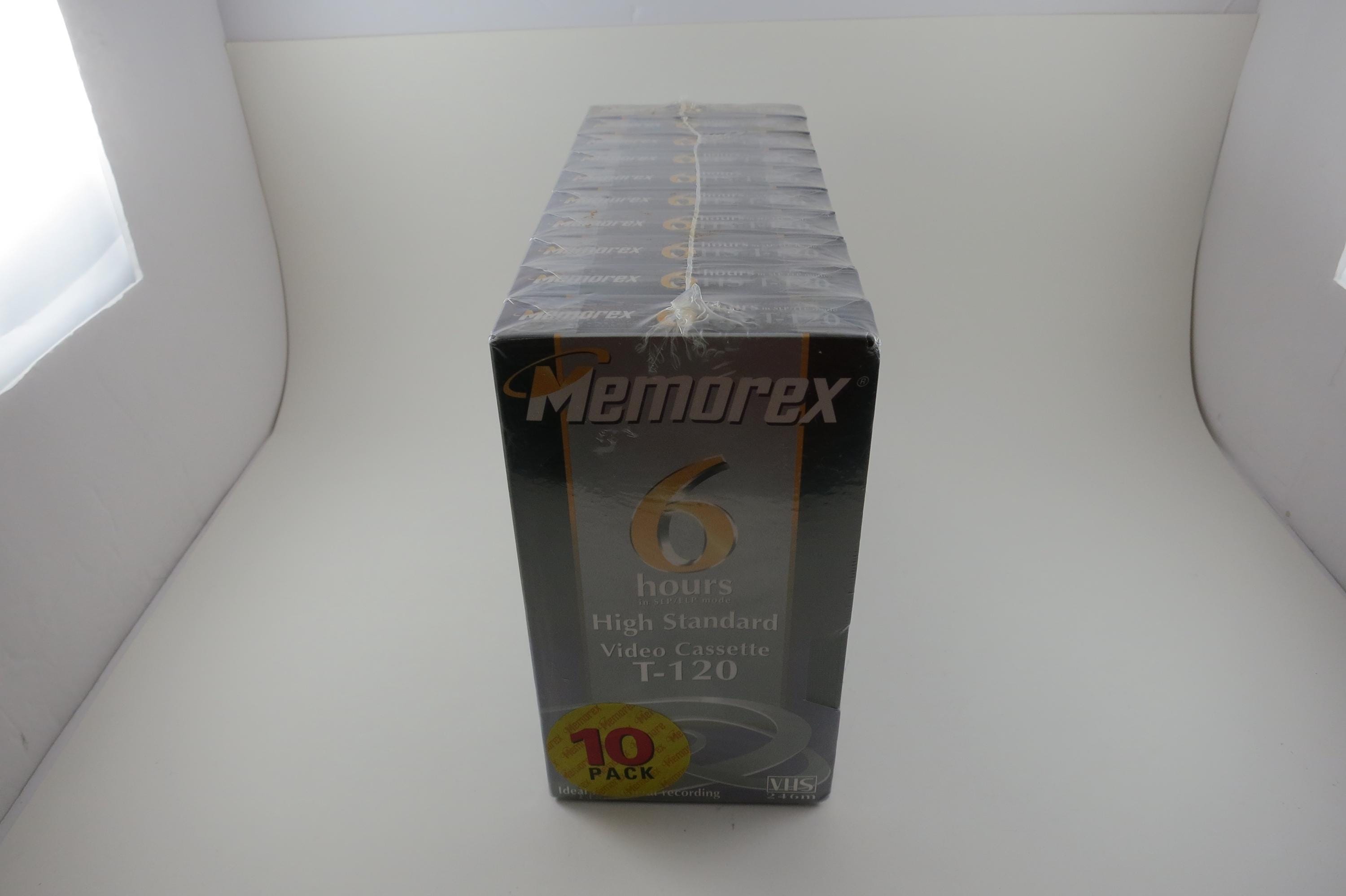 1990's 10 Pack of Sealed VHS Tapes Memorex 6 Hour T-120. Ready to Record!