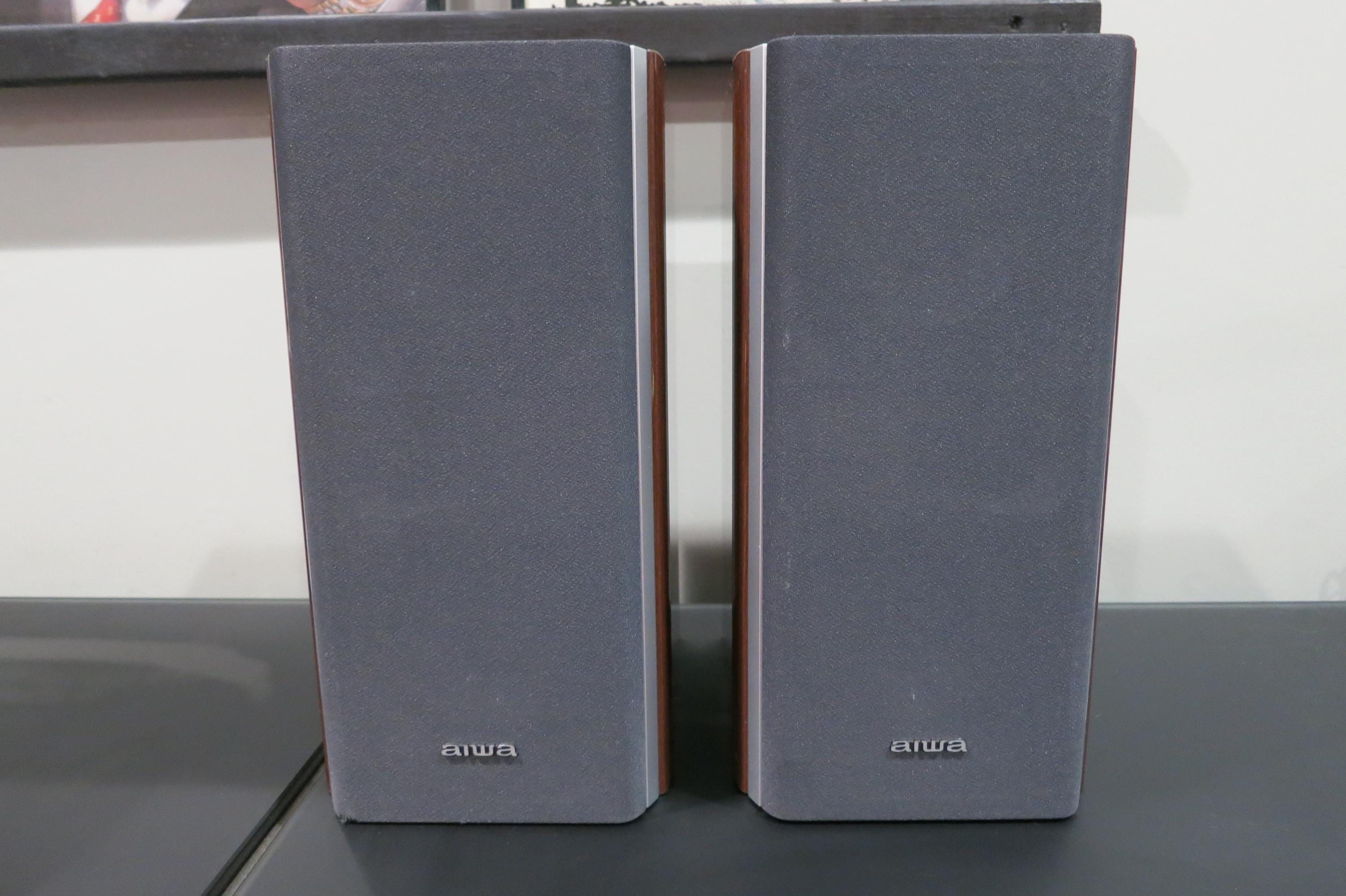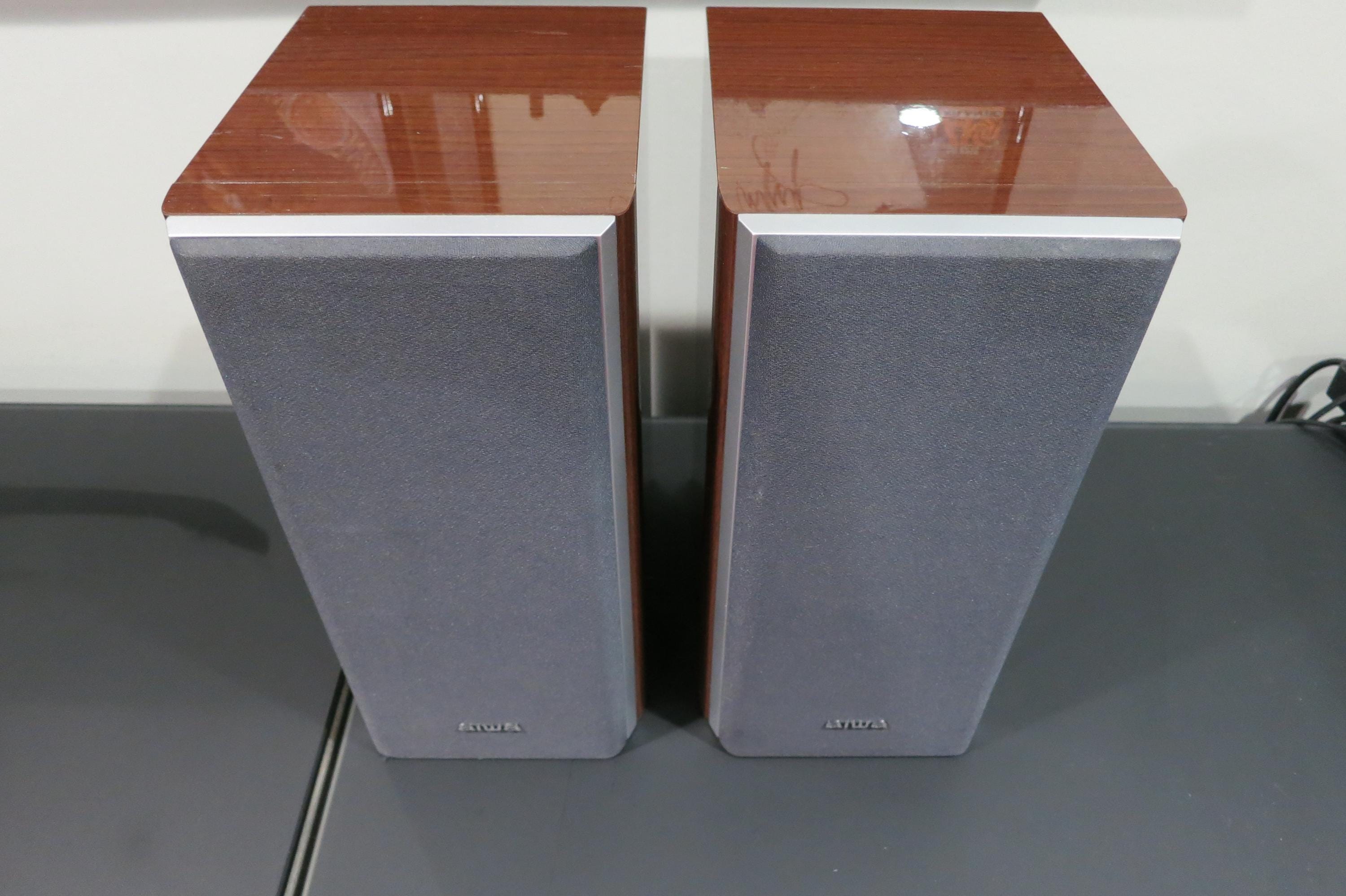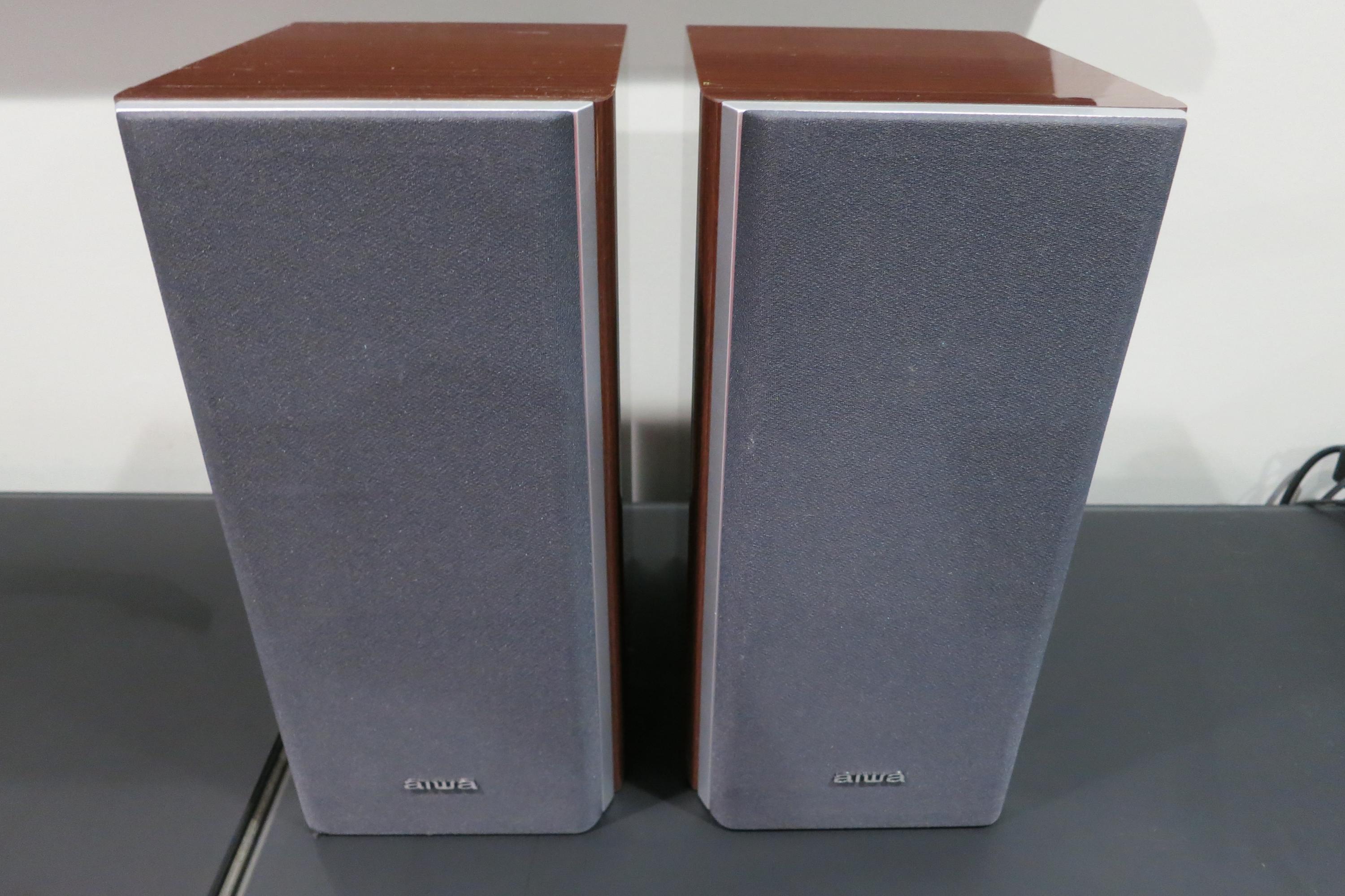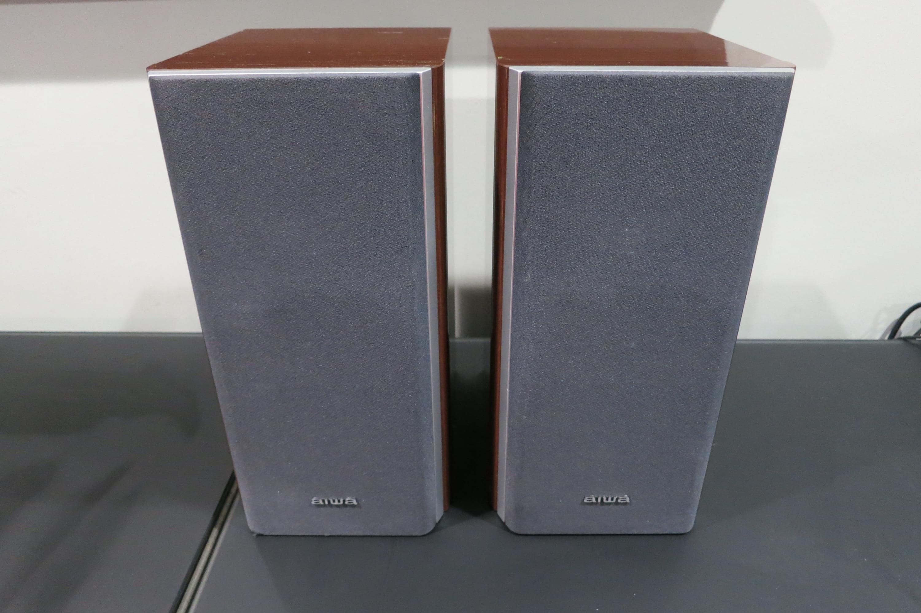 Pair of Vintage 90's Aiwa Bass Reflex Stereo Speakers Bookshelf Speakers Faux Cherry Cases