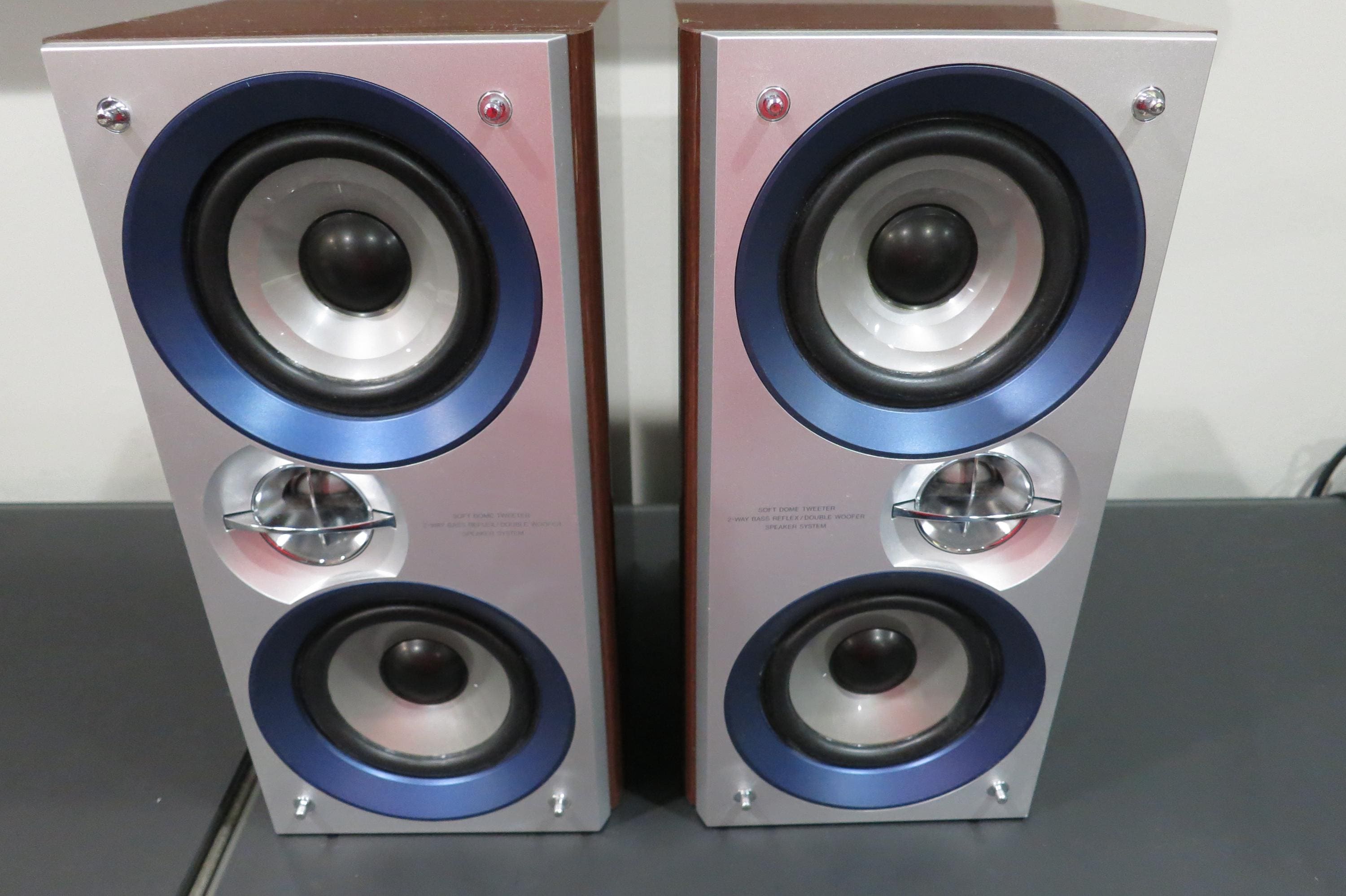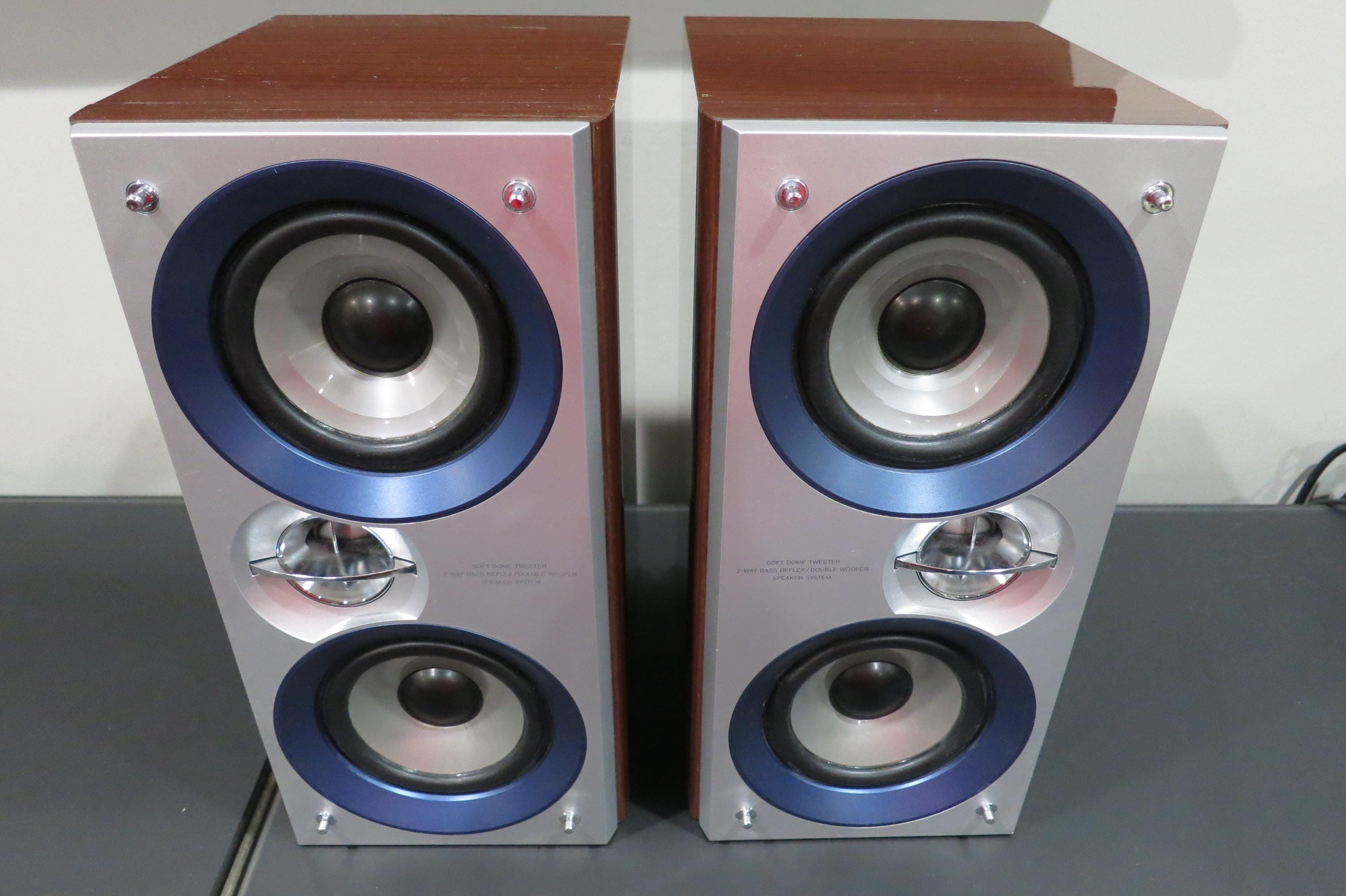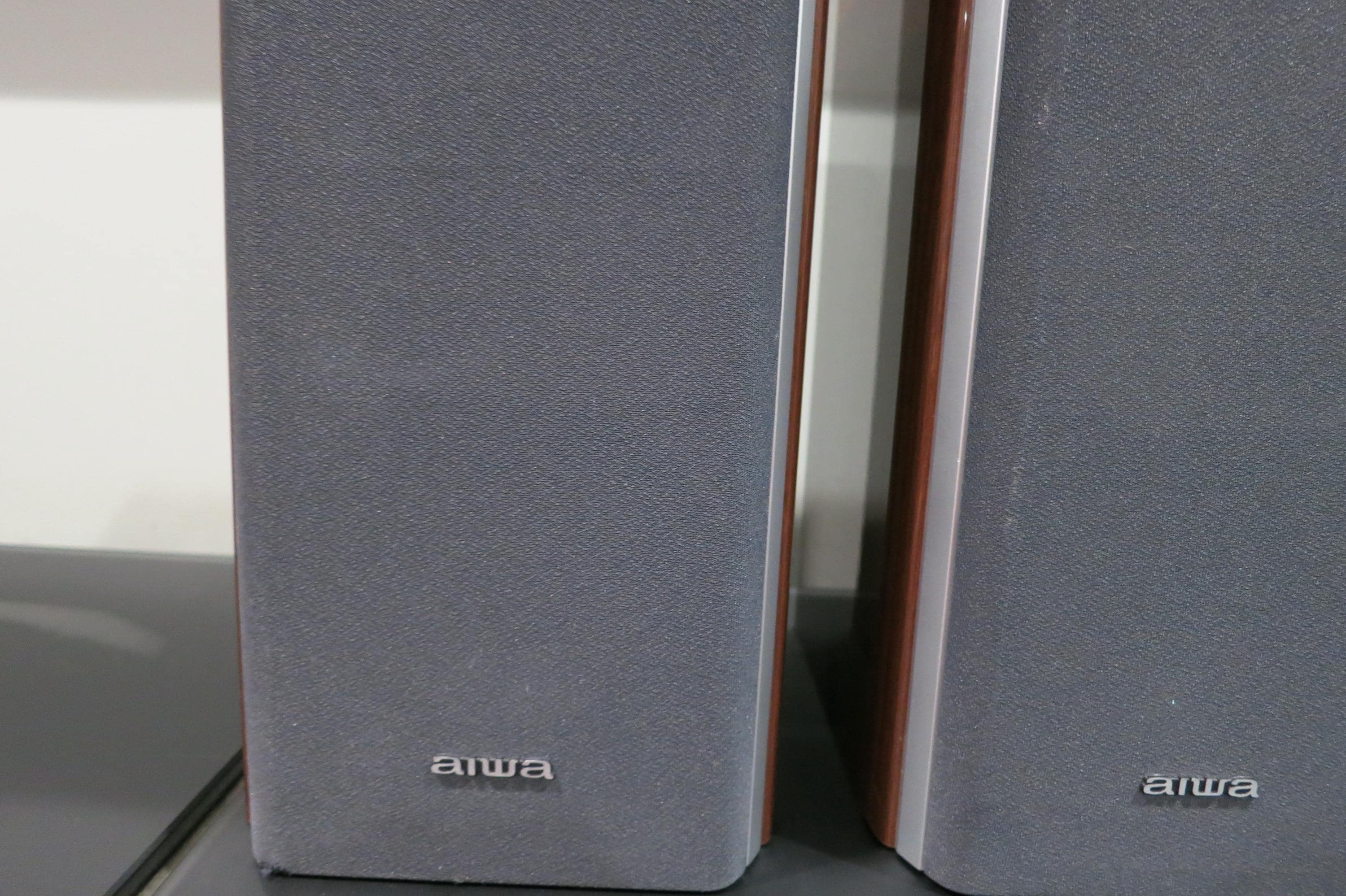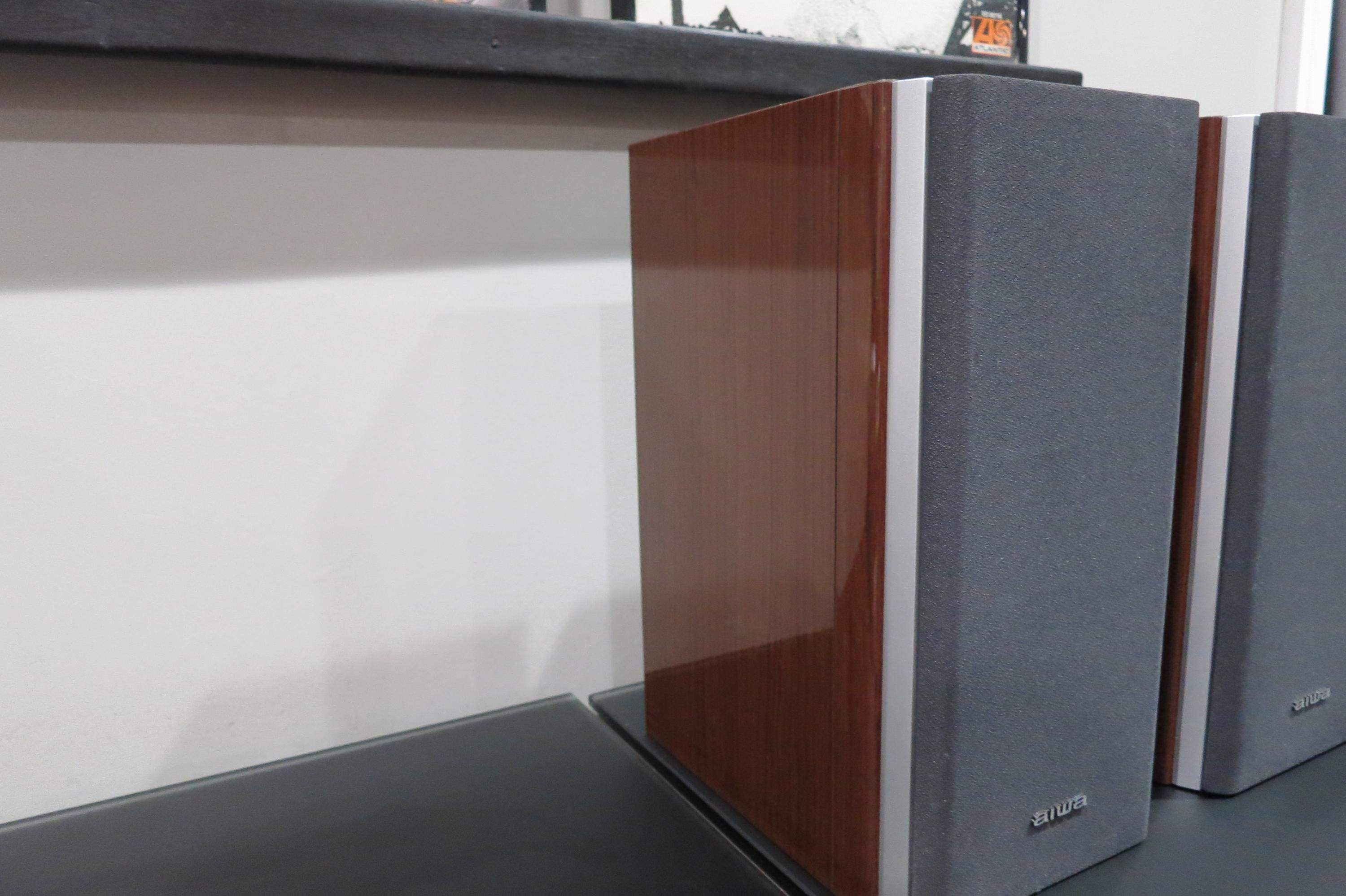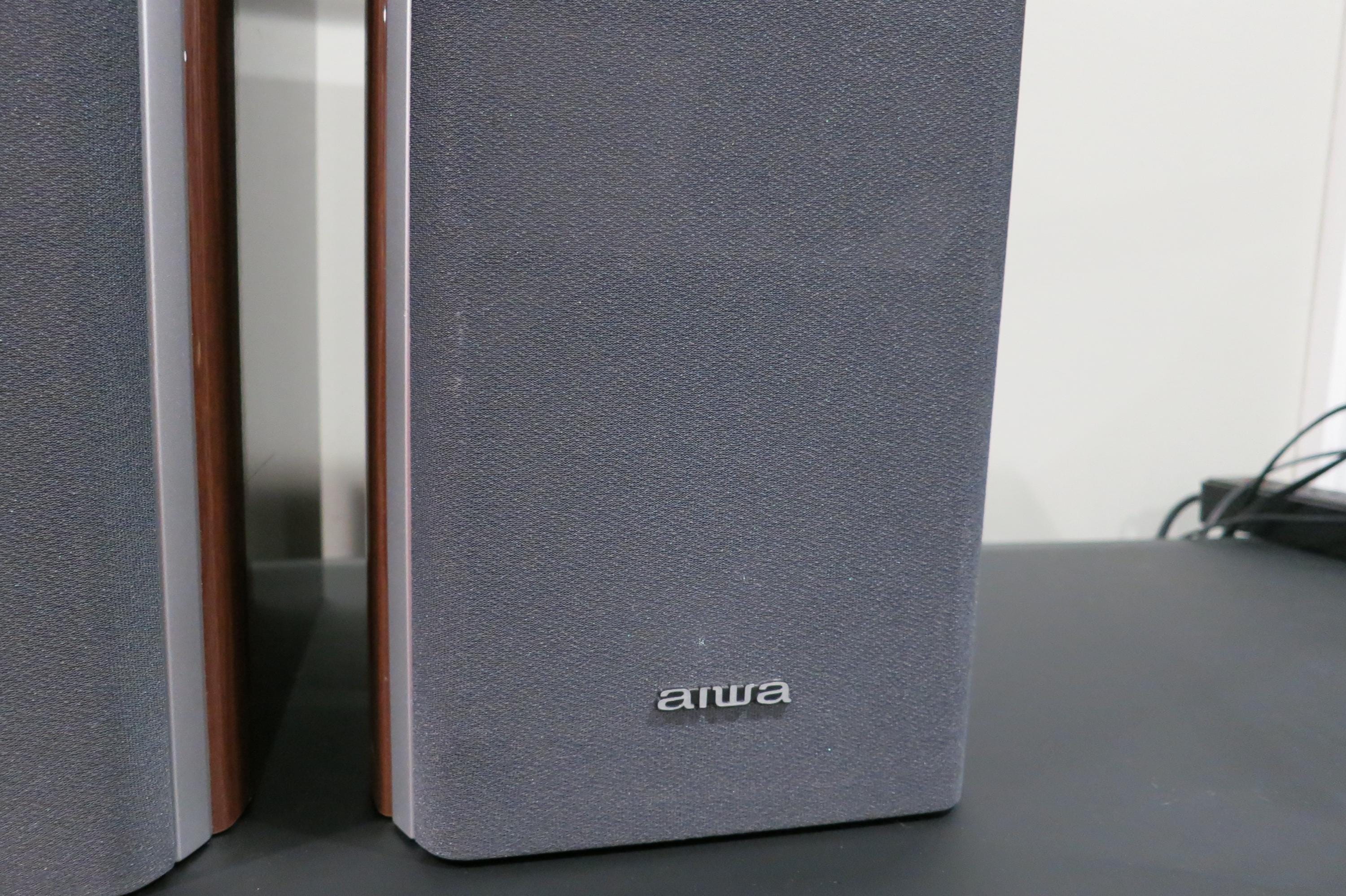 Pair of Vintage 90's Aiwa Bass Reflex Stereo Speakers Bookshelf Speakers Faux Cherry Cases