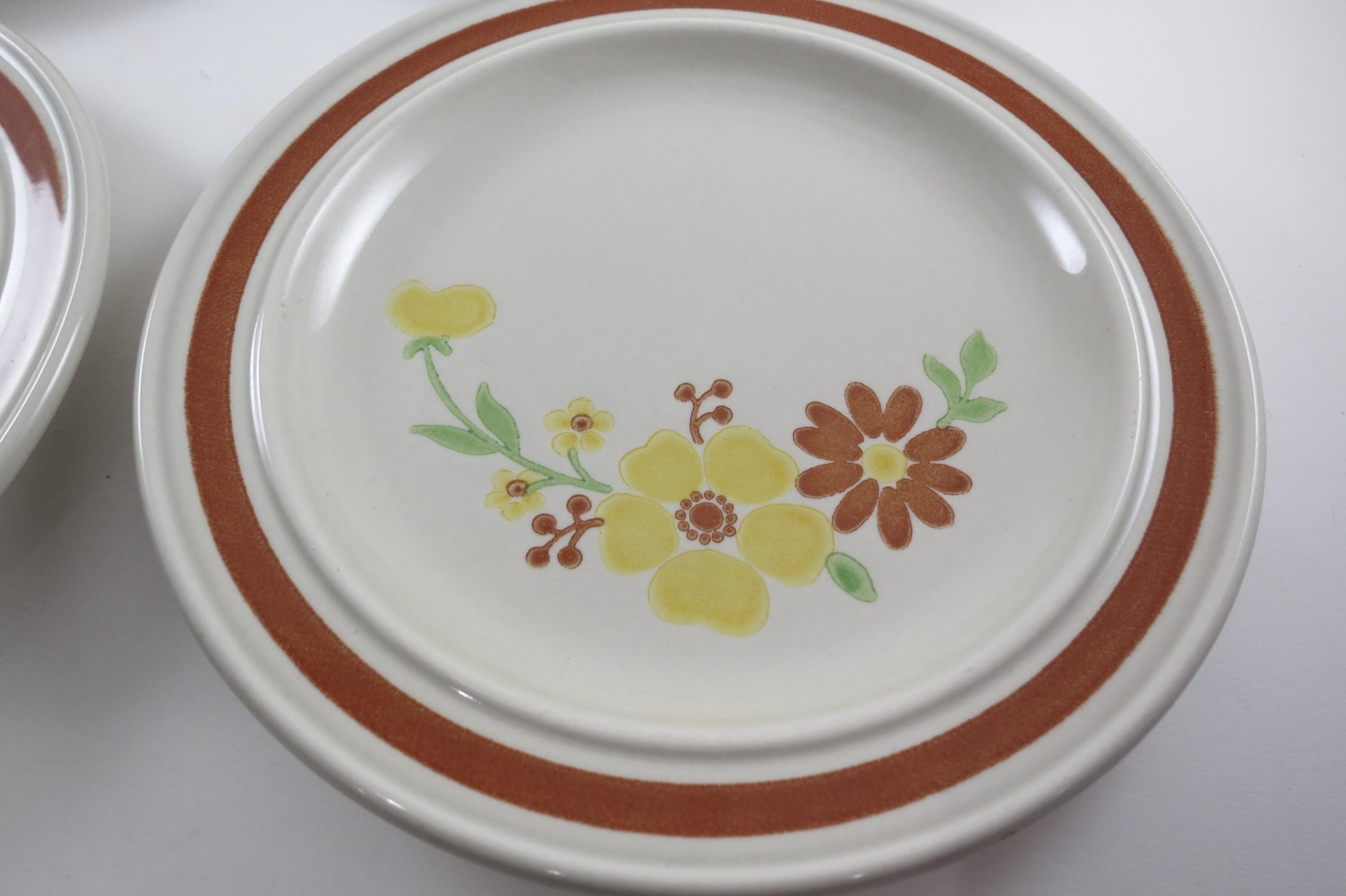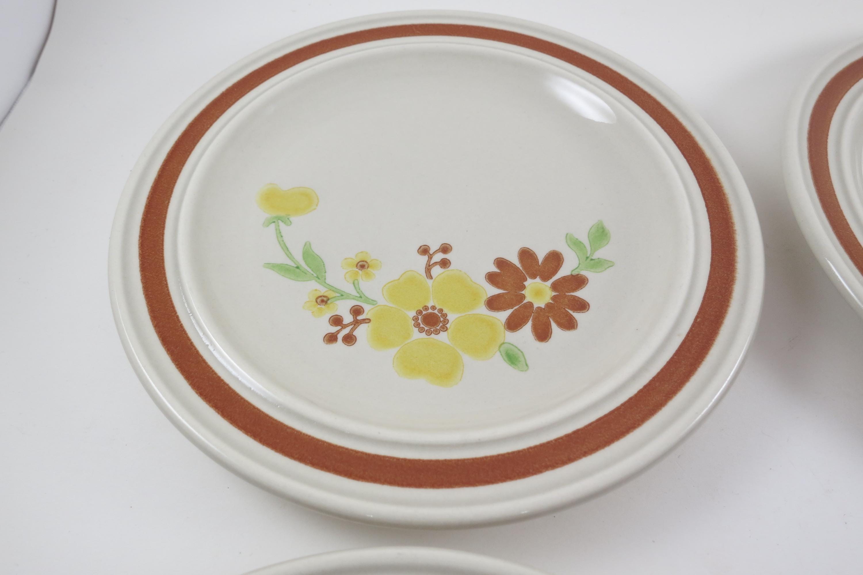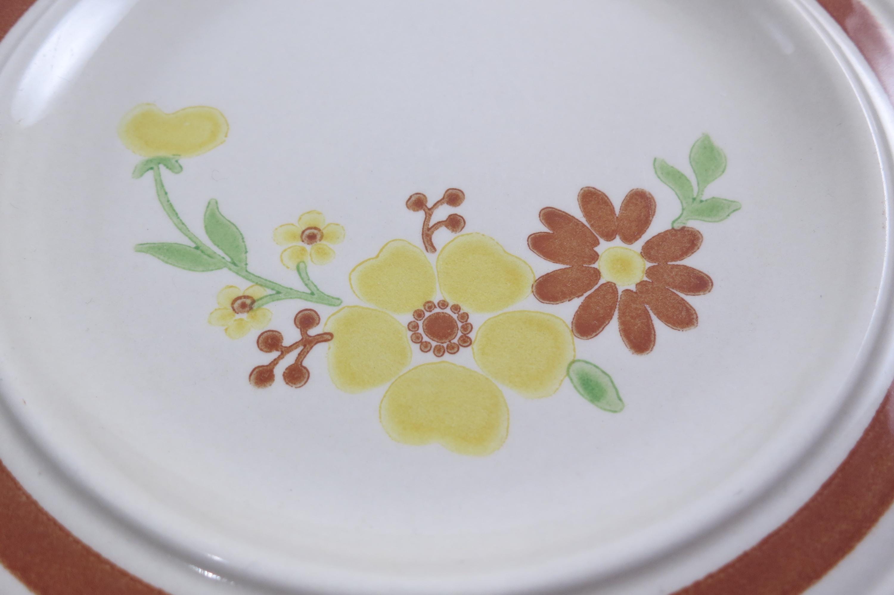 Set of Four Vintage Homer Laughlin China Brown Rim Floral Salad Lunch Plates