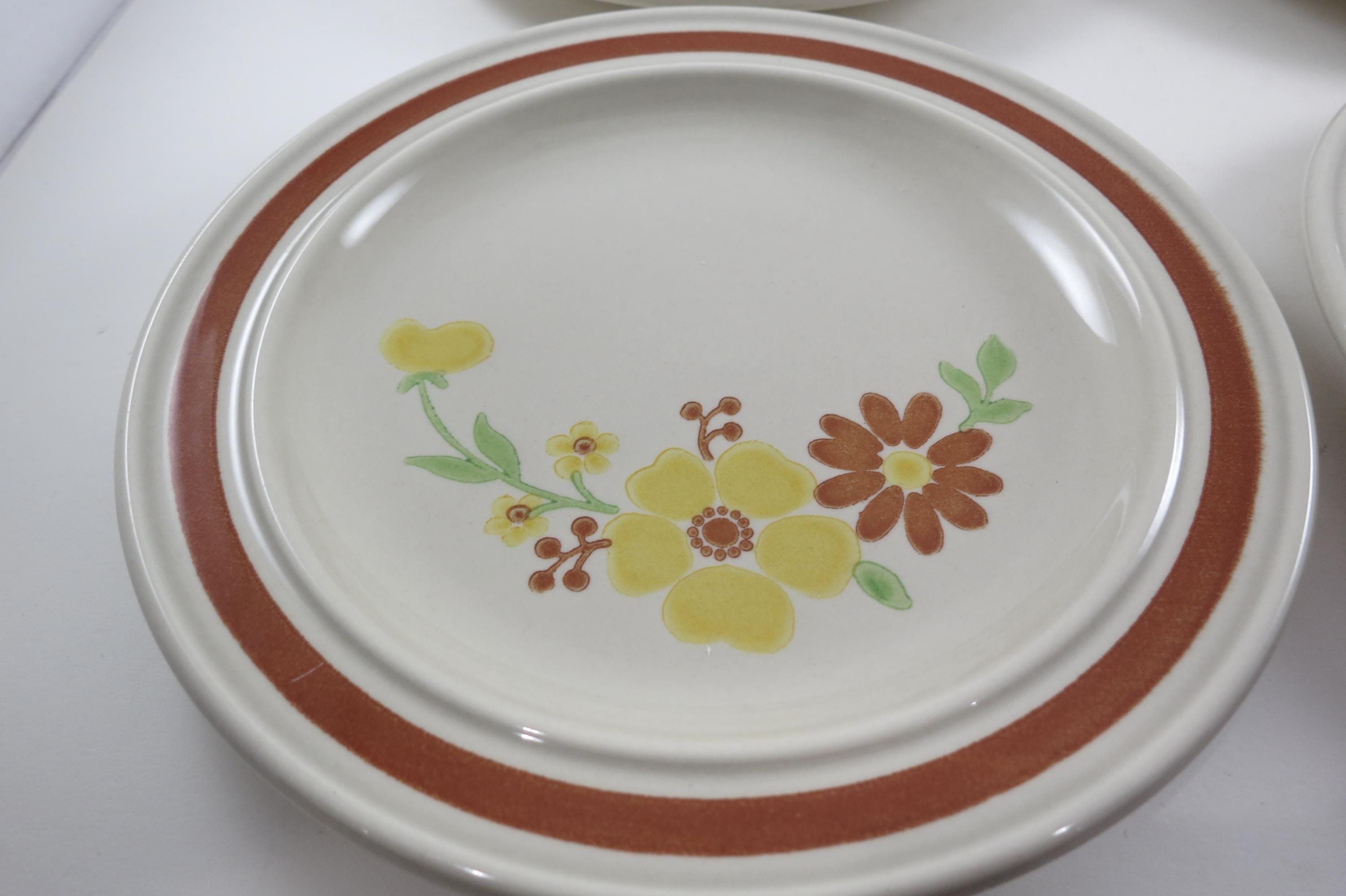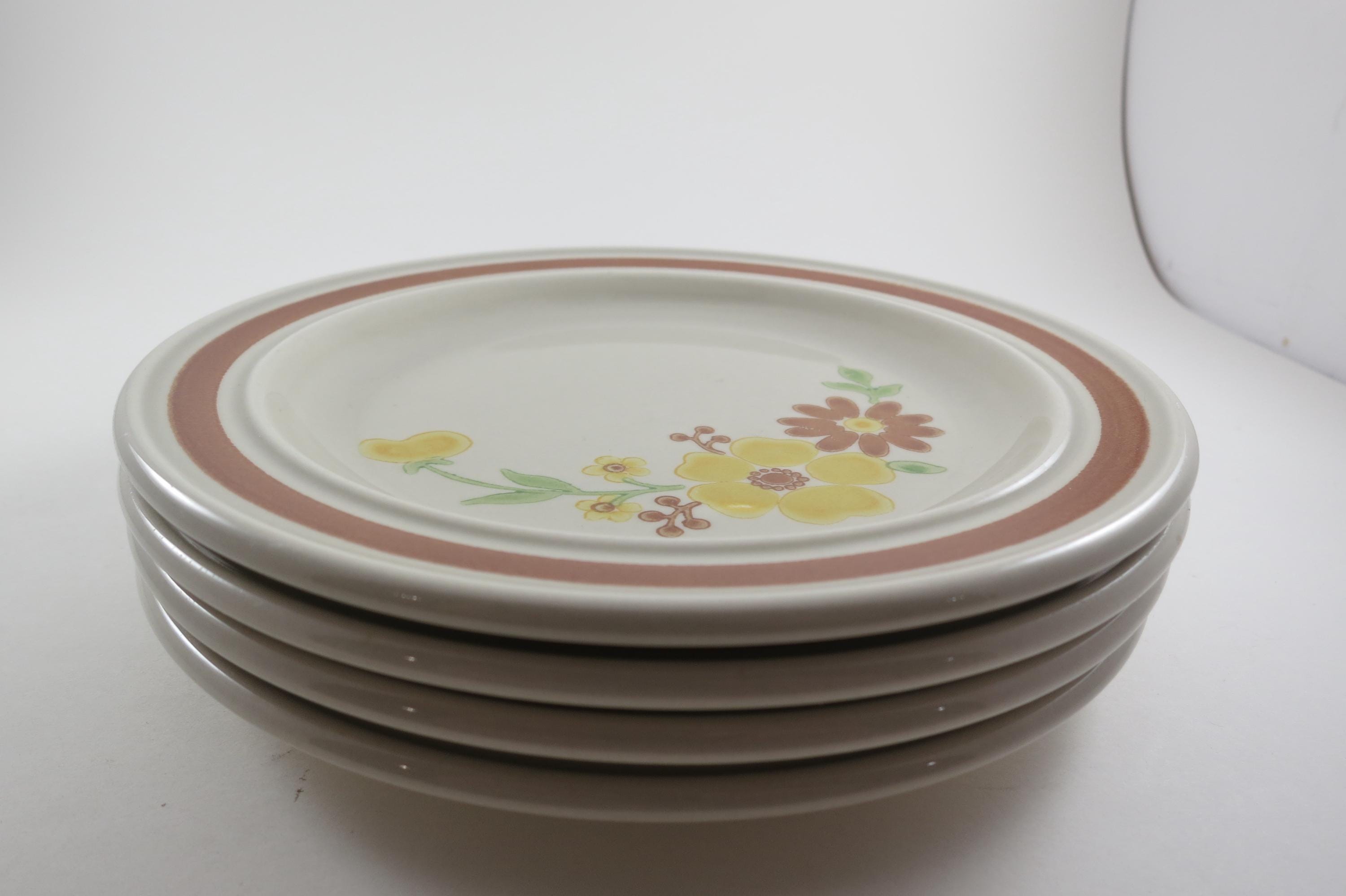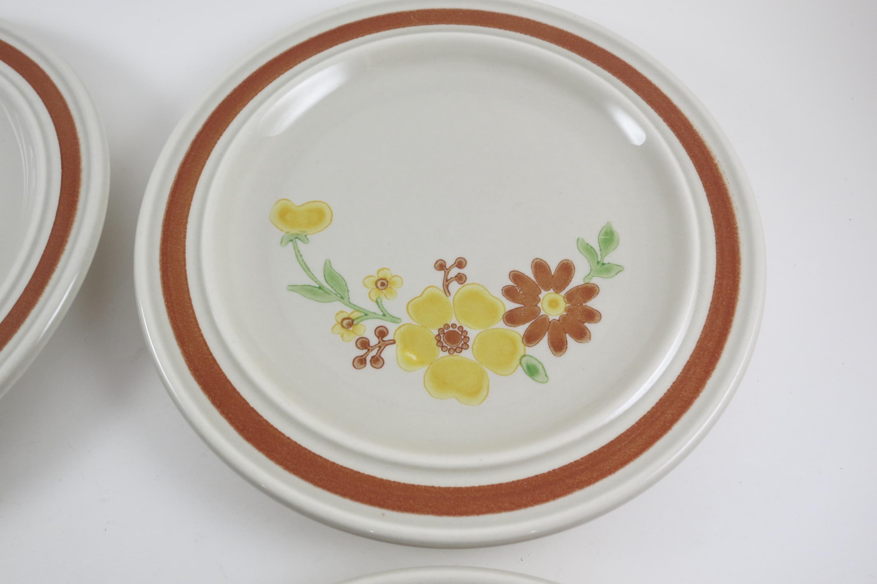 Set of Four Vintage Homer Laughlin China Brown Rim Floral Salad Lunch Plates