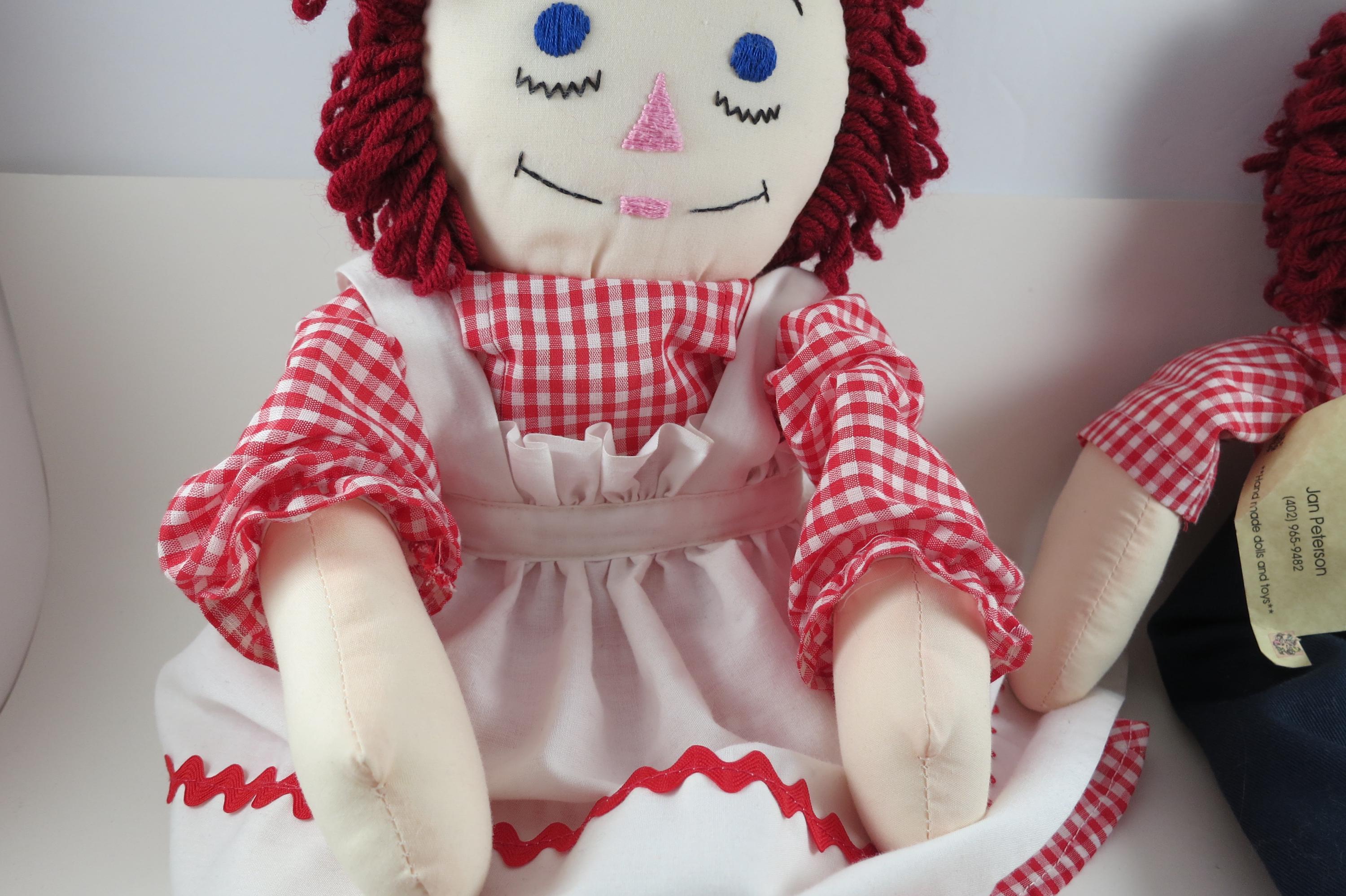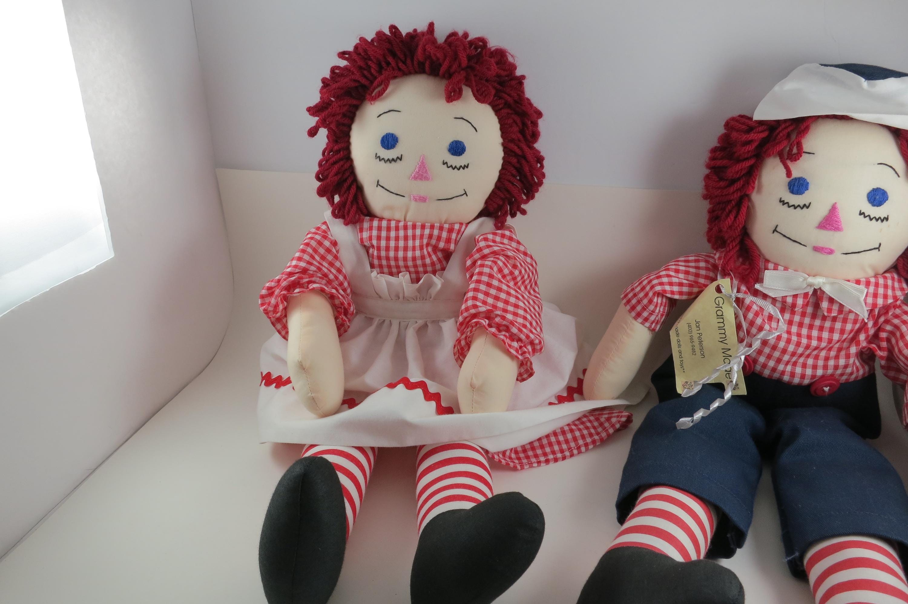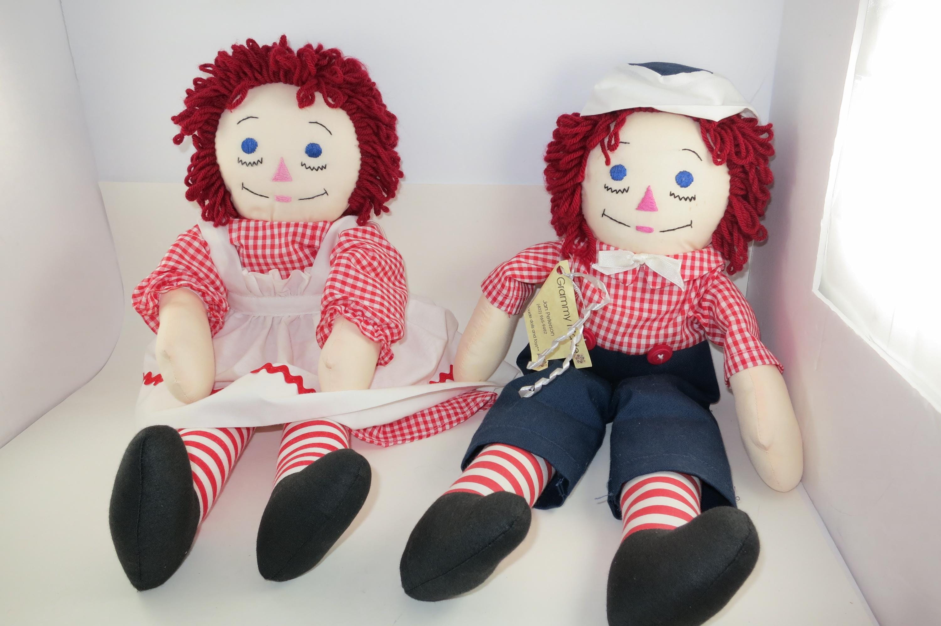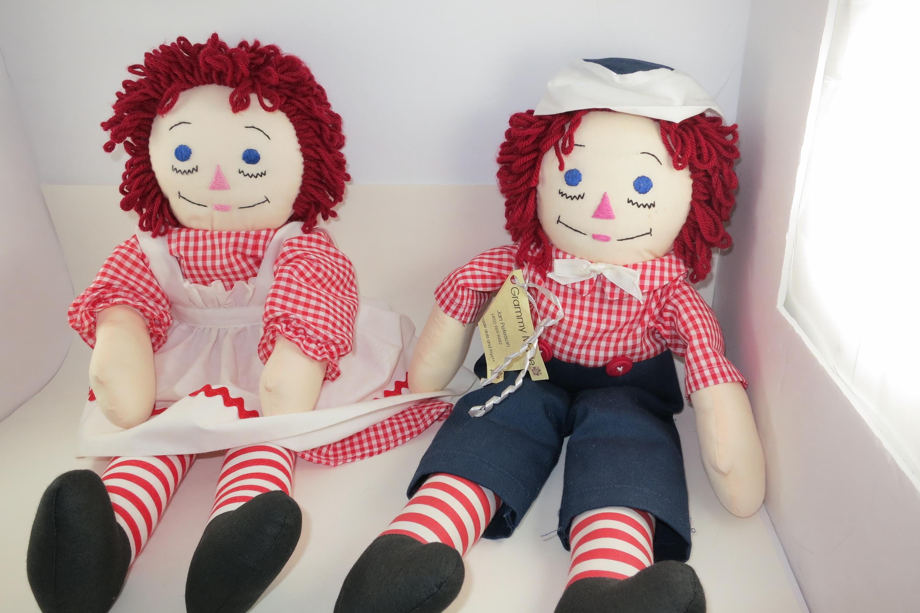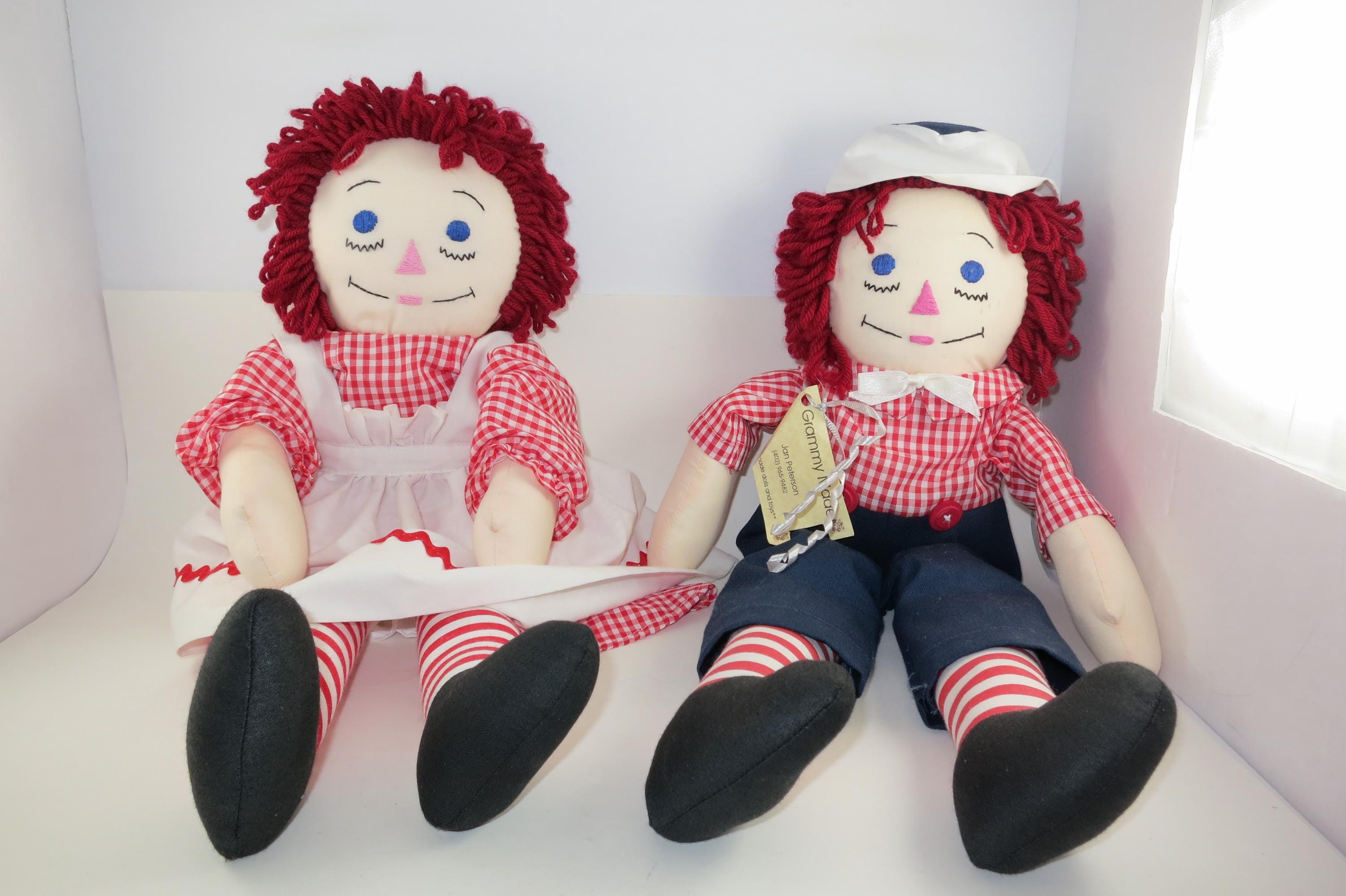 Vintage Raggedy Ann and Andy Dolls 19 Inches Tall Grammy Made with Tag.