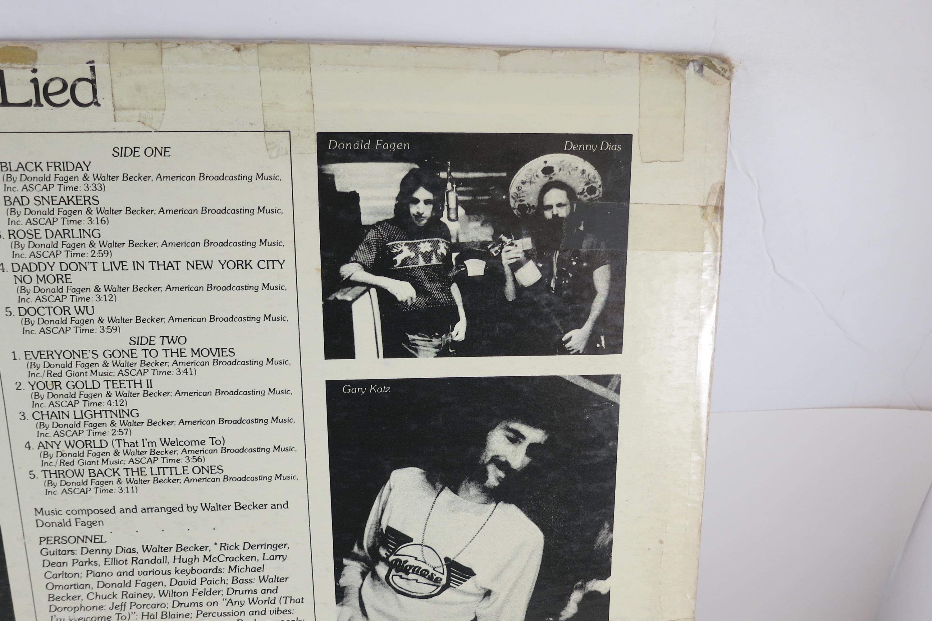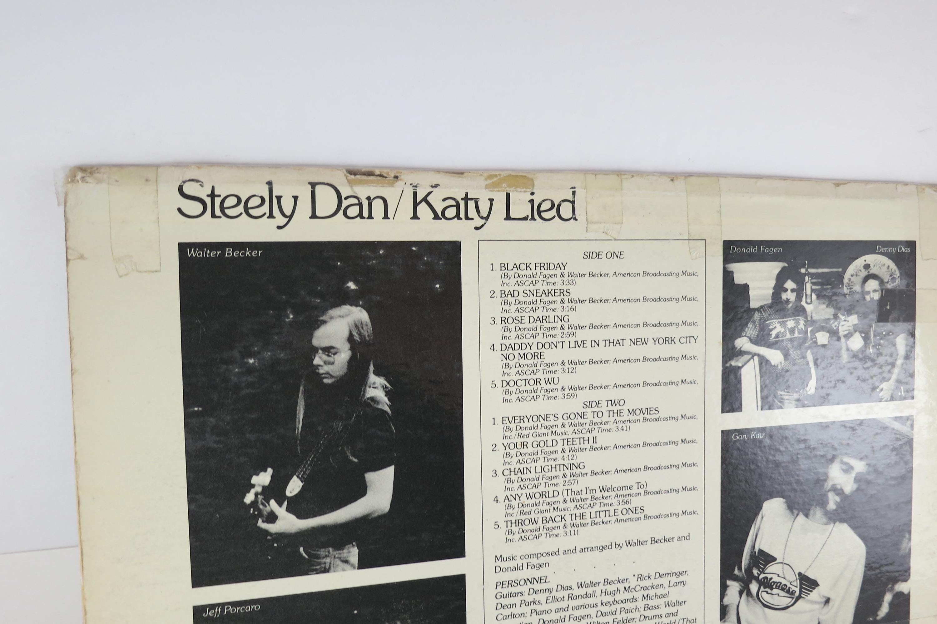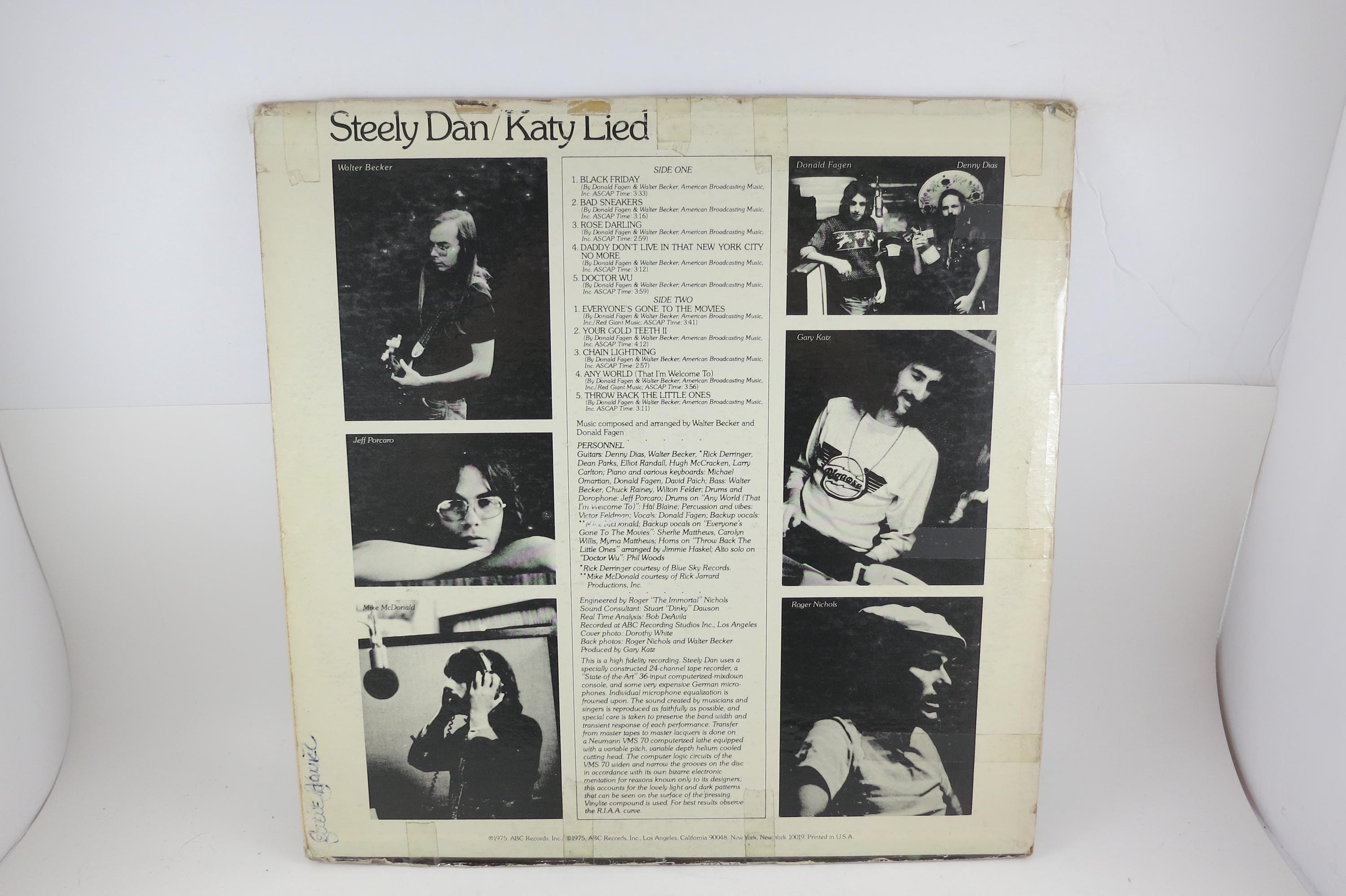 Vintage 1975 Vinyl LP Record Katy Lied Steely Dan Very Good Condition. Original cover is in fair condition and includes the original inner paper sleeve. Cover has a taped spine and seams. Record is very good plus. Has some light marks. Tracks are as follows
