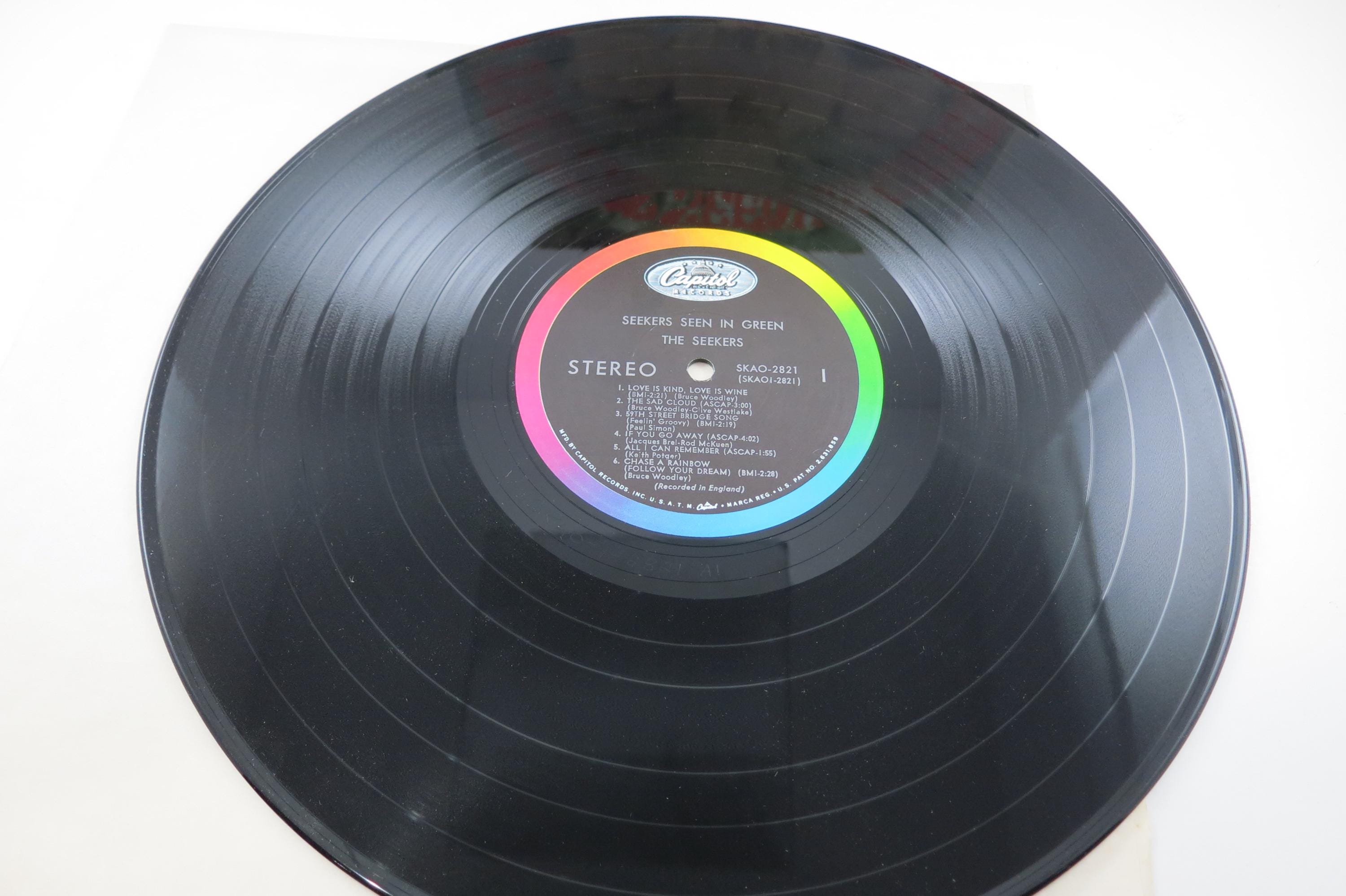Vintage 1968 Vinyl LP Record Seekers Seen in Green, Original gate fold cover is in excellent condition and includes the inner paper sleeve. Record is excellent as well. Tracks are as follows