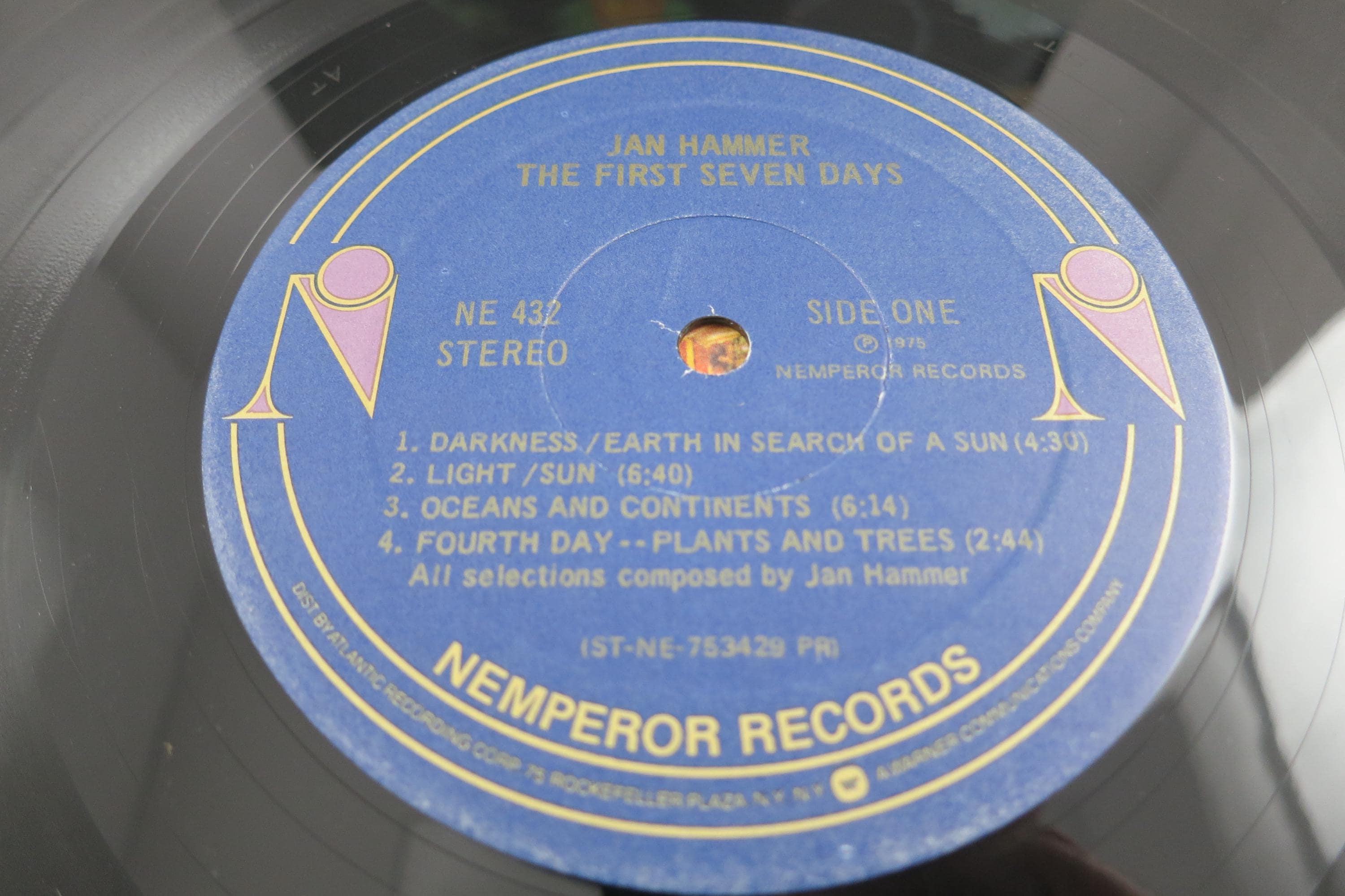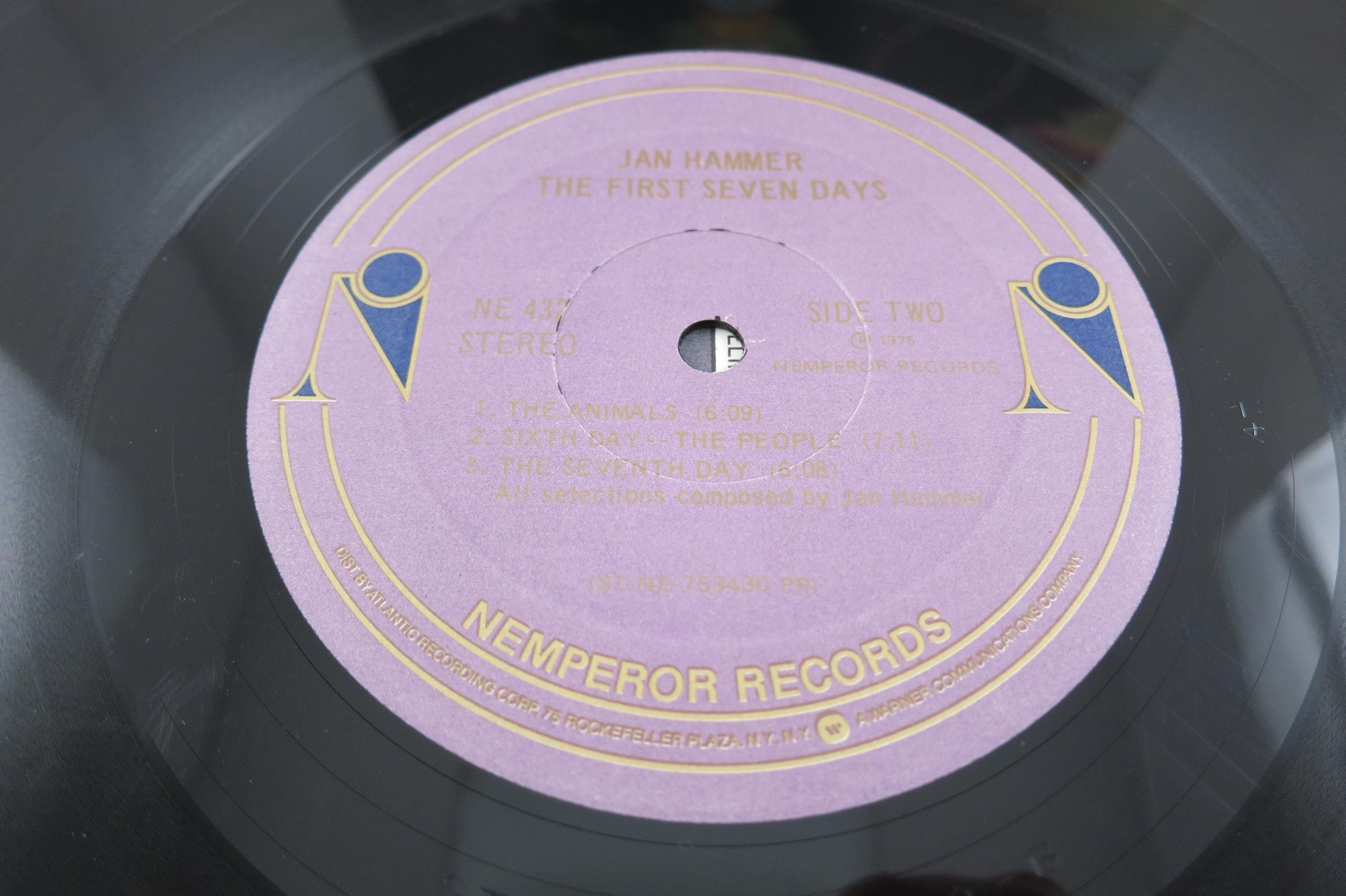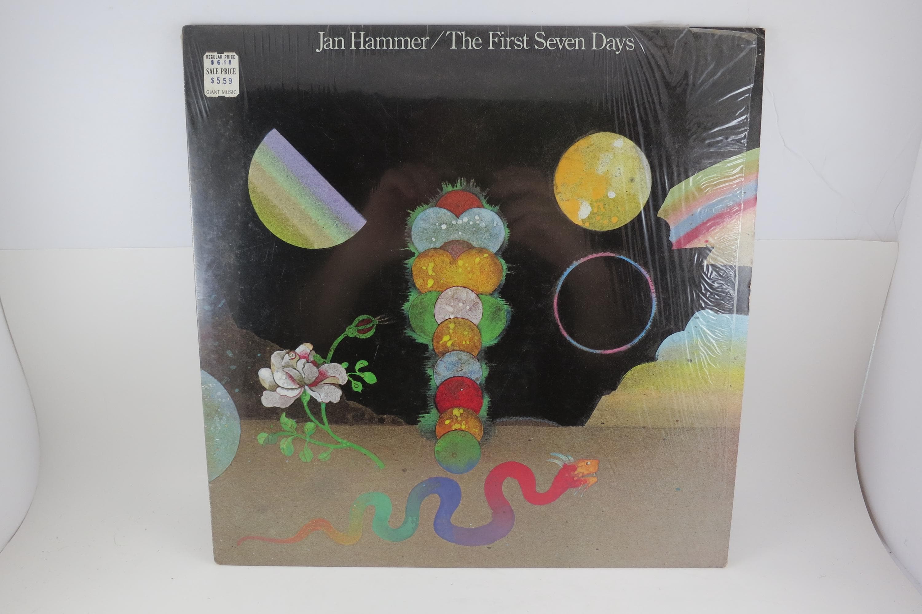 Vintage 1975 Vinyl LP Record Jan Hammer The First Seven Days In Shrink. Original cover is in excellent condition and includes the original inner paper sleeve and factory shrink wrap. Record is excellent. Tracks are as follows