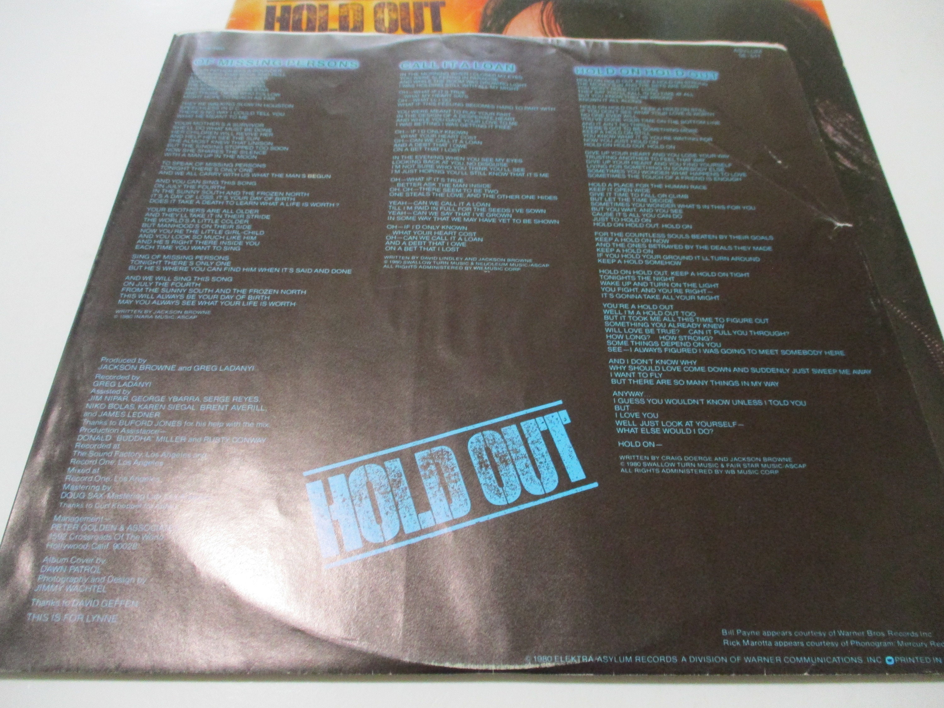 Vintage 1979 Vinyl LP Record Hold Out Jackson Browne