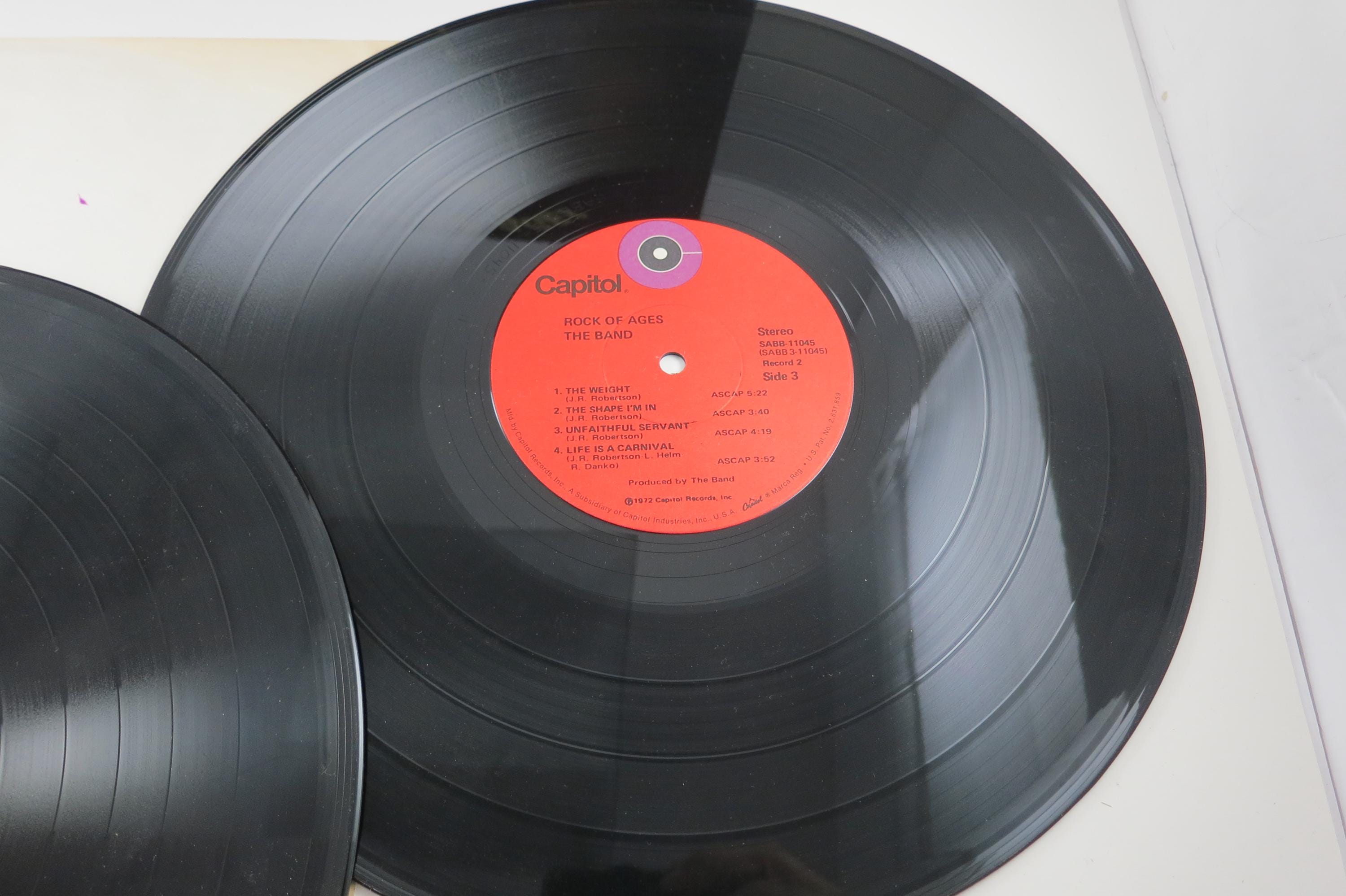 1972 Vinyl LP Record Set The Band Rock of Ages The Band In Concert Excellent Condition Red Label Pressing. Original cover is in excellent condition and includes the inner paper sleeves. Both records are excellent. Tracks are as follows