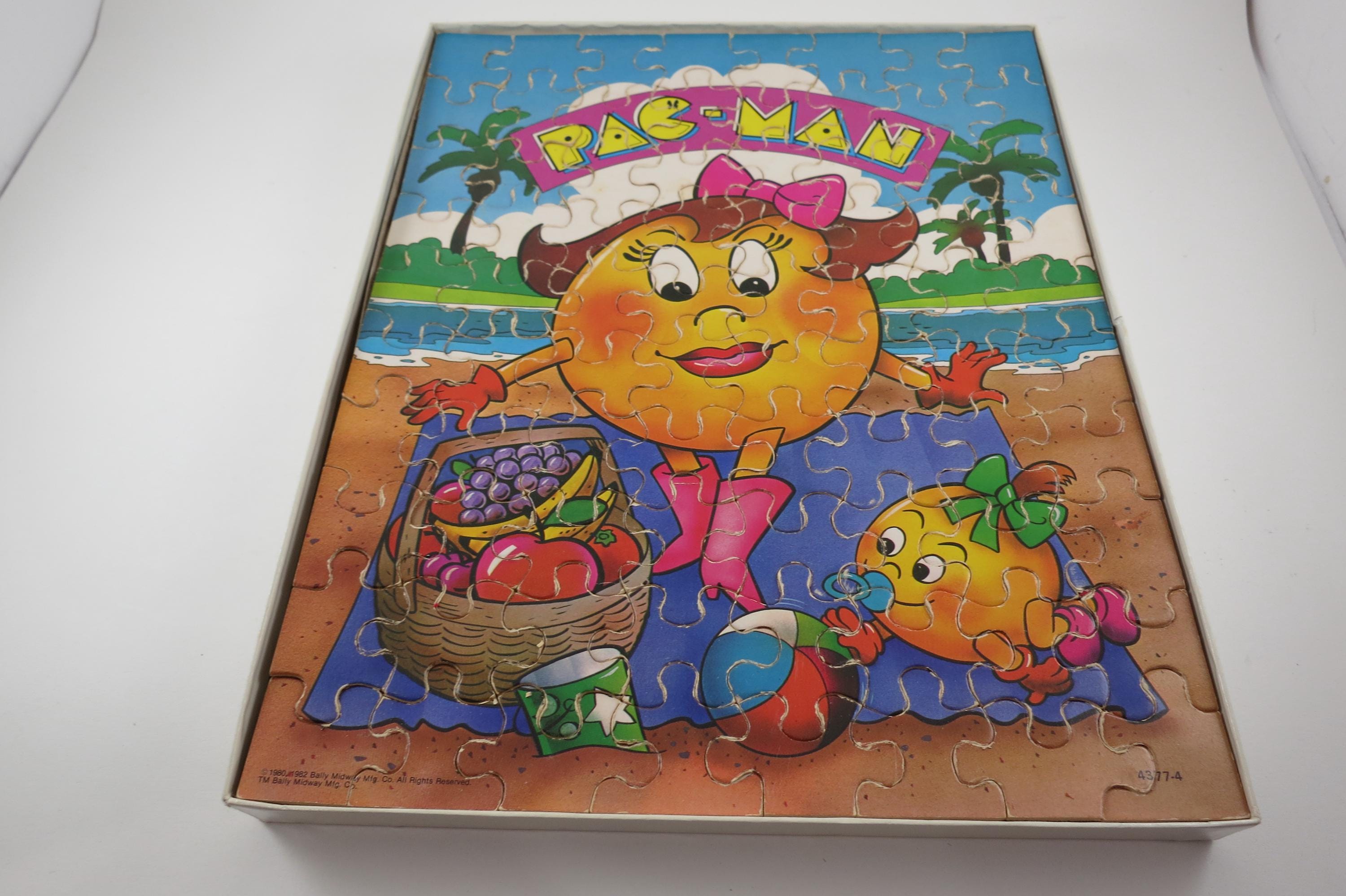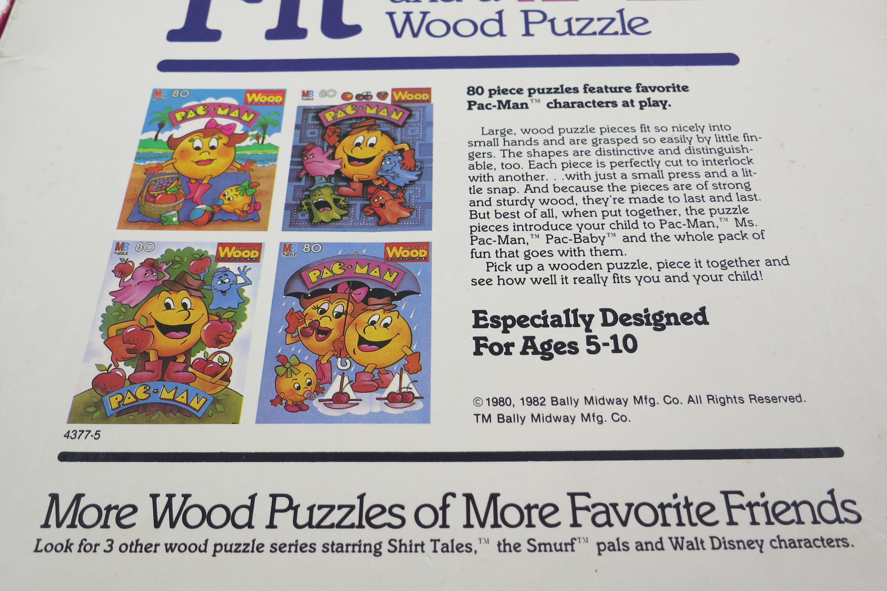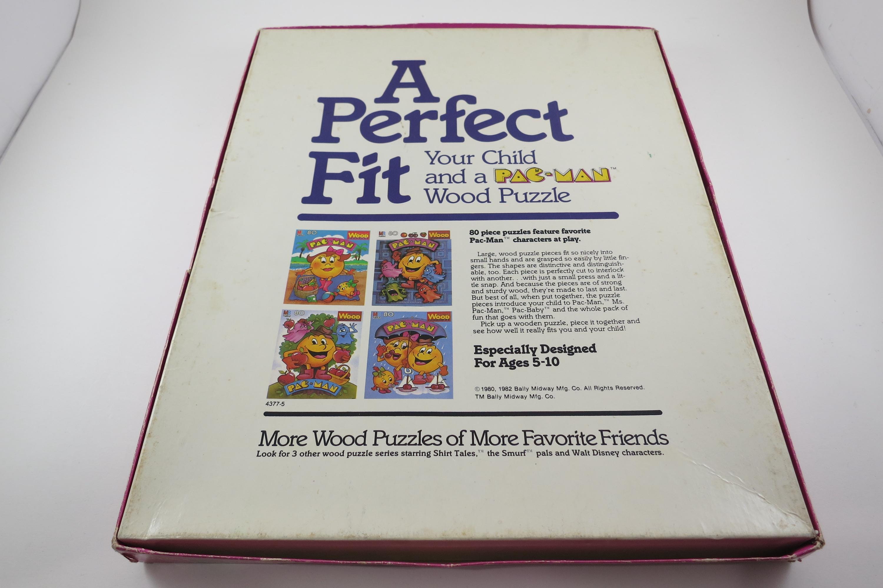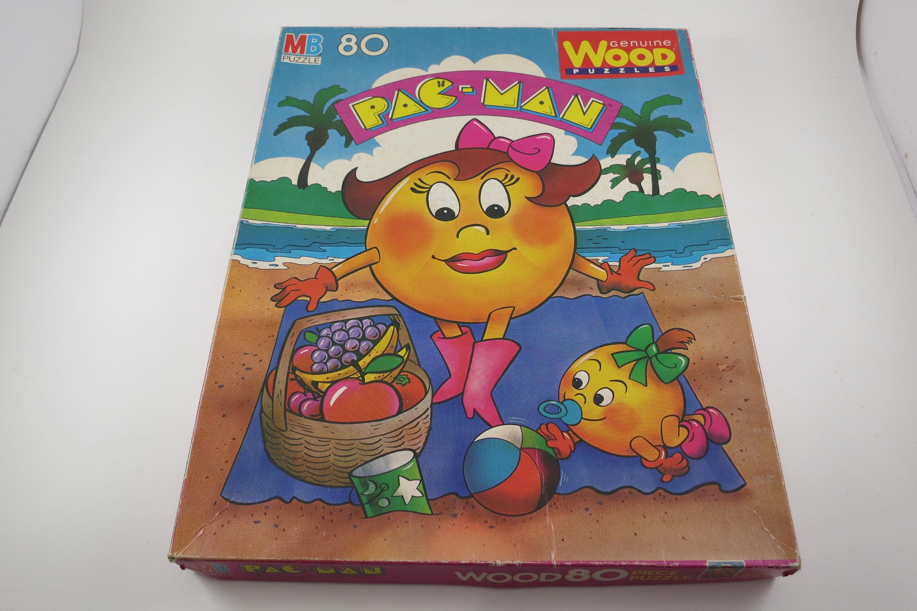 Vintage 1982 Pac-Man 80 Piece Wooden Puzzle in Original Box 100% Complete. Very nice example of this puzzle.