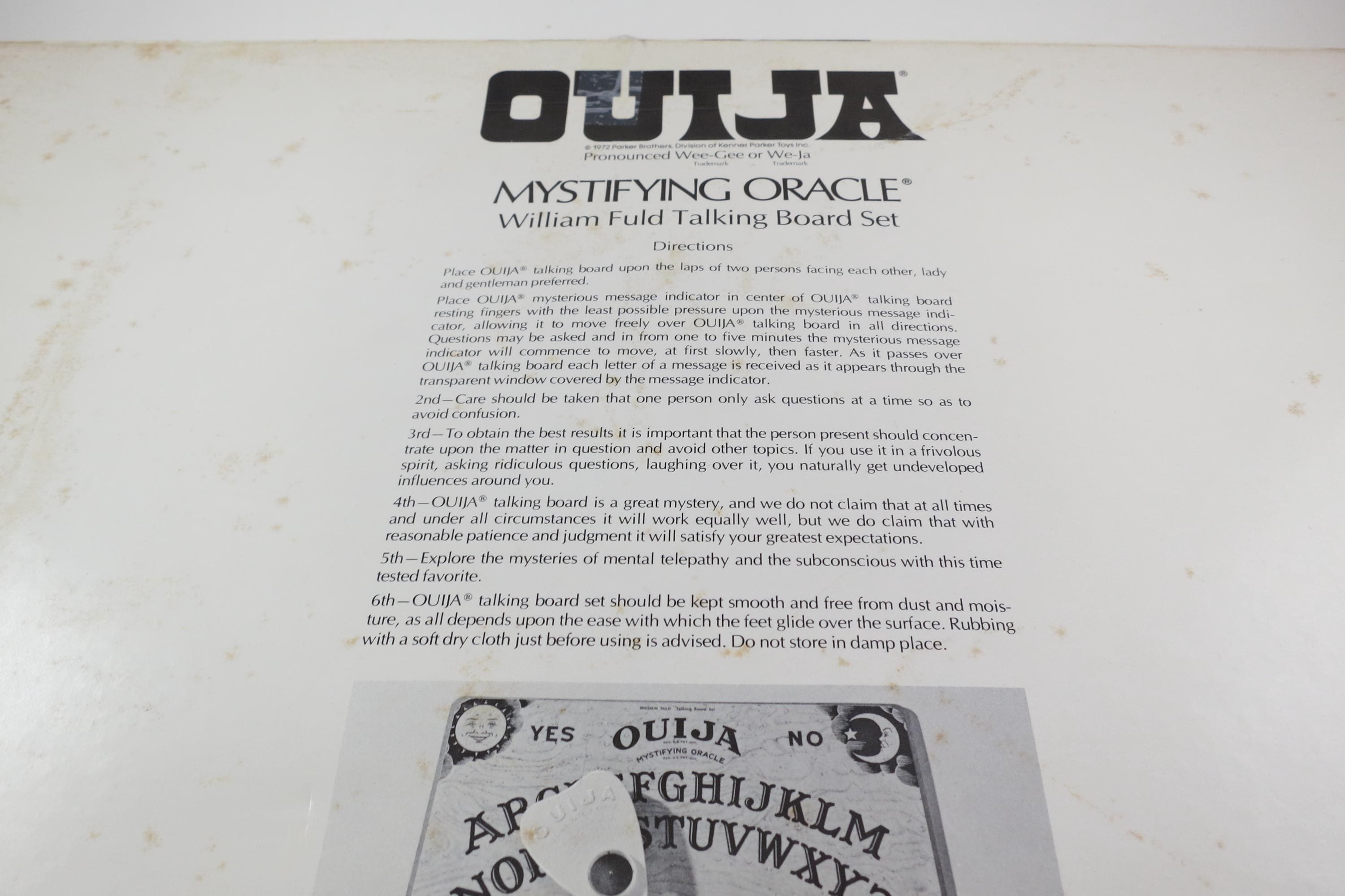 Ouija Mystifying Oracle William Fuld Talking Board Parker Brothers 1992 Complete. Complete, box is in fair condition. Hours of entertainment, but play at your own risk!!