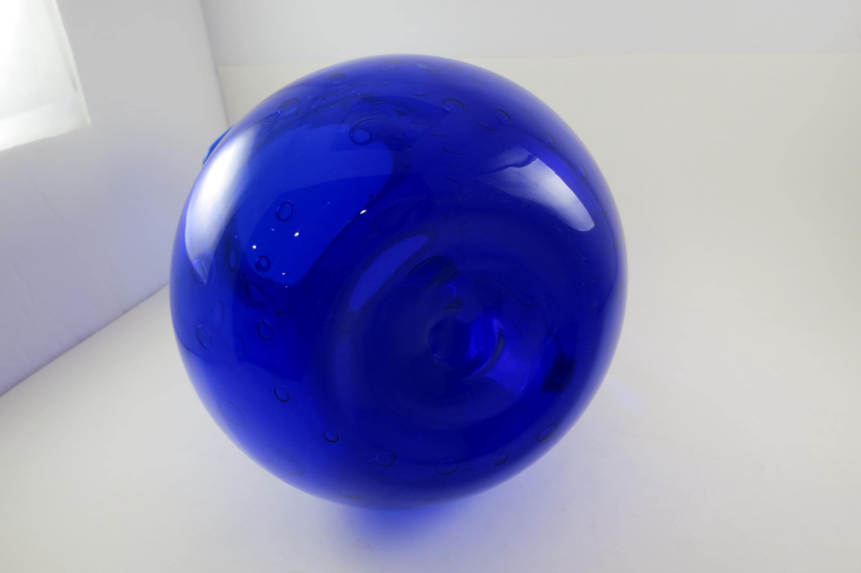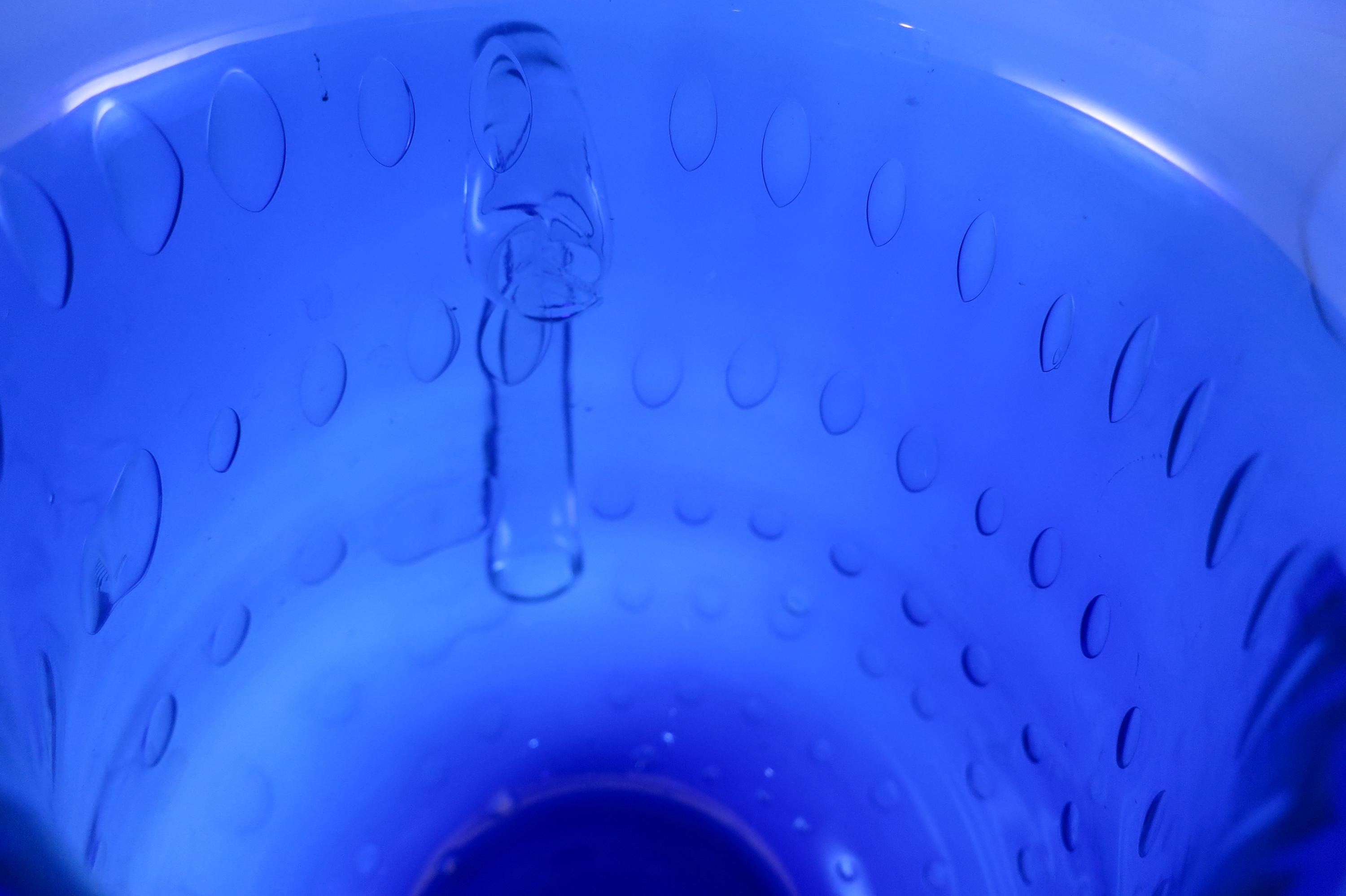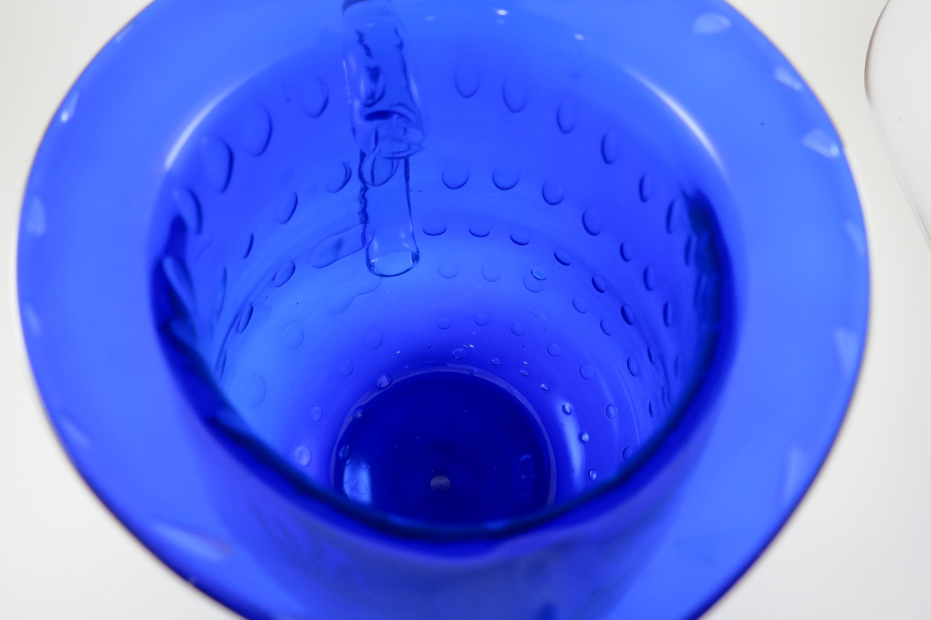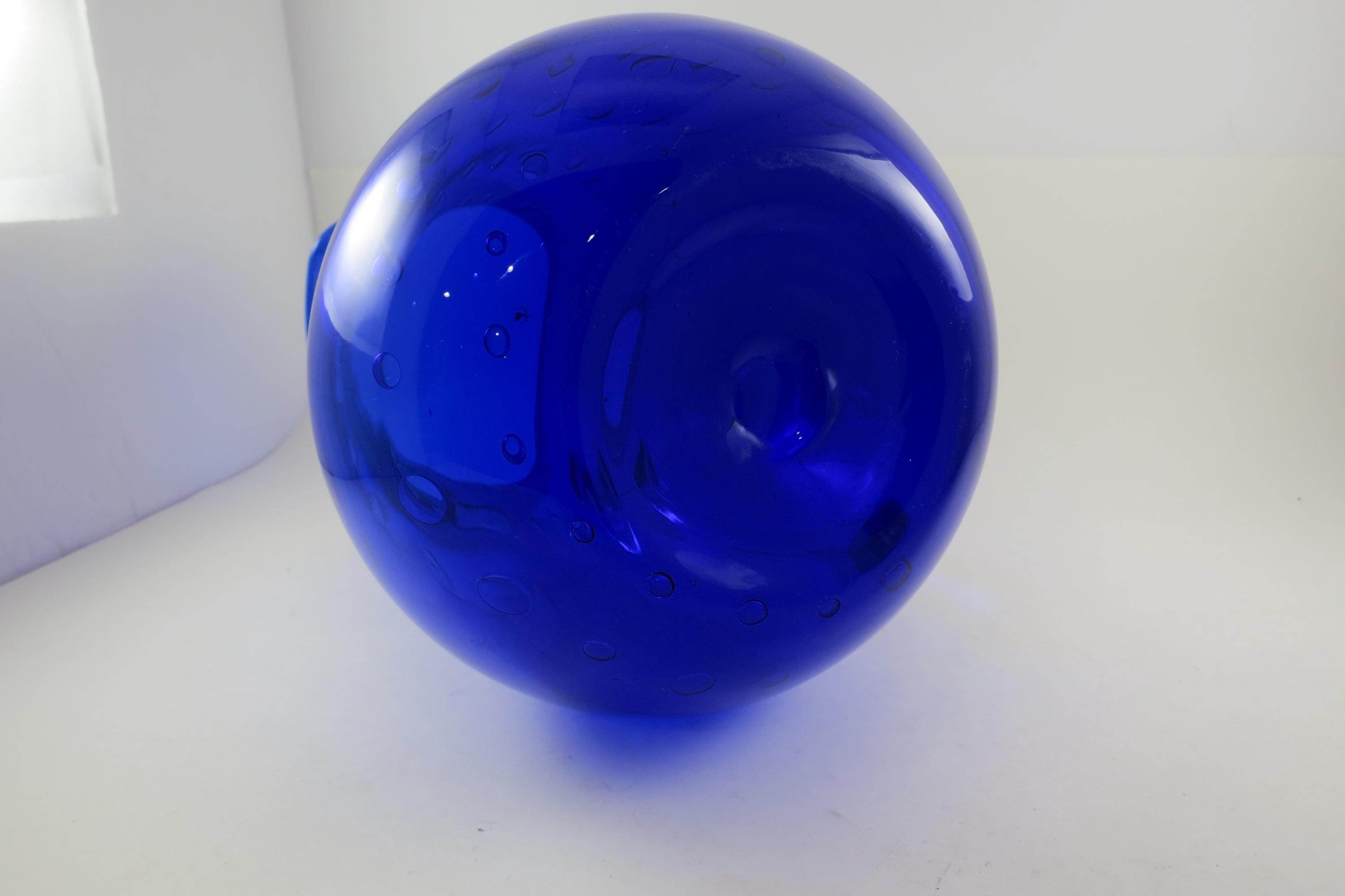 Vintage Cobalt Blue Hand Blown Water Juice Pitcher Ice Lip 9 Inches Tall.