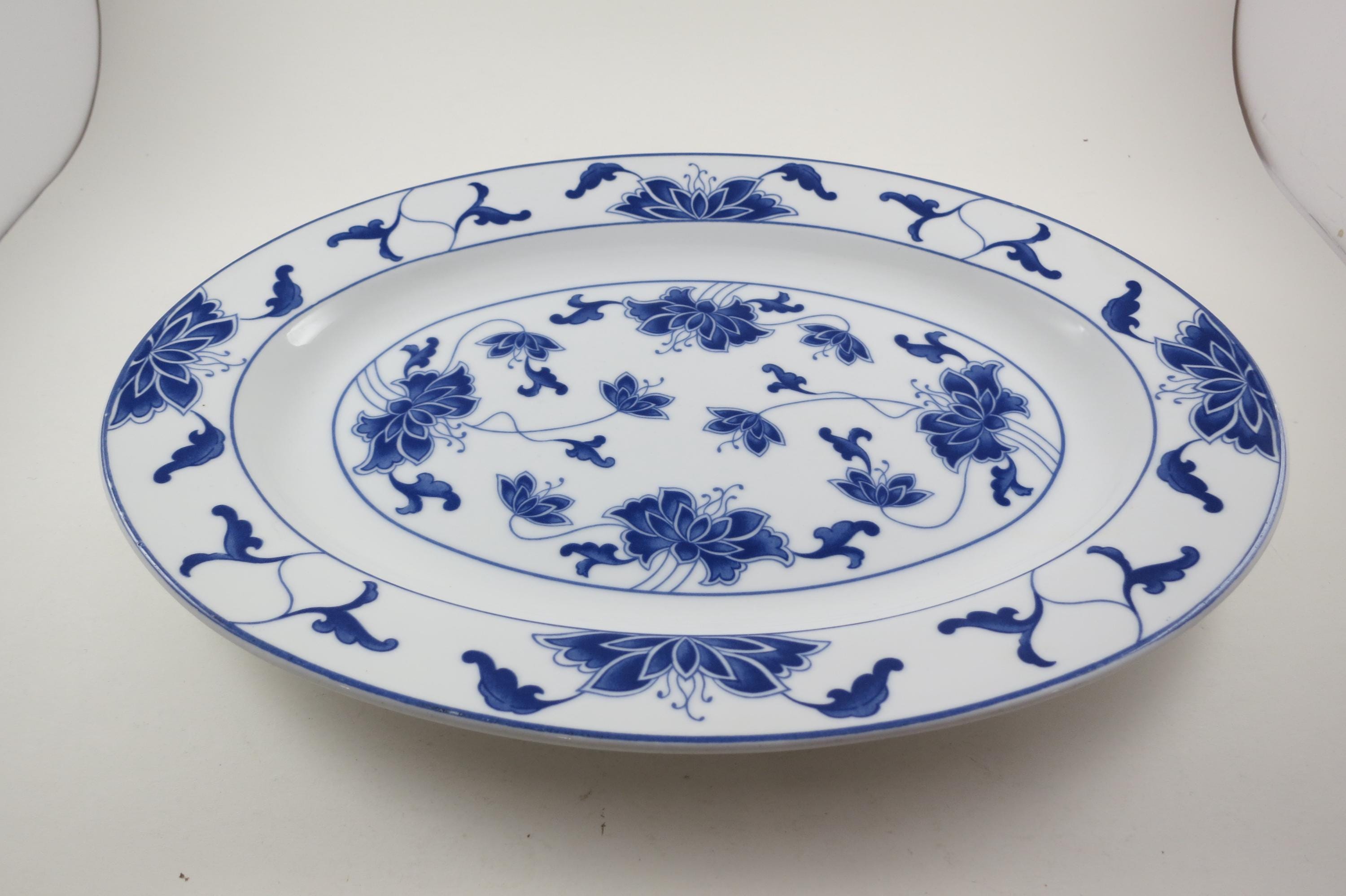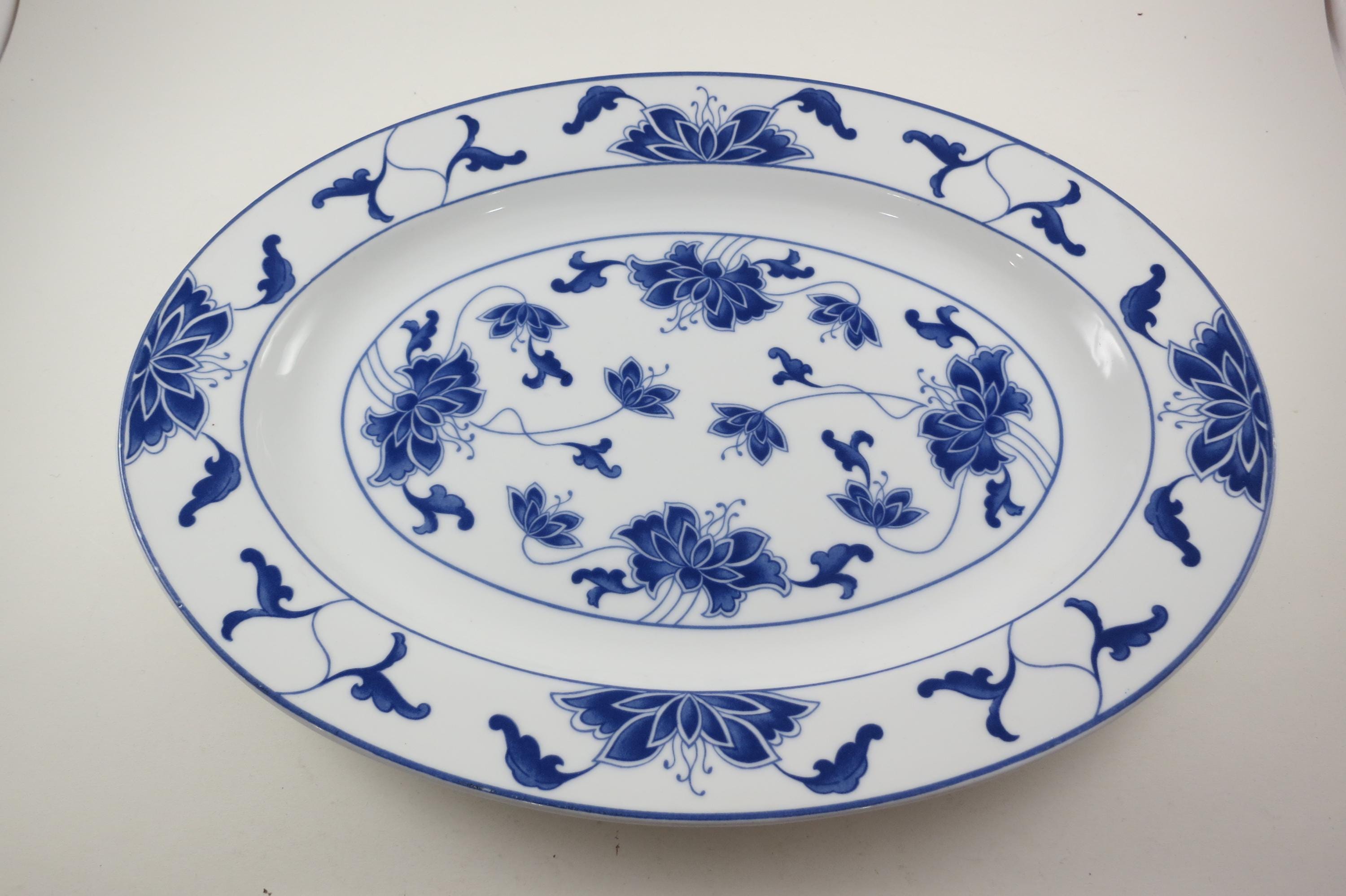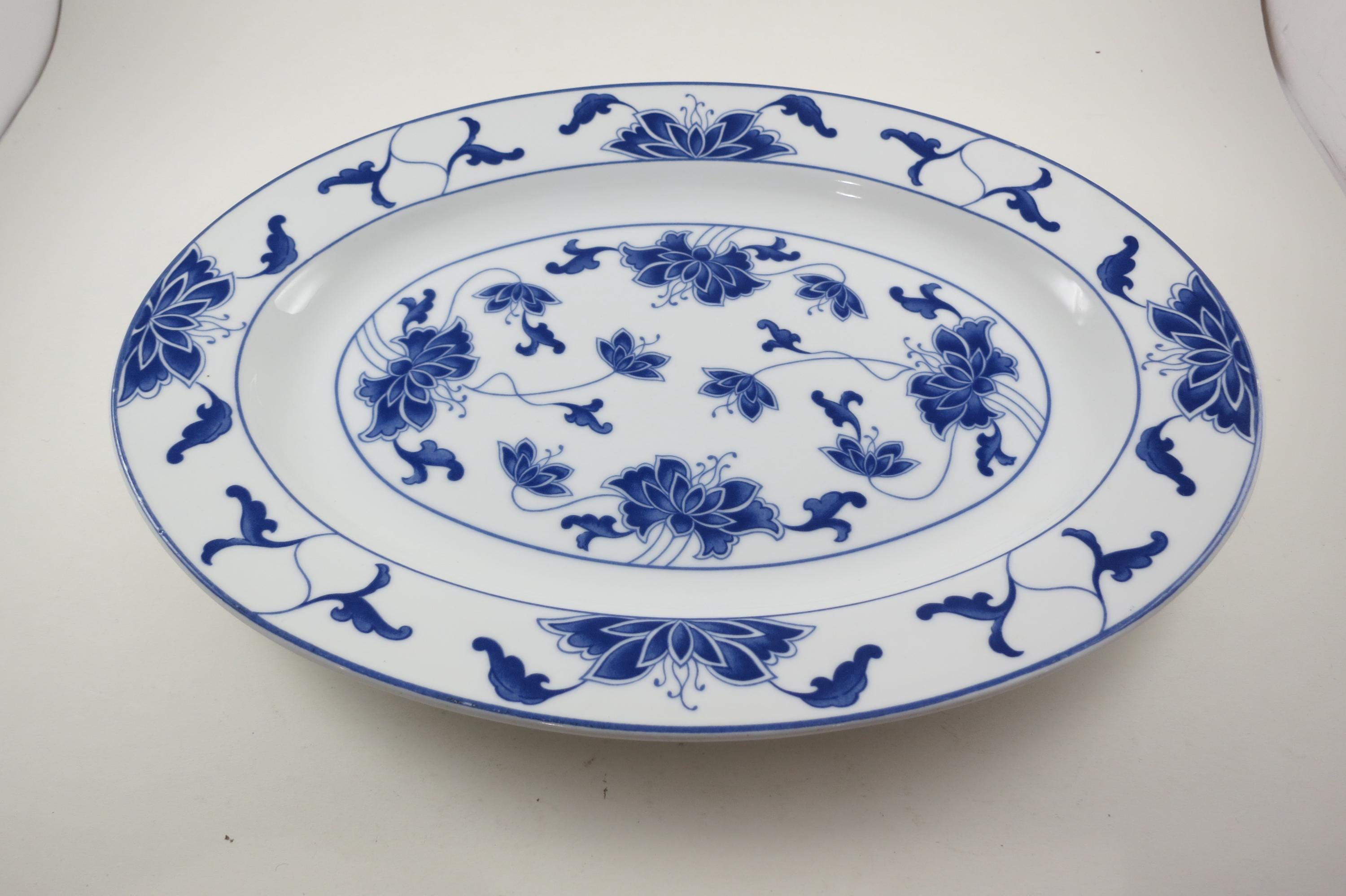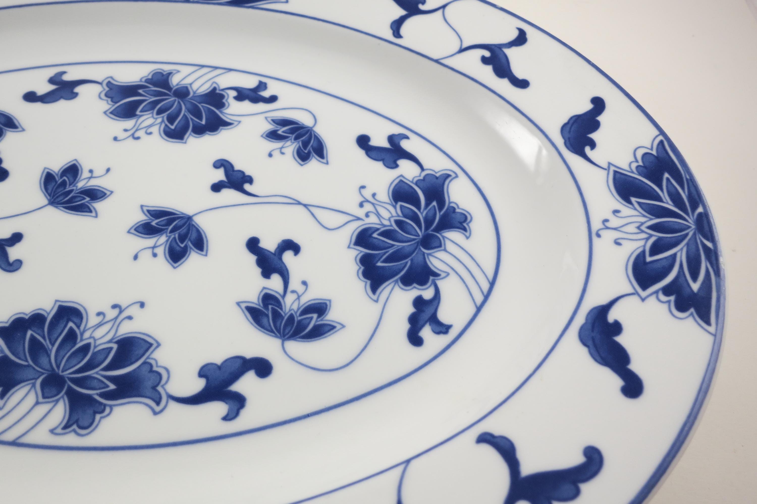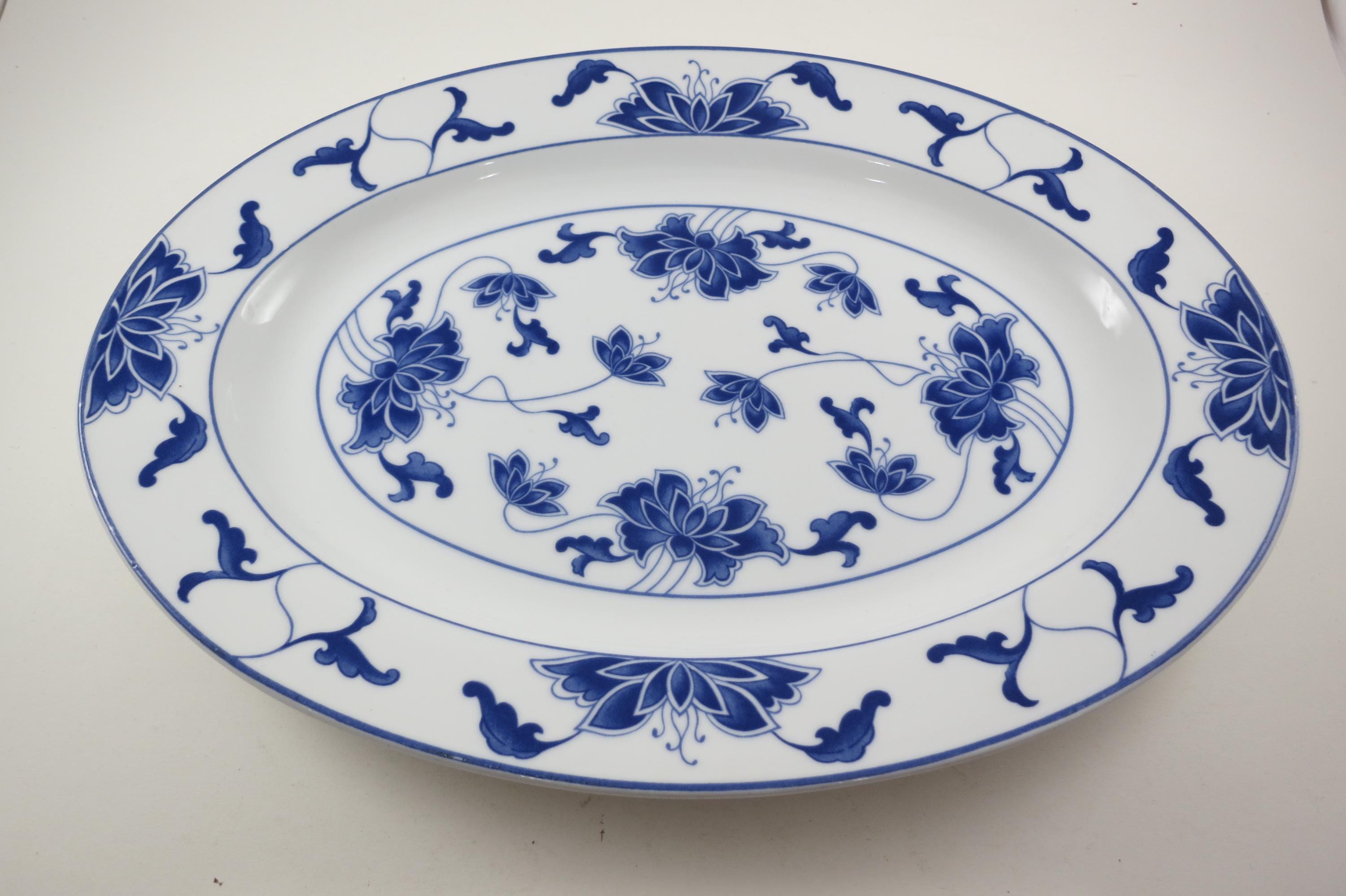 Vintage Tatung White & Blue Floral Lilly 14 Inch Oval Serving Platter