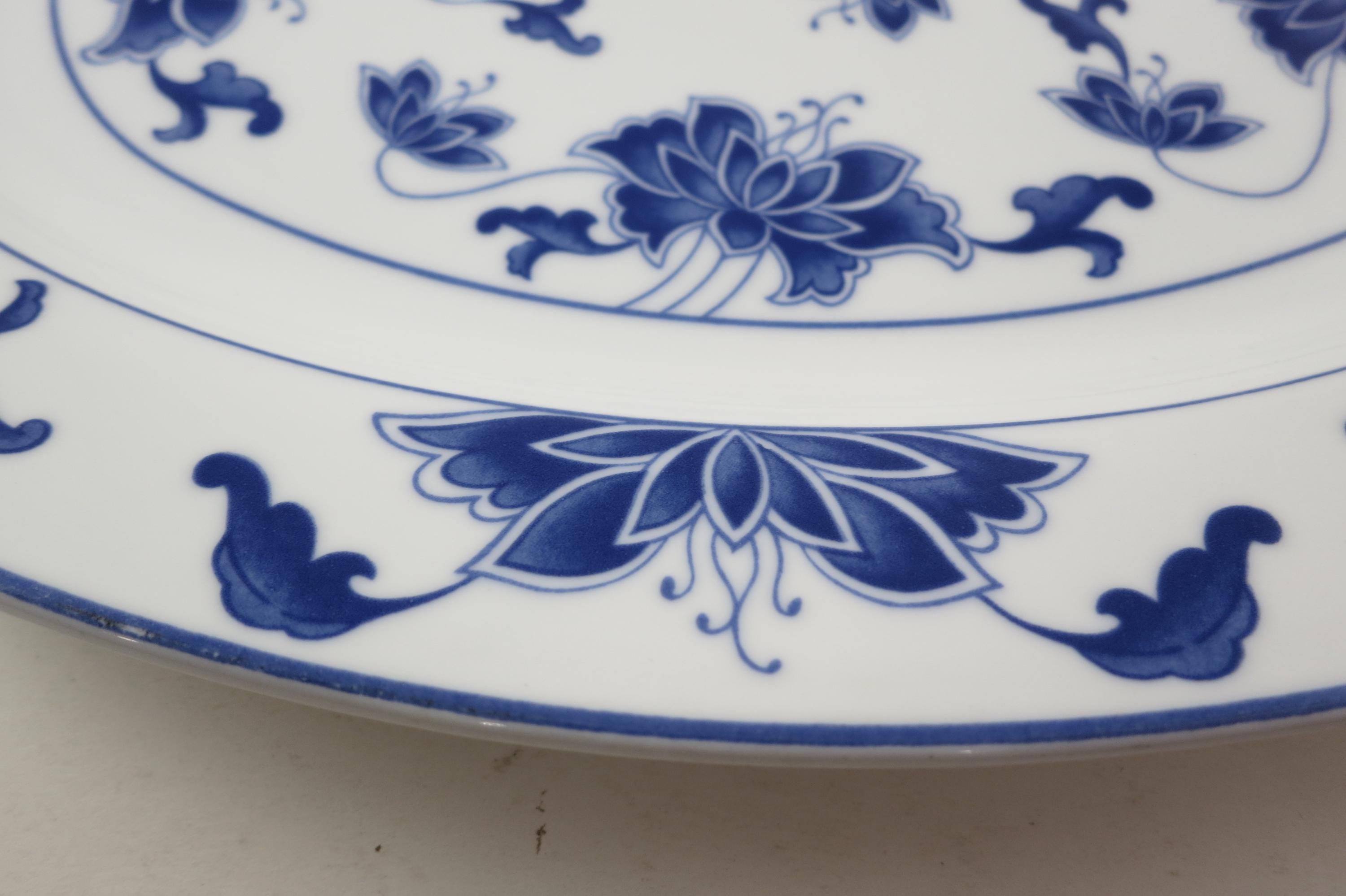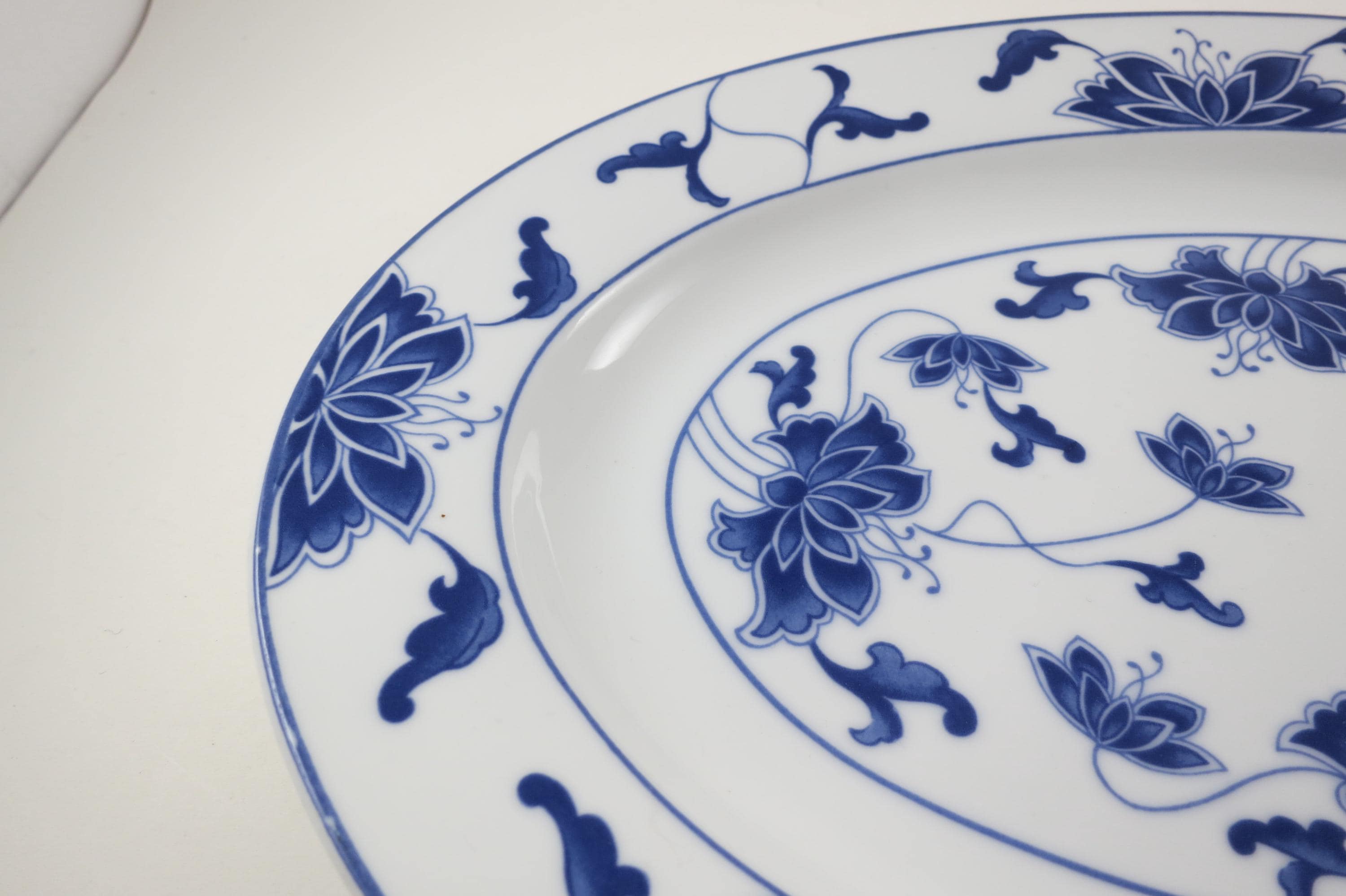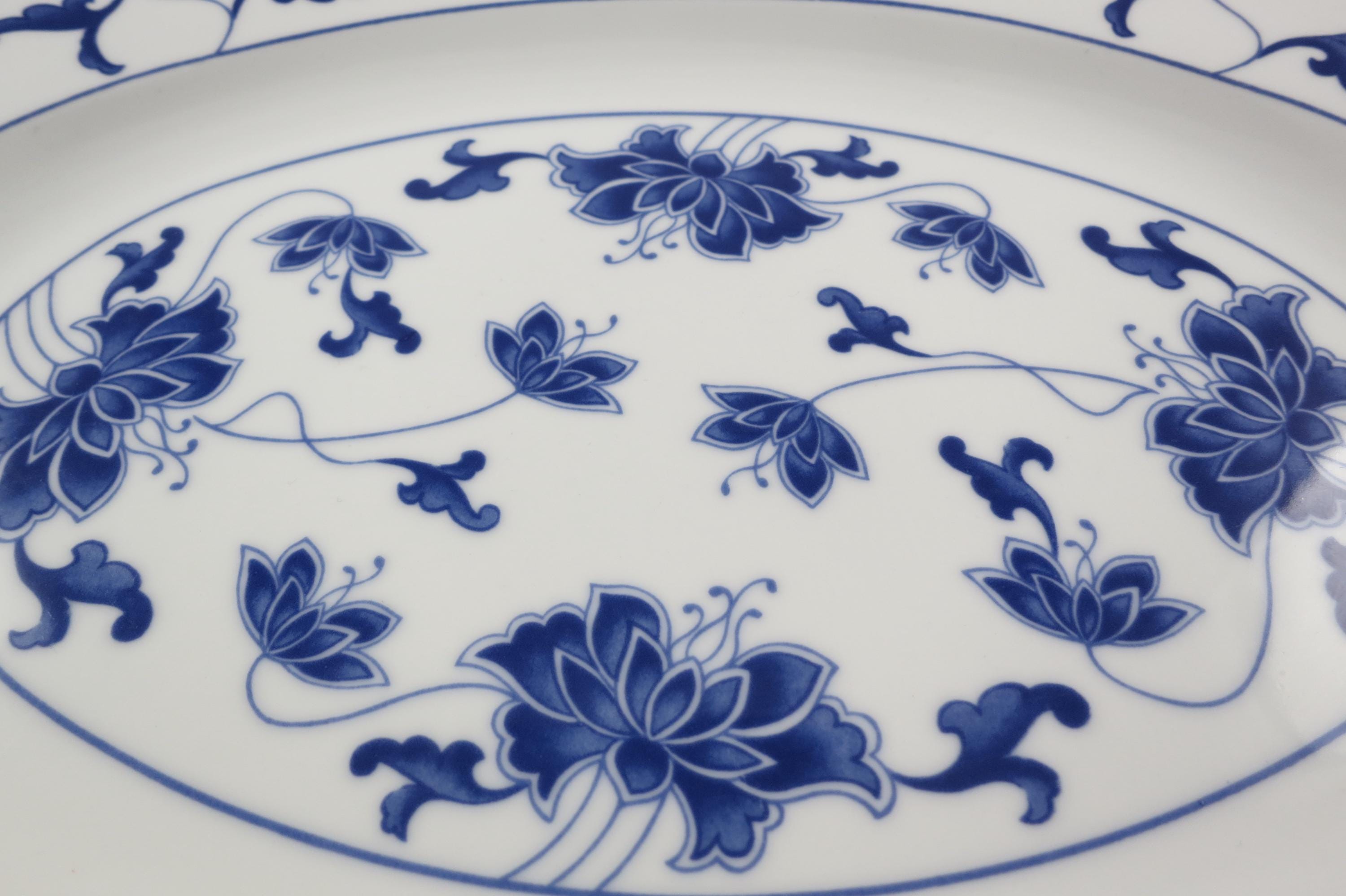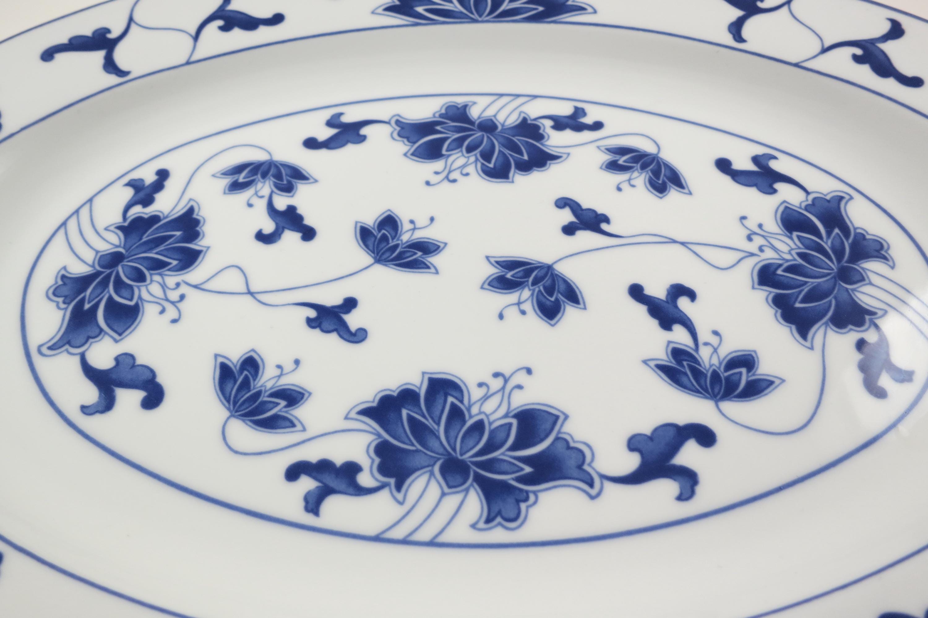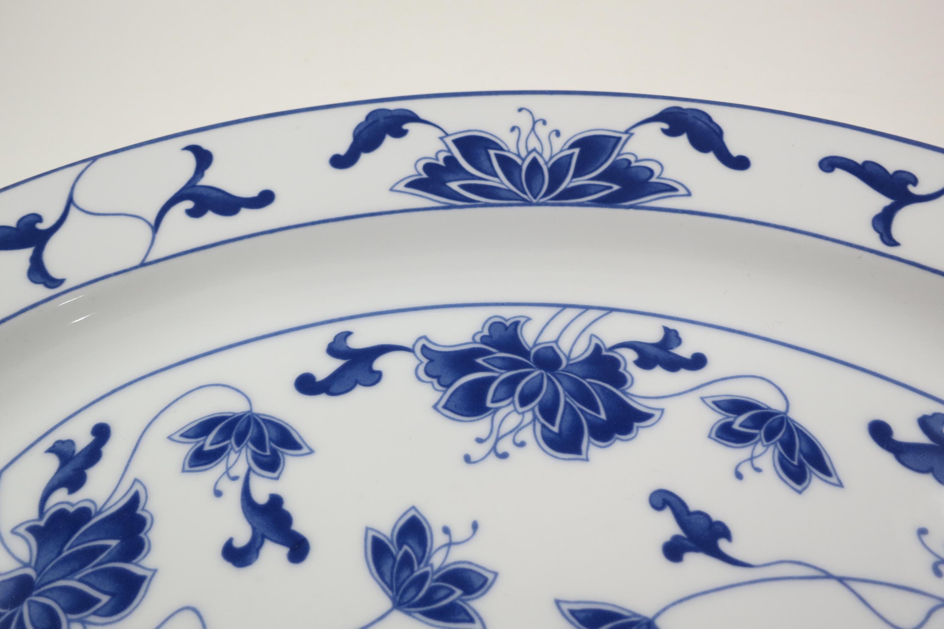 Vintage Tatung White & Blue Floral Lilly 14 Inch Oval Serving Platter