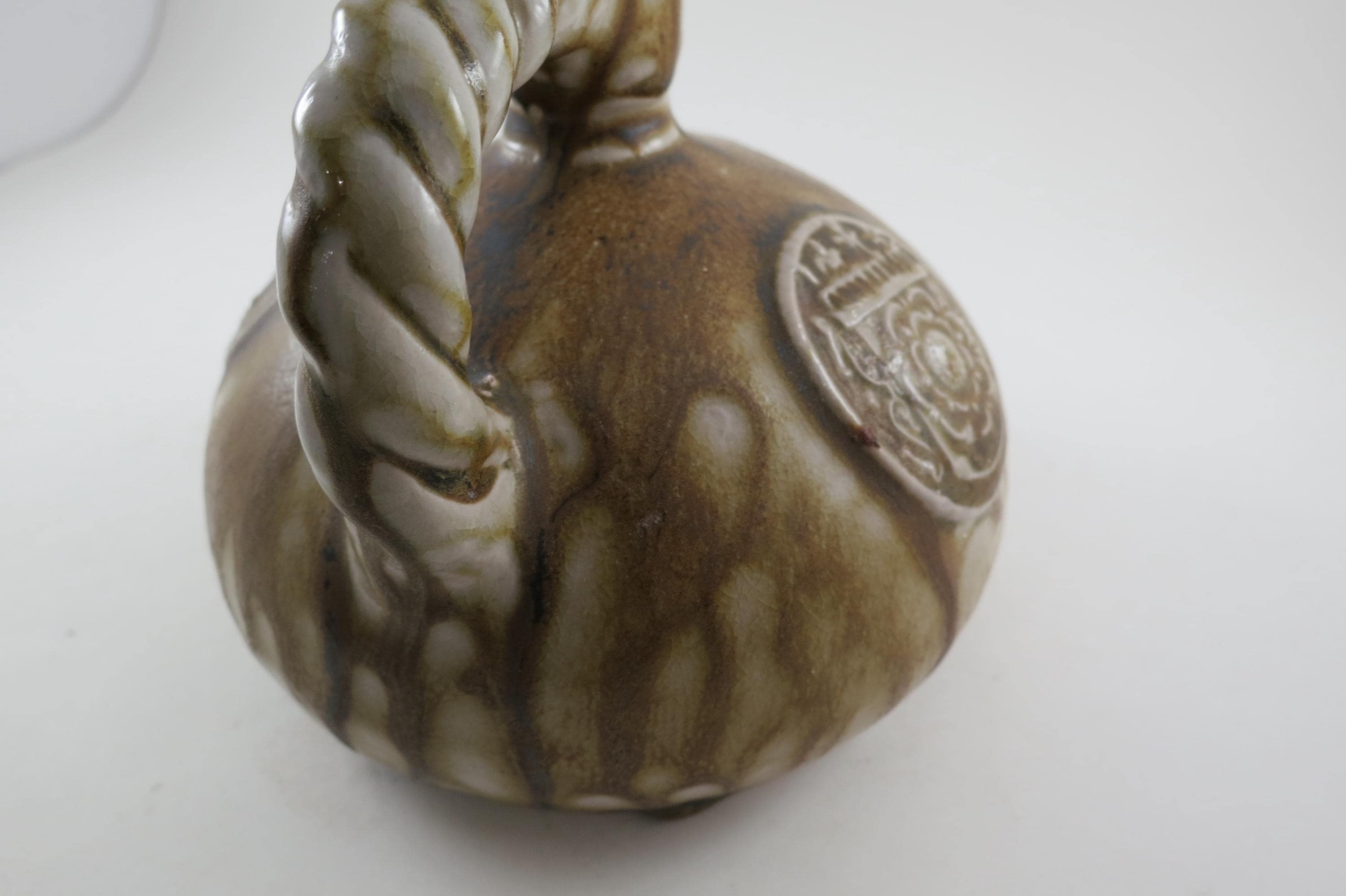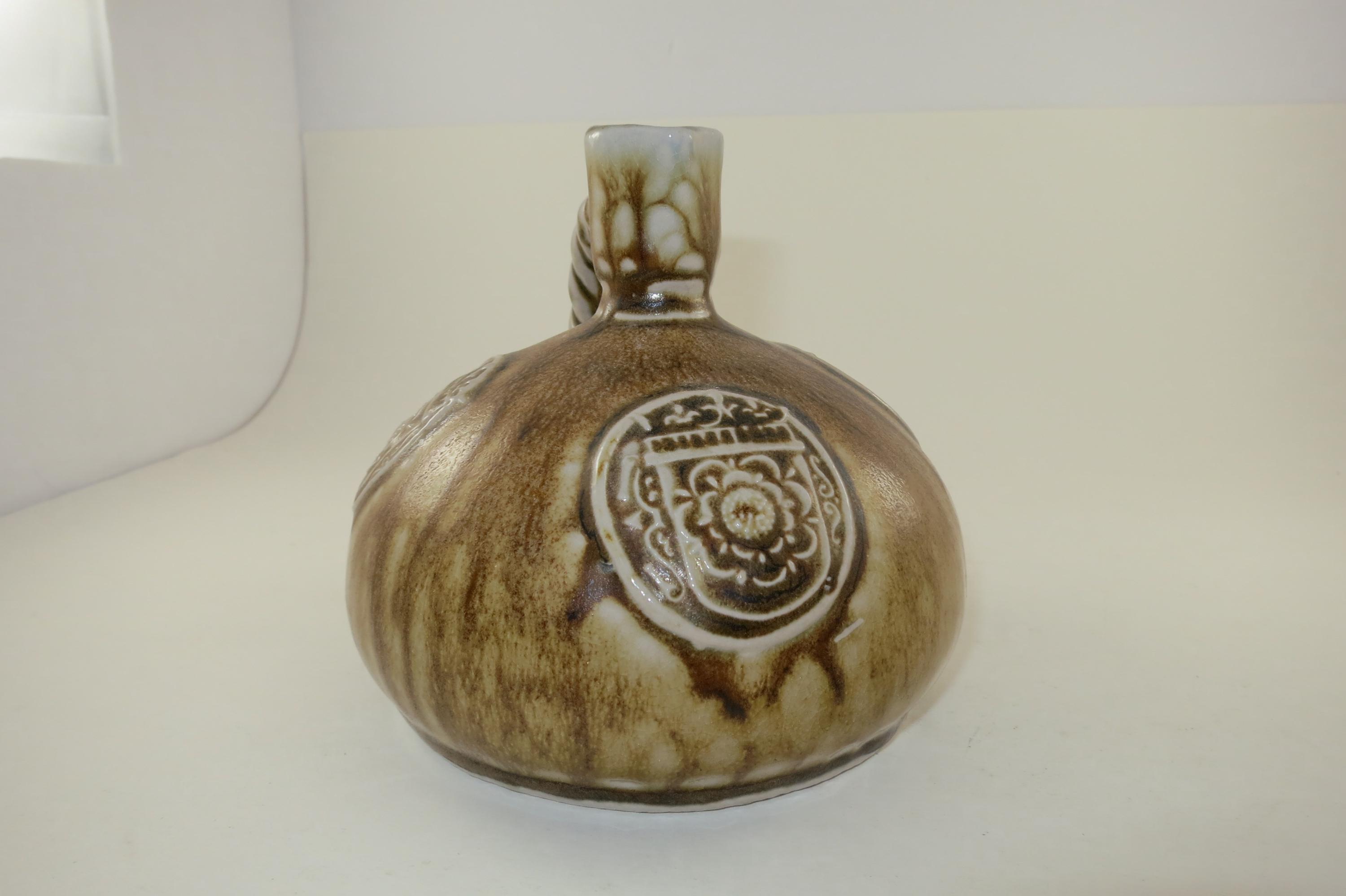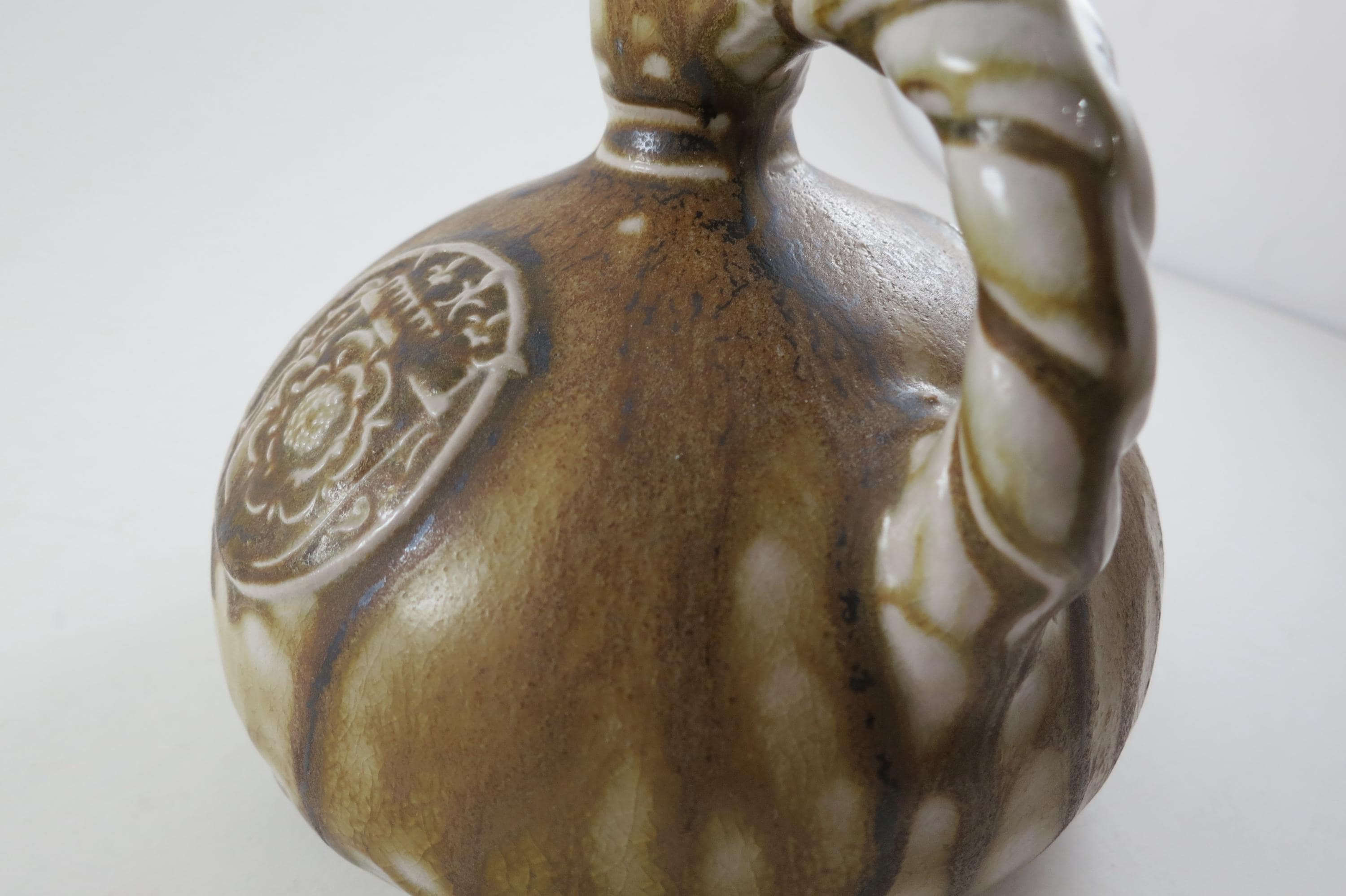 Vintage German Ceramic Brown Oil Vinegar Decanter Bottle Handle Spout.