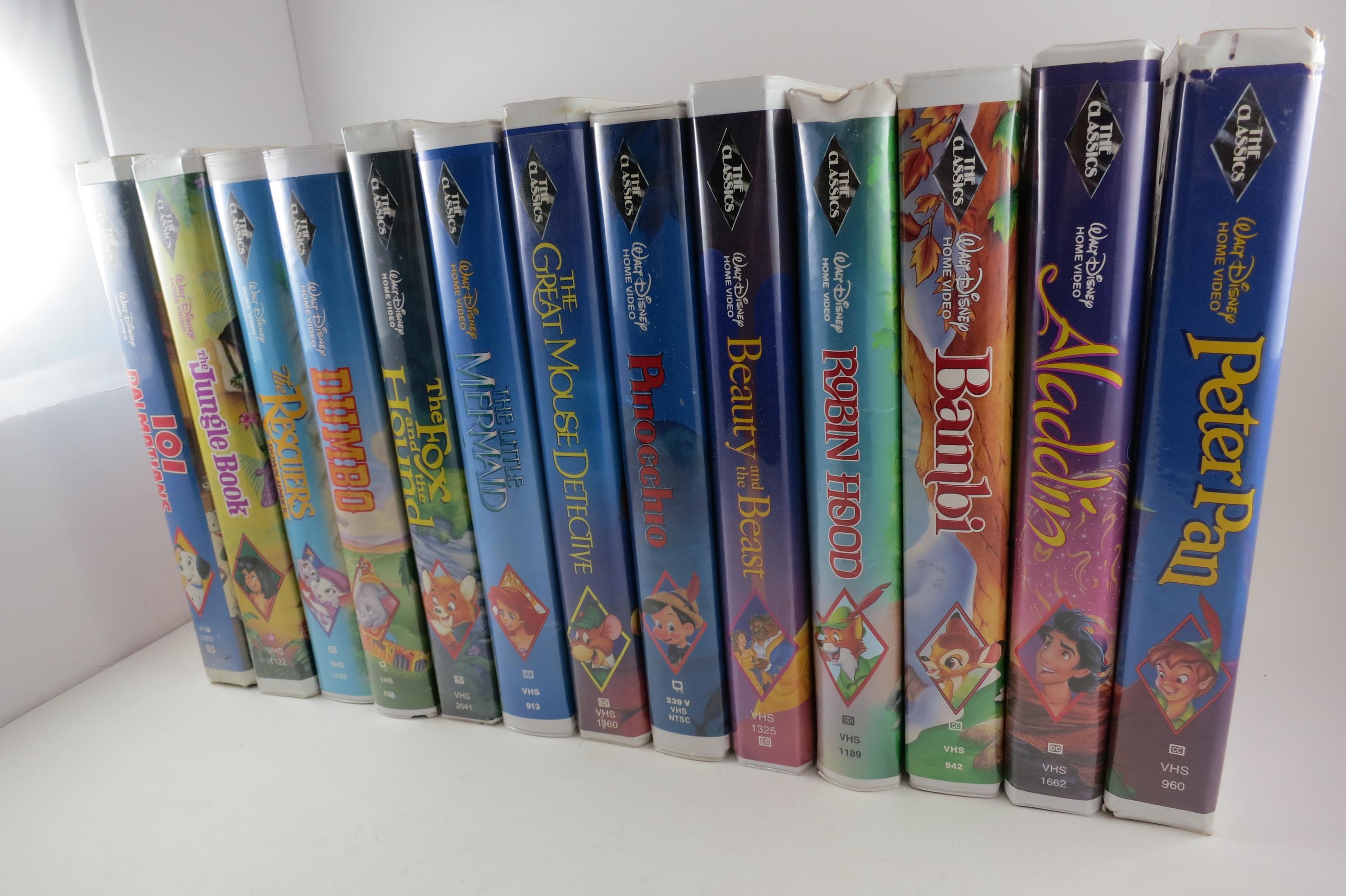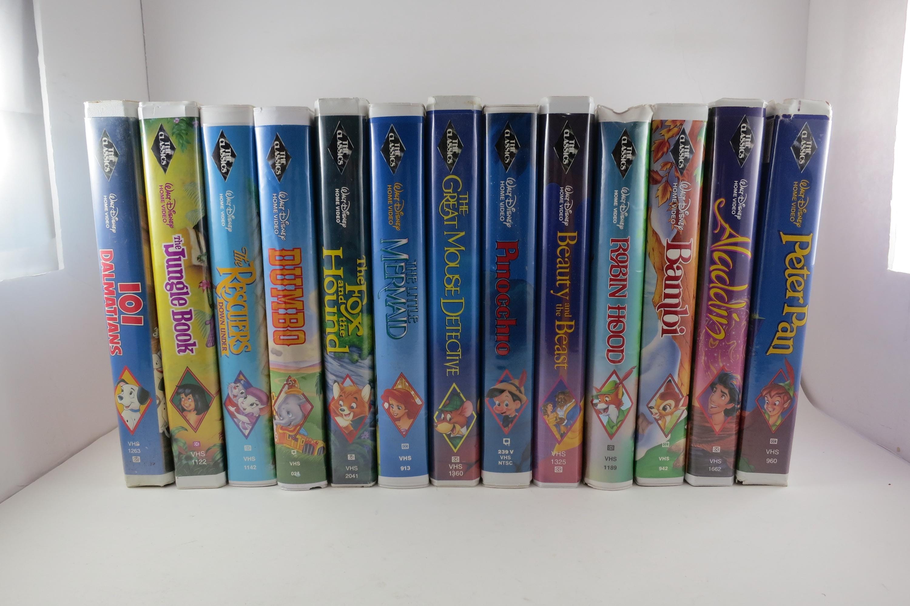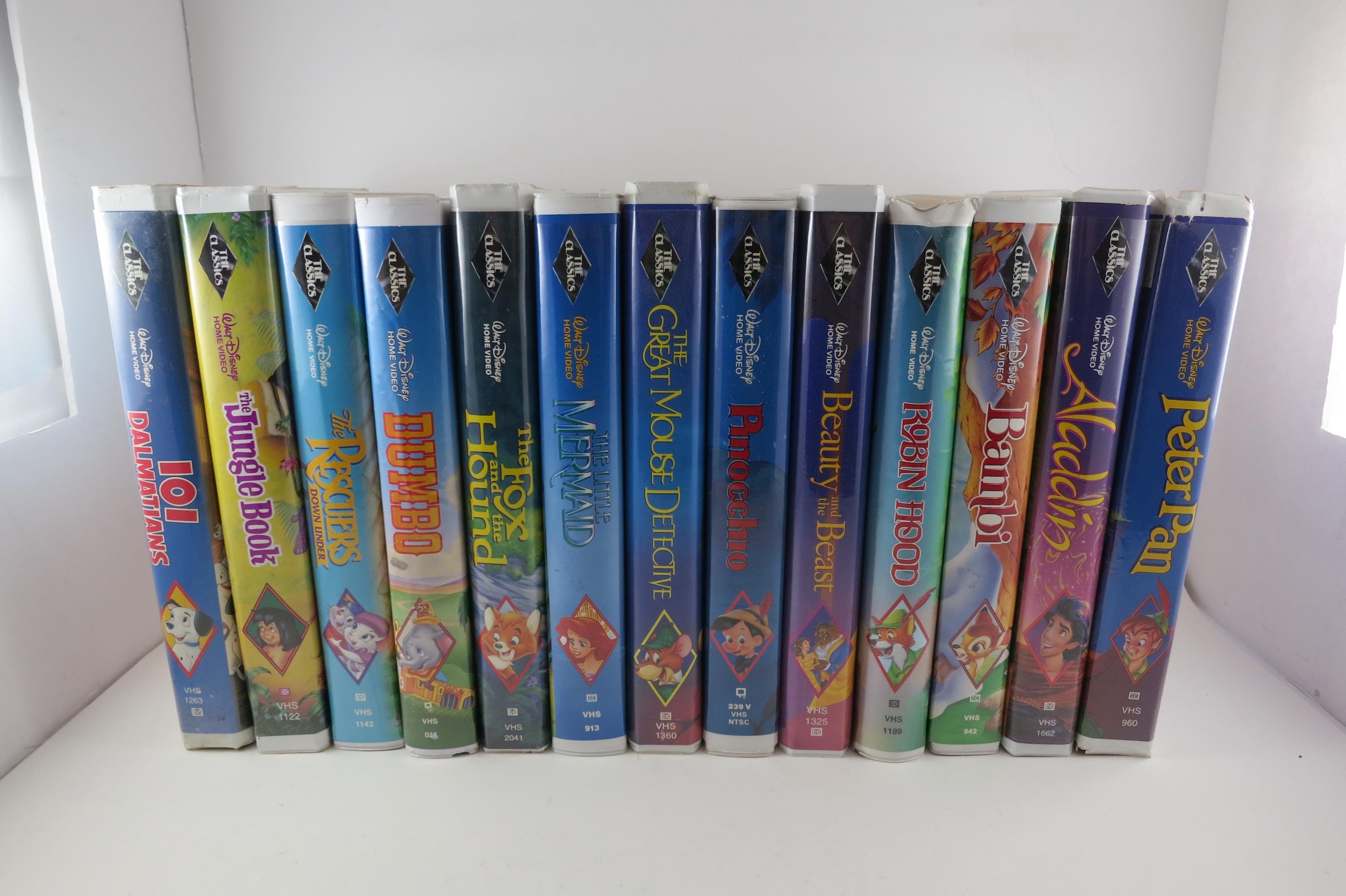 Collection of 13 Vintage Disney Black Diamond VHS Tapes Originals Aladdin Dumbo Cinderella Bambi Peter Pan More Clam Shell Cases Rare