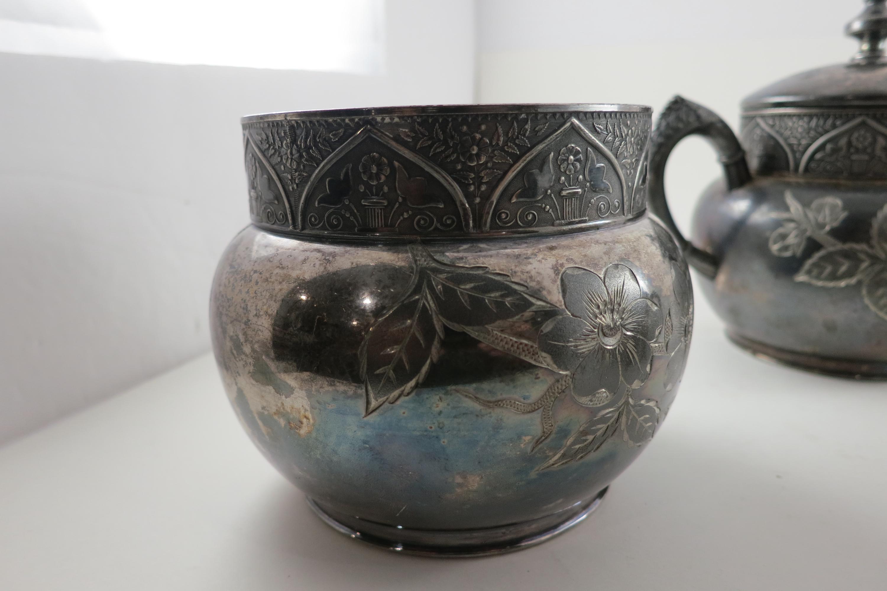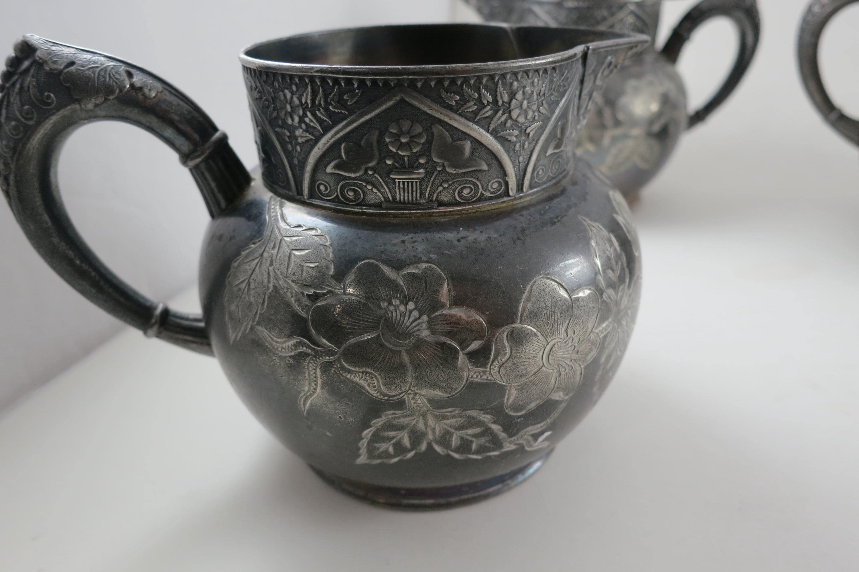 1881-1893 Hartford Silver Plate Company 5 Piece Set 1411 Etched Floral